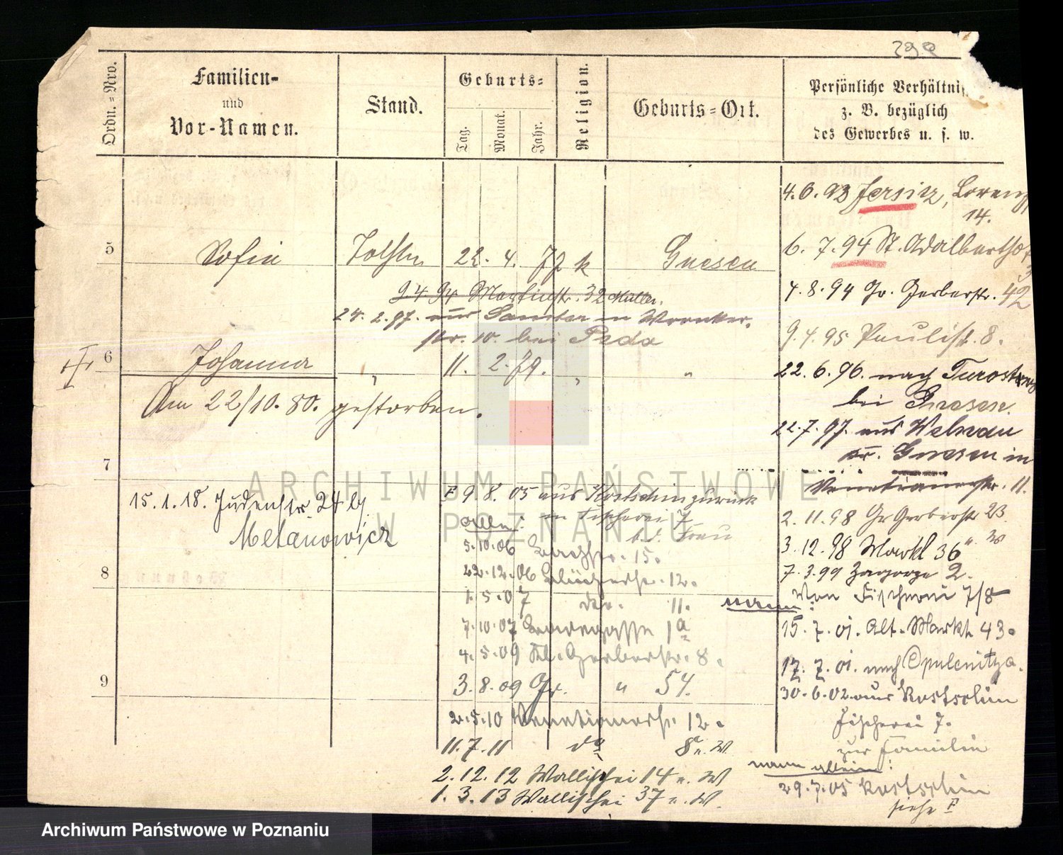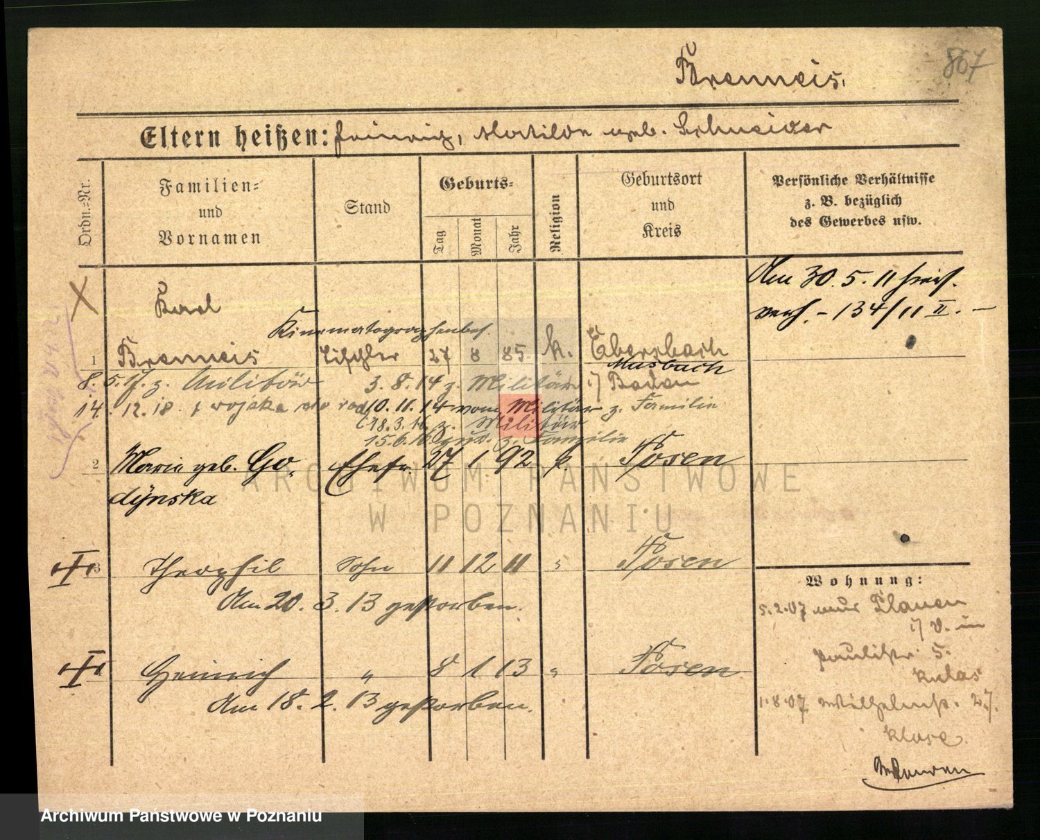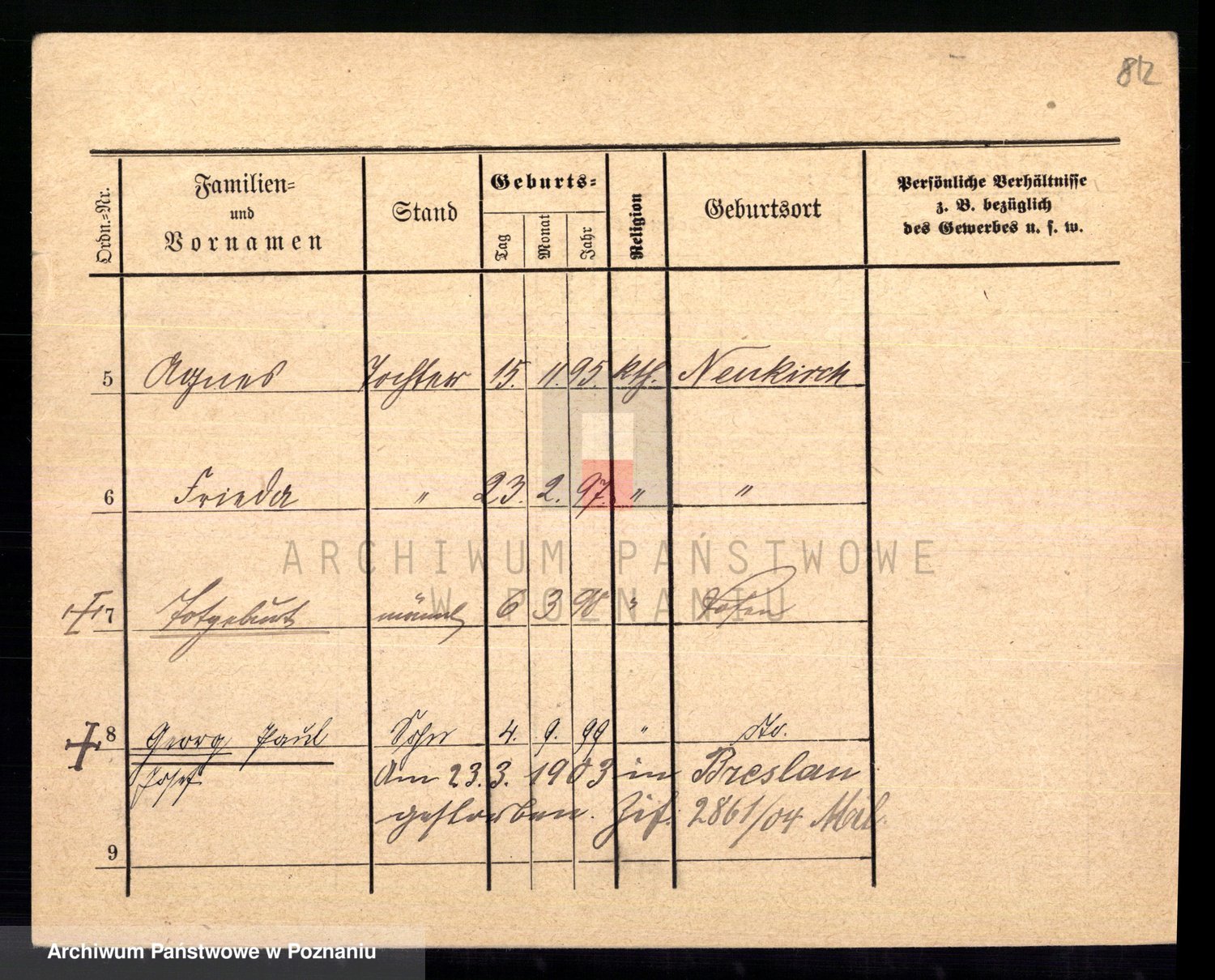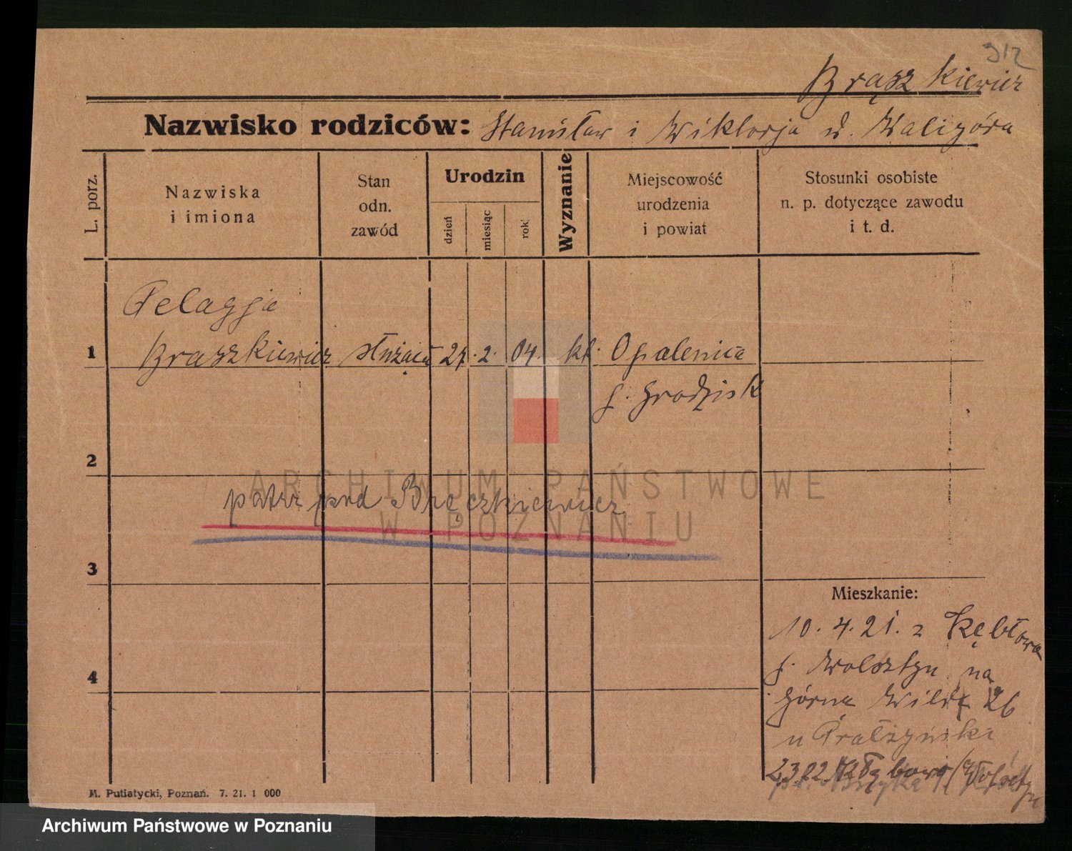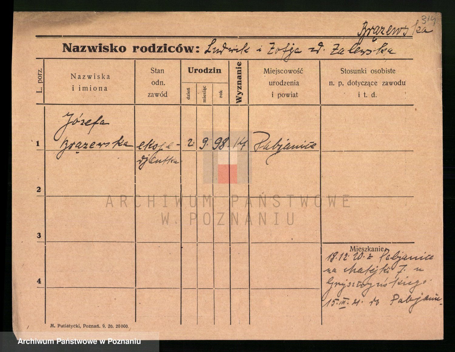 Podgląd karty osobowej dostępny jest po kliknięciu na nazwisko lub ikonkę karty. Można dokonywać powiększenia (ikony na górze) lub przechodzić między kolejnymi skanami (strzałki po bokach).