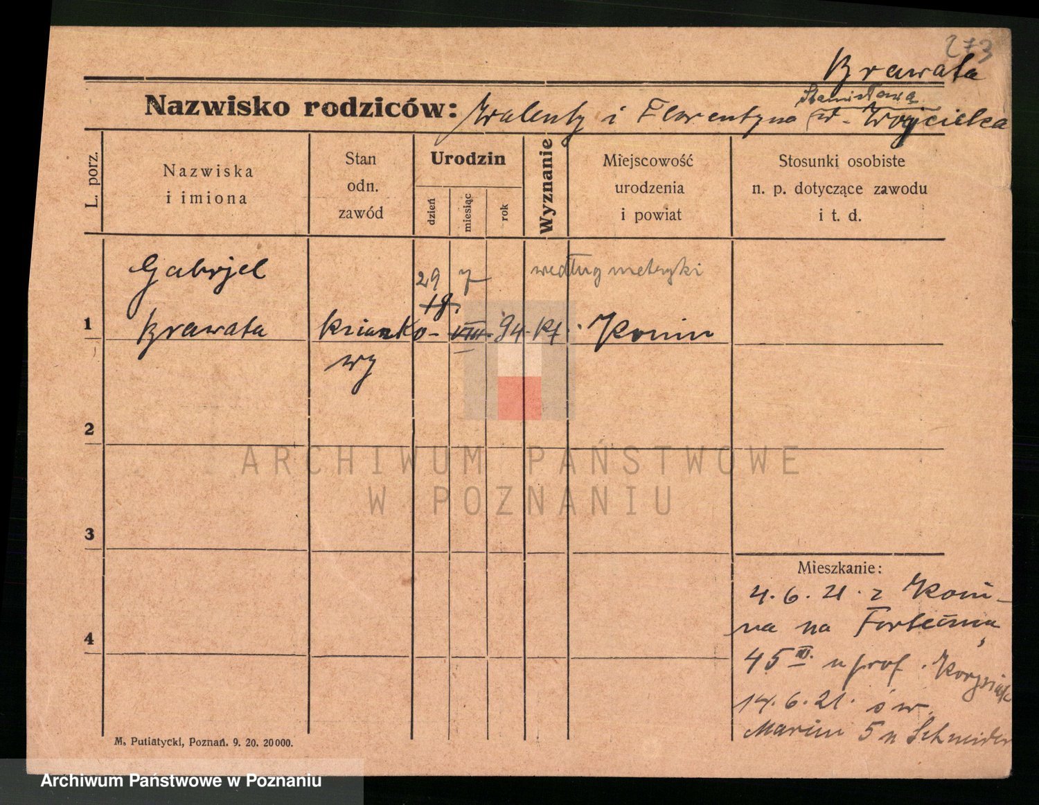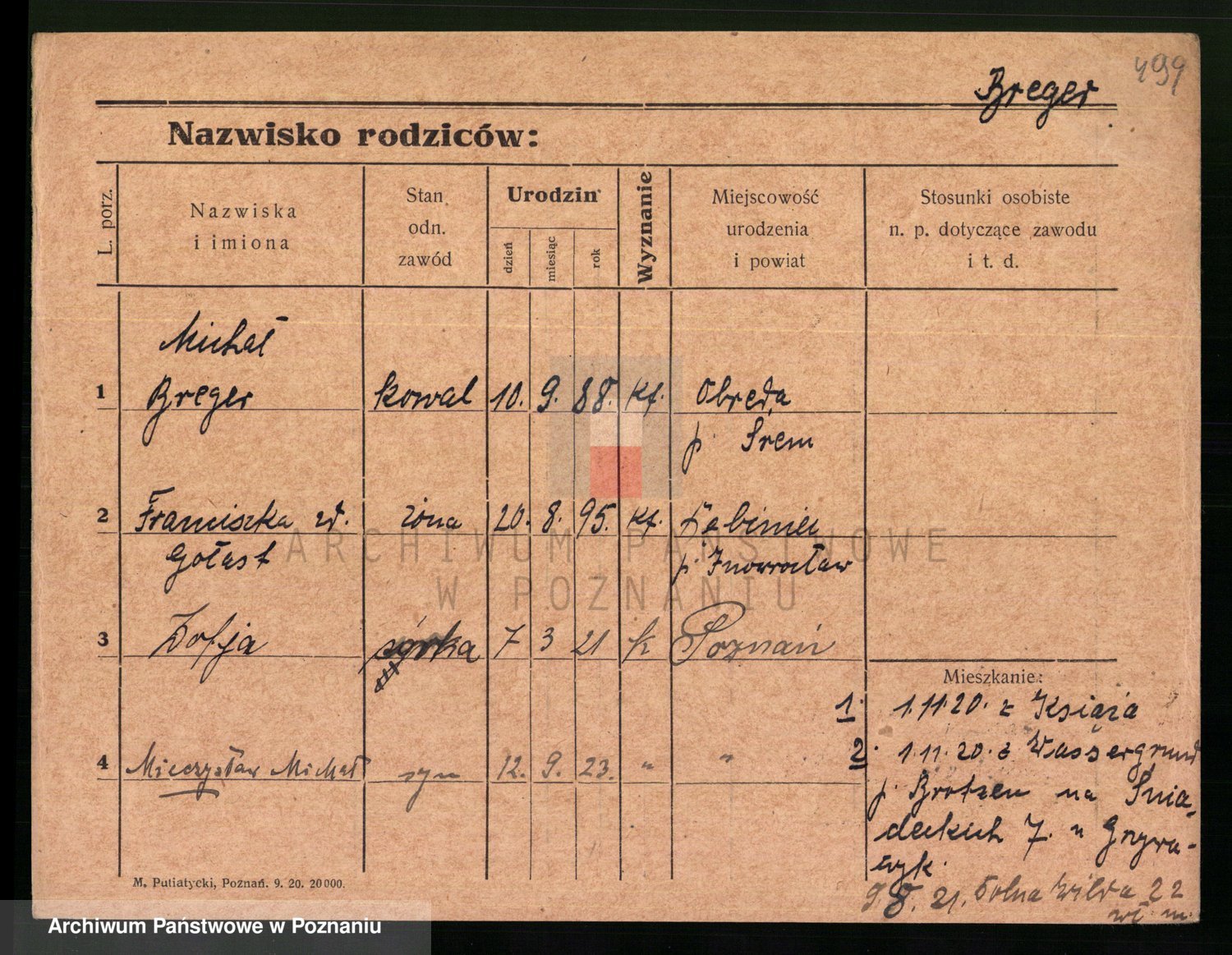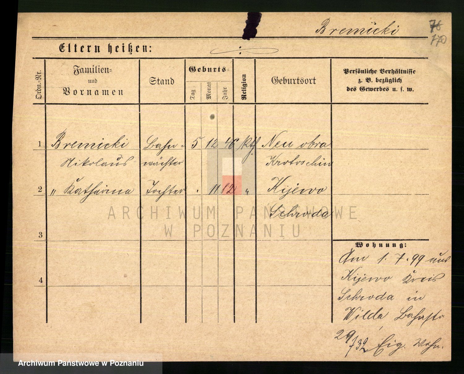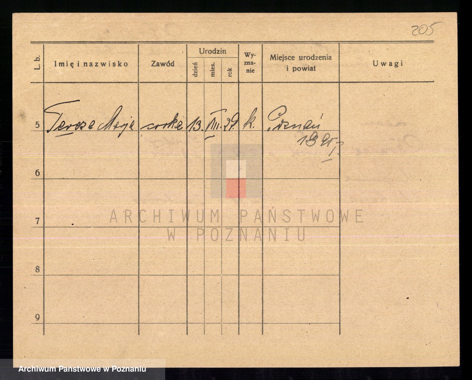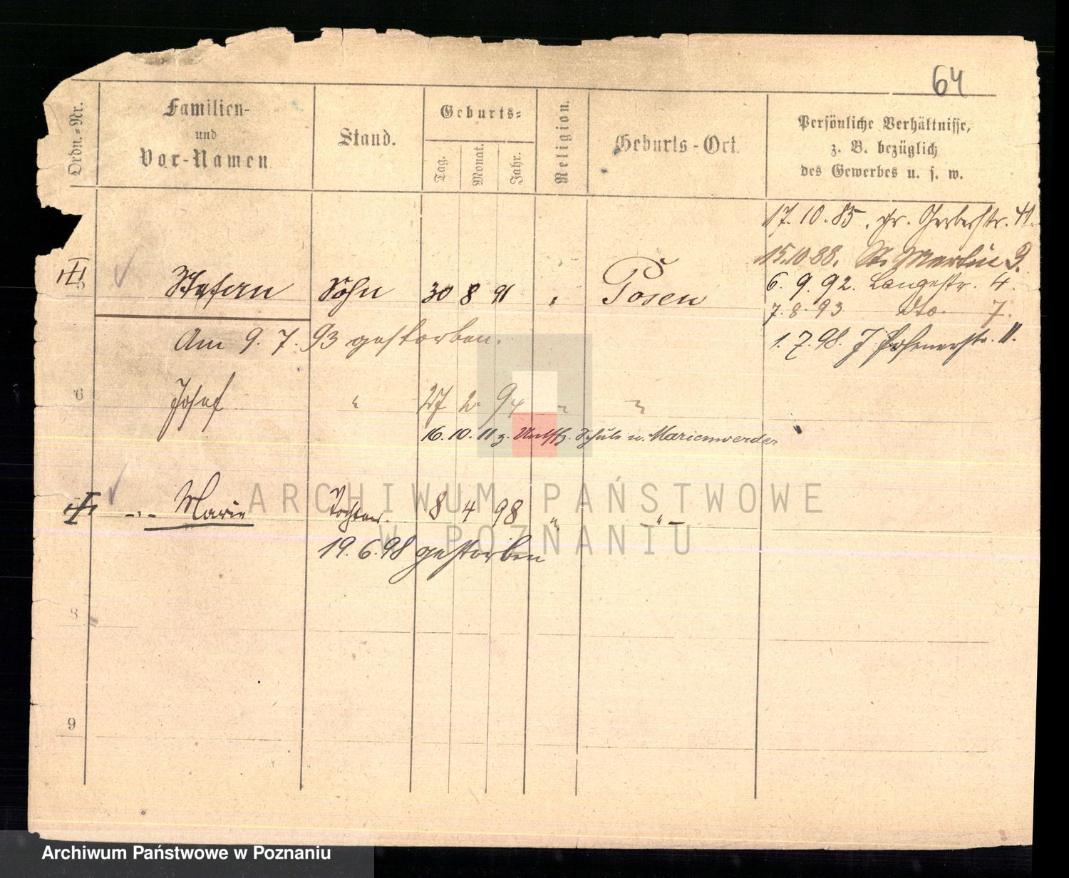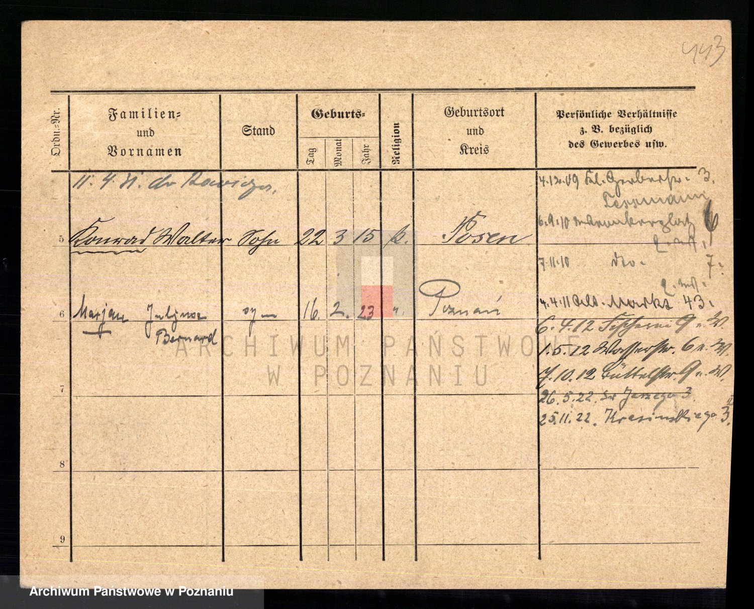 Podgląd karty osobowej dostępny jest po kliknięciu na nazwisko lub ikonkę karty. Można dokonywać powiększenia (ikony na górze) lub przechodzić między kolejnymi skanami (strzałki po bokach).