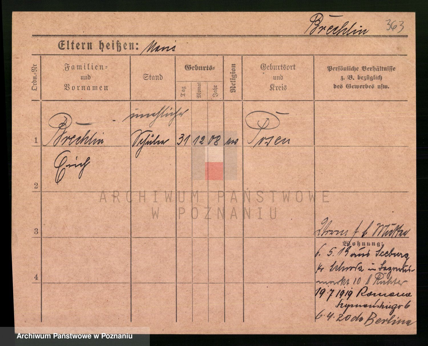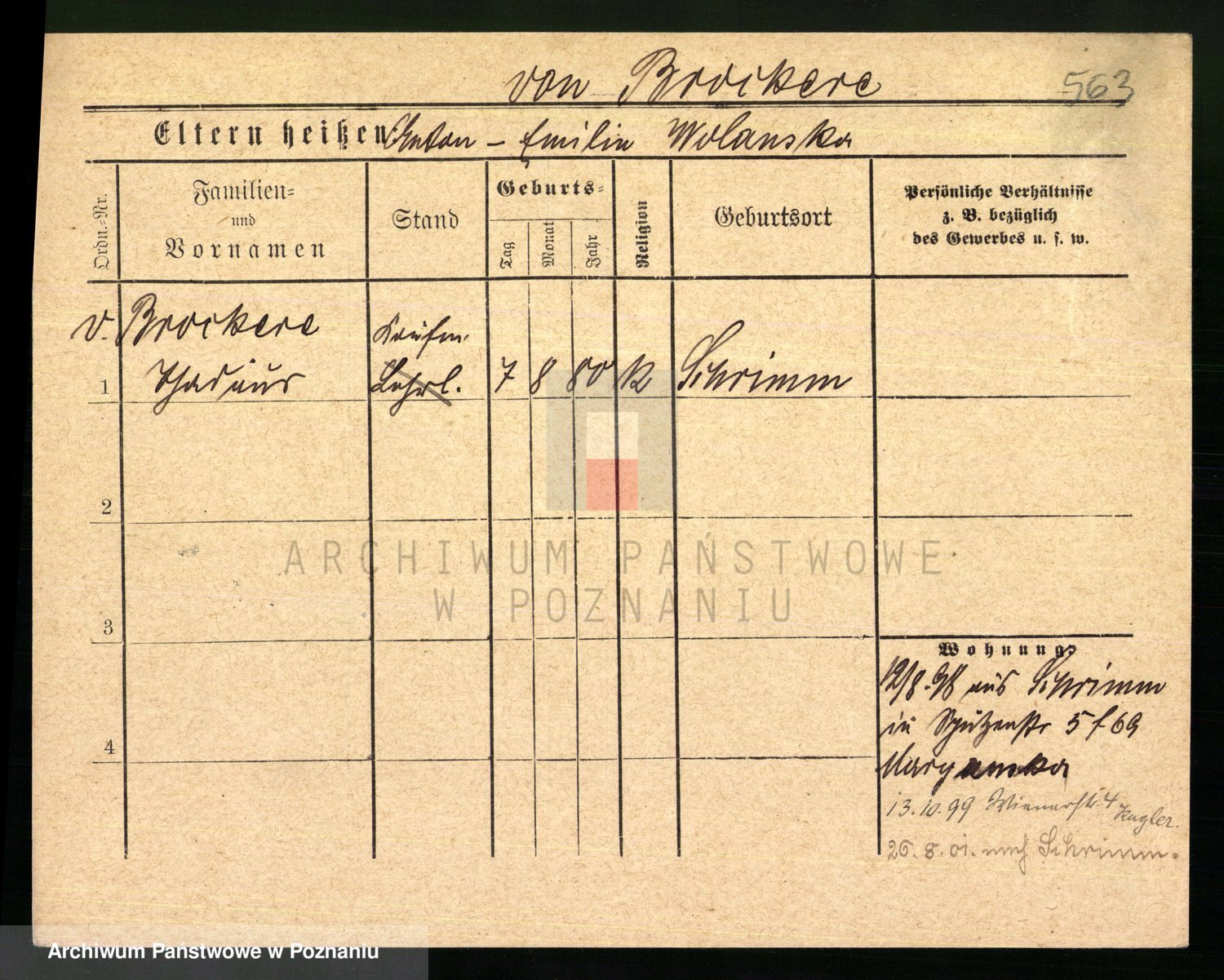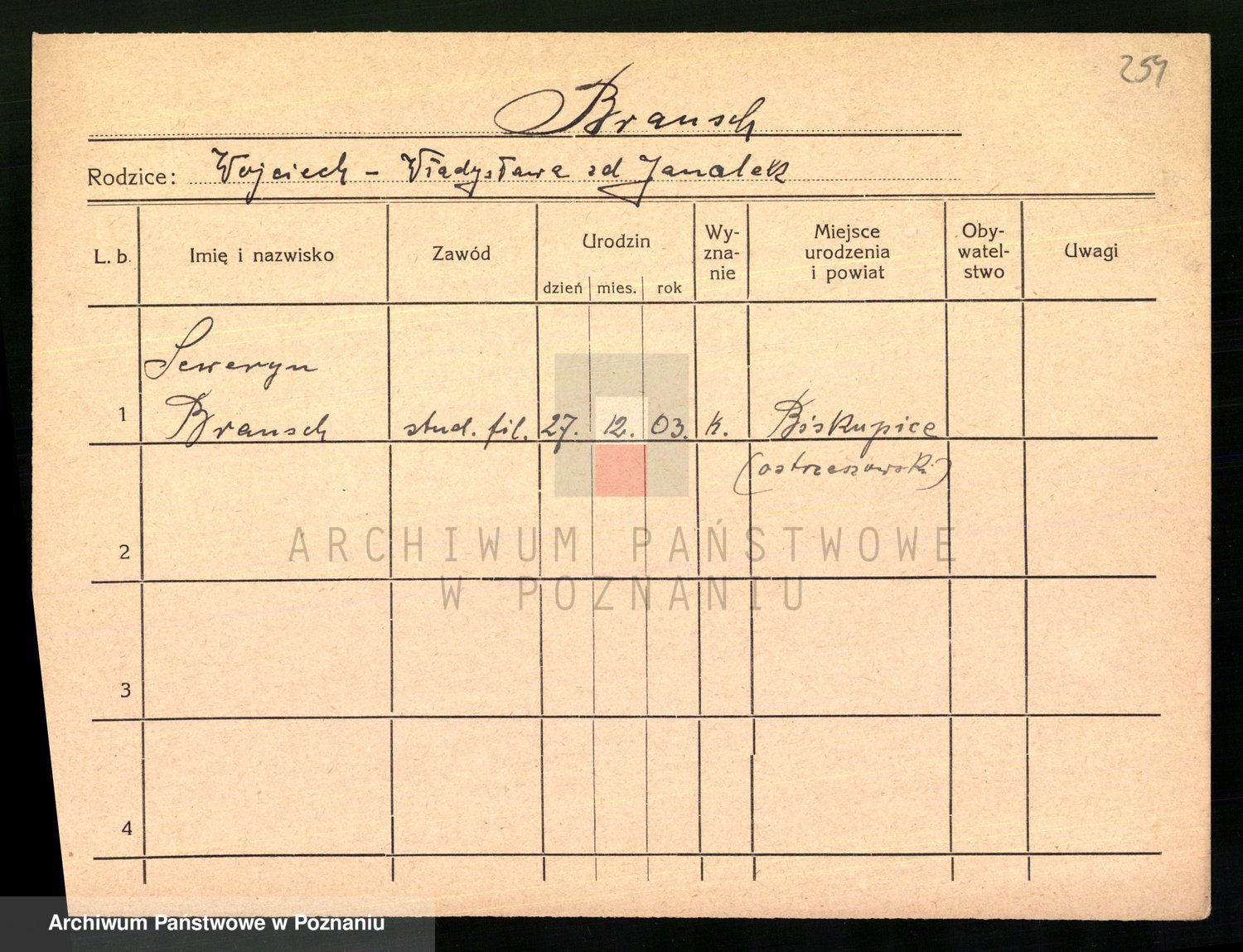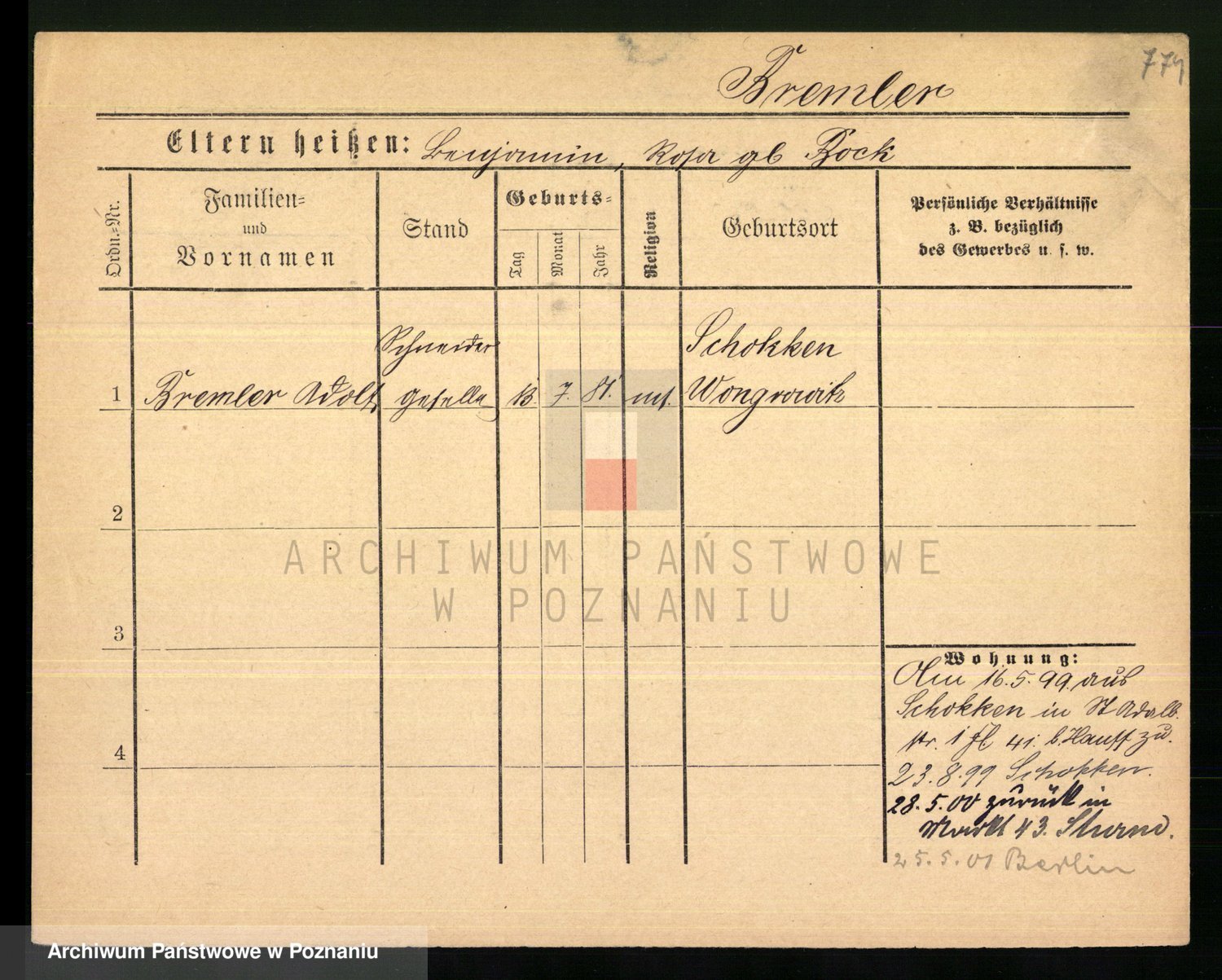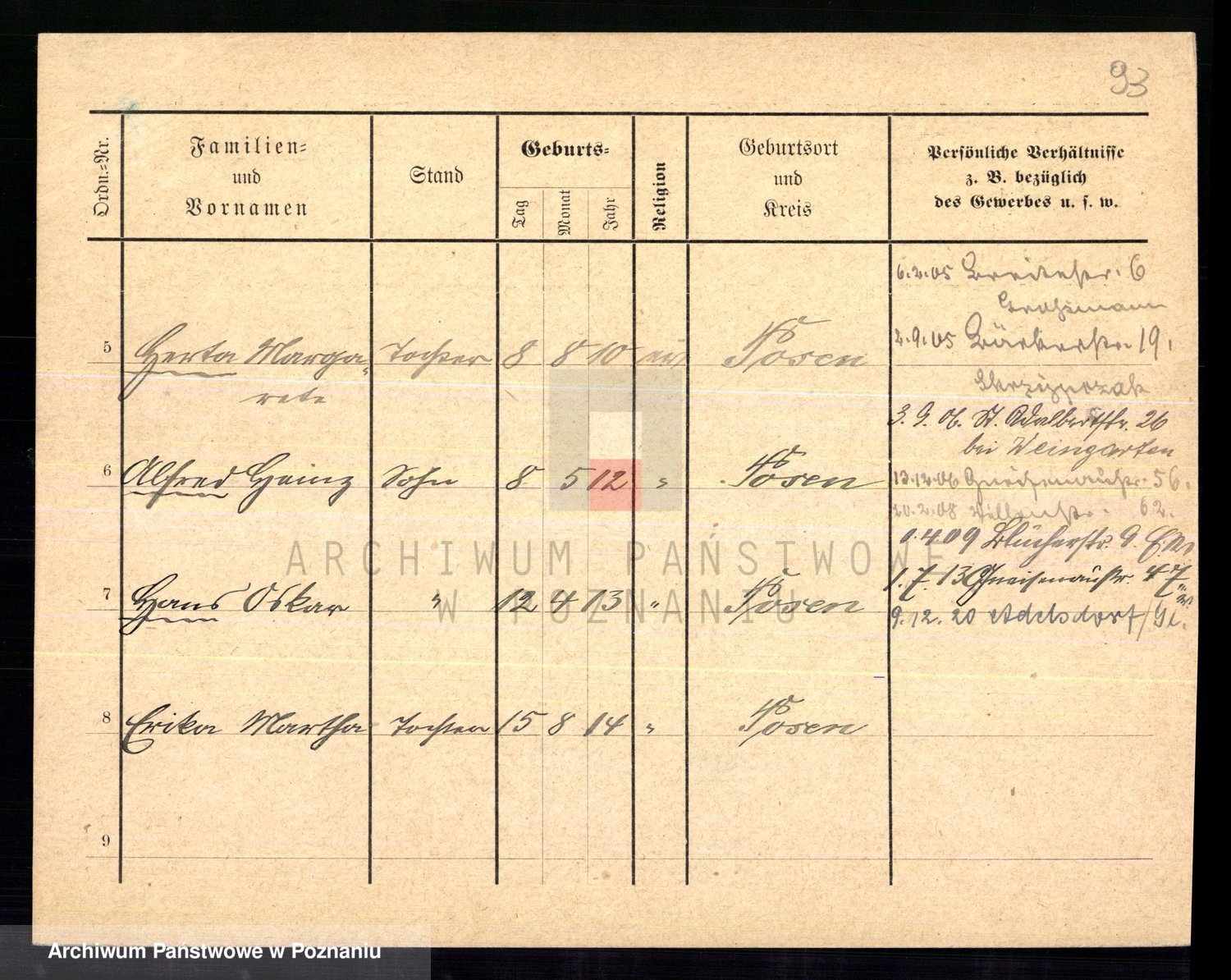 Podgląd karty osobowej dostępny jest po kliknięciu na nazwisko lub ikonkę karty. Można dokonywać powiększenia (ikony na górze) lub przechodzić między kolejnymi skanami (strzałki po bokach).