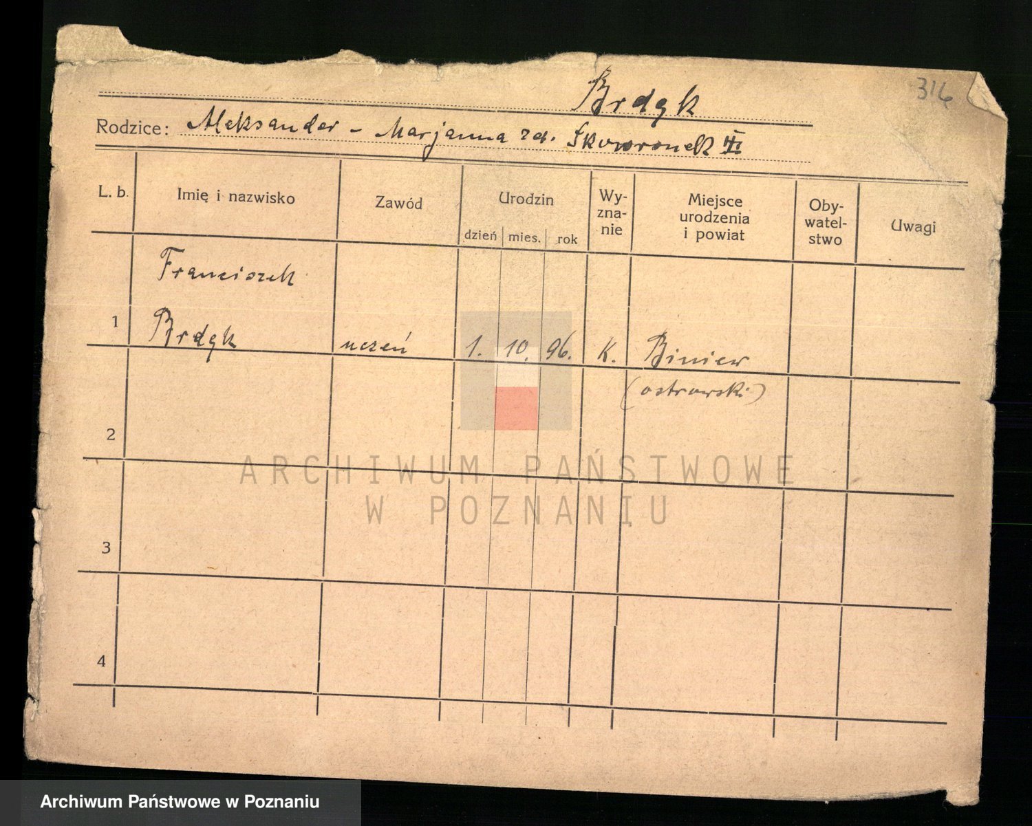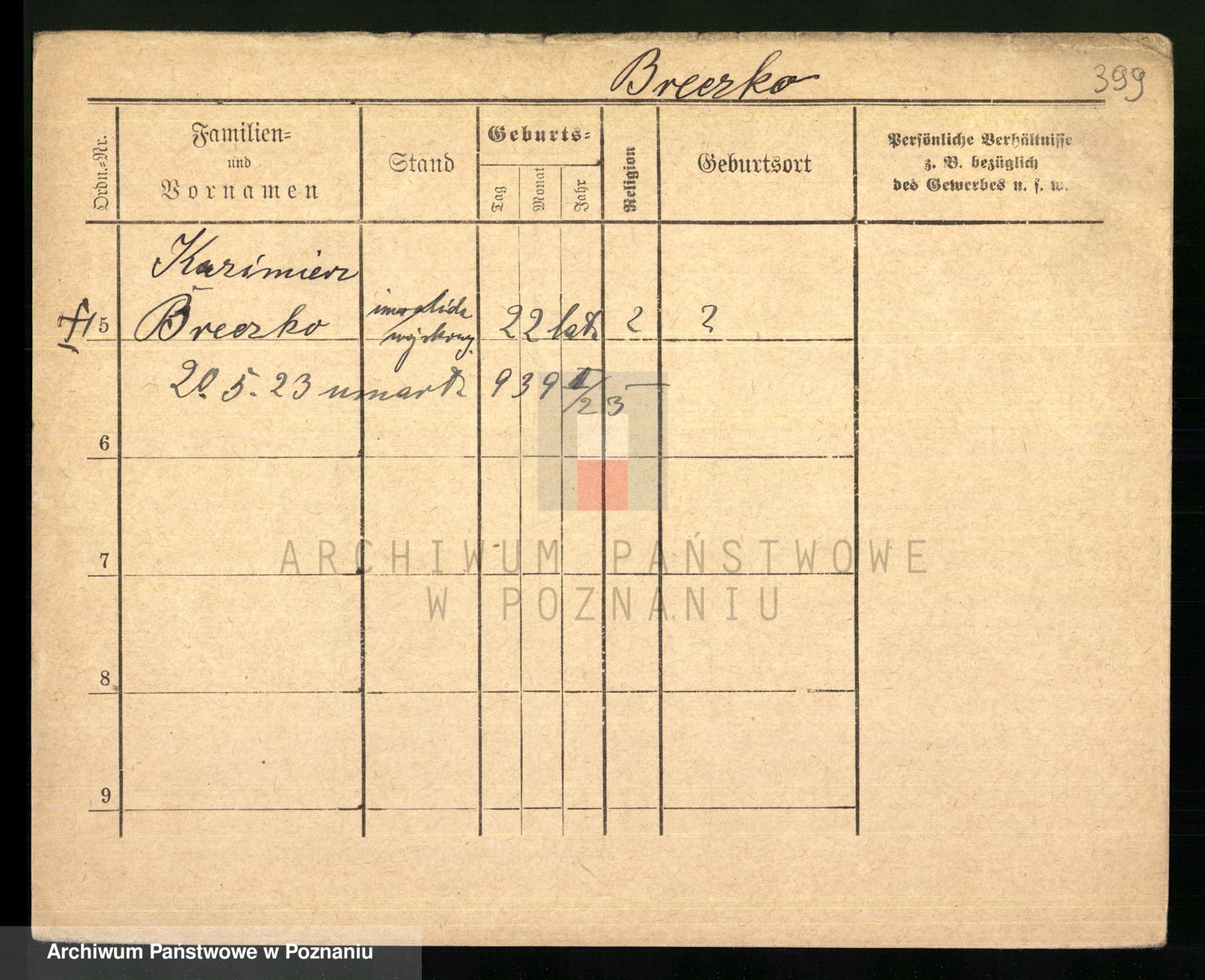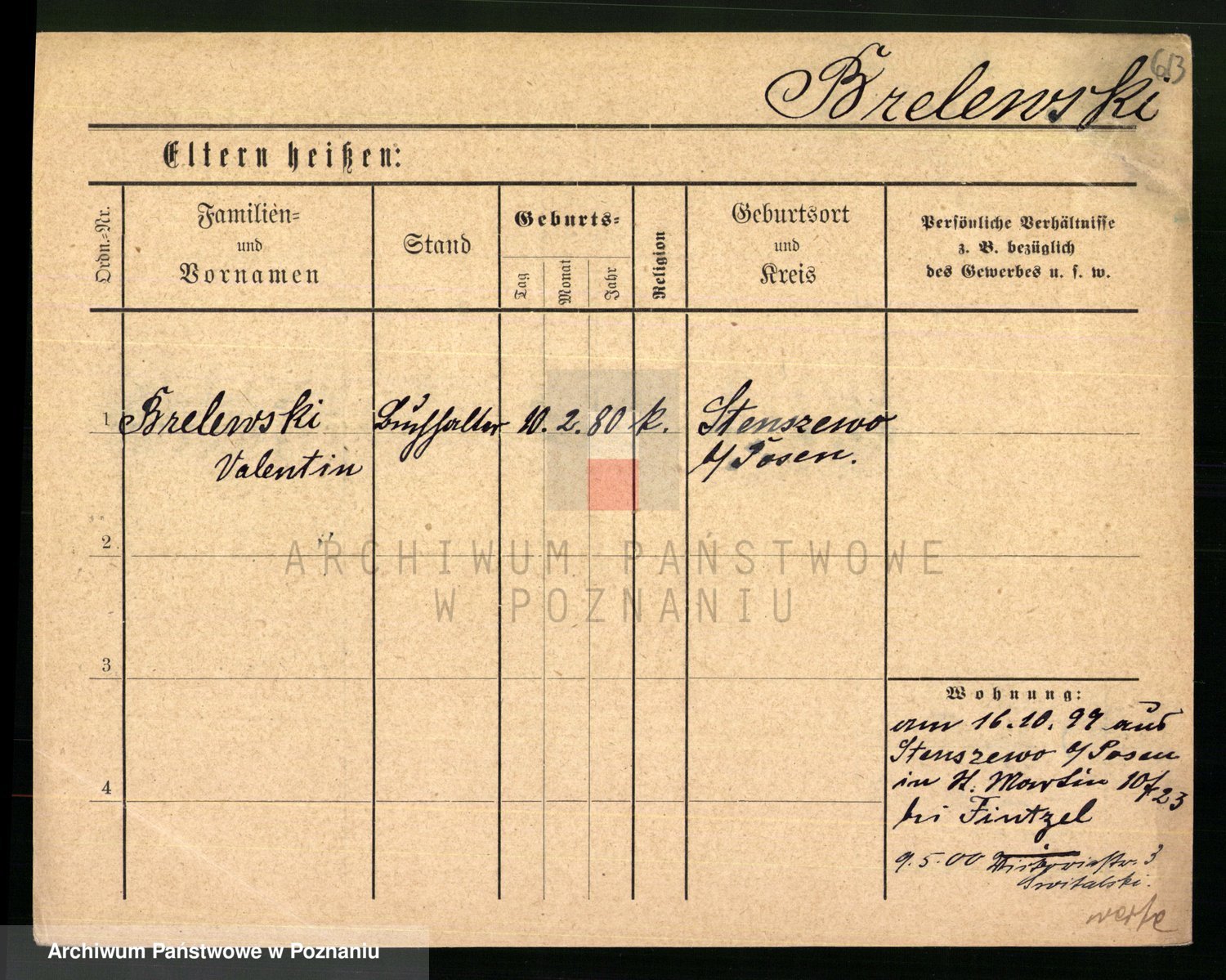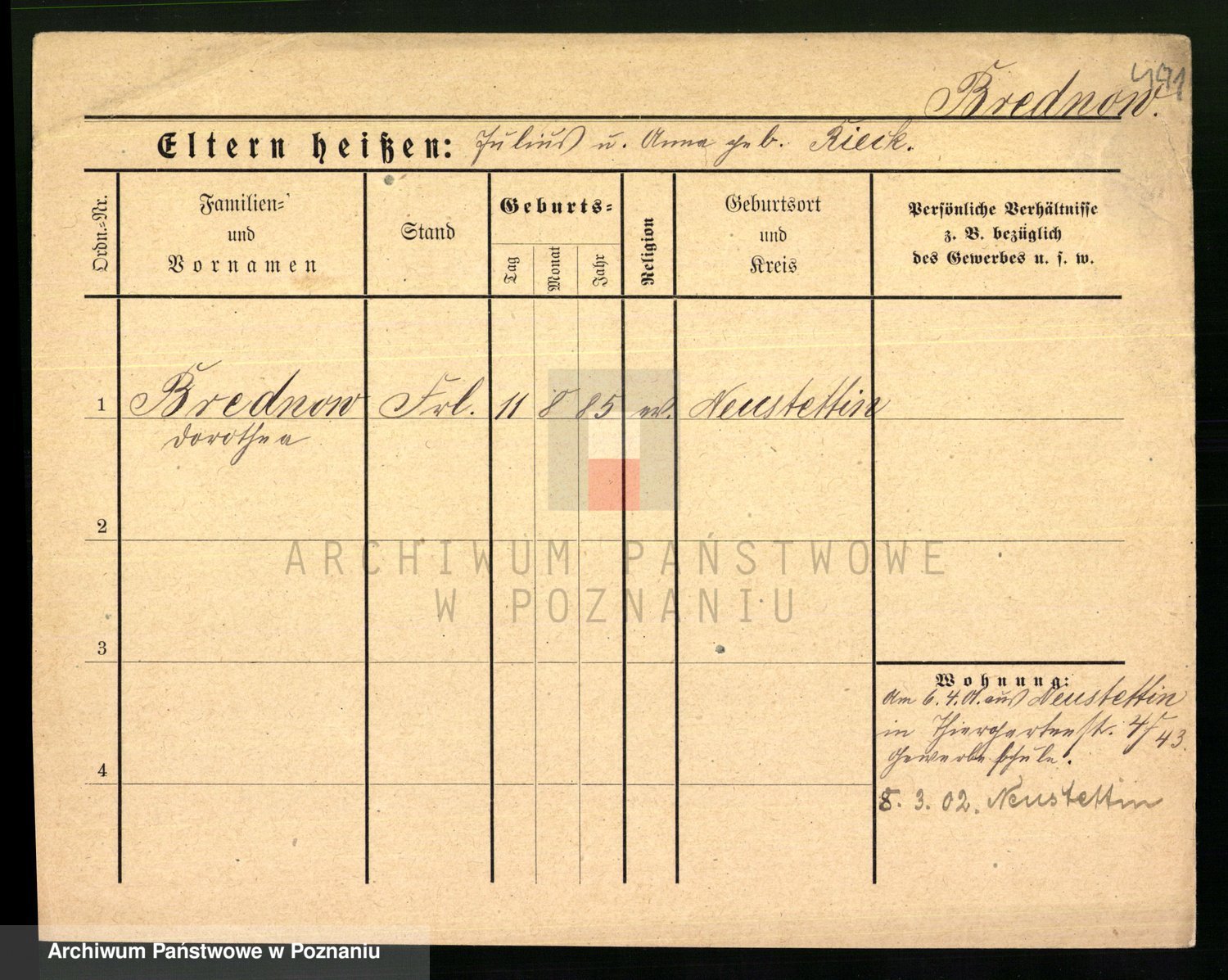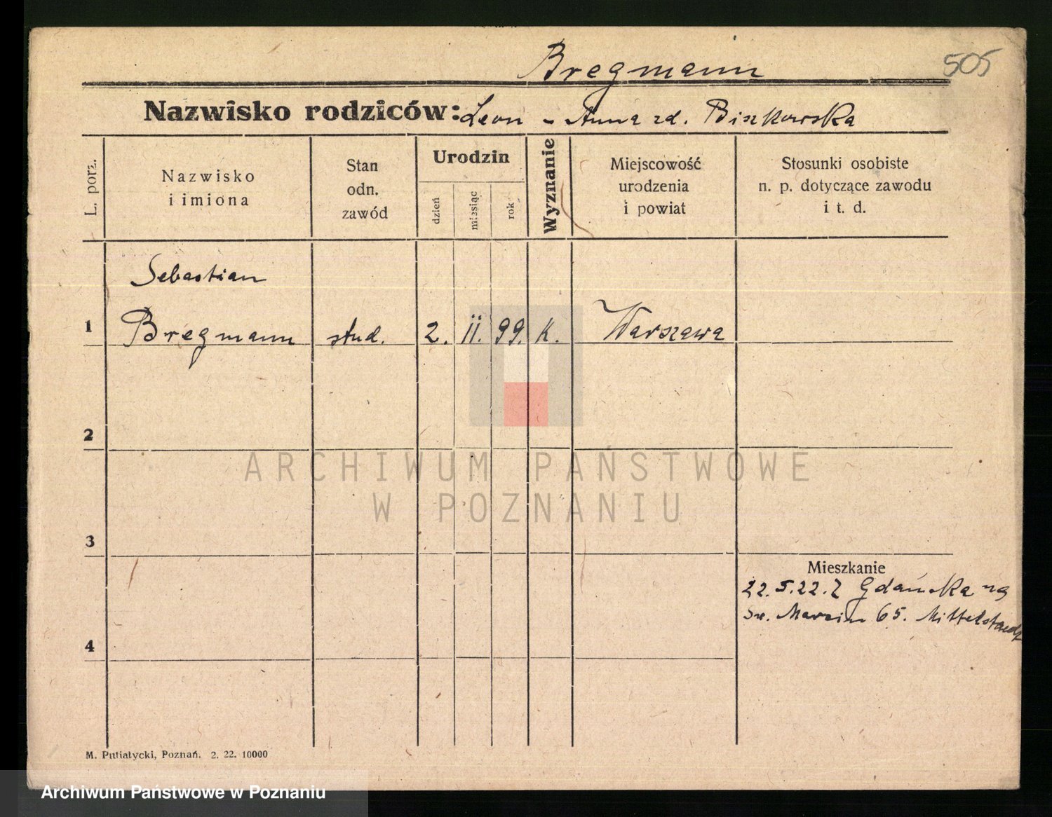 Podgląd karty osobowej dostępny jest po kliknięciu na nazwisko lub ikonkę karty. Można dokonywać powiększenia (ikony na górze) lub przechodzić między kolejnymi skanami (strzałki po bokach).