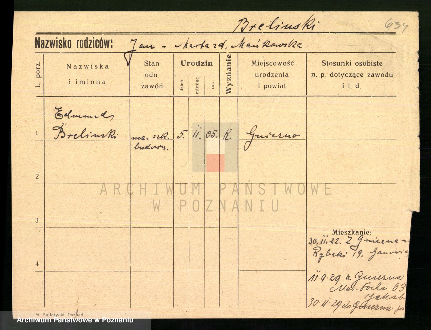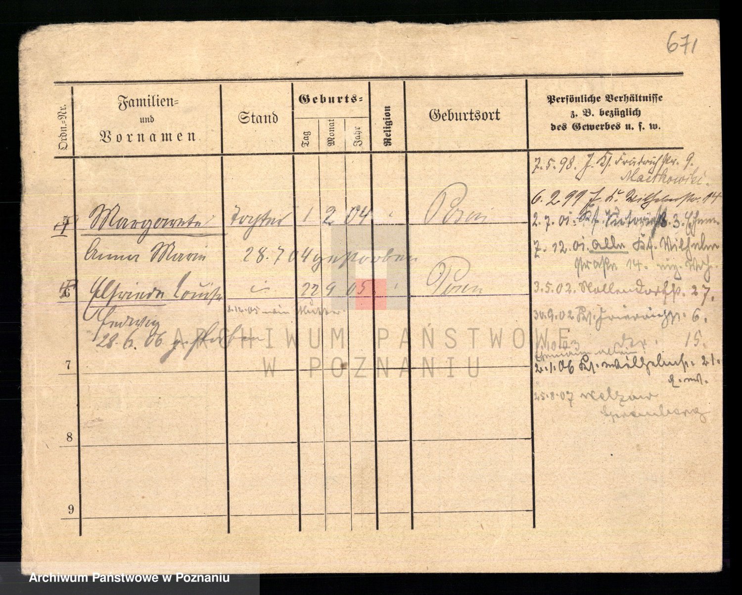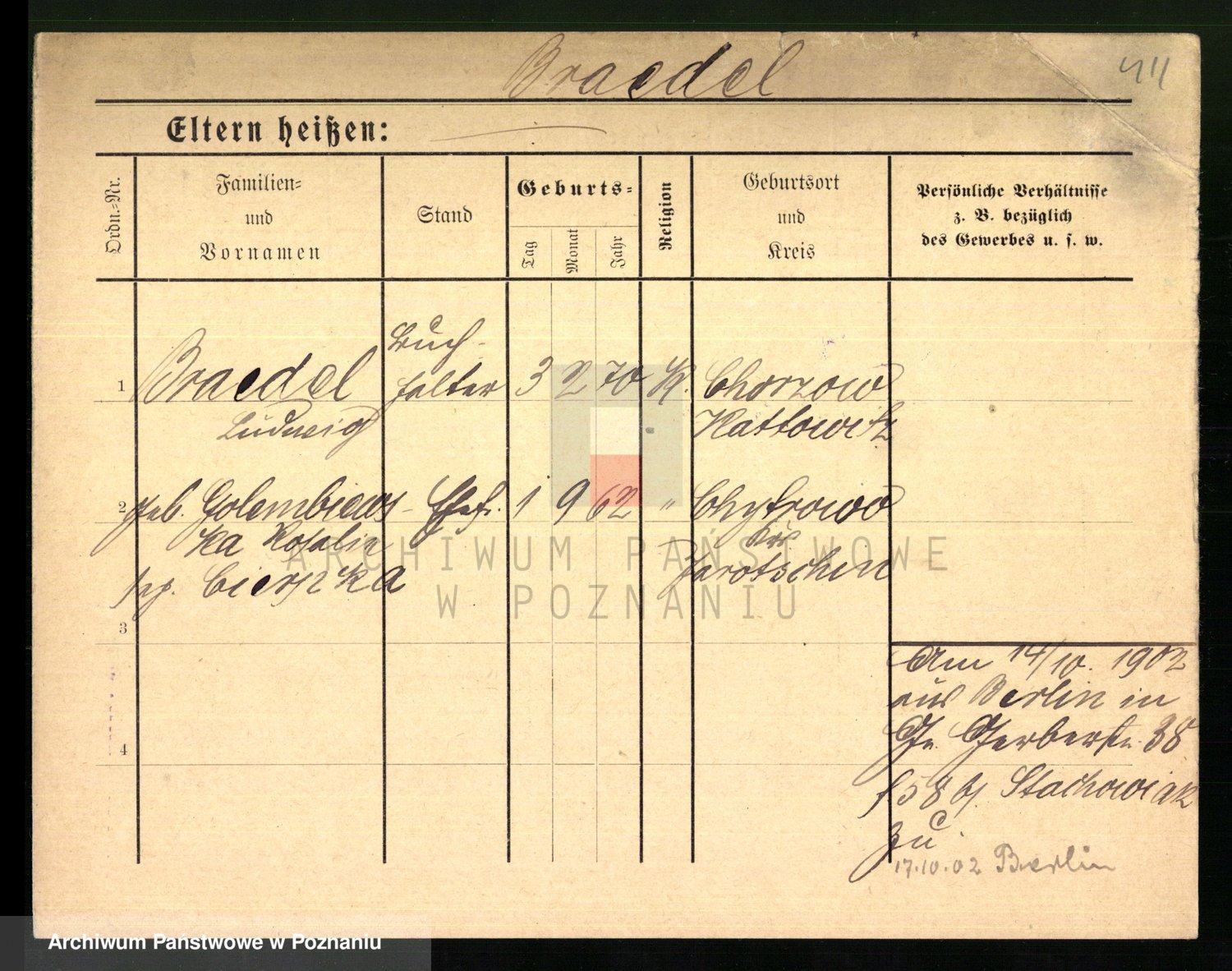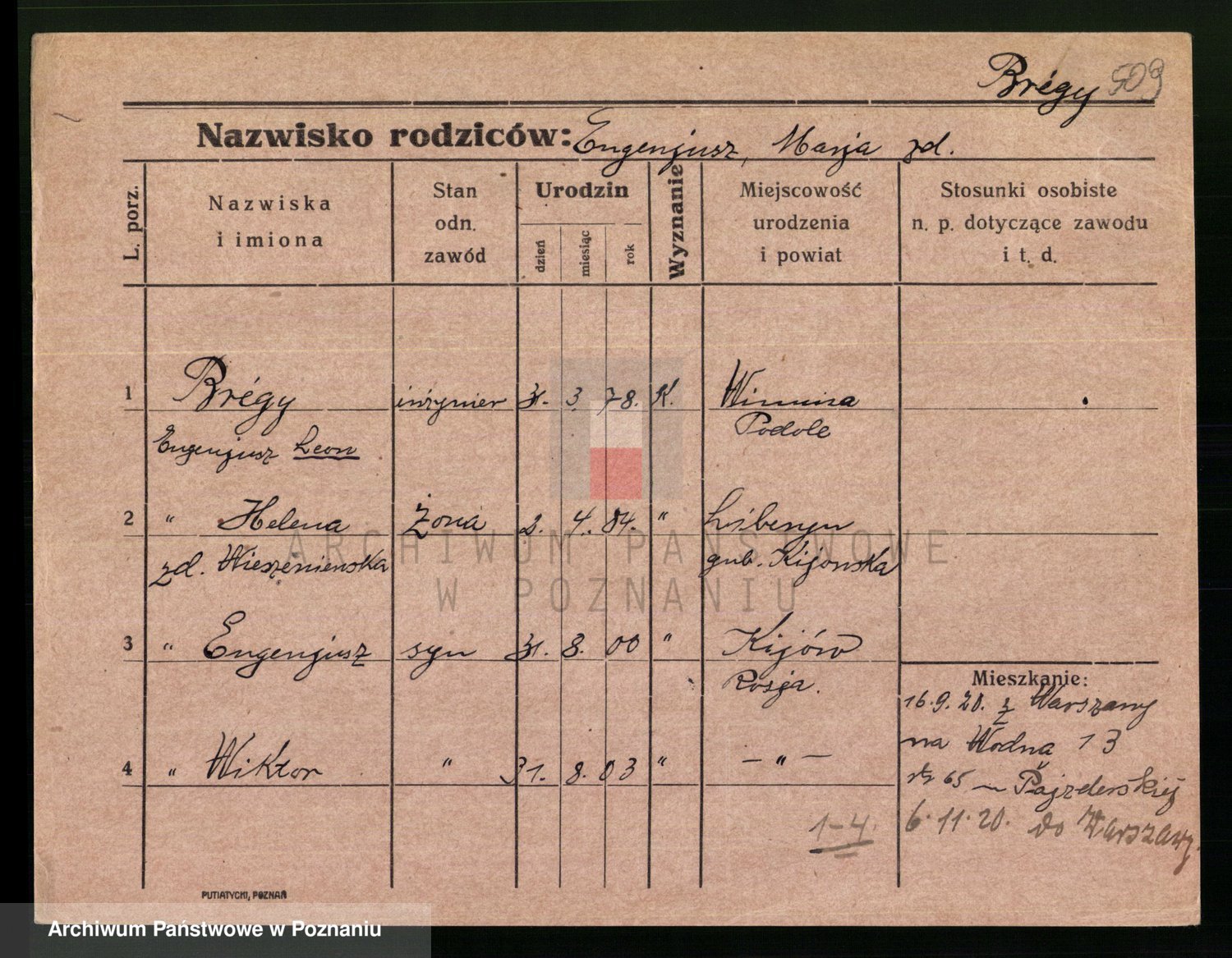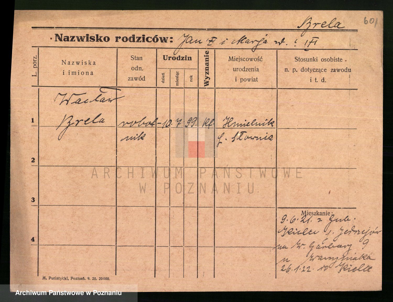 Podgląd karty osobowej dostępny jest po kliknięciu na nazwisko lub ikonkę karty. Można dokonywać powiększenia (ikony na górze) lub przechodzić między kolejnymi skanami (strzałki po bokach).