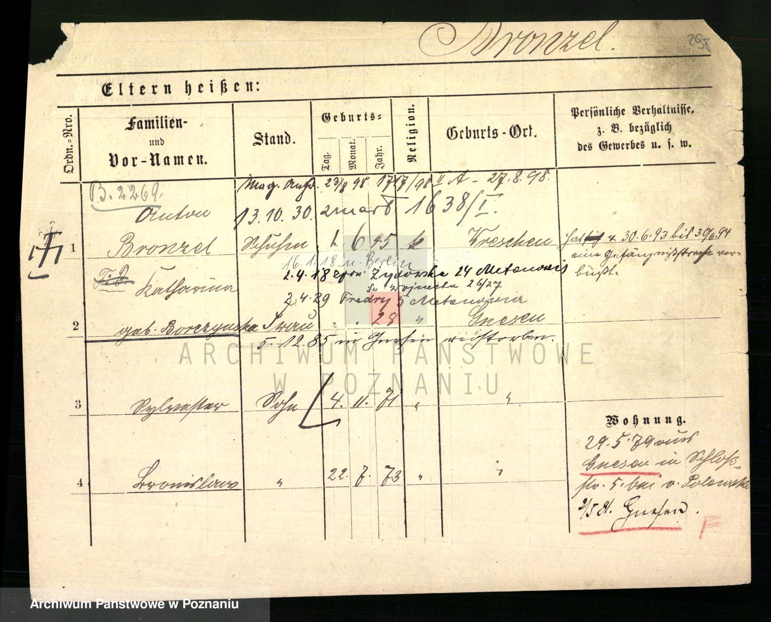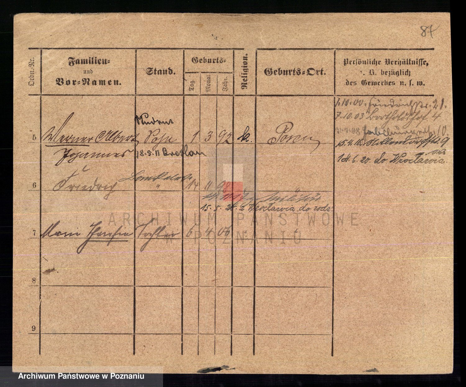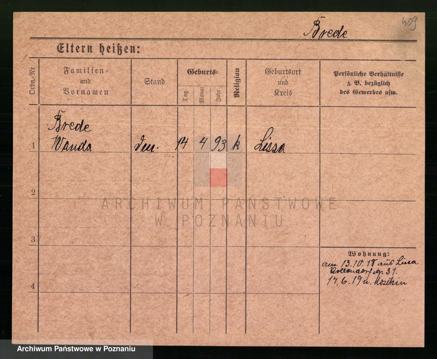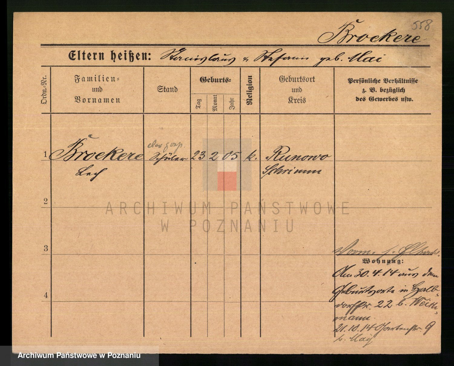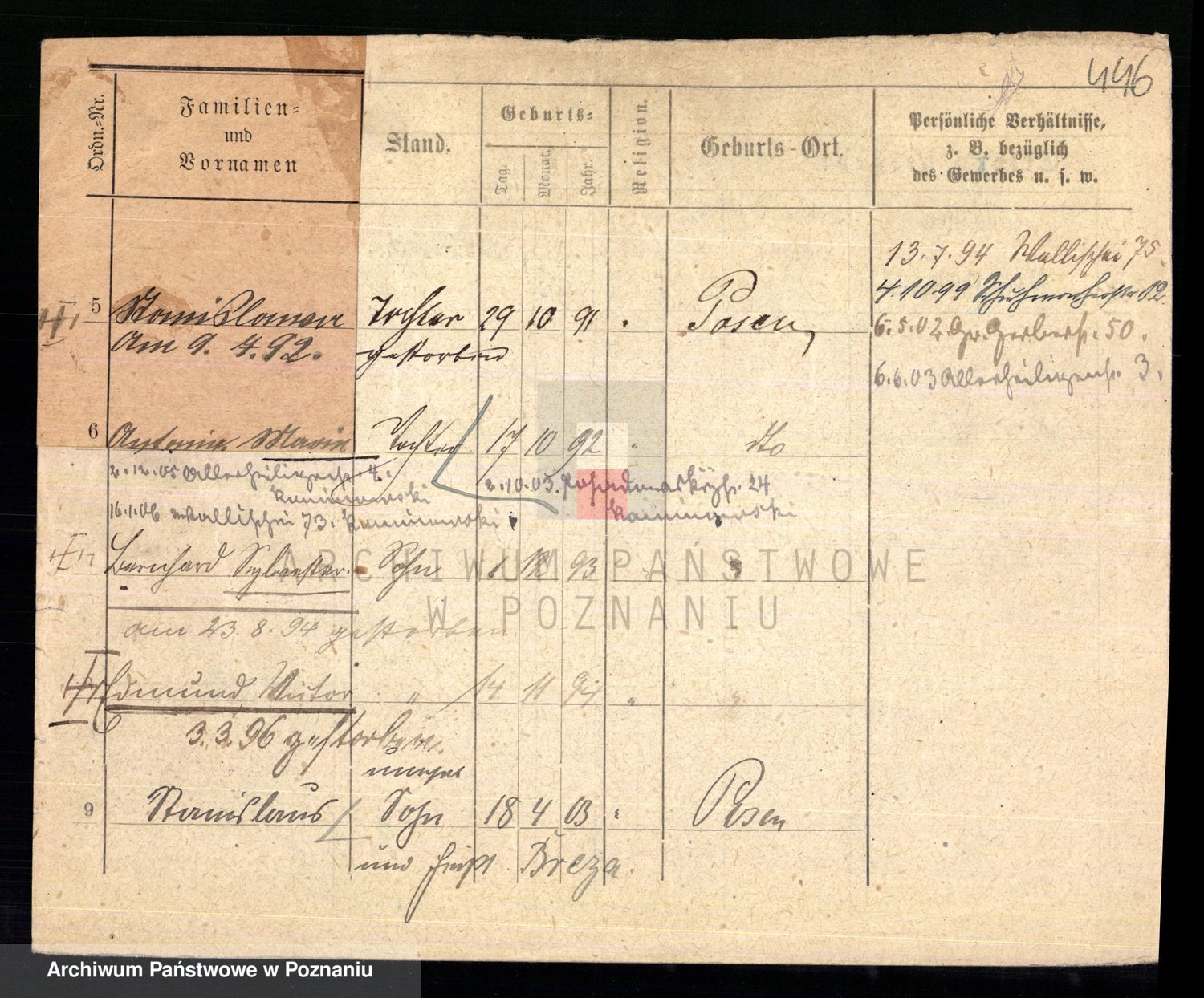 Podgląd karty osobowej dostępny jest po kliknięciu na nazwisko lub ikonkę karty. Można dokonywać powiększenia (ikony na górze) lub przechodzić między kolejnymi skanami (strzałki po bokach).