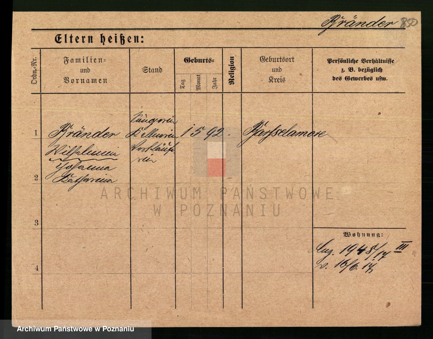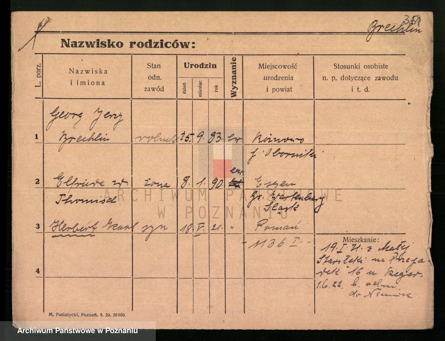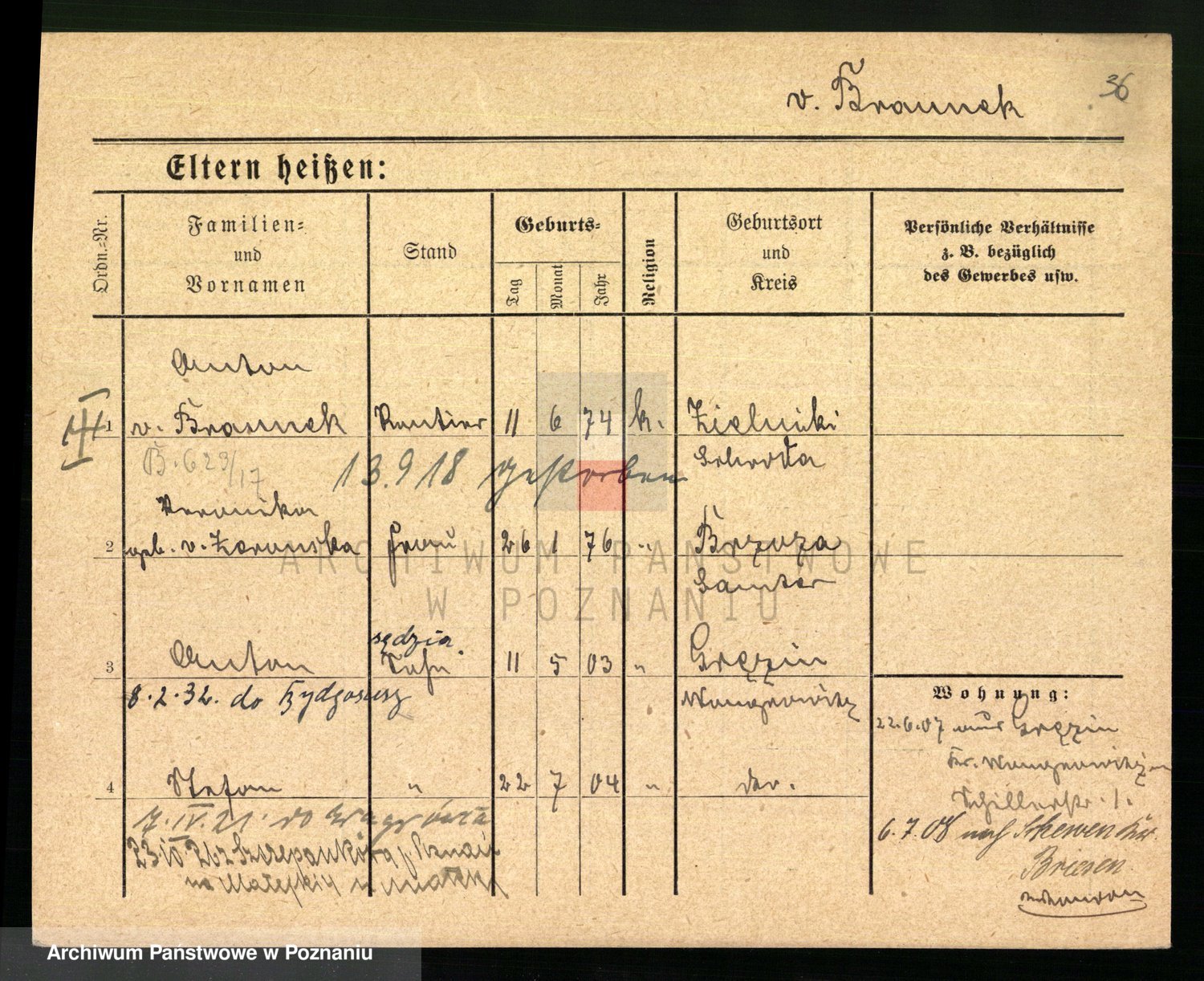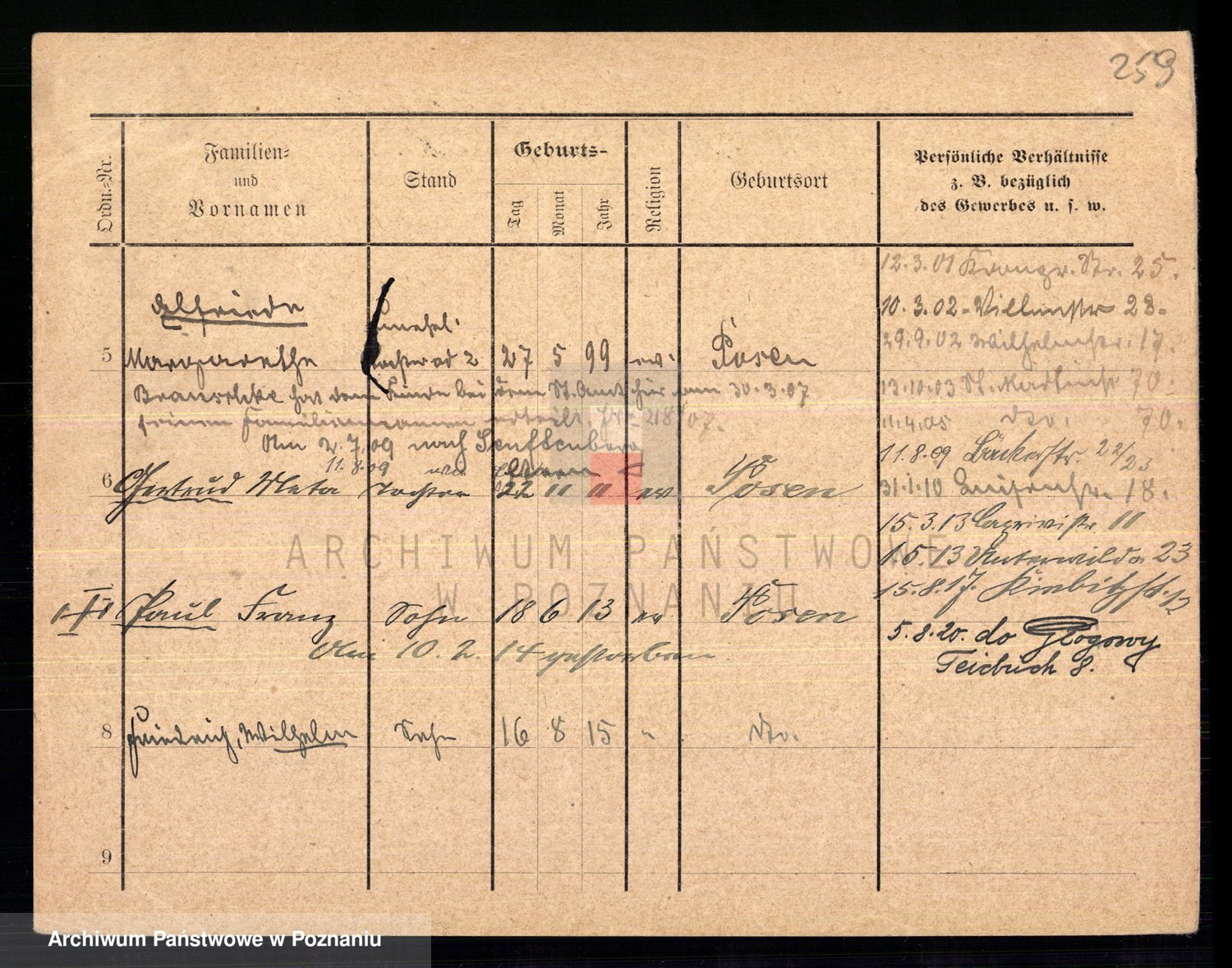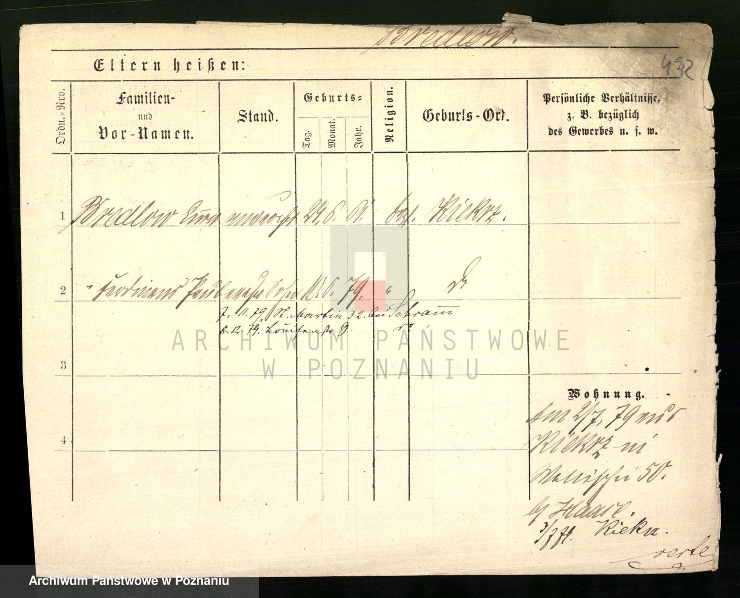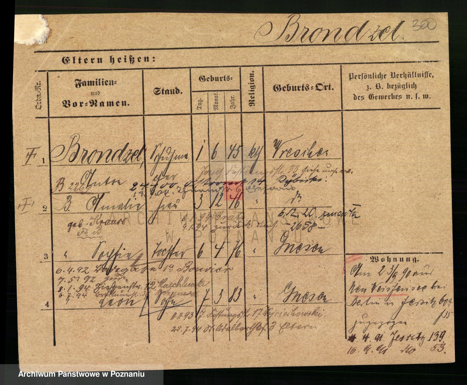 Podgląd karty osobowej dostępny jest po kliknięciu na nazwisko lub ikonkę karty. Można dokonywać powiększenia (ikony na górze) lub przechodzić między kolejnymi skanami (strzałki po bokach).