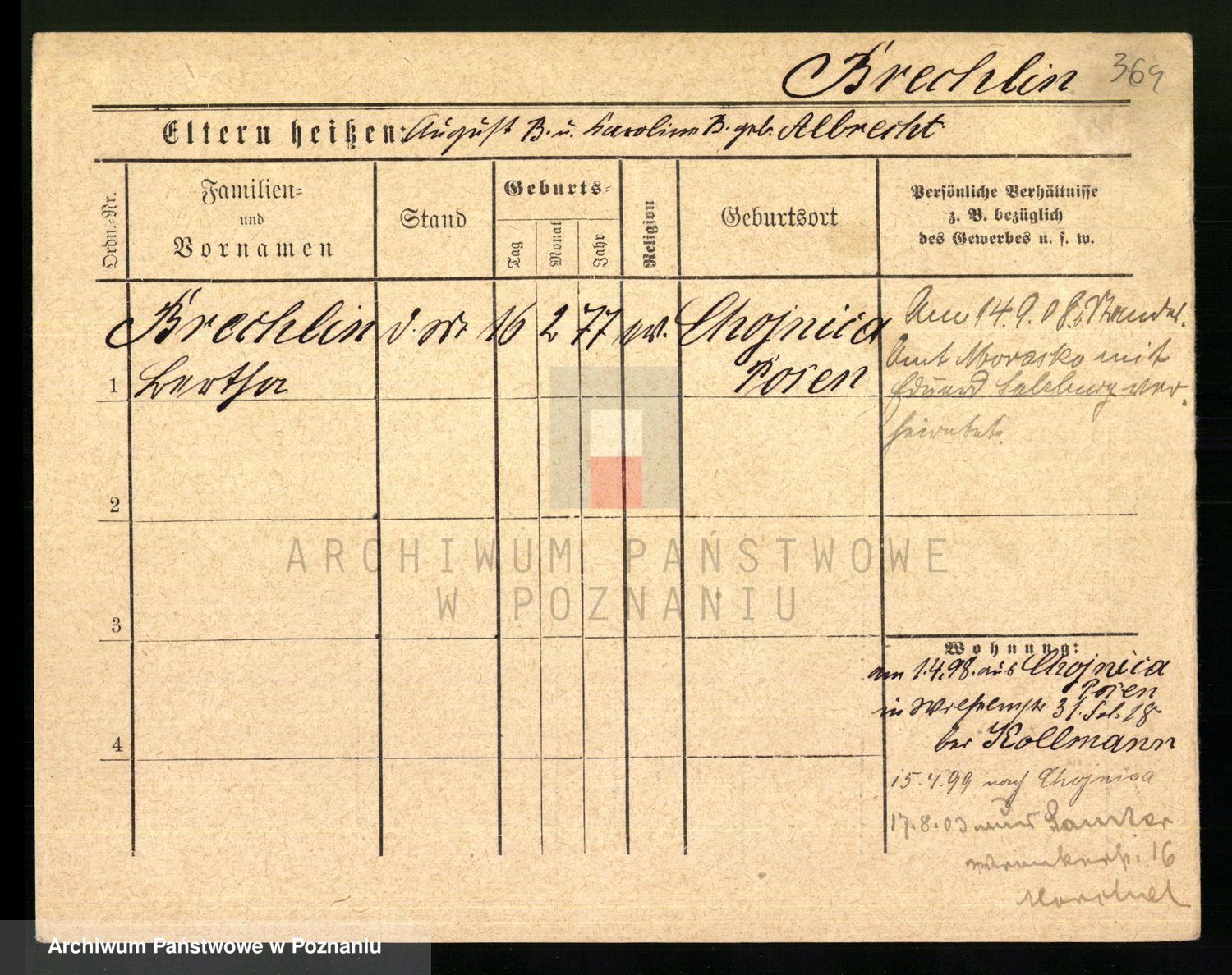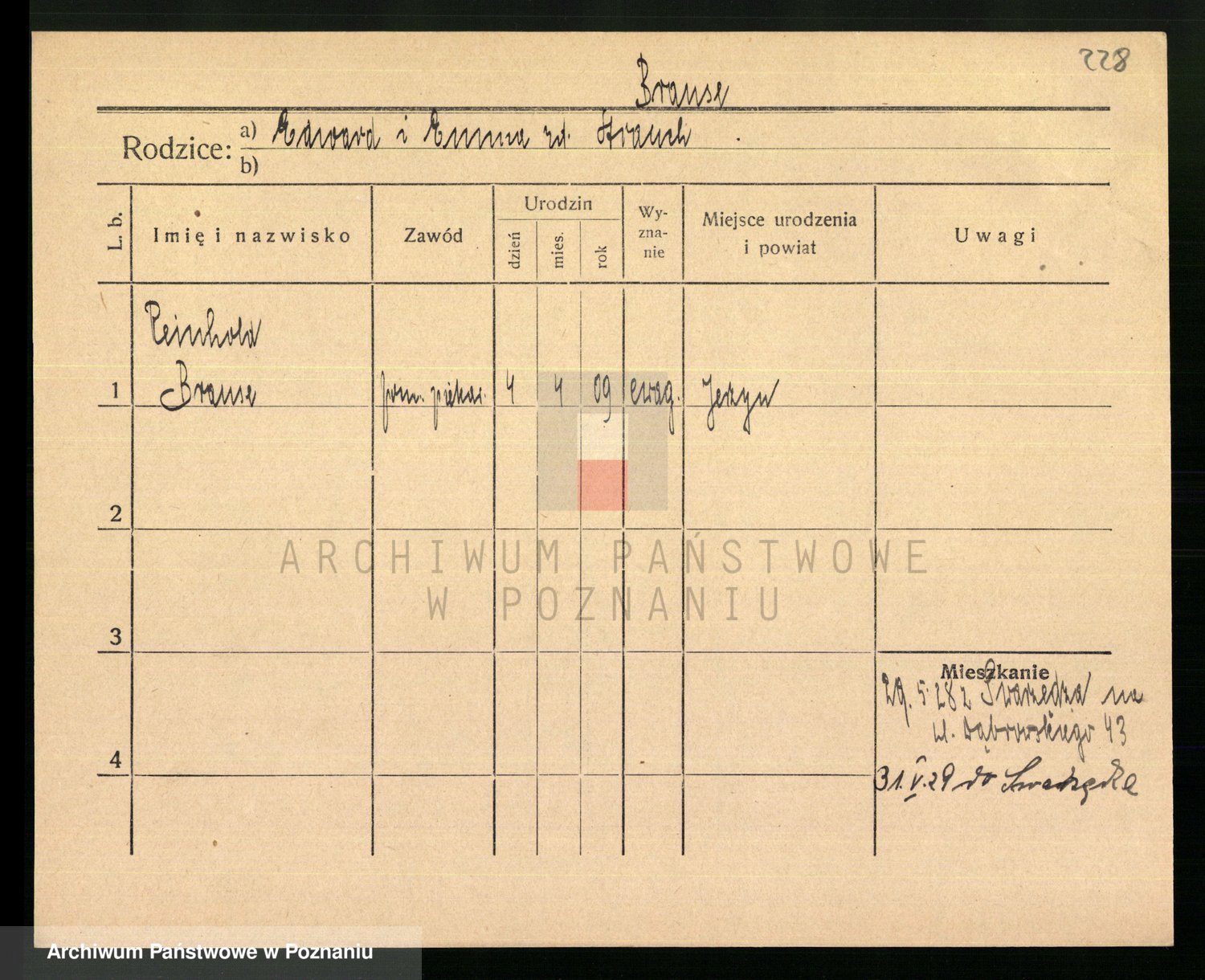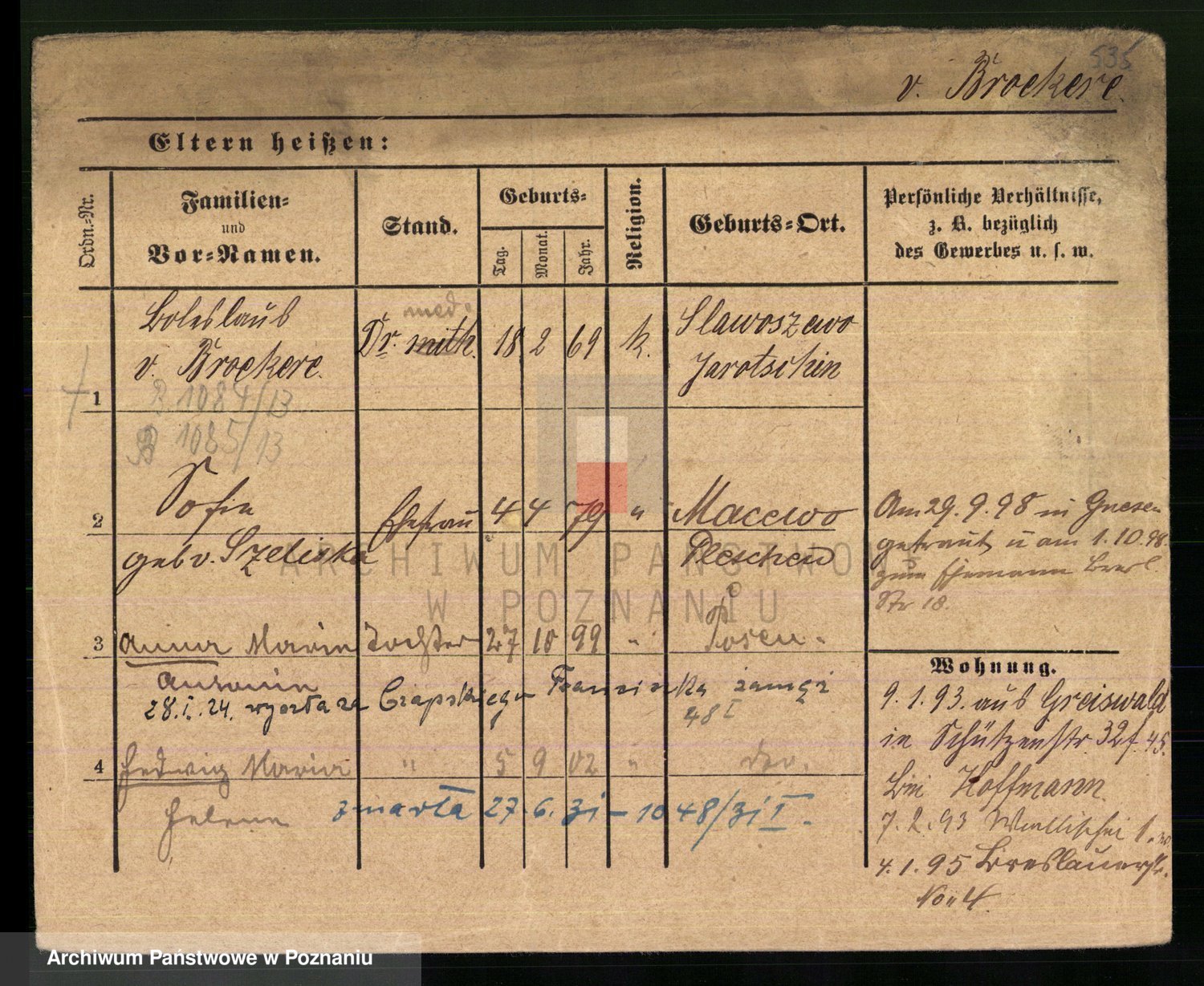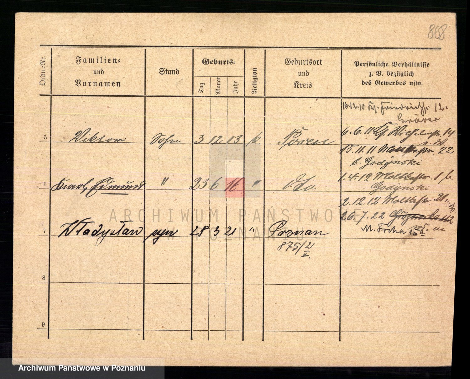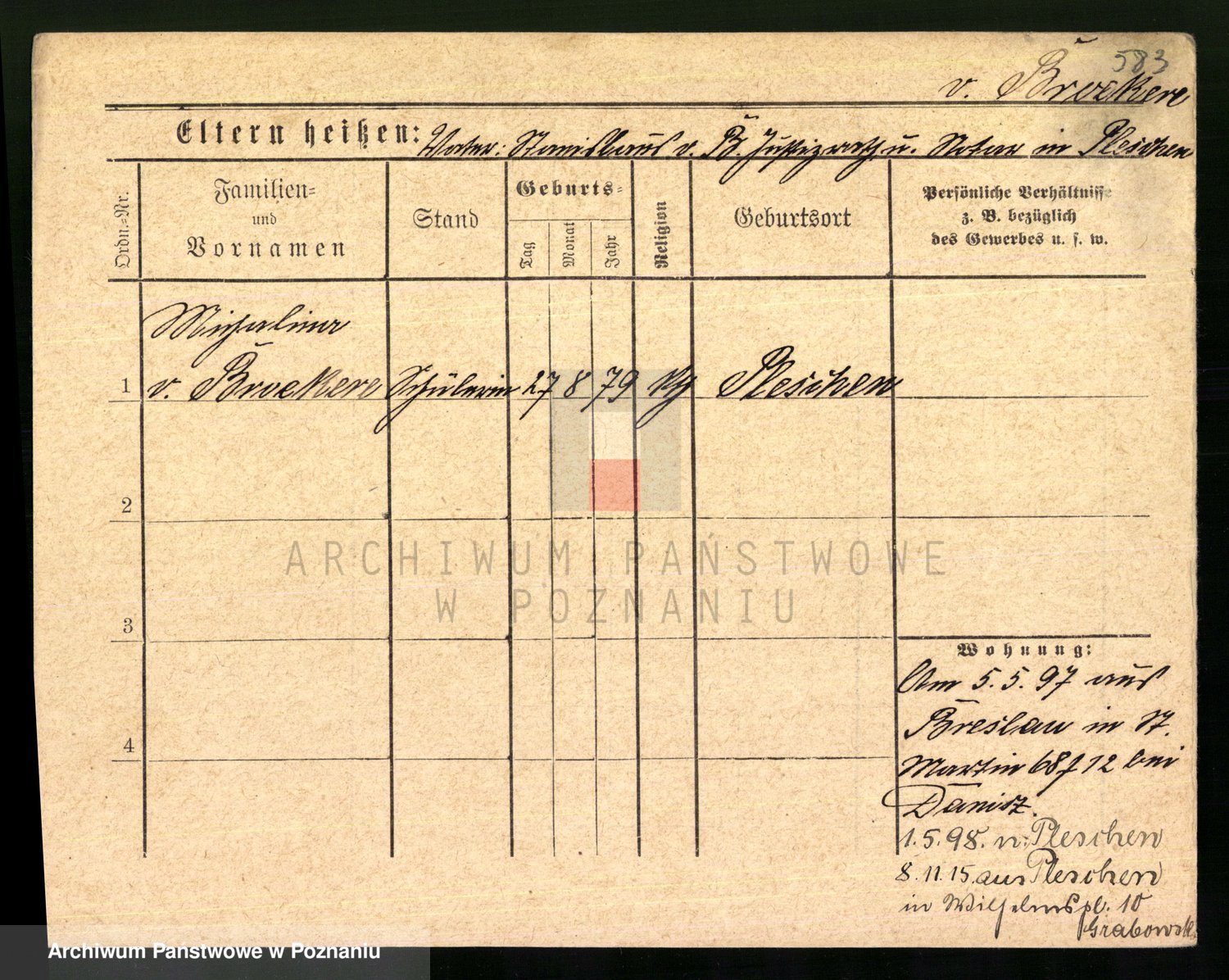 Podgląd karty osobowej dostępny jest po kliknięciu na nazwisko lub ikonkę karty. Można dokonywać powiększenia (ikony na górze) lub przechodzić między kolejnymi skanami (strzałki po bokach).