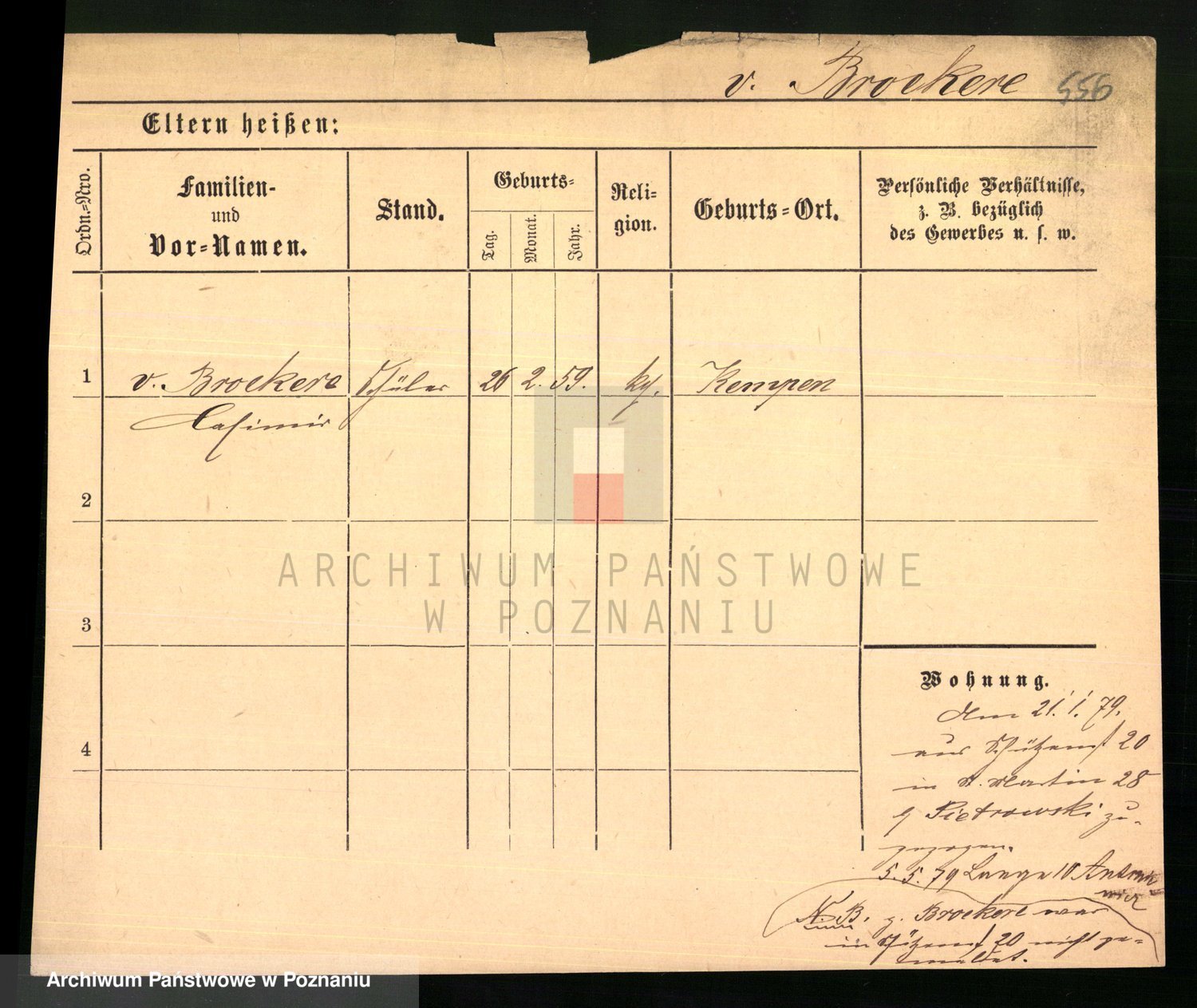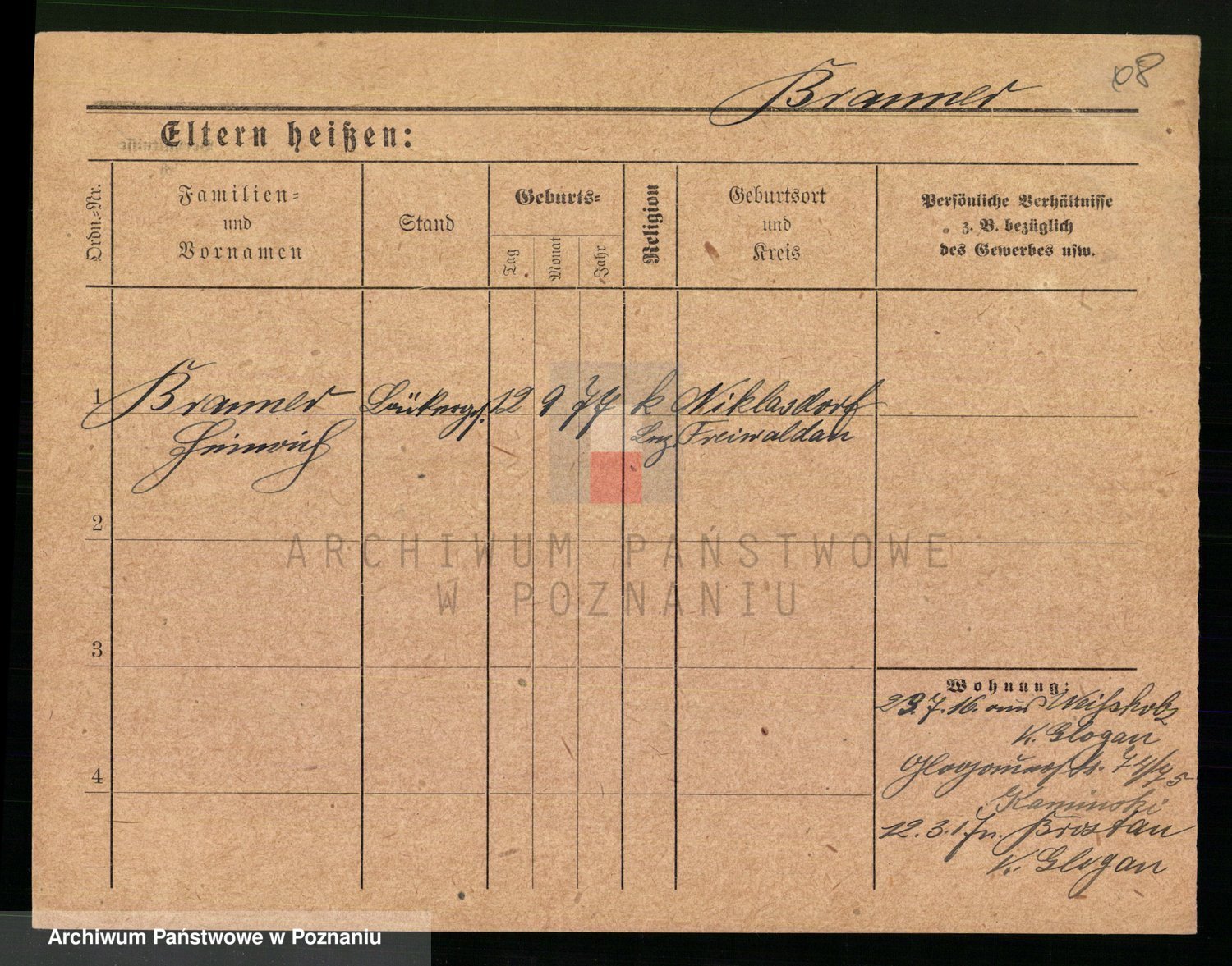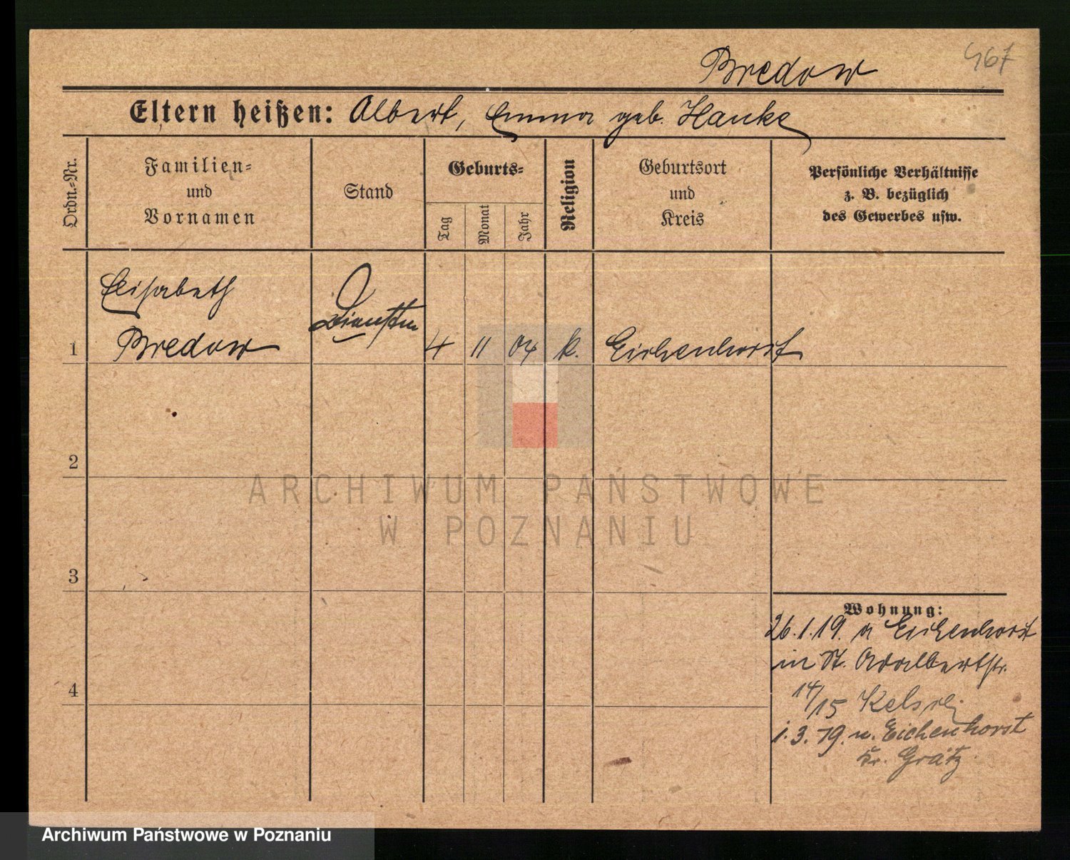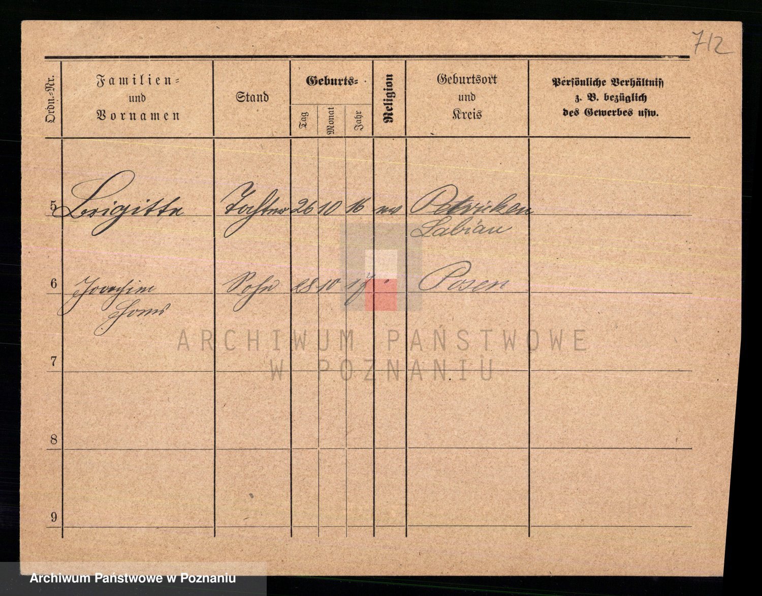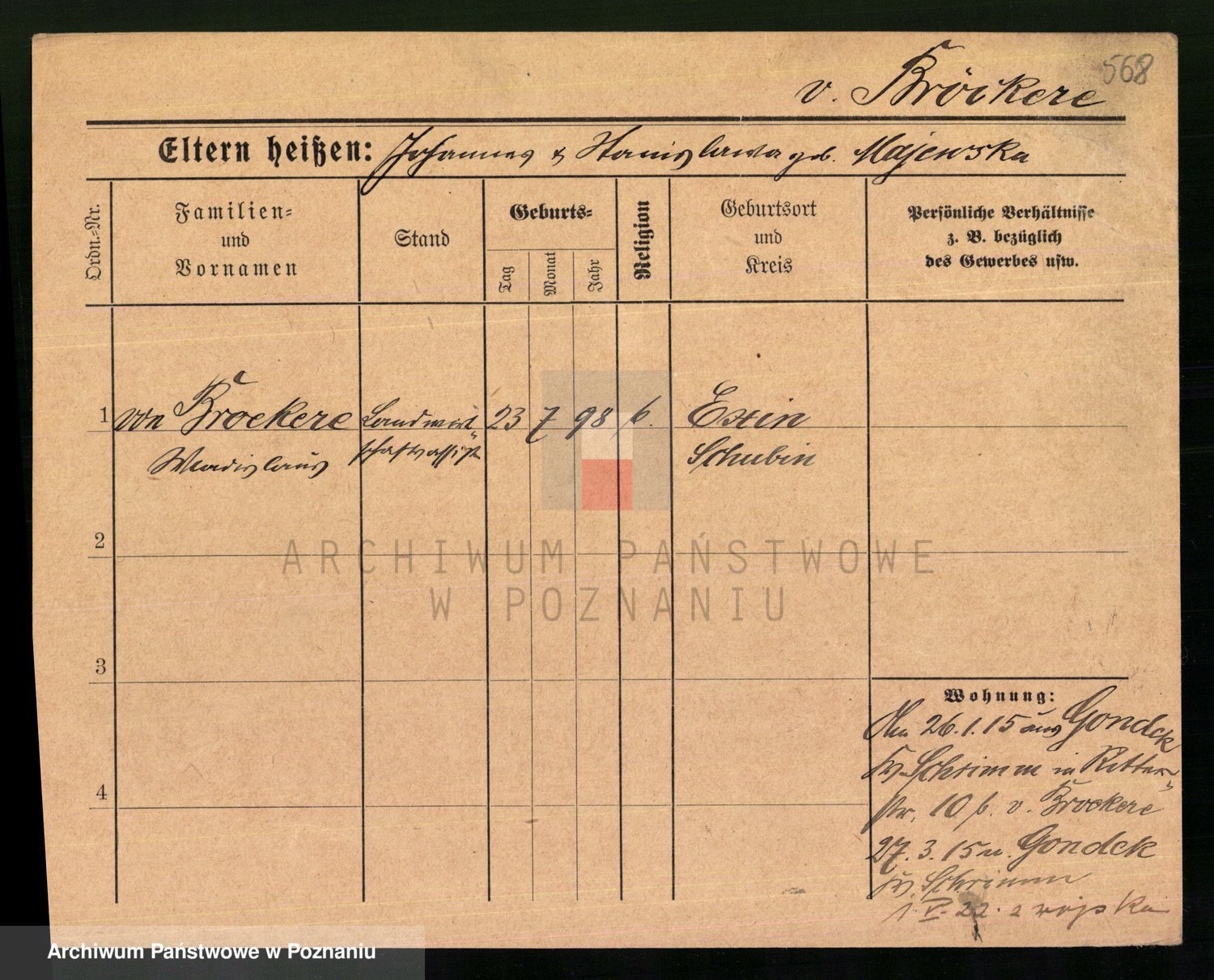 Podgląd karty osobowej dostępny jest po kliknięciu na nazwisko lub ikonkę karty. Można dokonywać powiększenia (ikony na górze) lub przechodzić między kolejnymi skanami (strzałki po bokach).