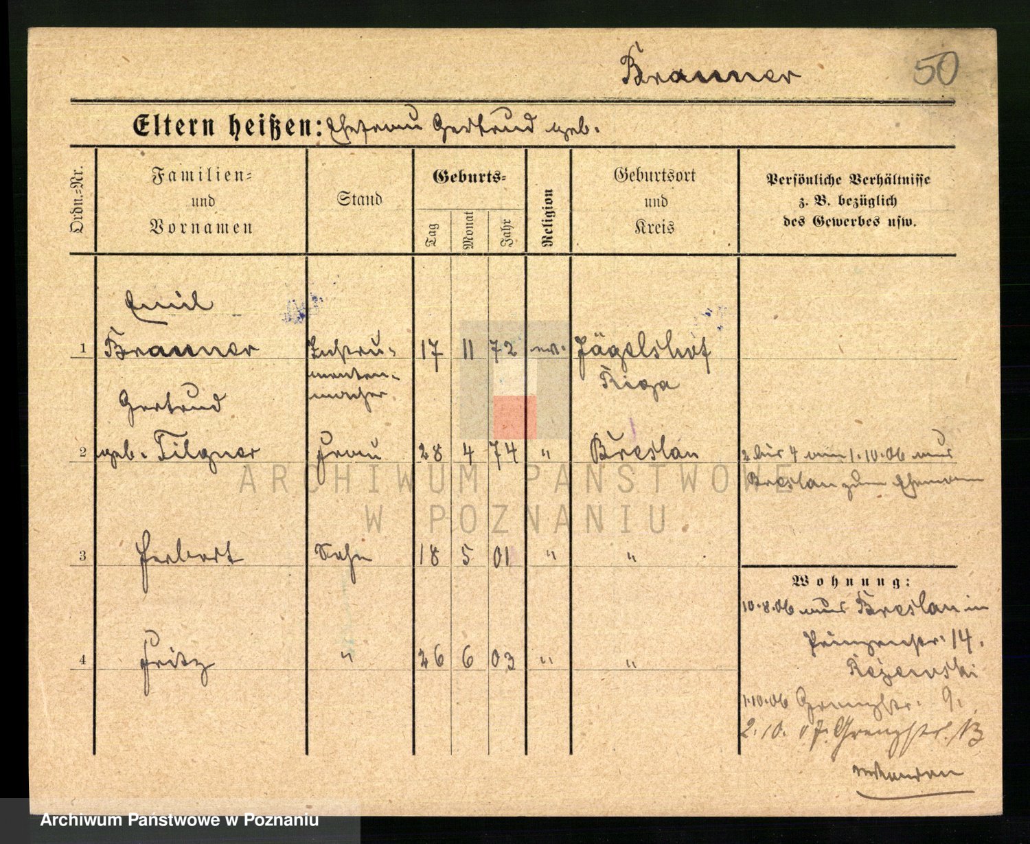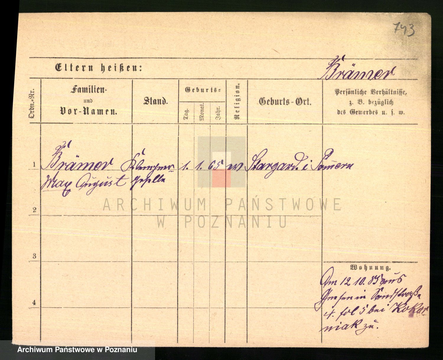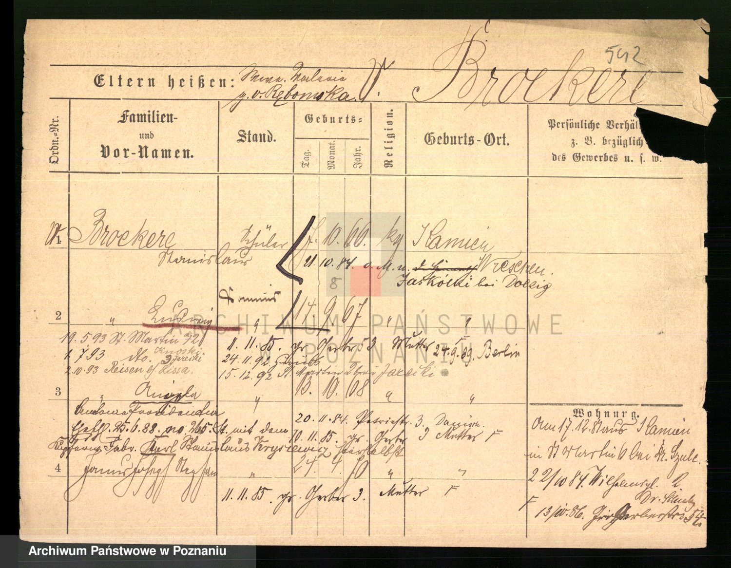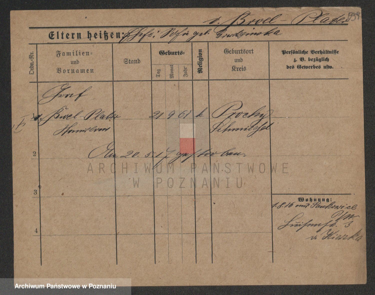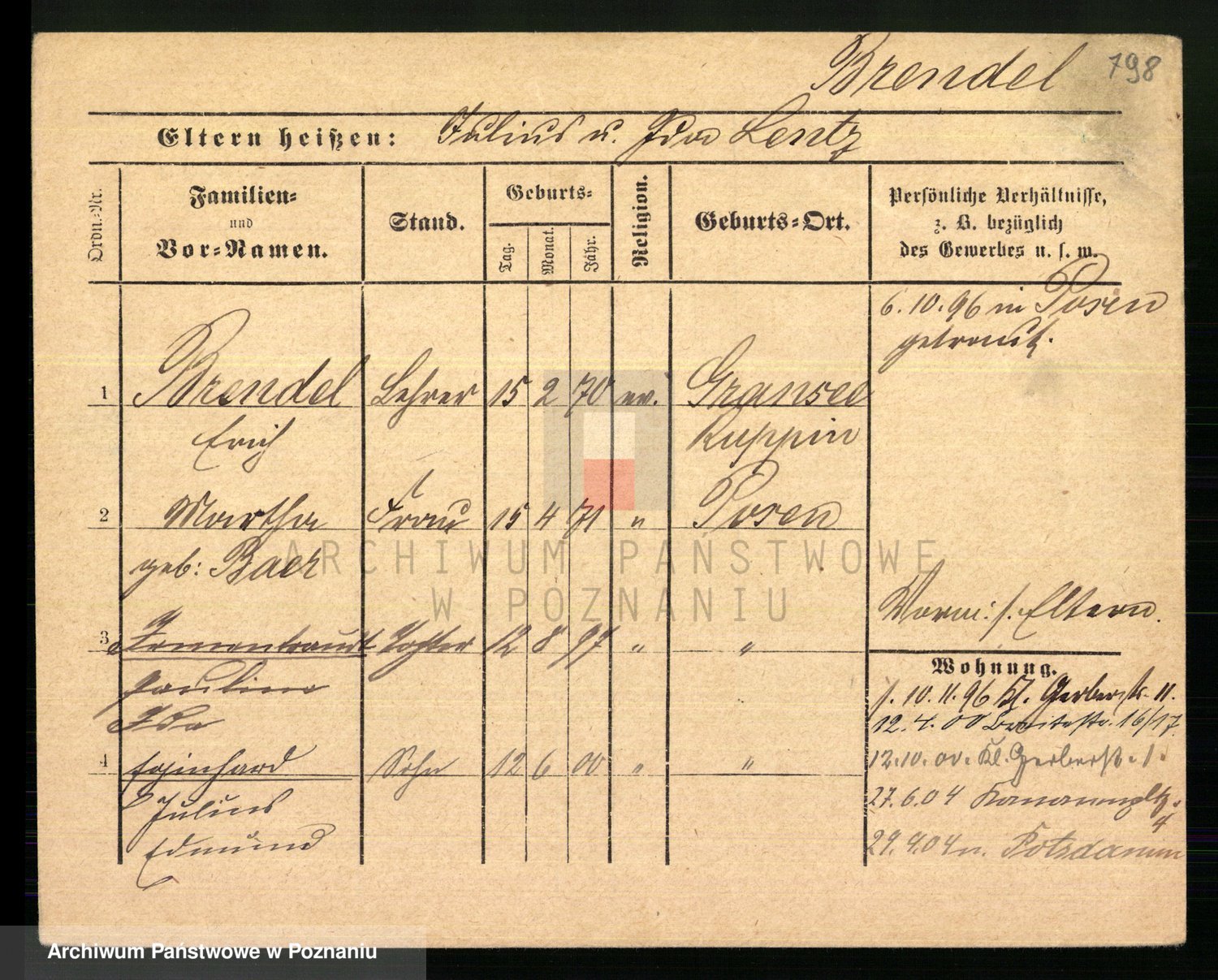 Podgląd karty osobowej dostępny jest po kliknięciu na nazwisko lub ikonkę karty. Można dokonywać powiększenia (ikony na górze) lub przechodzić między kolejnymi skanami (strzałki po bokach).