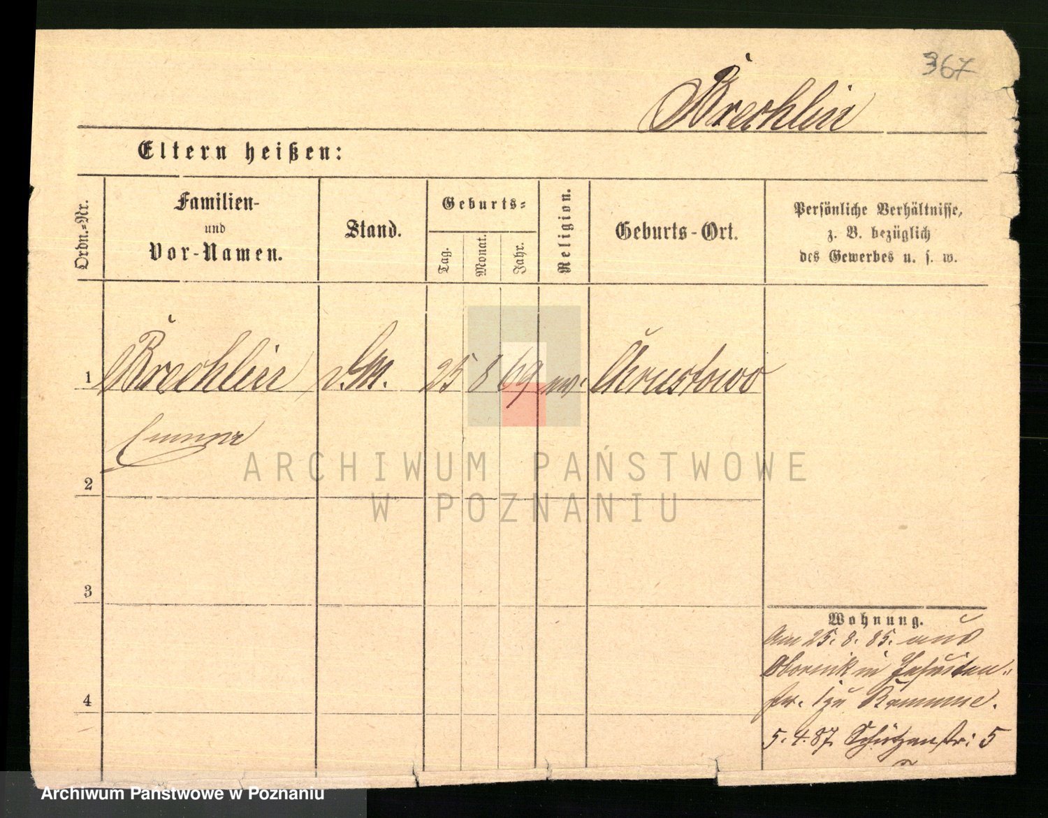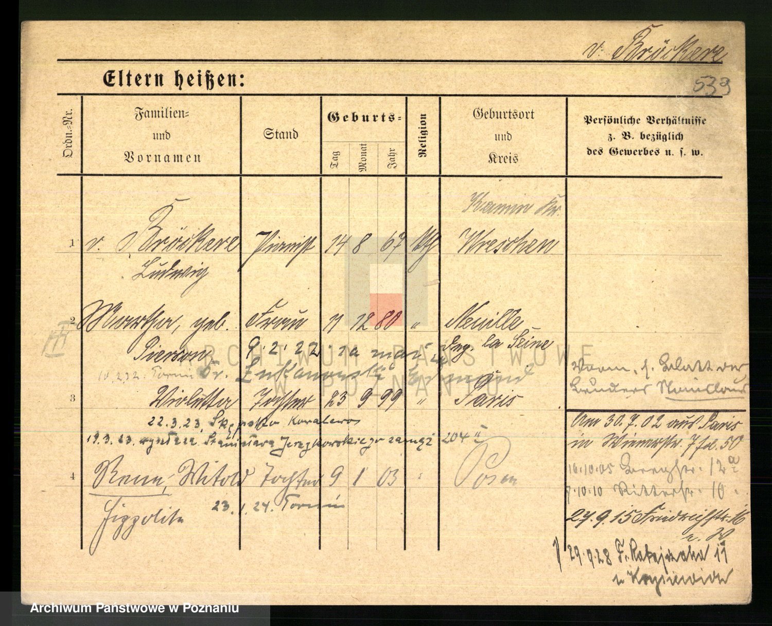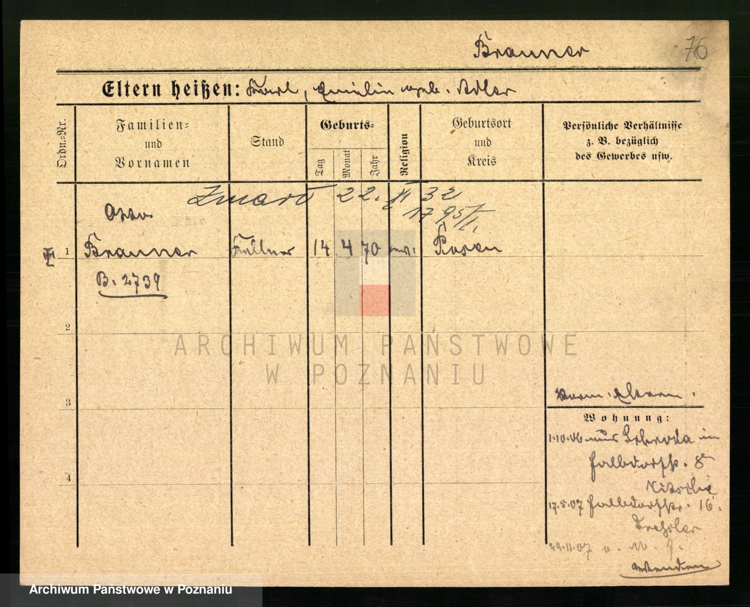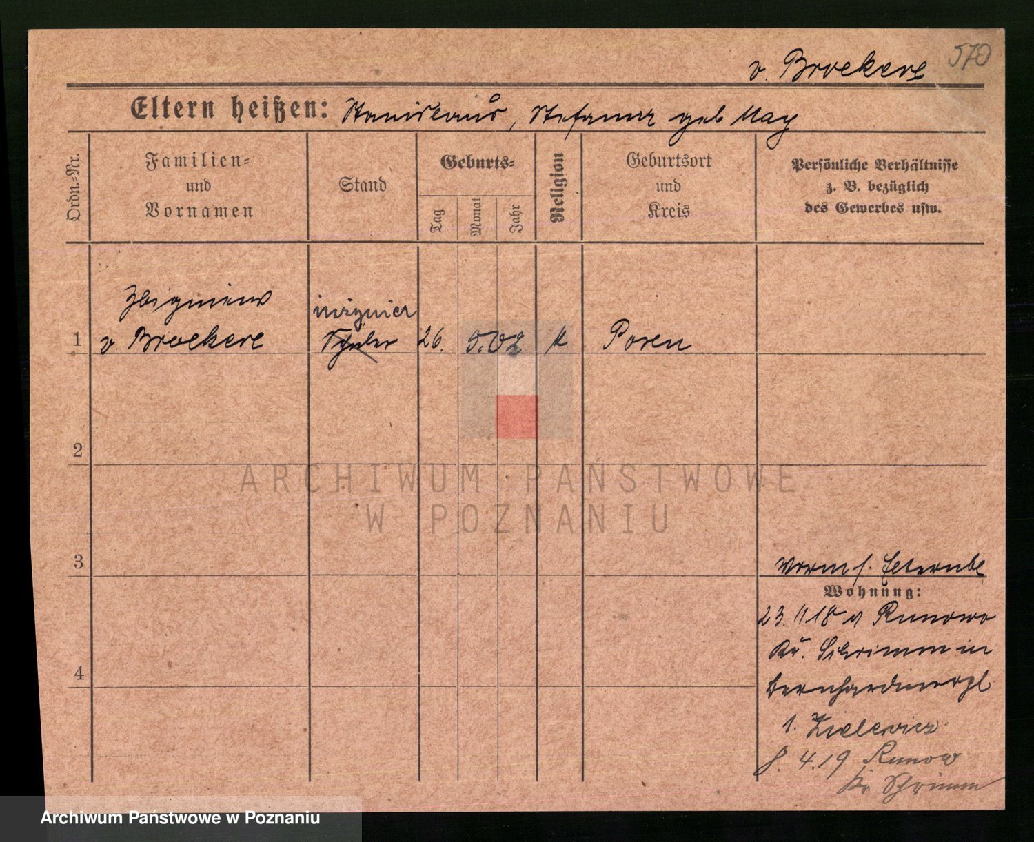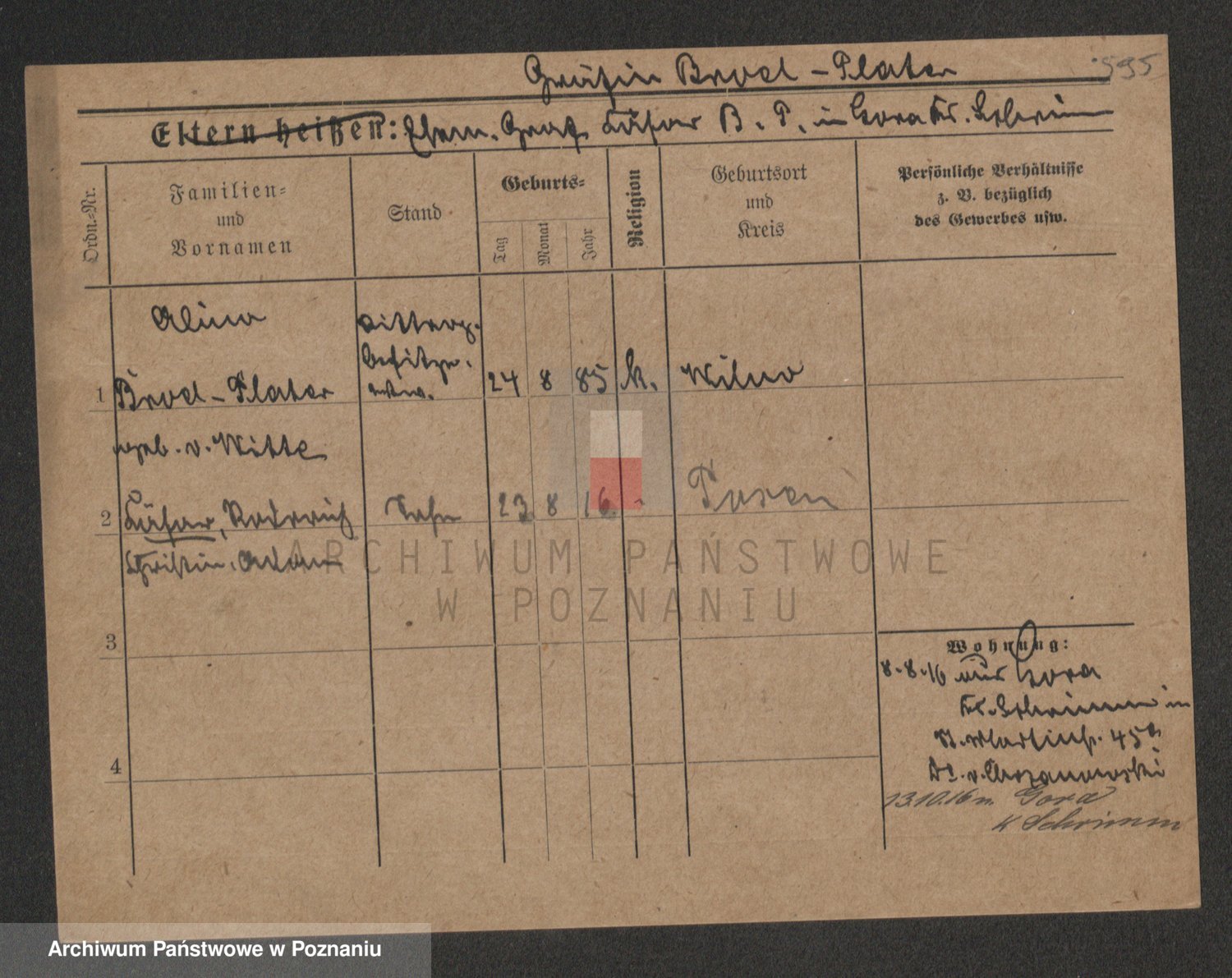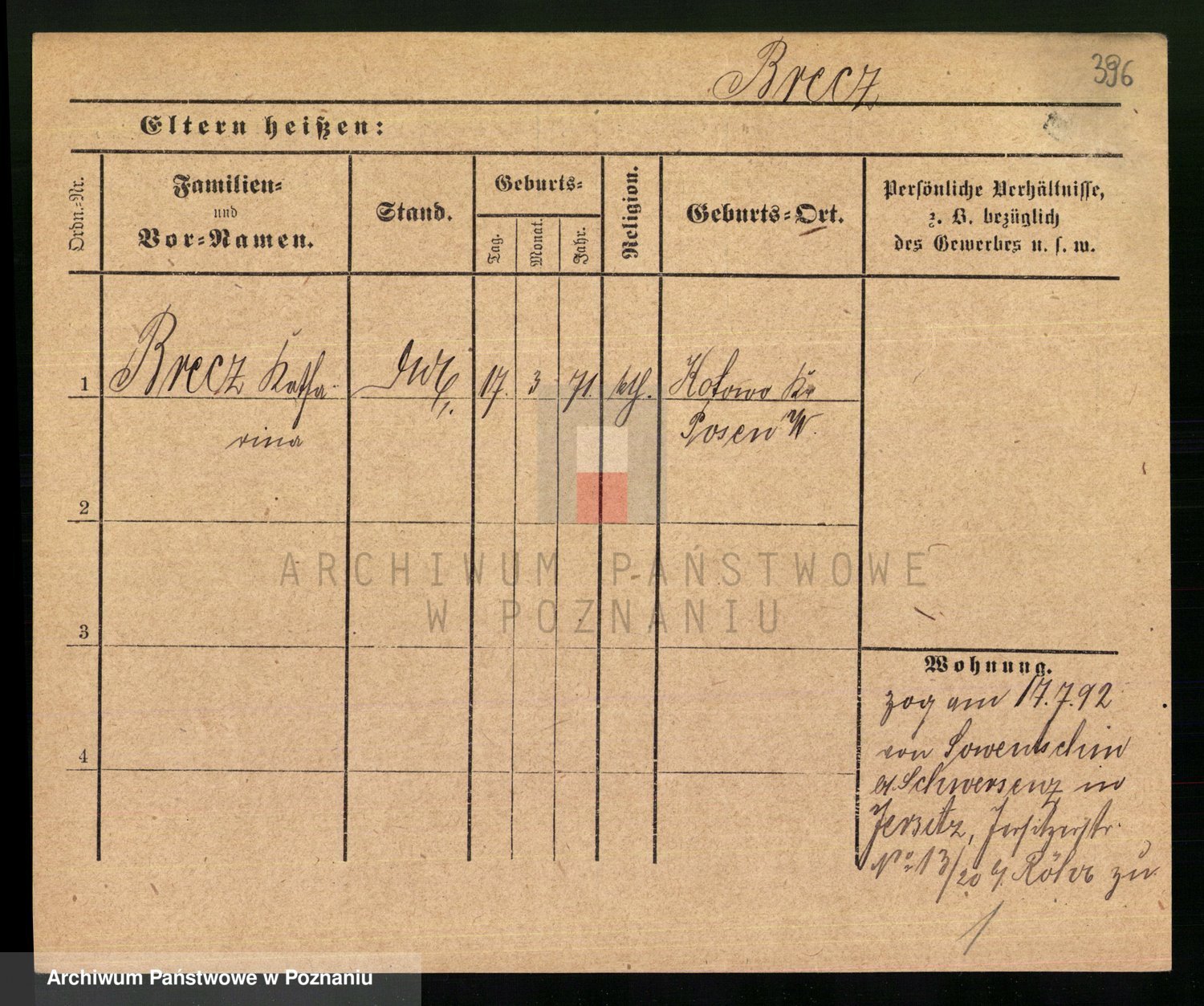 Podgląd karty osobowej dostępny jest po kliknięciu na nazwisko lub ikonkę karty. Można dokonywać powiększenia (ikony na górze) lub przechodzić między kolejnymi skanami (strzałki po bokach).
