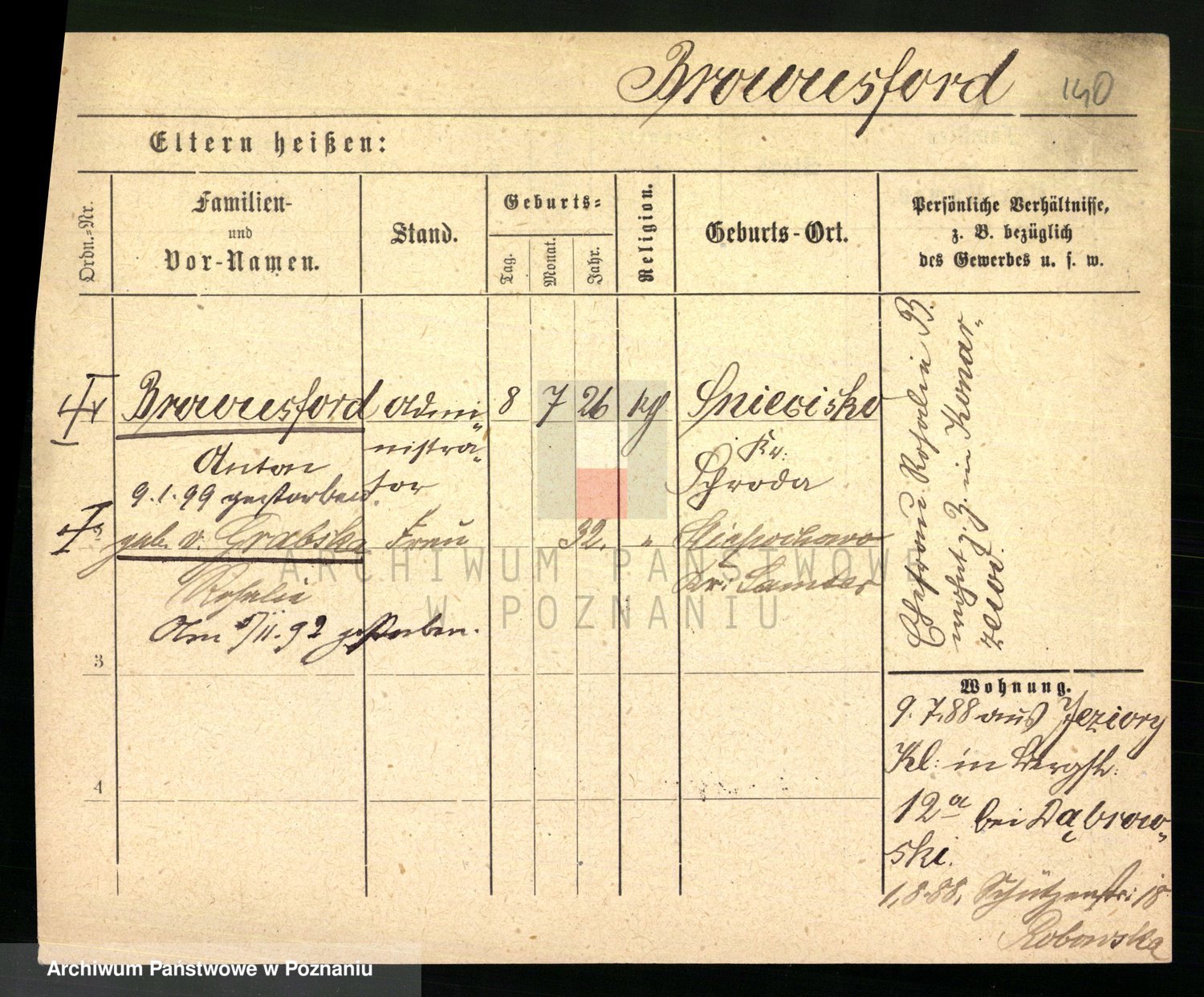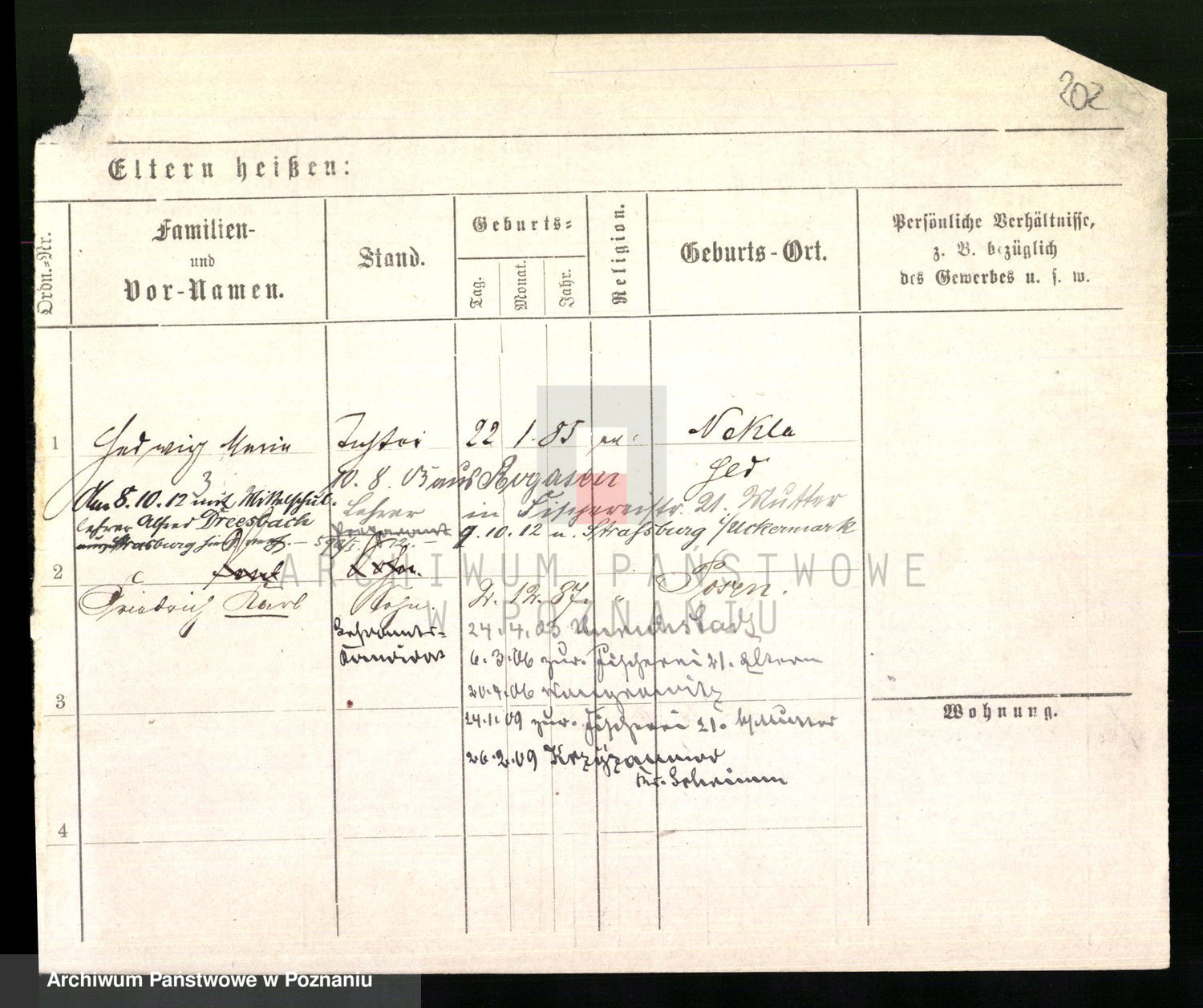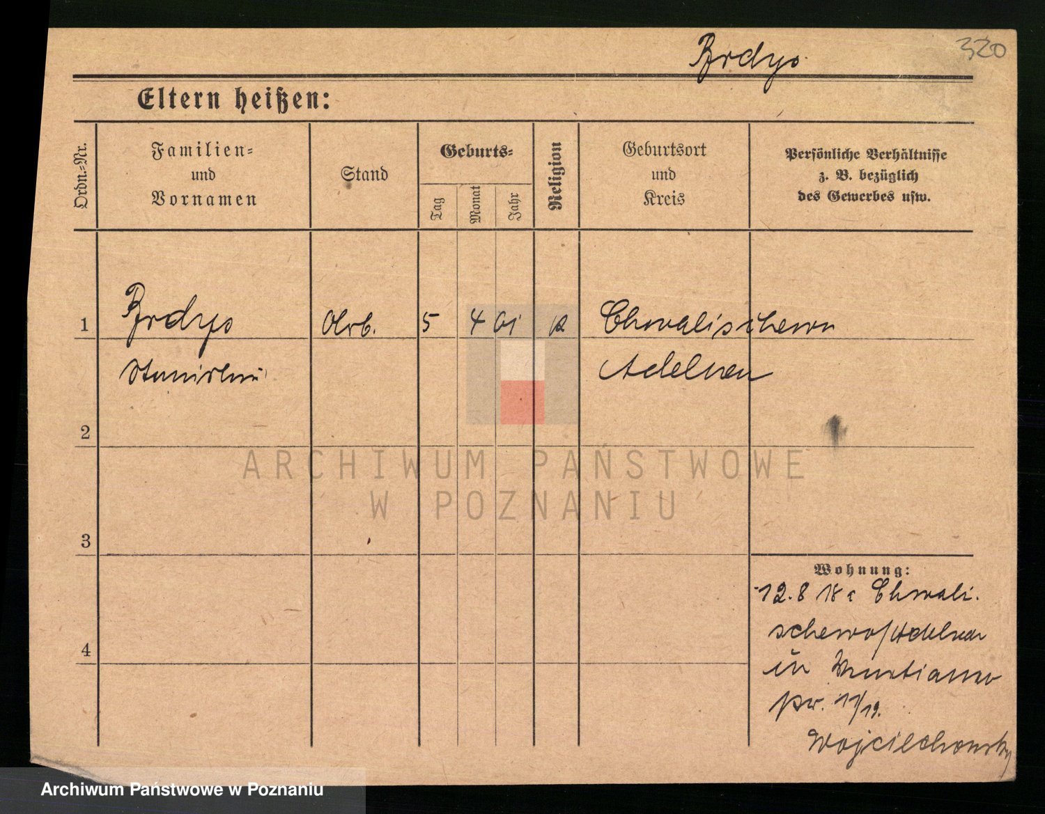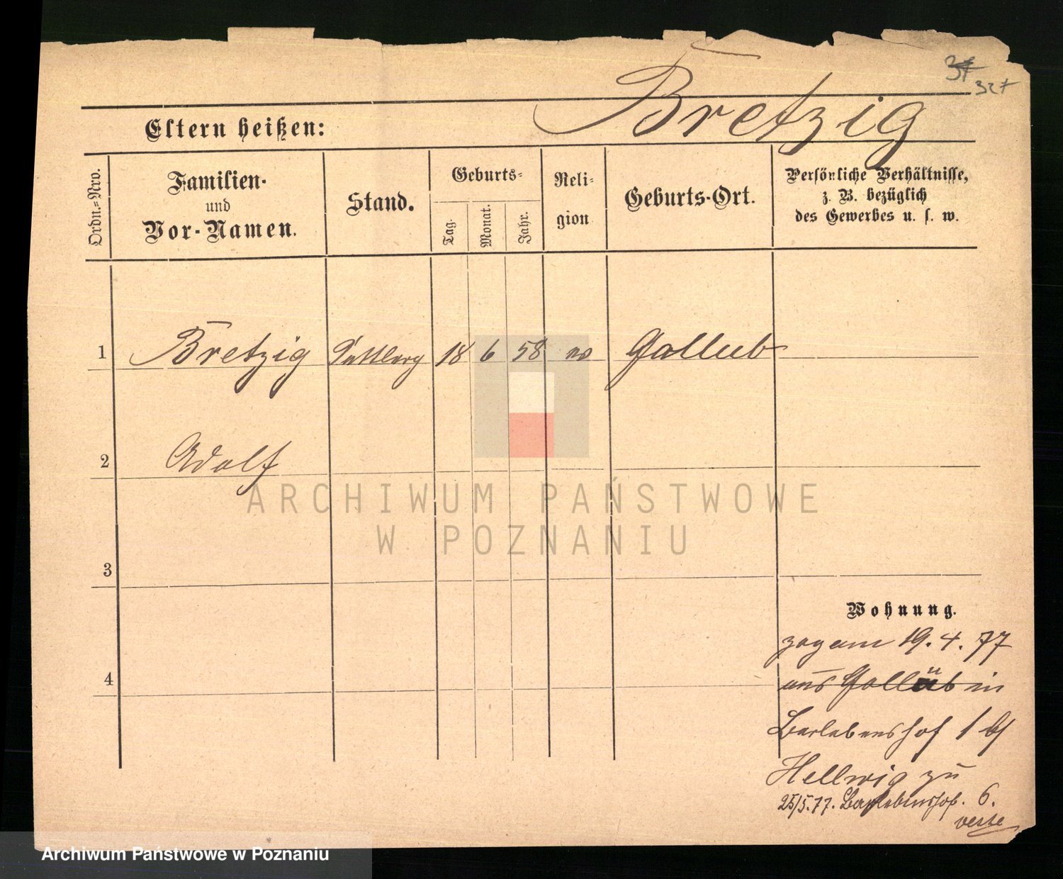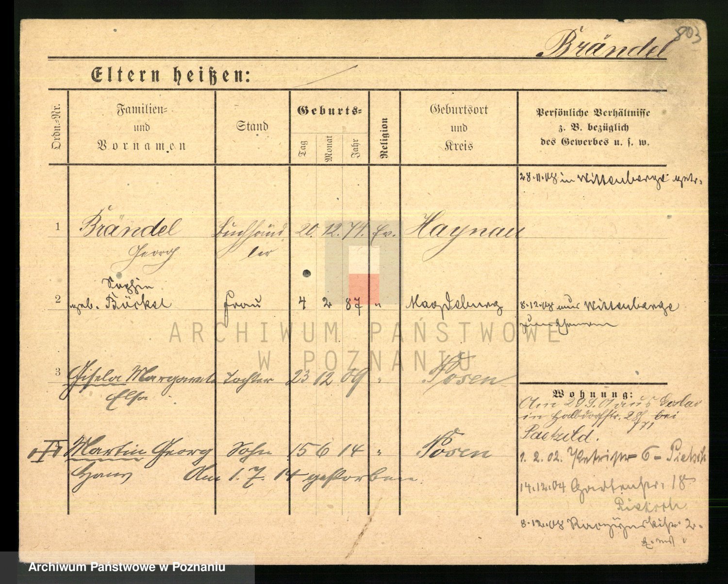 Podgląd karty osobowej dostępny jest po kliknięciu na nazwisko lub ikonkę karty. Można dokonywać powiększenia (ikony na górze) lub przechodzić między kolejnymi skanami (strzałki po bokach).