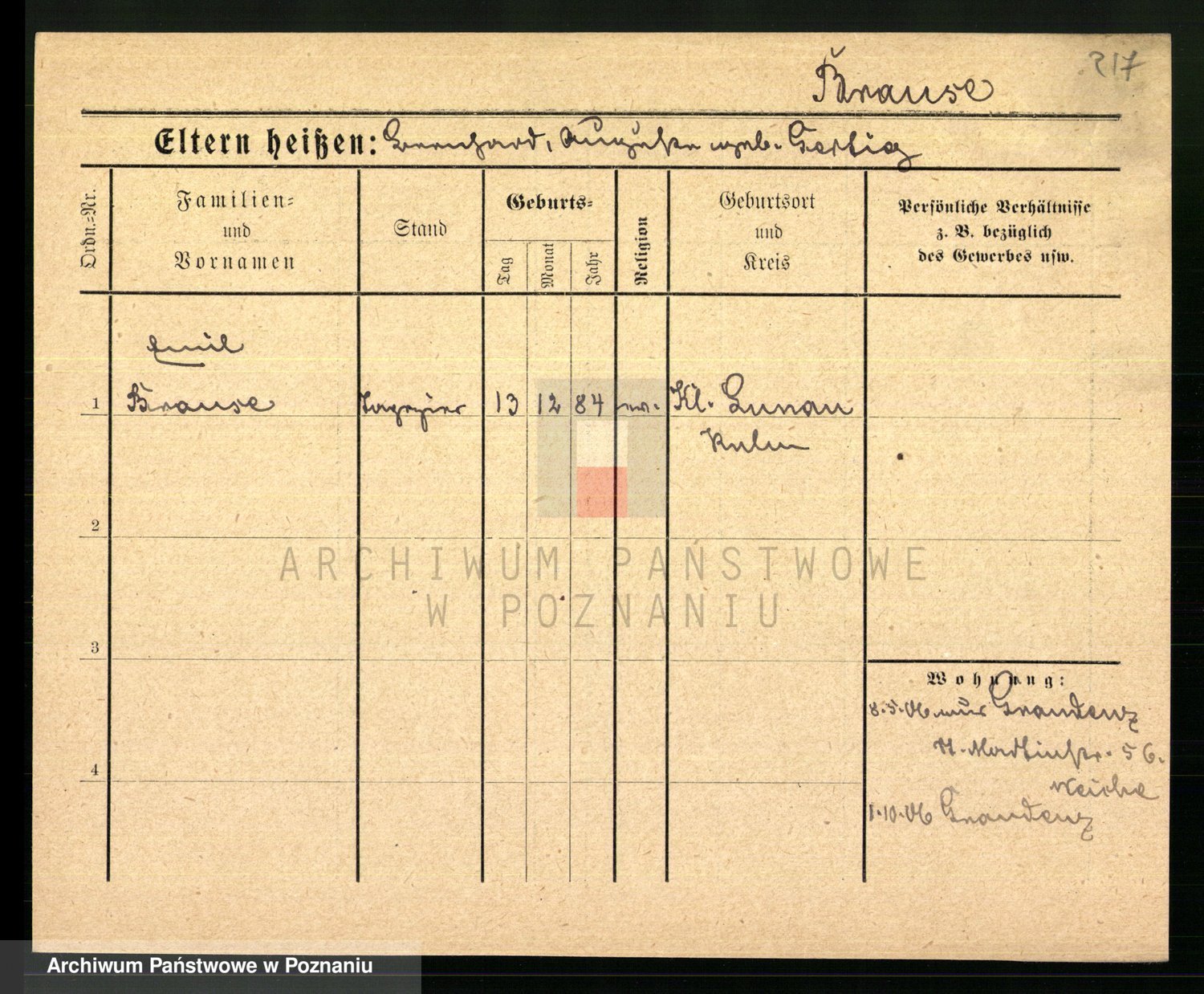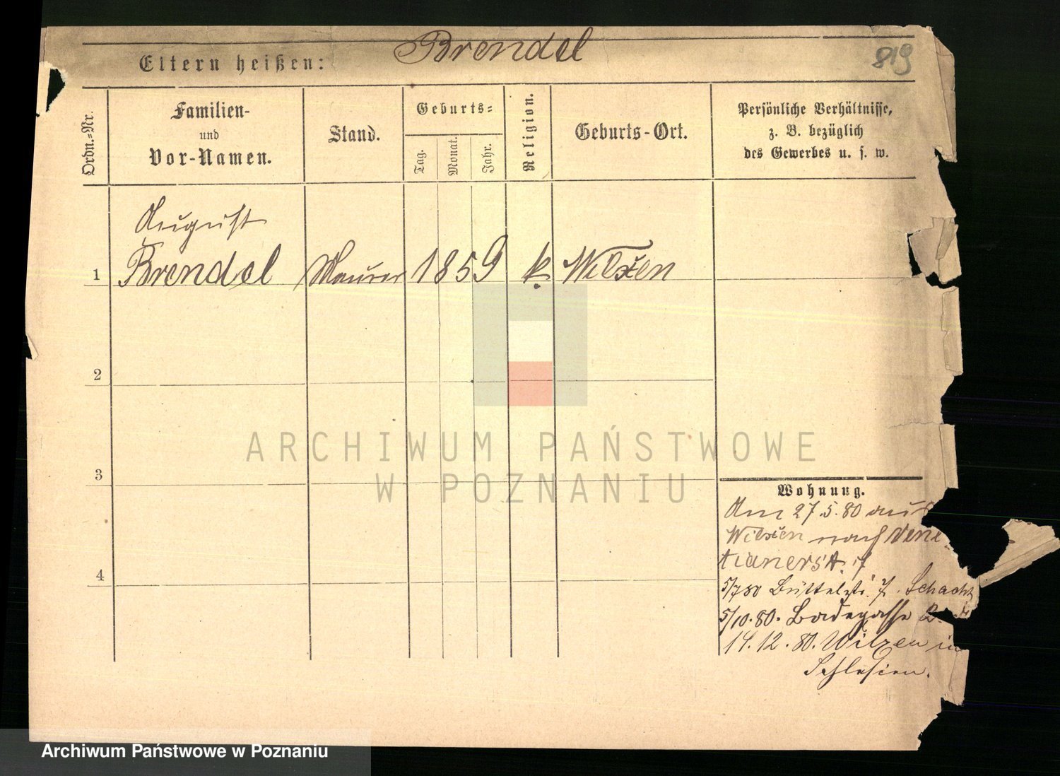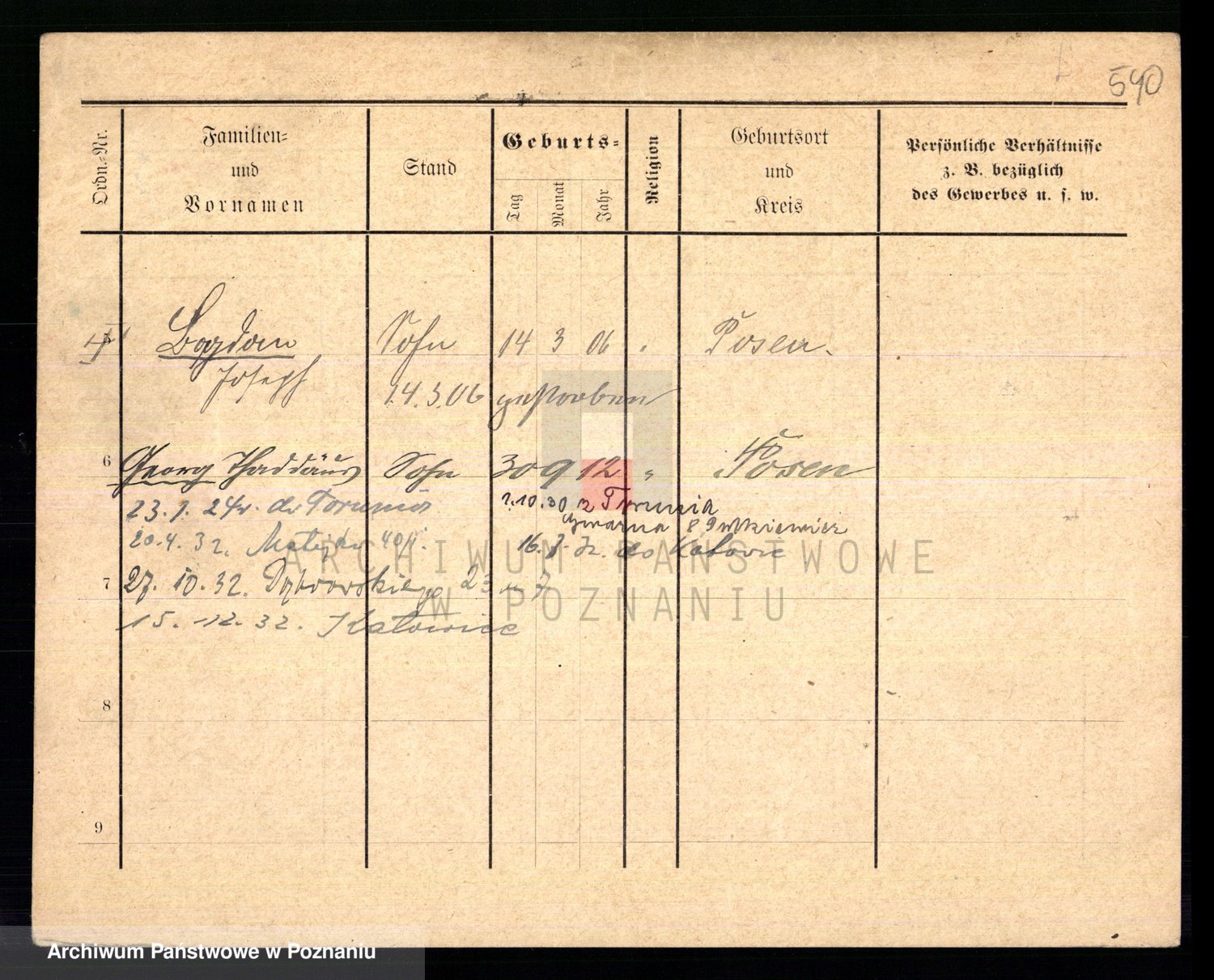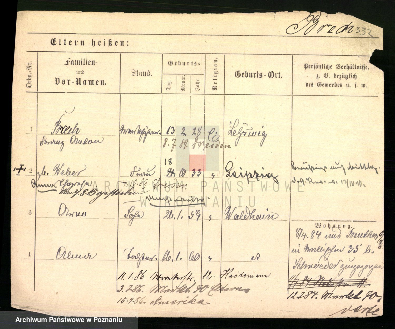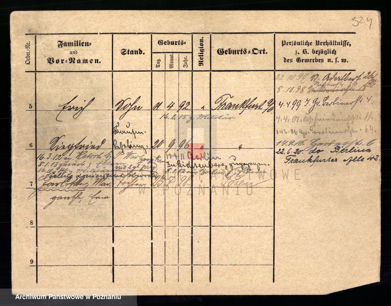 Podgląd karty osobowej dostępny jest po kliknięciu na nazwisko lub ikonkę karty. Można dokonywać powiększenia (ikony na górze) lub przechodzić między kolejnymi skanami (strzałki po bokach).