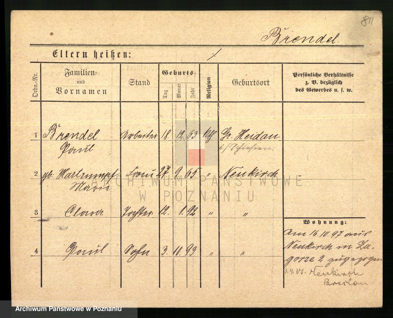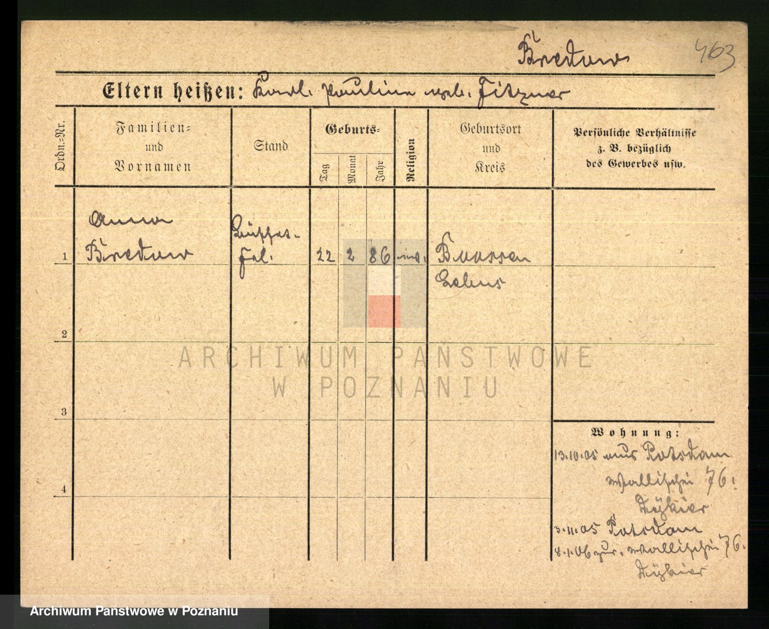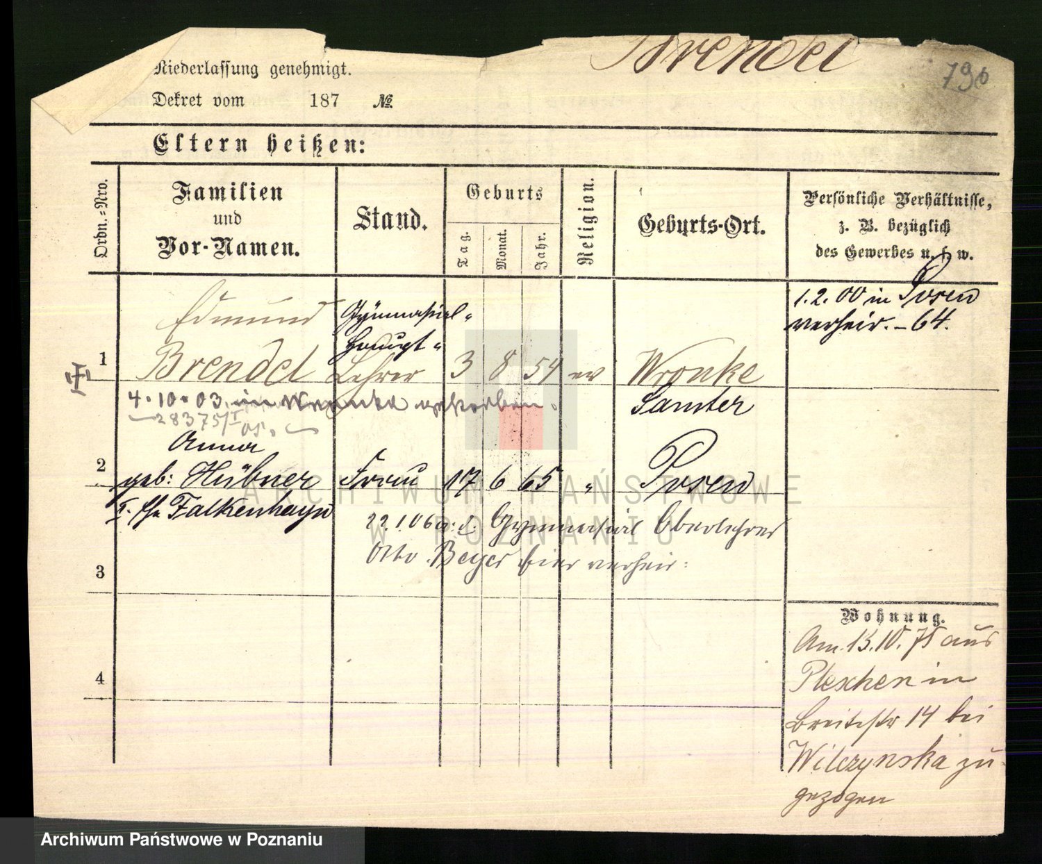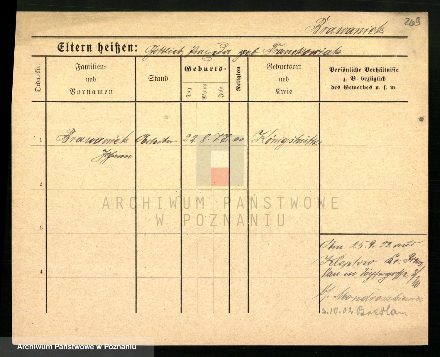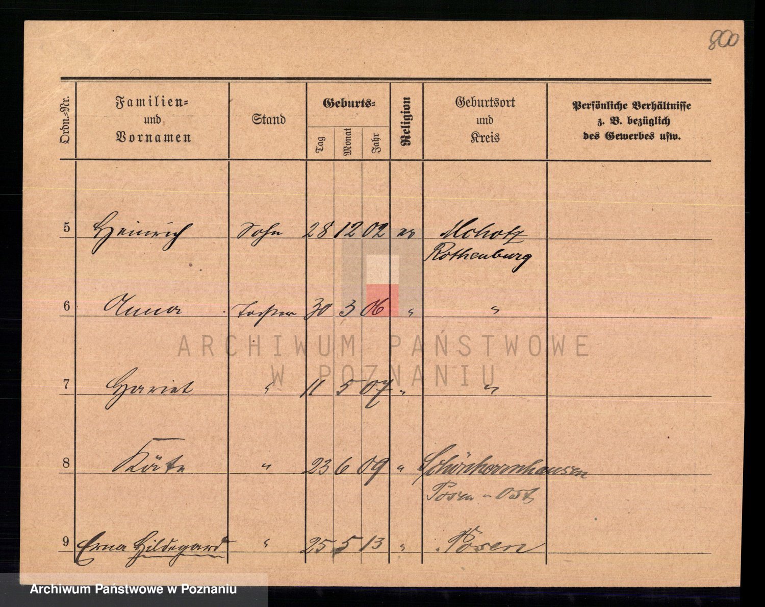 Podgląd karty osobowej dostępny jest po kliknięciu na nazwisko lub ikonkę karty. Można dokonywać powiększenia (ikony na górze) lub przechodzić między kolejnymi skanami (strzałki po bokach).