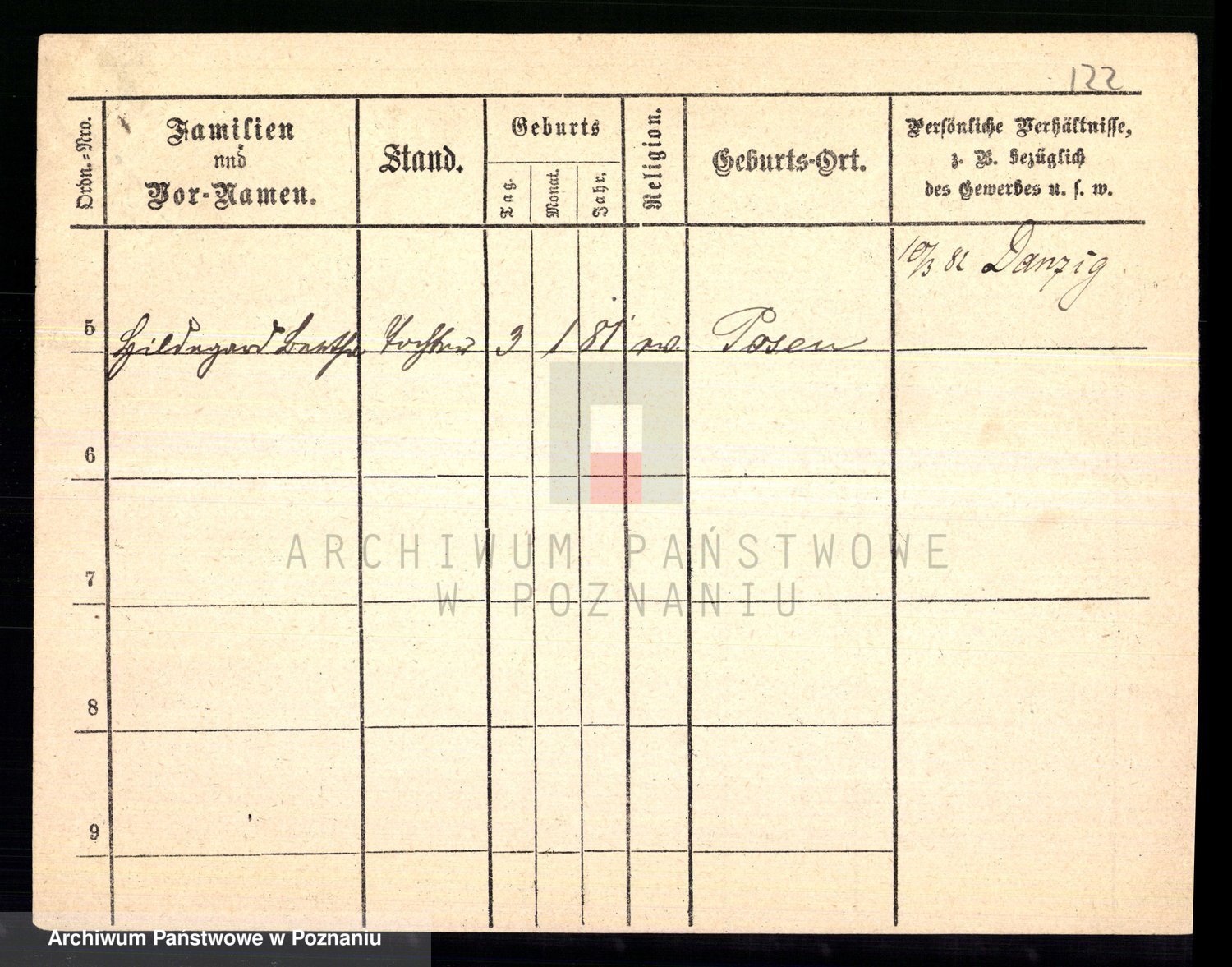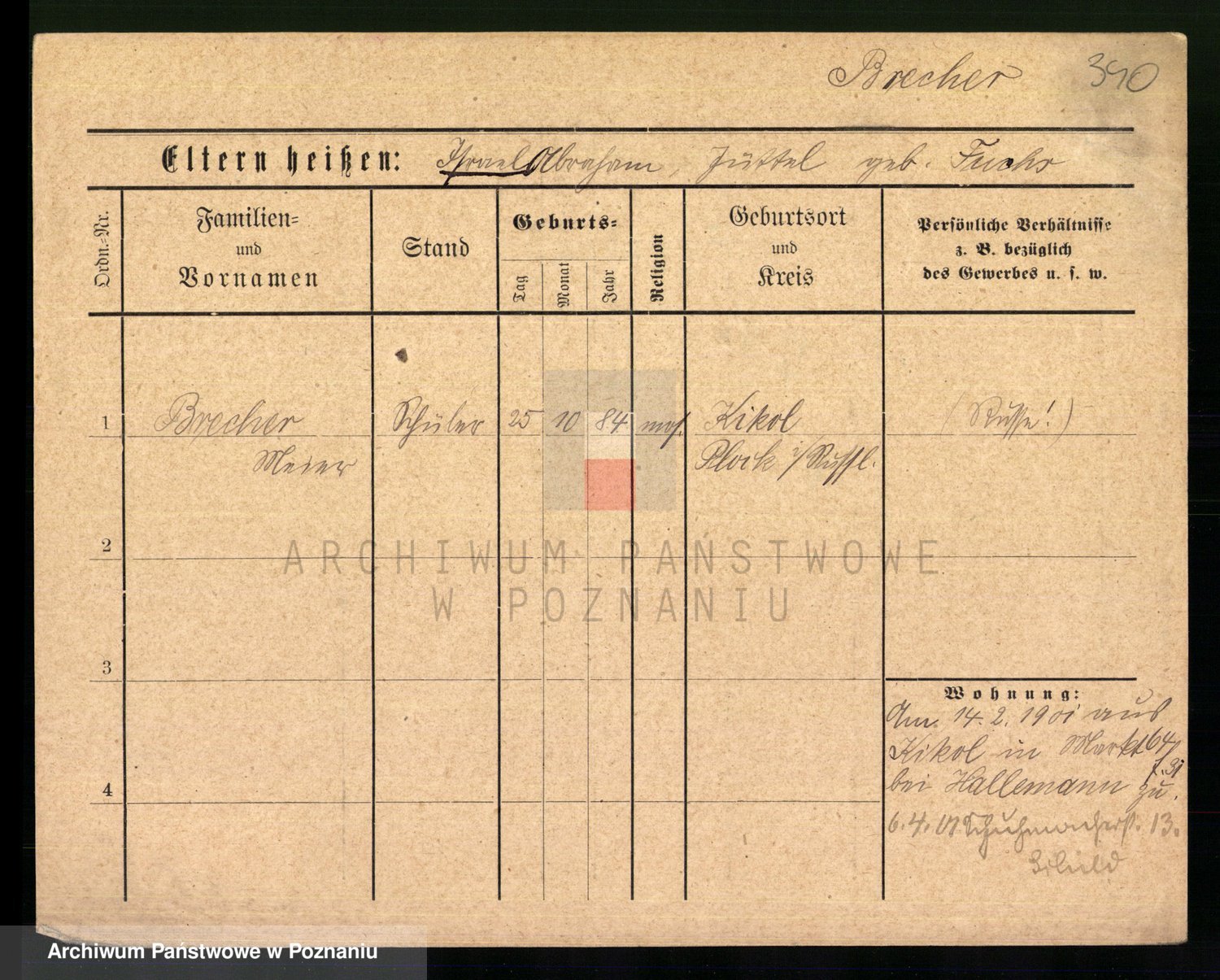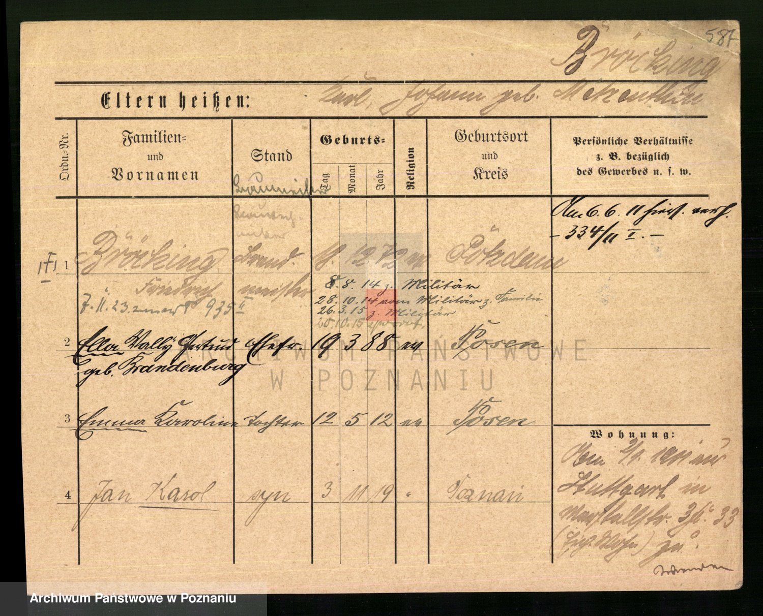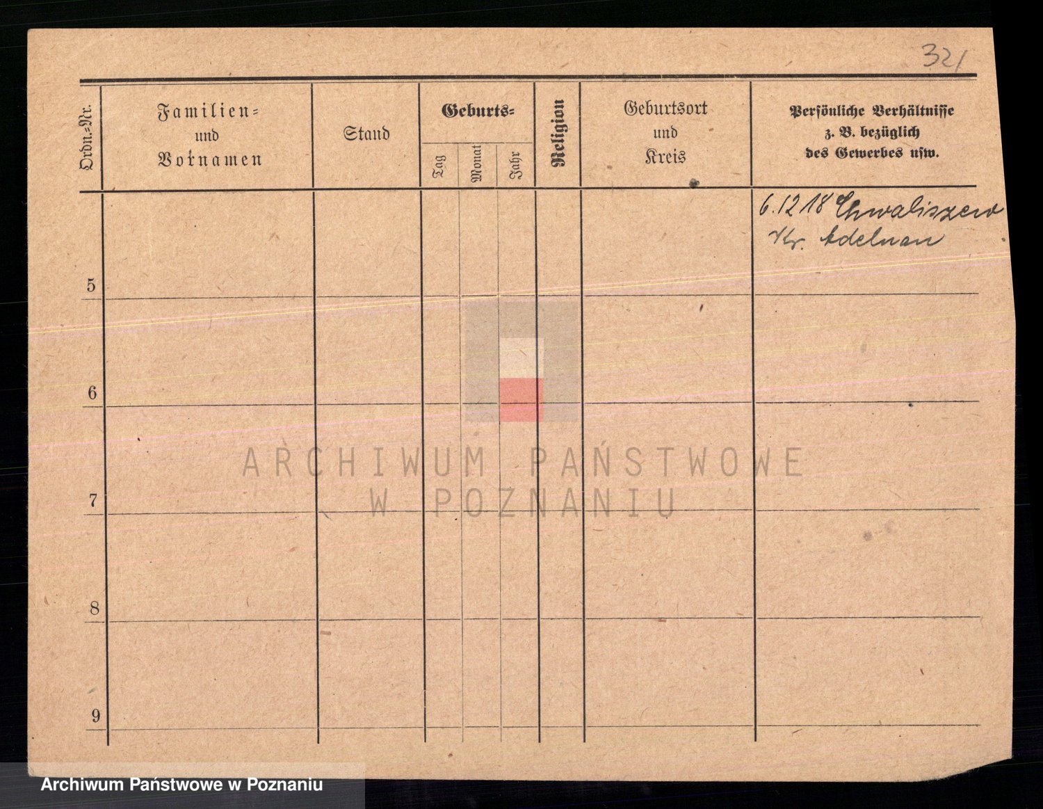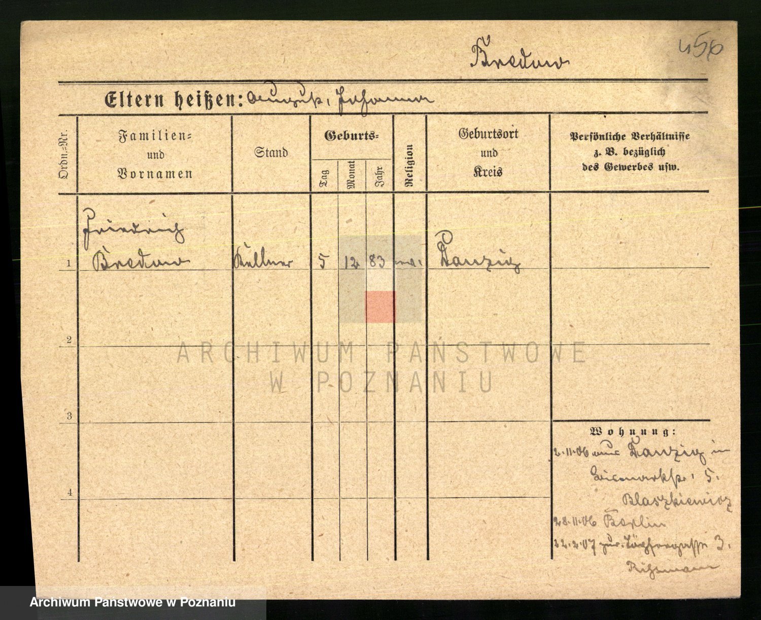 Podgląd karty osobowej dostępny jest po kliknięciu na nazwisko lub ikonkę karty. Można dokonywać powiększenia (ikony na górze) lub przechodzić między kolejnymi skanami (strzałki po bokach).