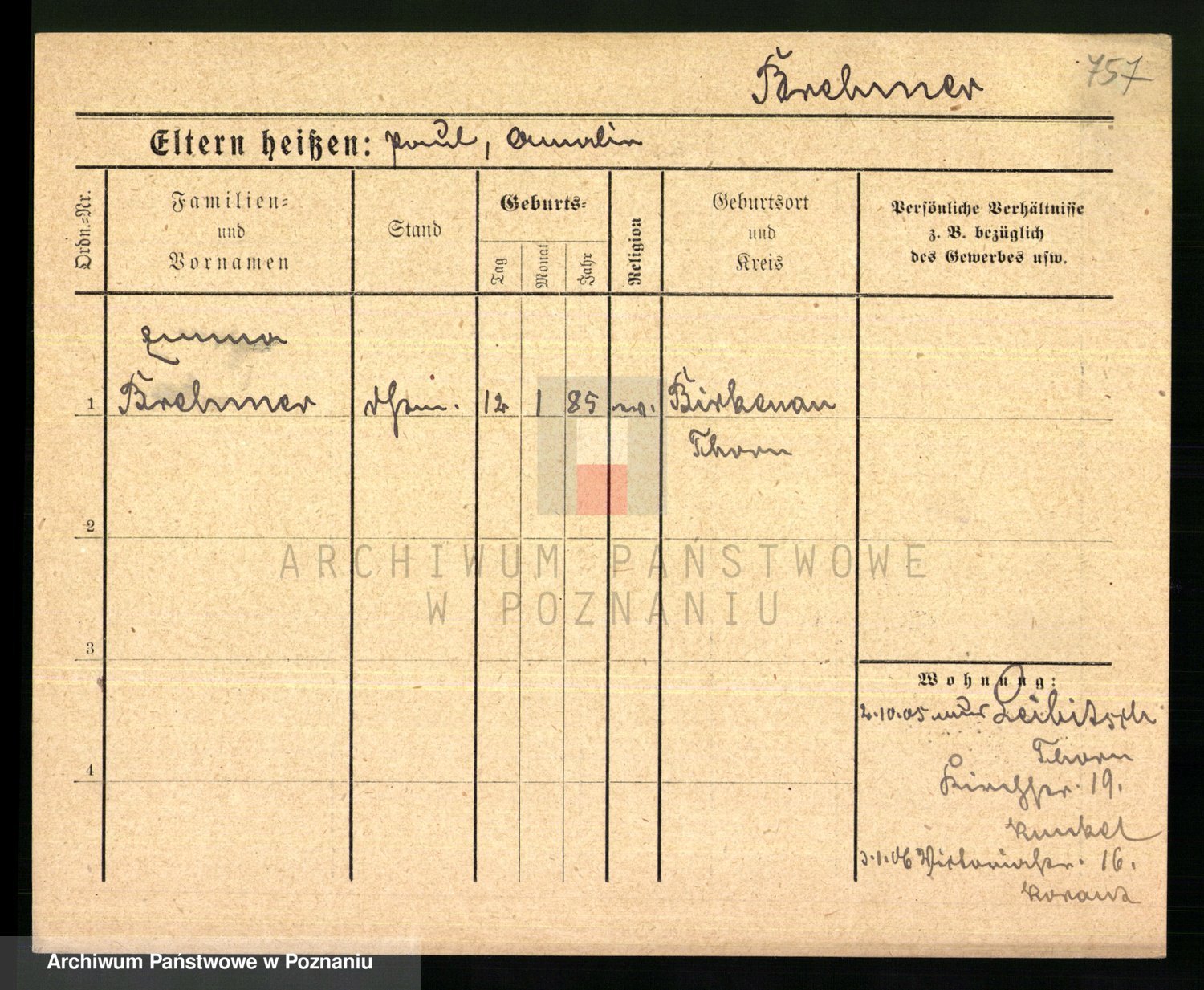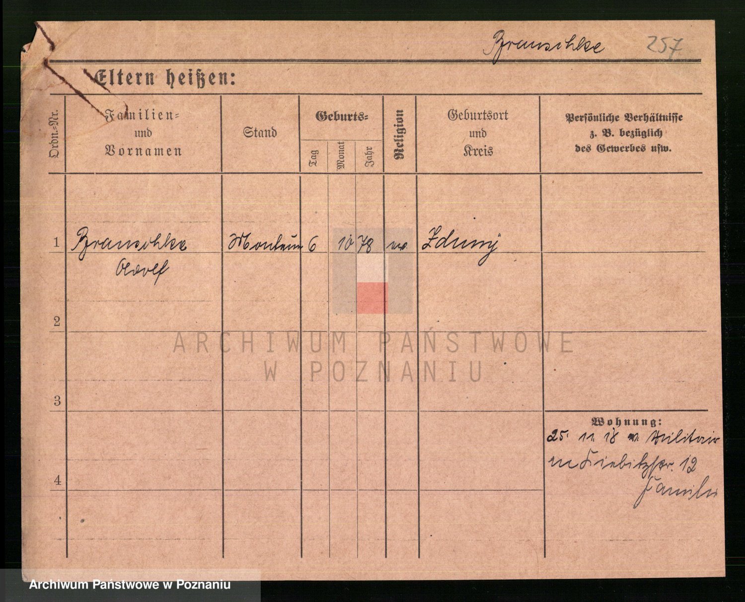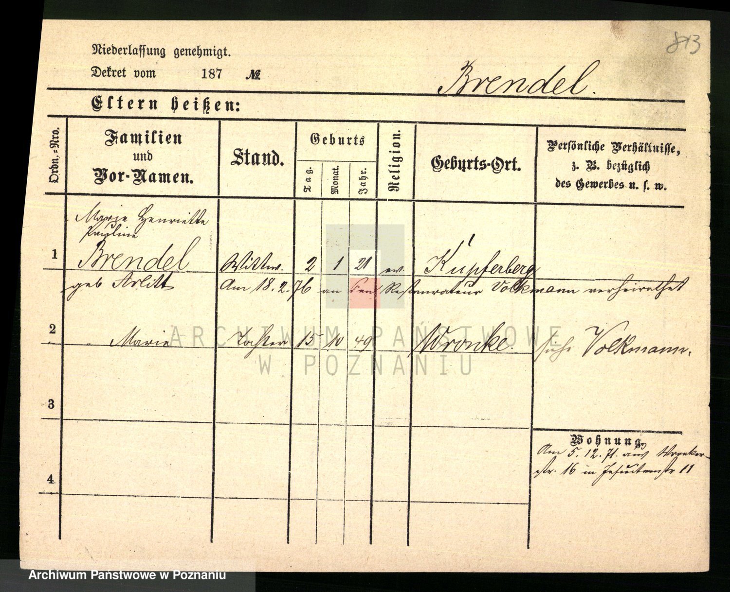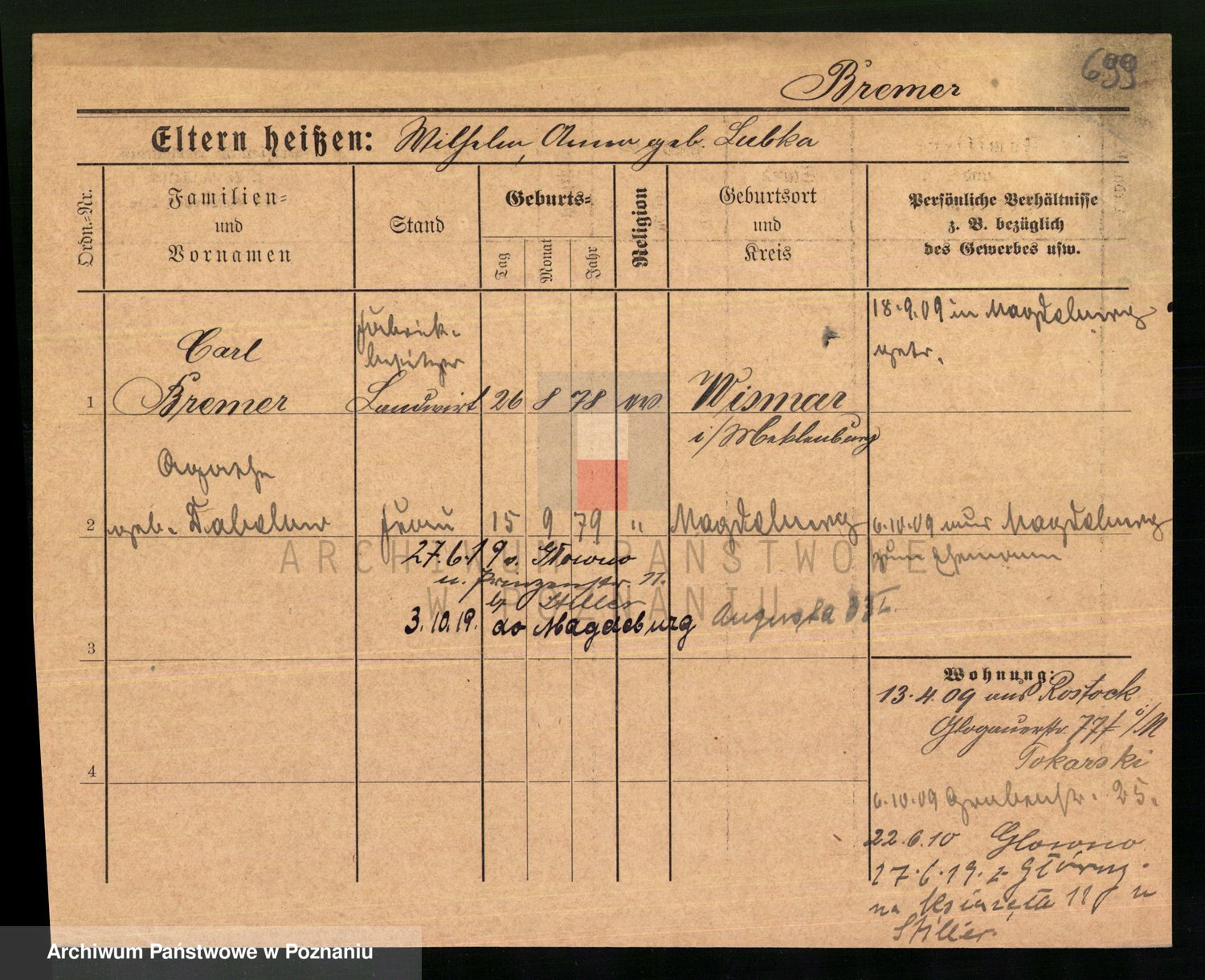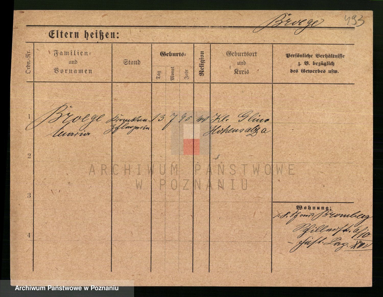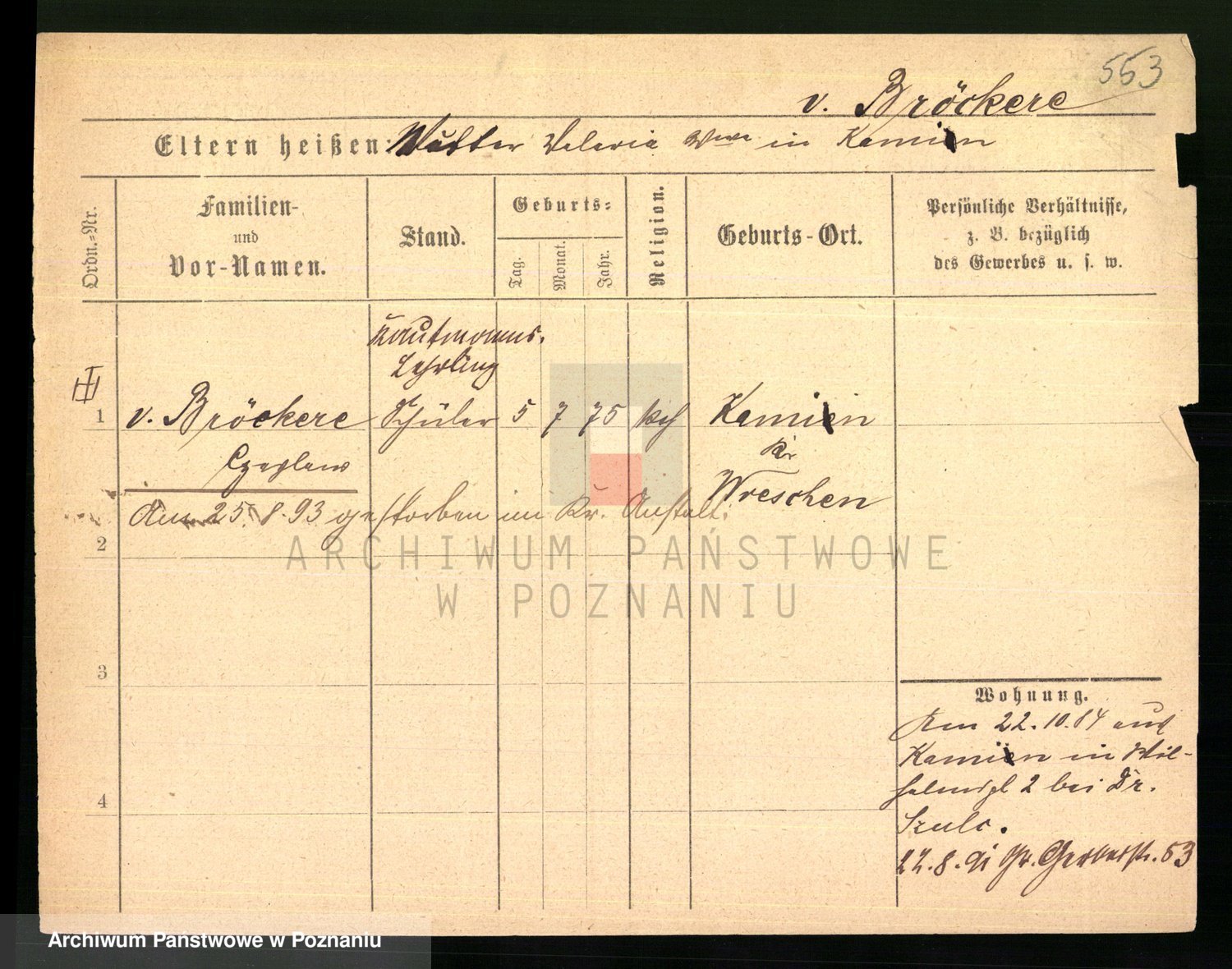 Podgląd karty osobowej dostępny jest po kliknięciu na nazwisko lub ikonkę karty. Można dokonywać powiększenia (ikony na górze) lub przechodzić między kolejnymi skanami (strzałki po bokach).