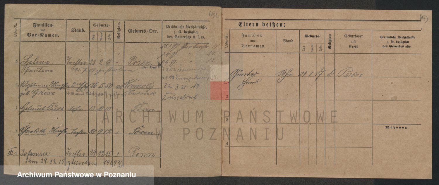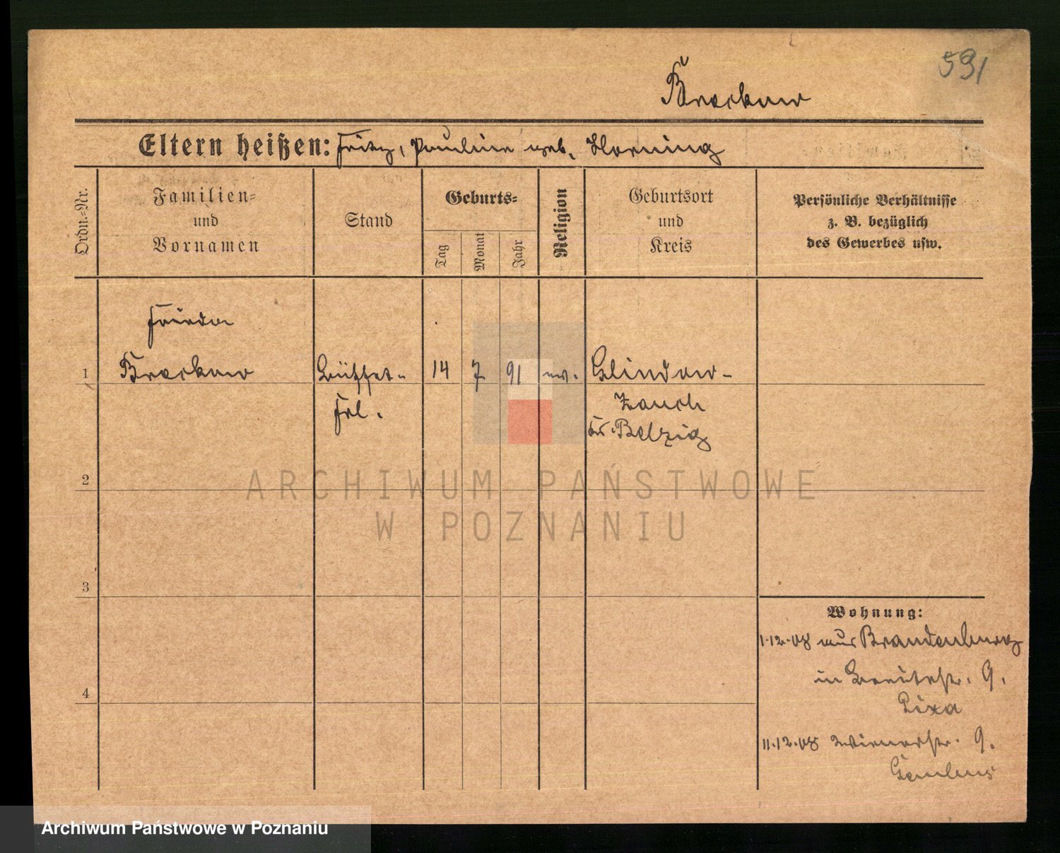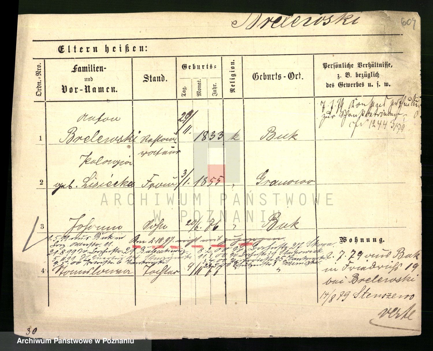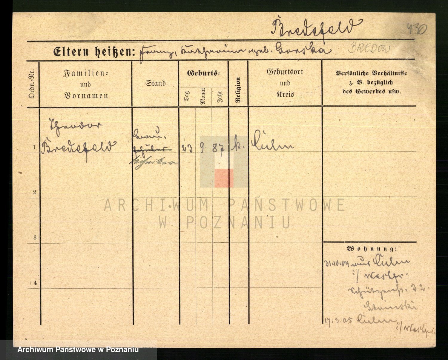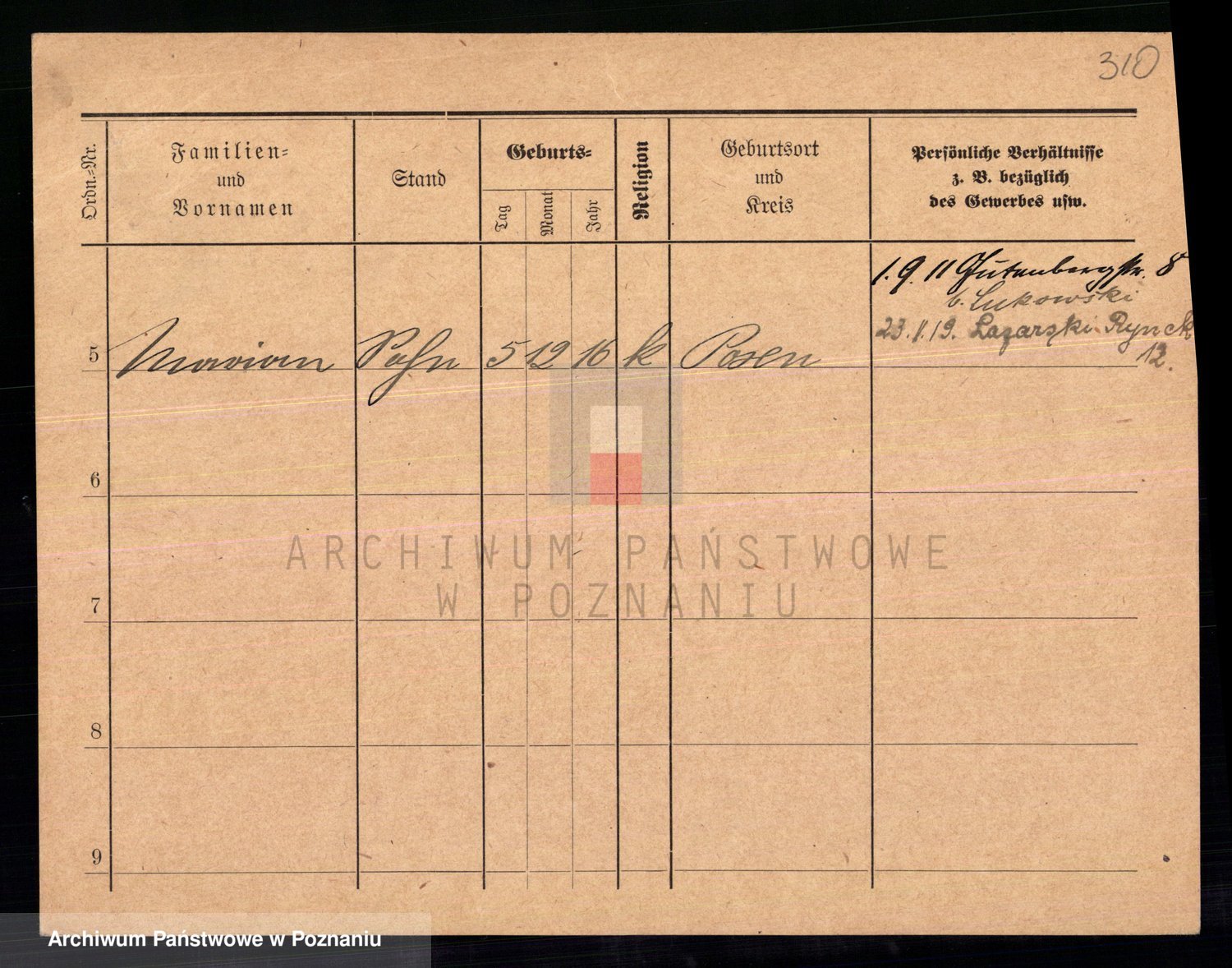 Podgląd karty osobowej dostępny jest po kliknięciu na nazwisko lub ikonkę karty. Można dokonywać powiększenia (ikony na górze) lub przechodzić między kolejnymi skanami (strzałki po bokach).