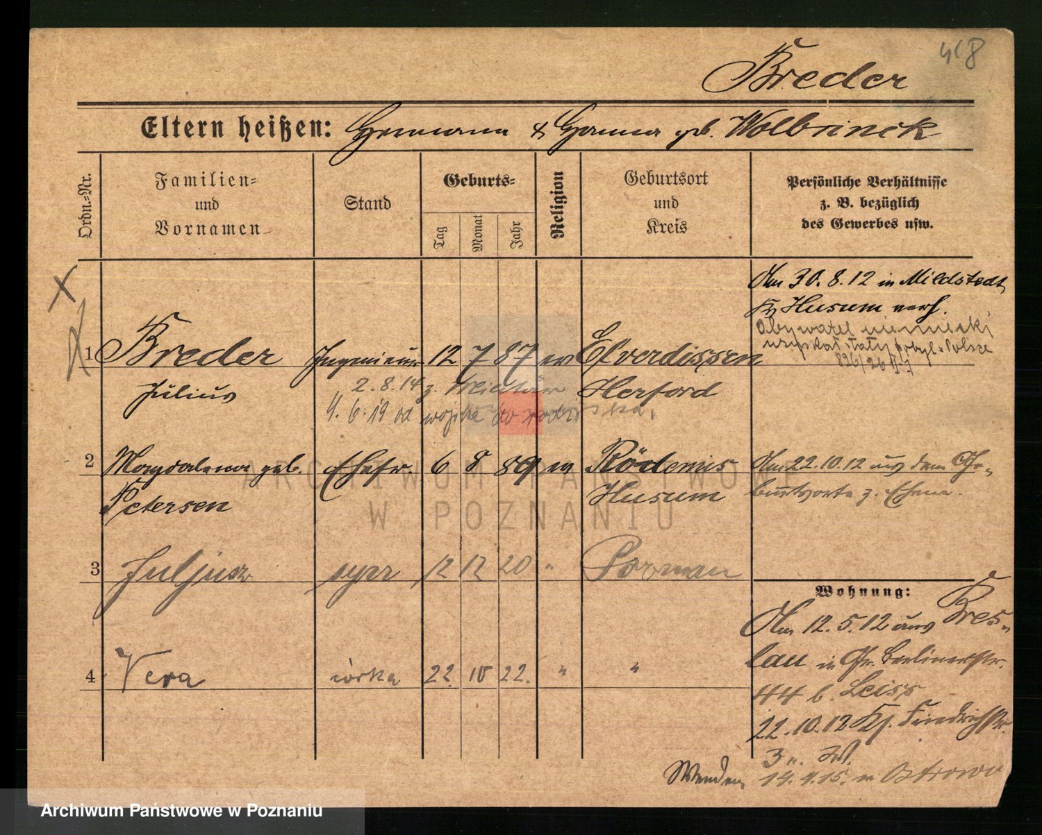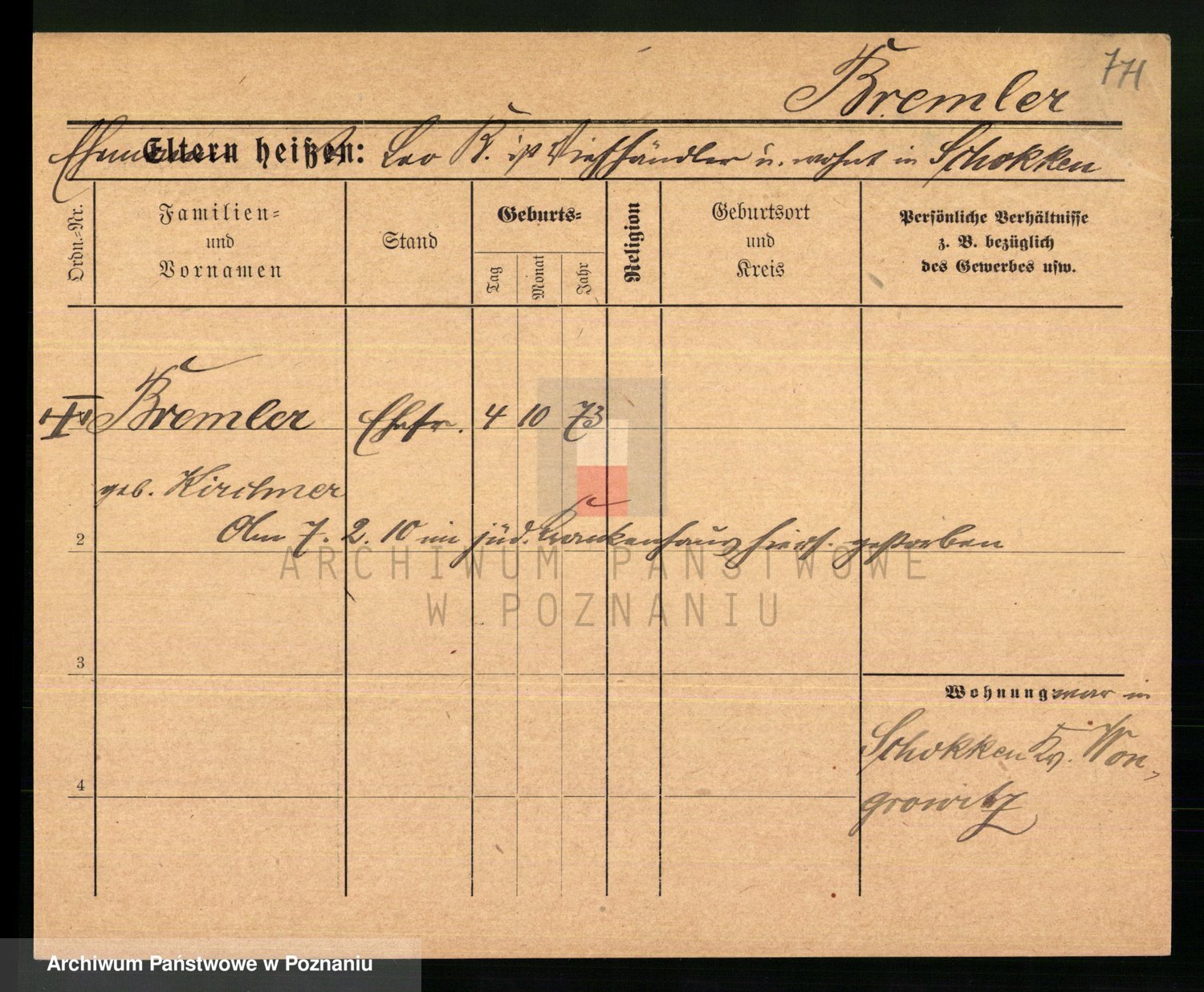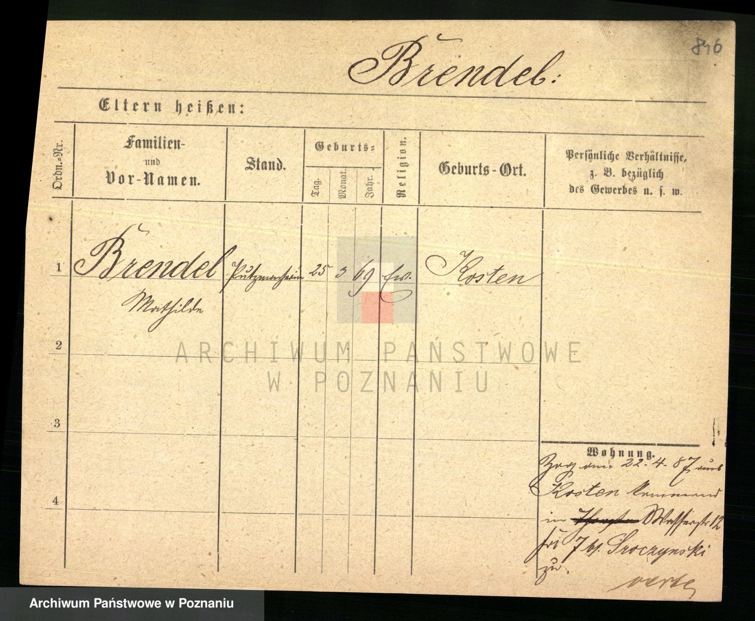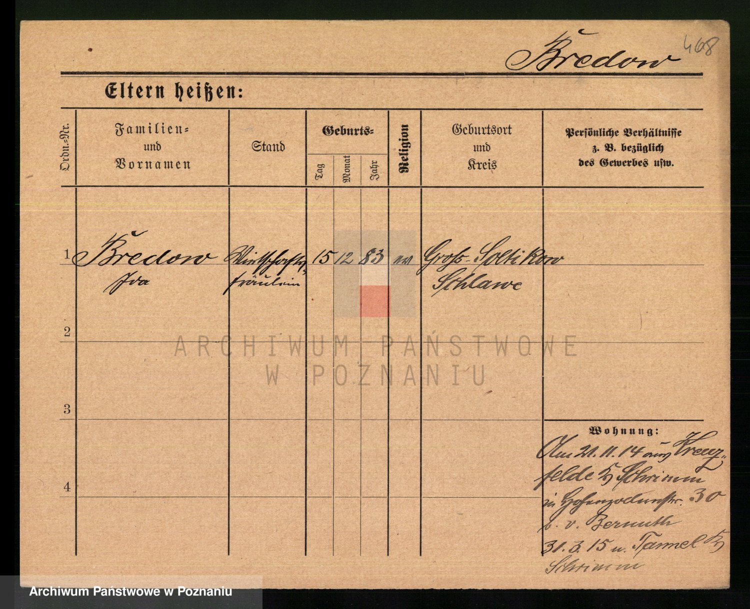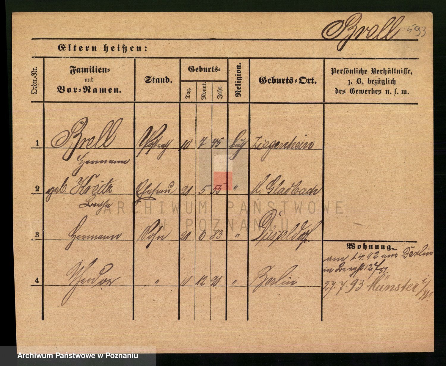 Podgląd karty osobowej dostępny jest po kliknięciu na nazwisko lub ikonkę karty. Można dokonywać powiększenia (ikony na górze) lub przechodzić między kolejnymi skanami (strzałki po bokach).