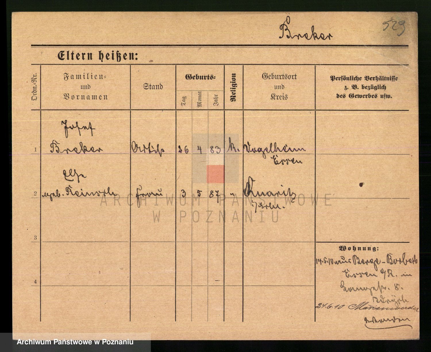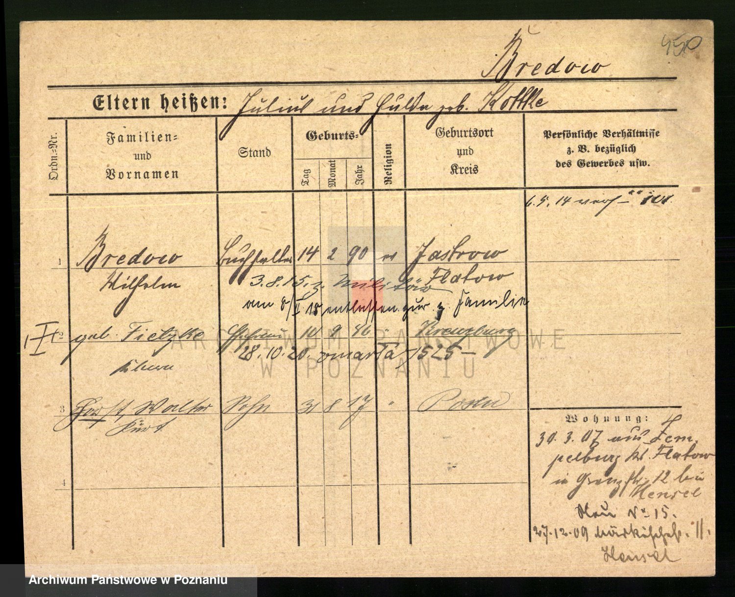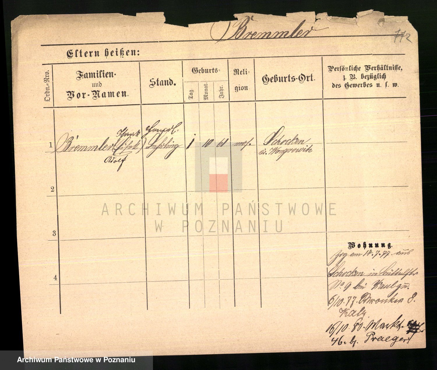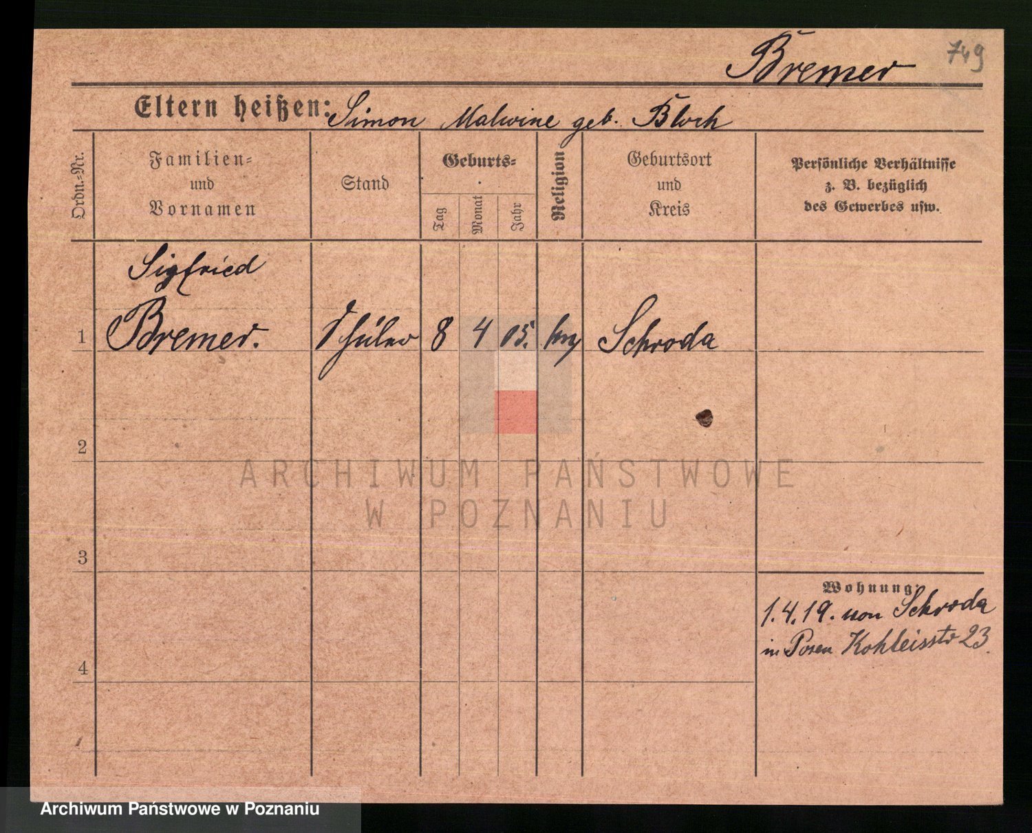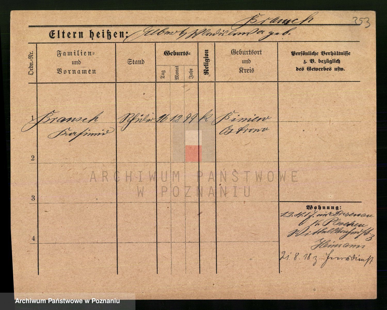 Podgląd karty osobowej dostępny jest po kliknięciu na nazwisko lub ikonkę karty. Można dokonywać powiększenia (ikony na górze) lub przechodzić między kolejnymi skanami (strzałki po bokach).