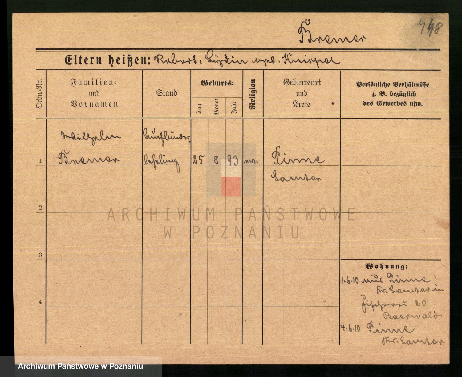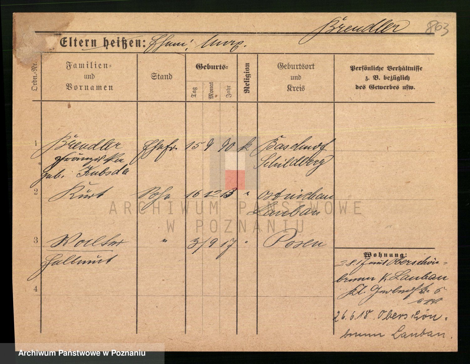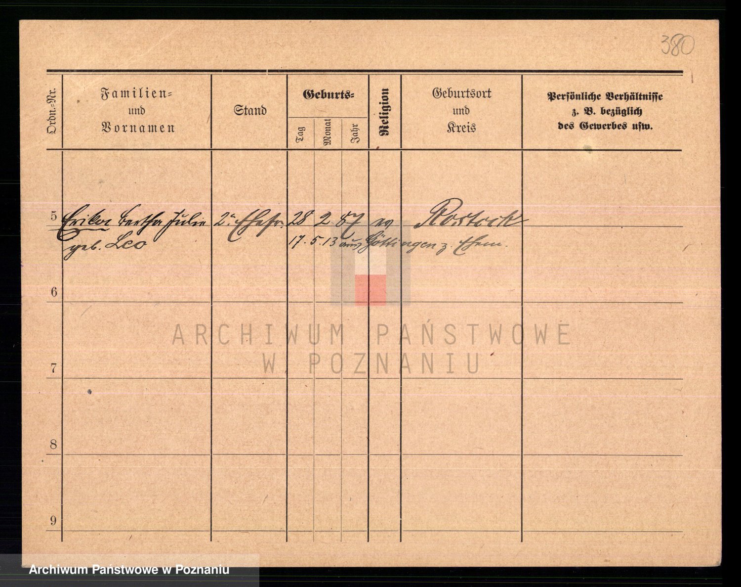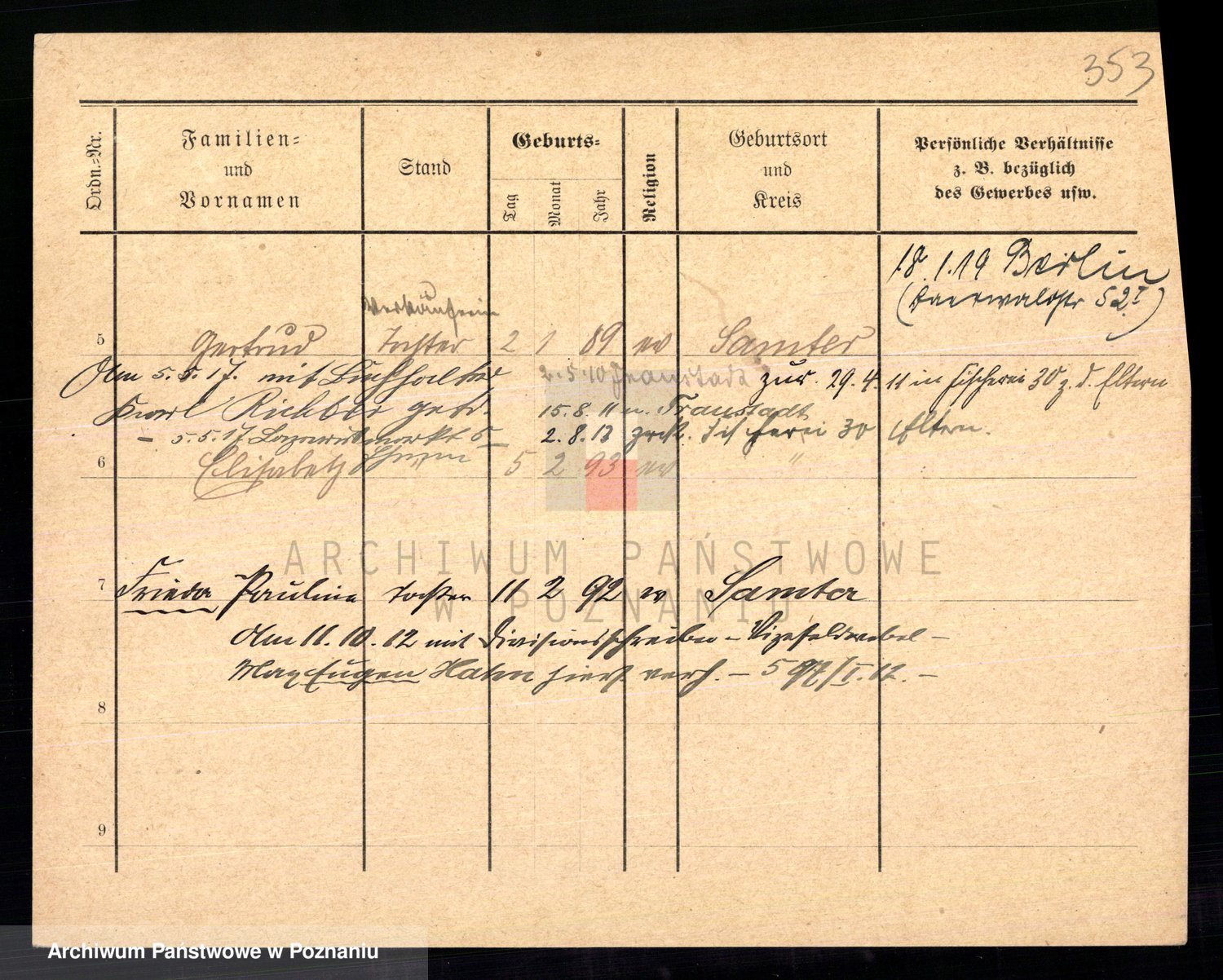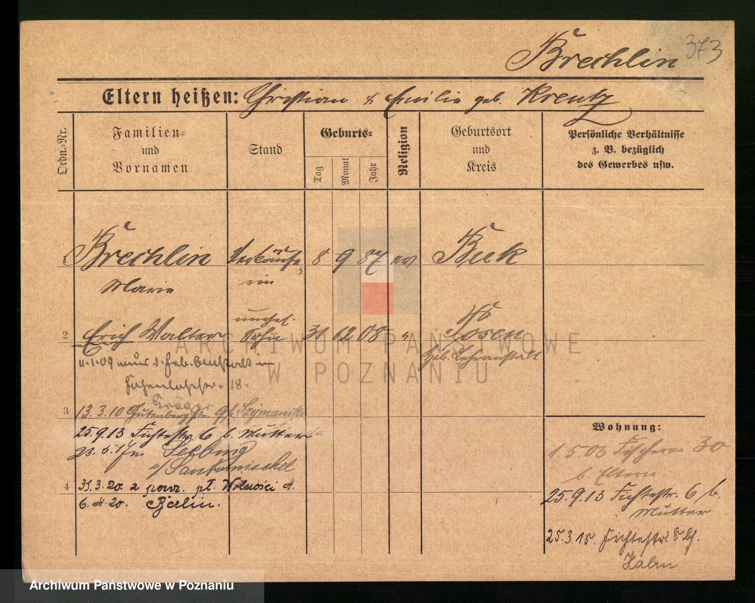 Podgląd karty osobowej dostępny jest po kliknięciu na nazwisko lub ikonkę karty. Można dokonywać powiększenia (ikony na górze) lub przechodzić między kolejnymi skanami (strzałki po bokach).