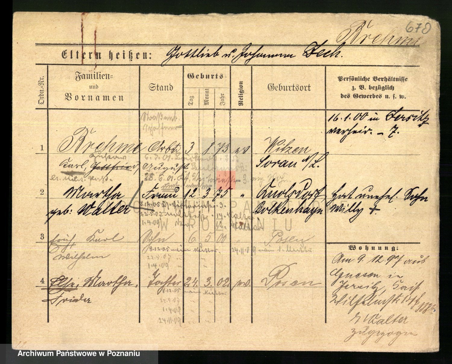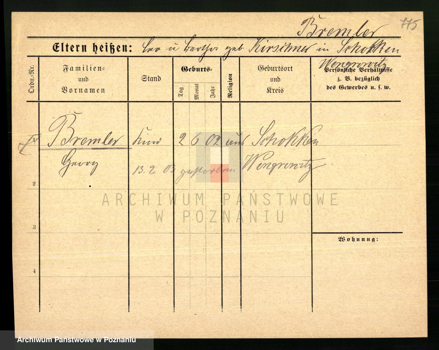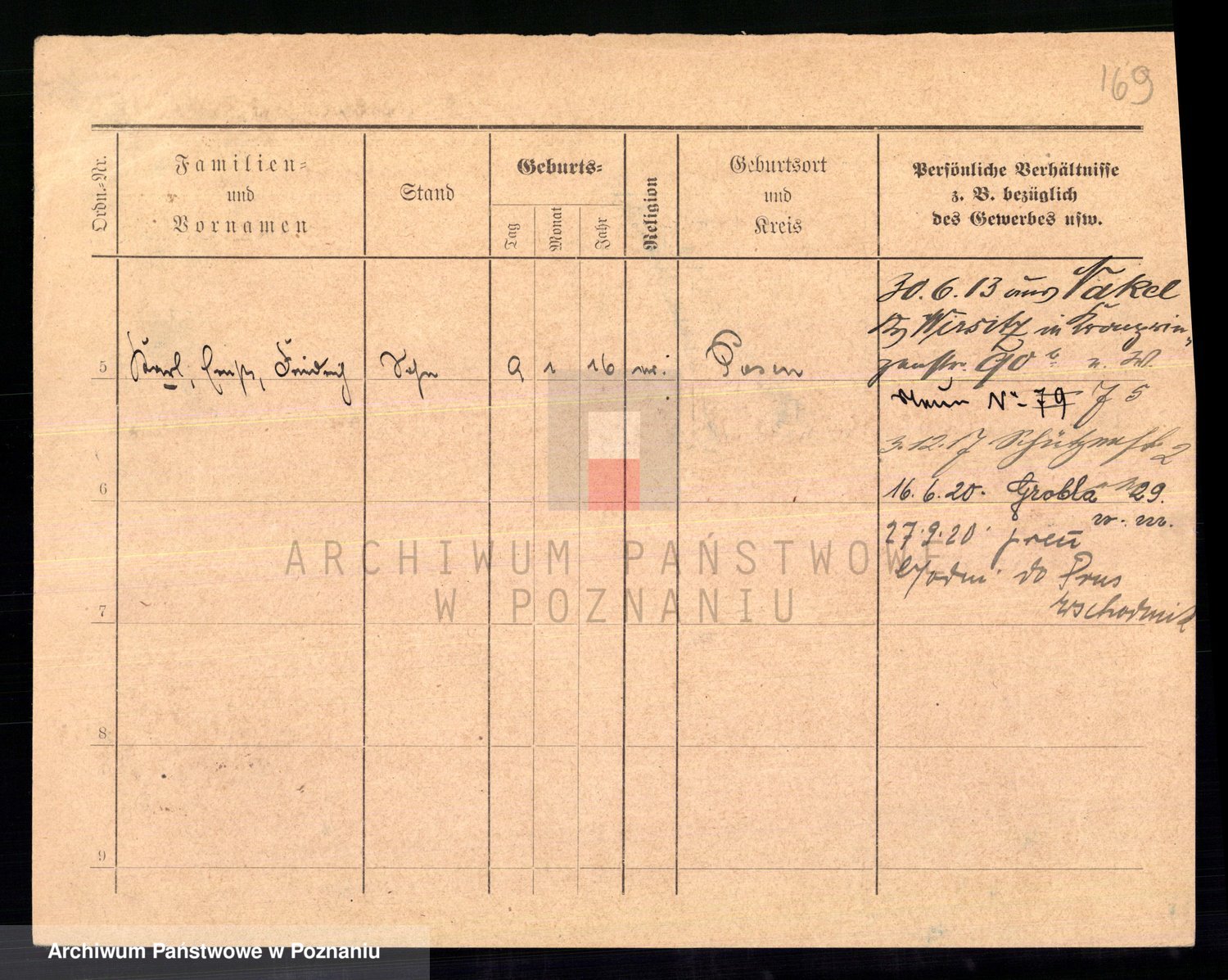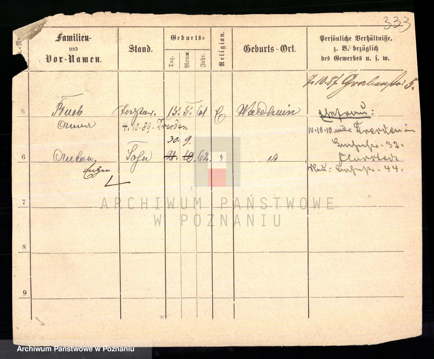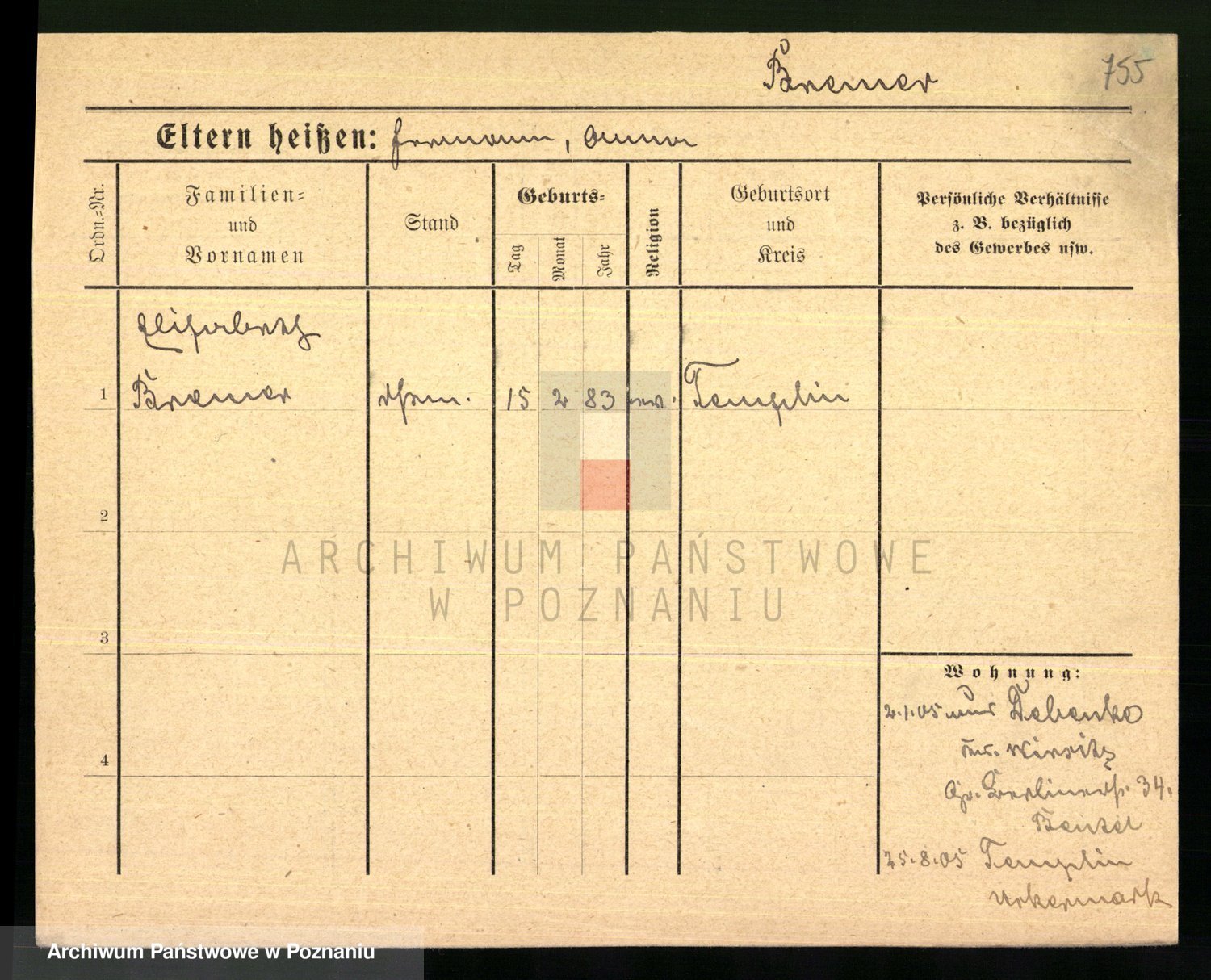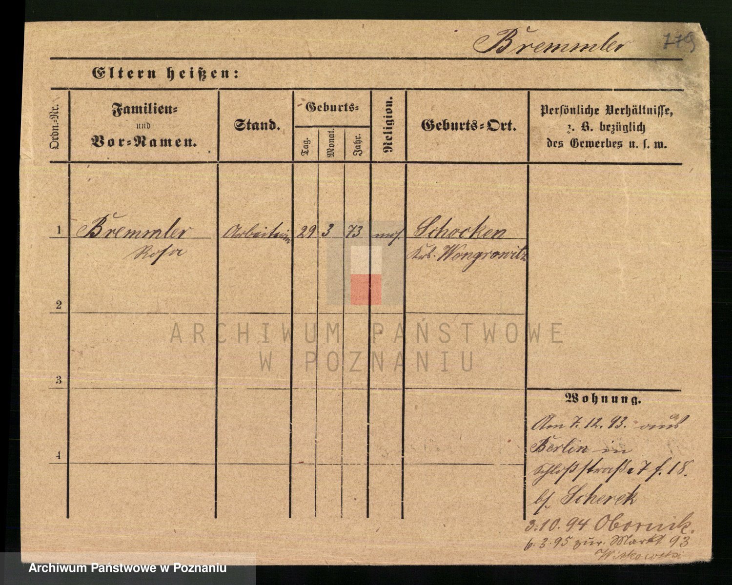 Podgląd karty osobowej dostępny jest po kliknięciu na nazwisko lub ikonkę karty. Można dokonywać powiększenia (ikony na górze) lub przechodzić między kolejnymi skanami (strzałki po bokach).