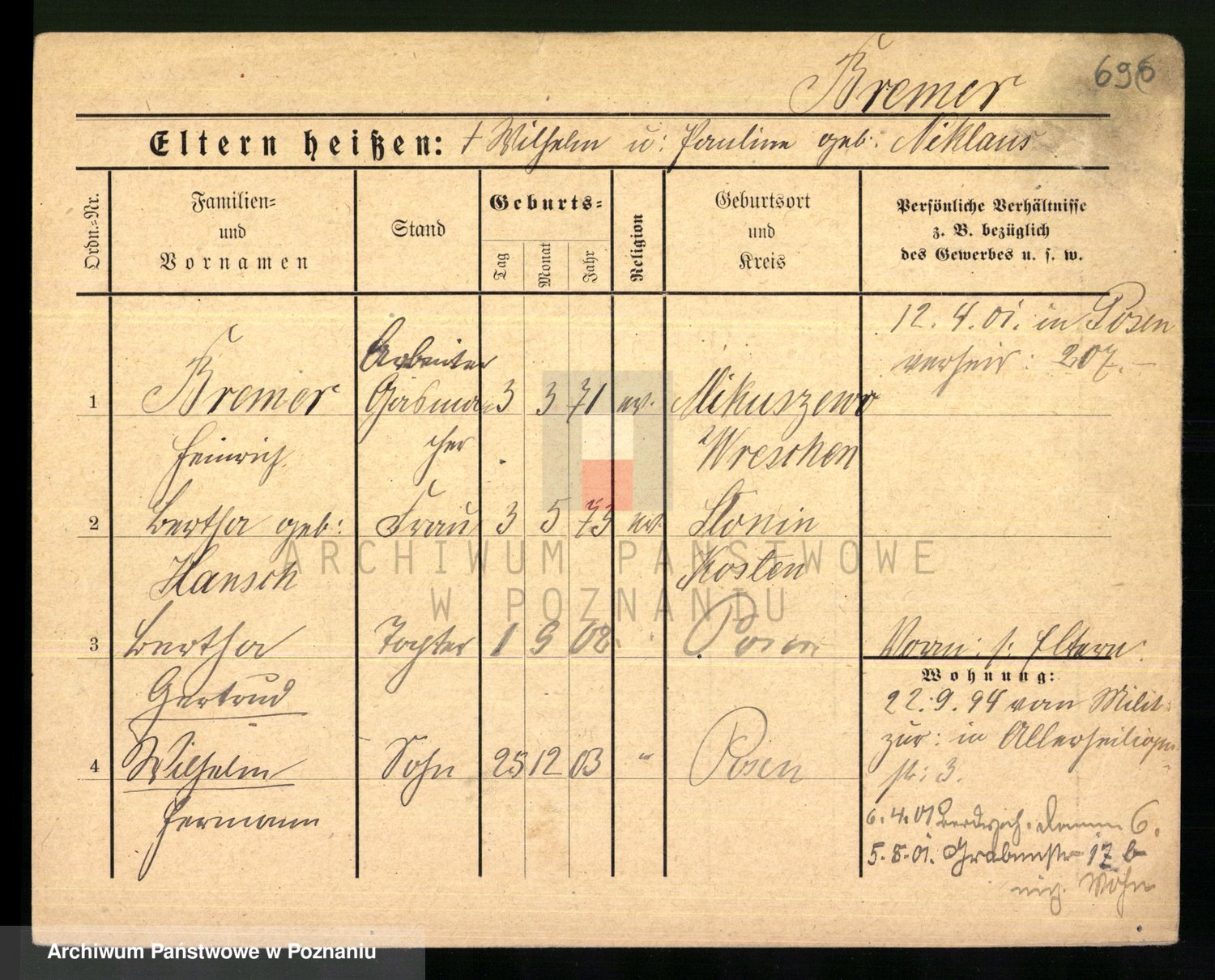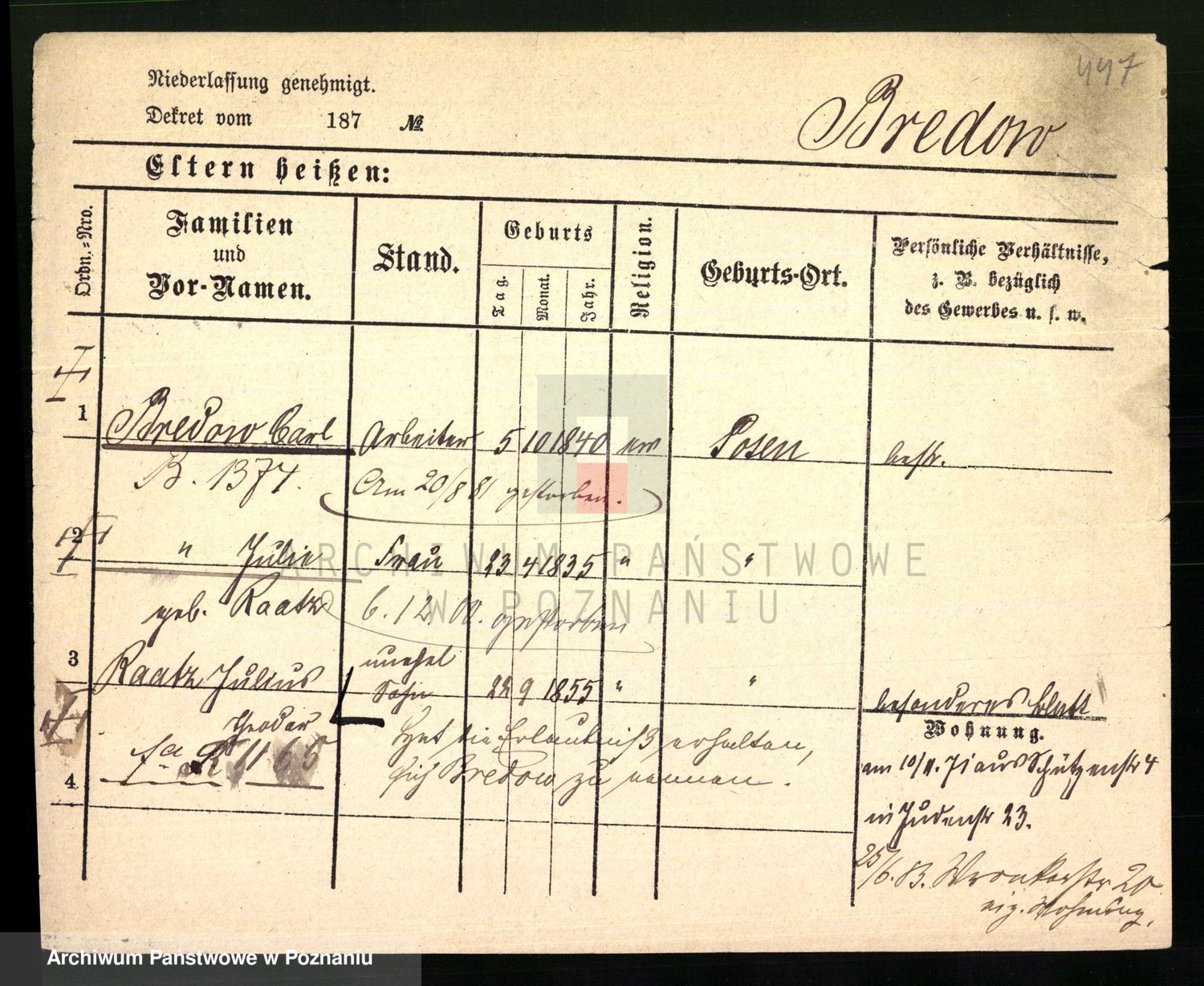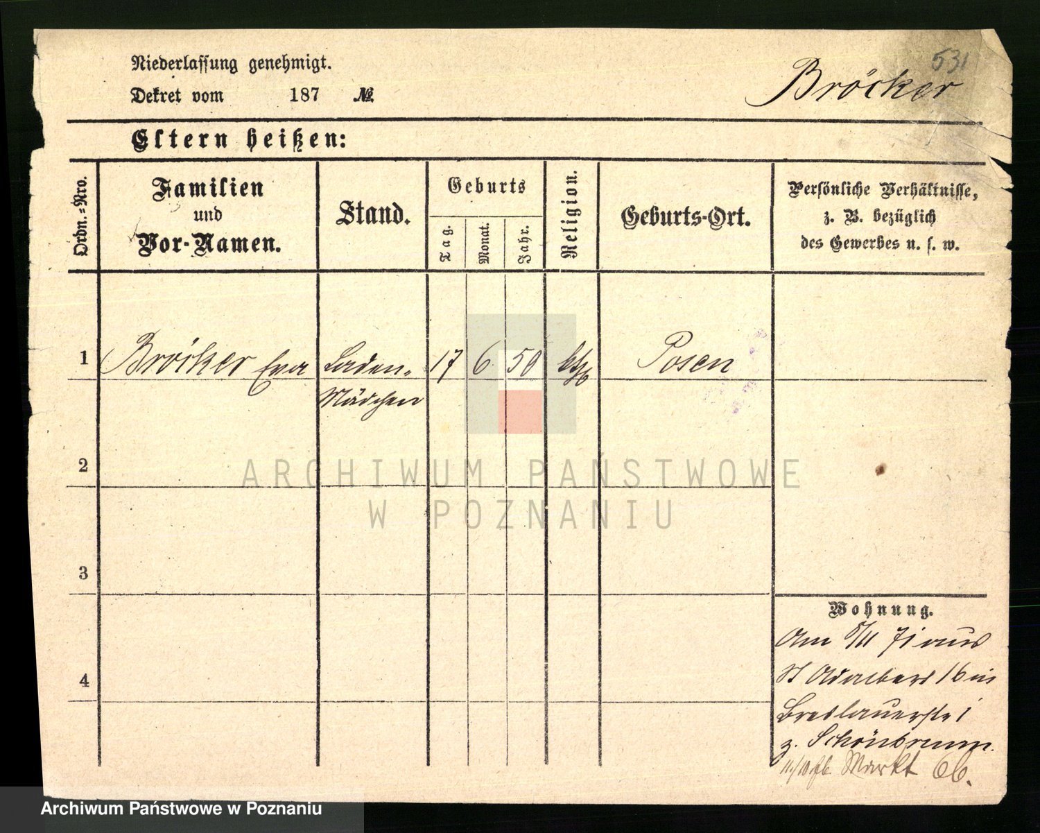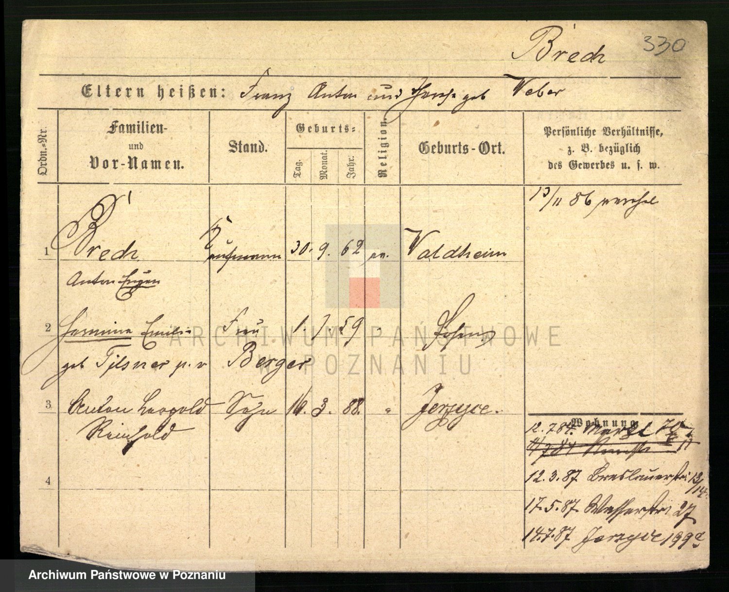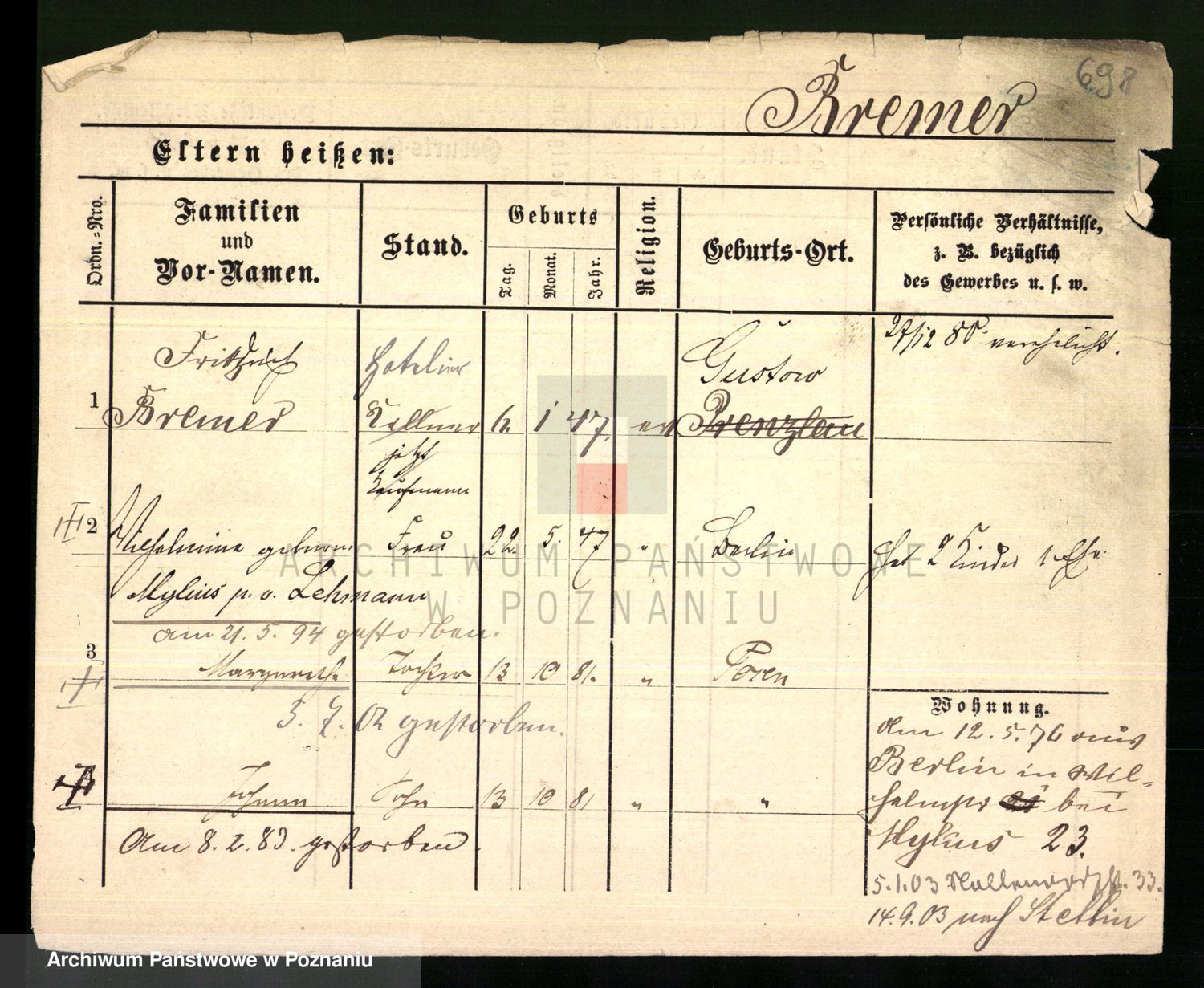 Podgląd karty osobowej dostępny jest po kliknięciu na nazwisko lub ikonkę karty. Można dokonywać powiększenia (ikony na górze) lub przechodzić między kolejnymi skanami (strzałki po bokach).