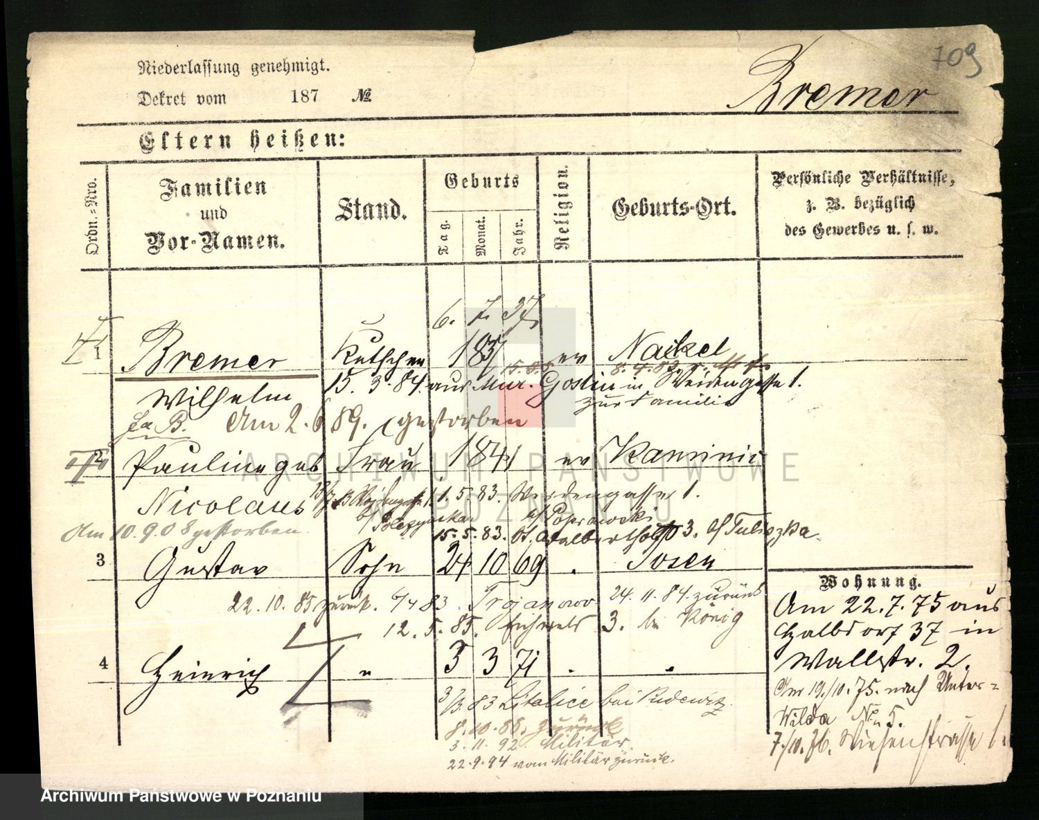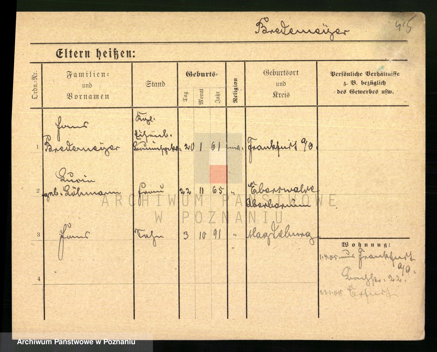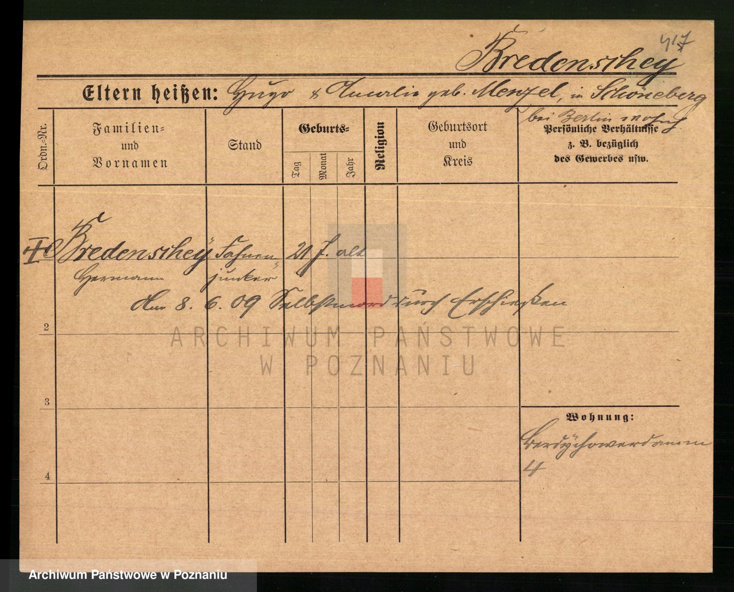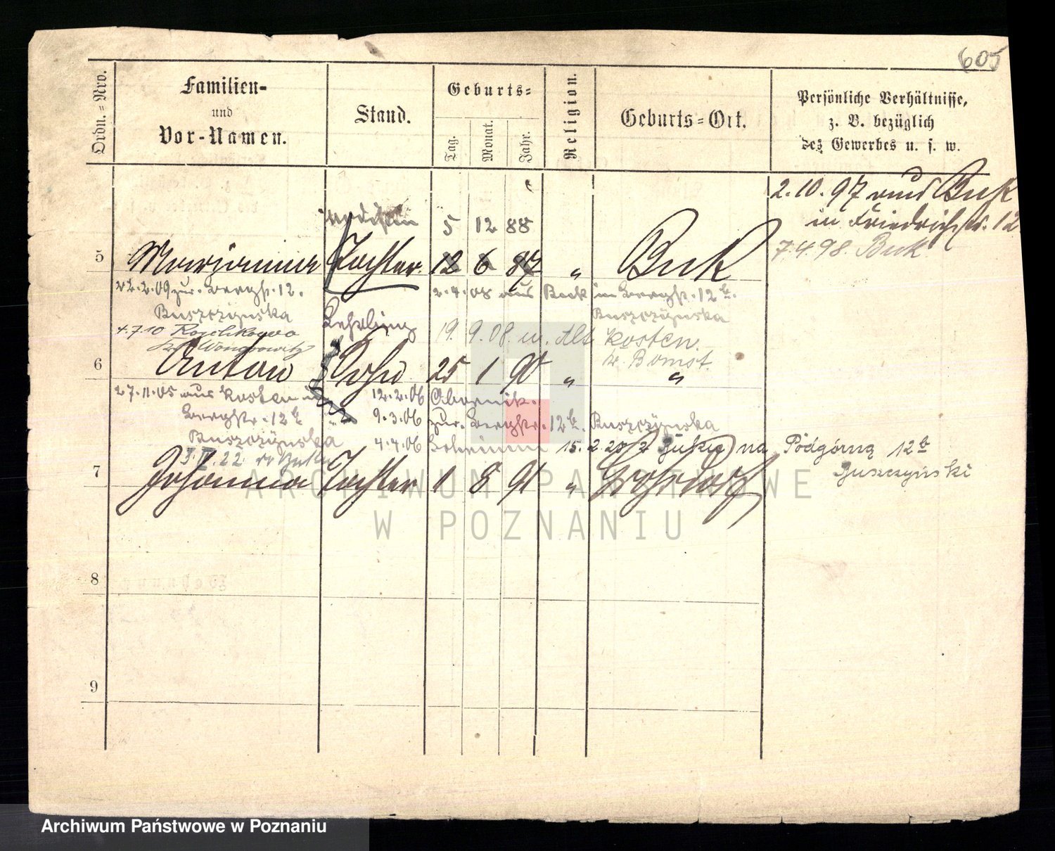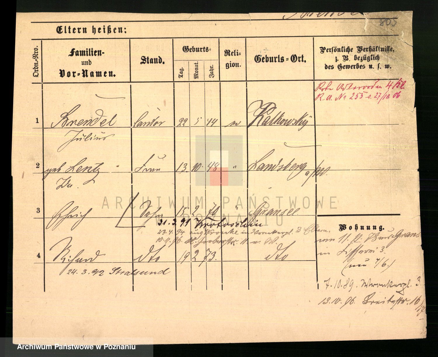 Podgląd karty osobowej dostępny jest po kliknięciu na nazwisko lub ikonkę karty. Można dokonywać powiększenia (ikony na górze) lub przechodzić między kolejnymi skanami (strzałki po bokach).
