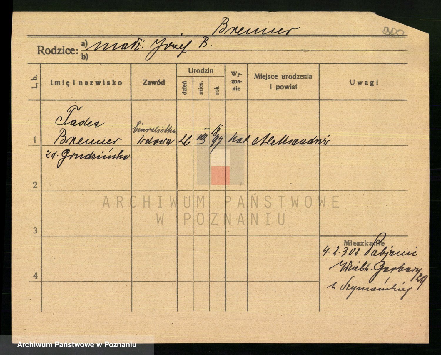 Brenner z.d. Grudzińska, Tadea