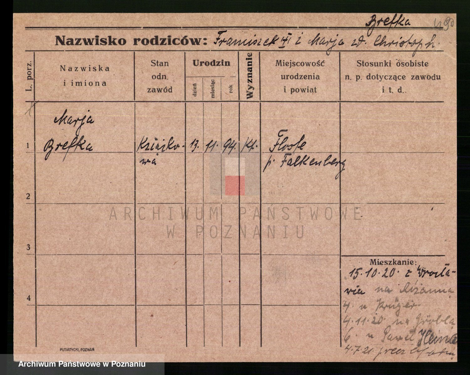 Brennek z.d. Lipińska, Marja