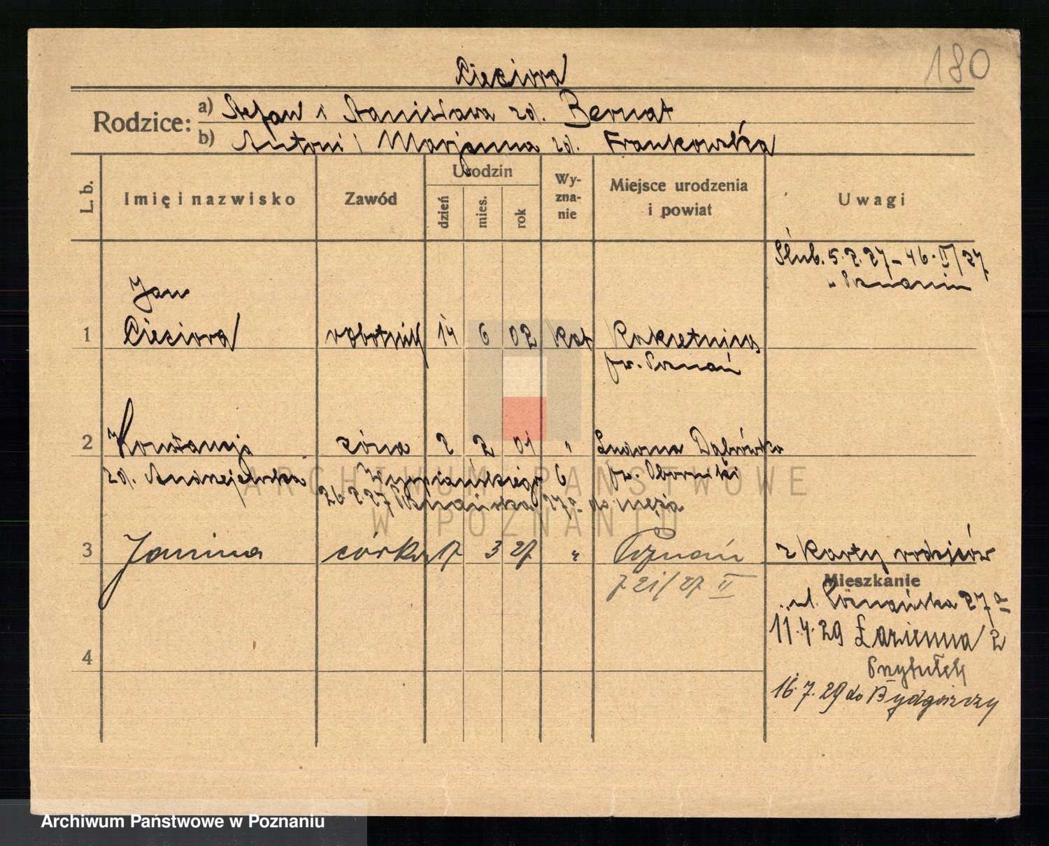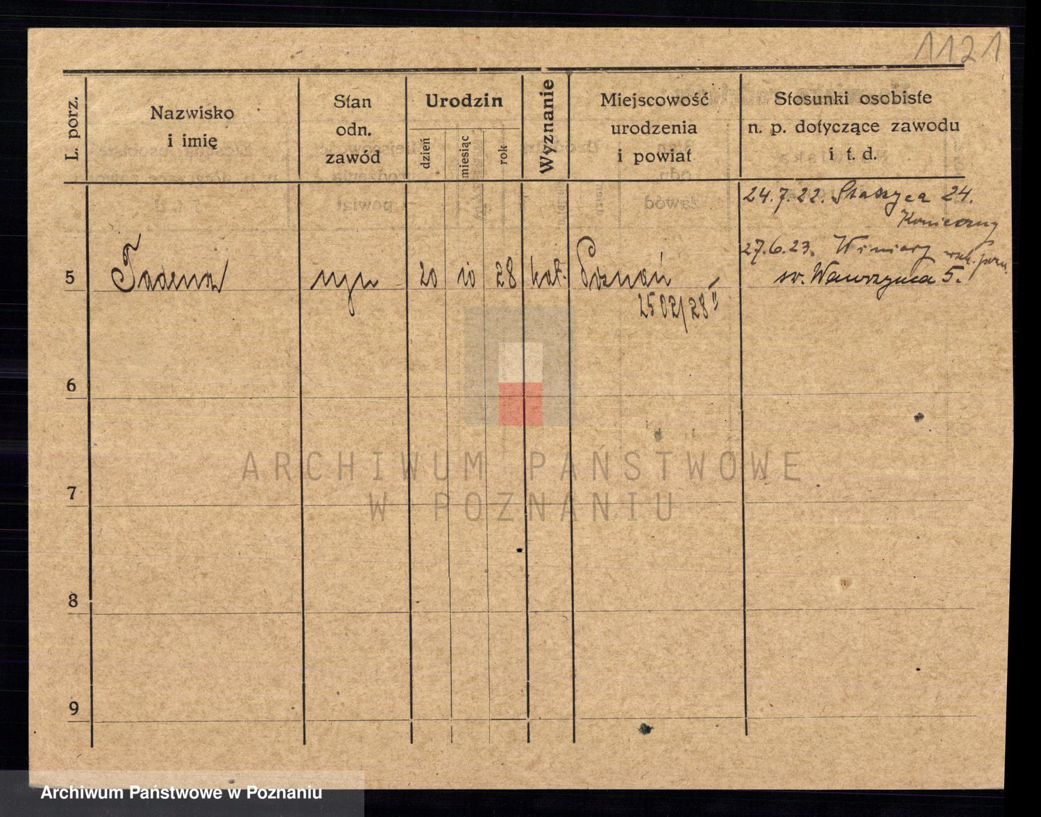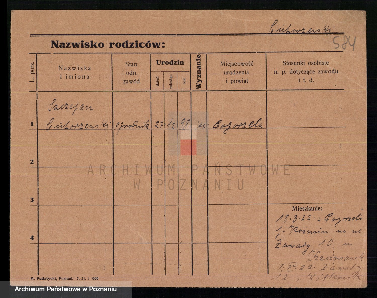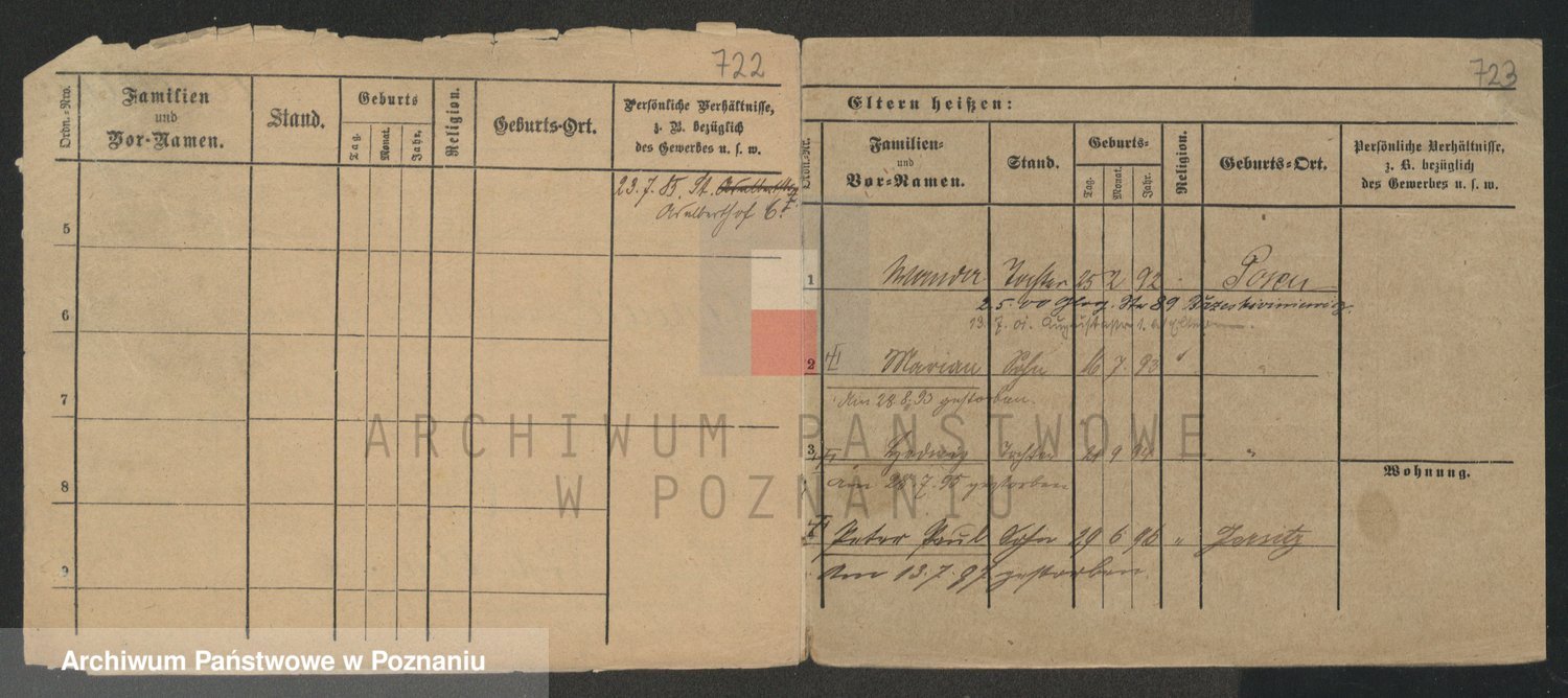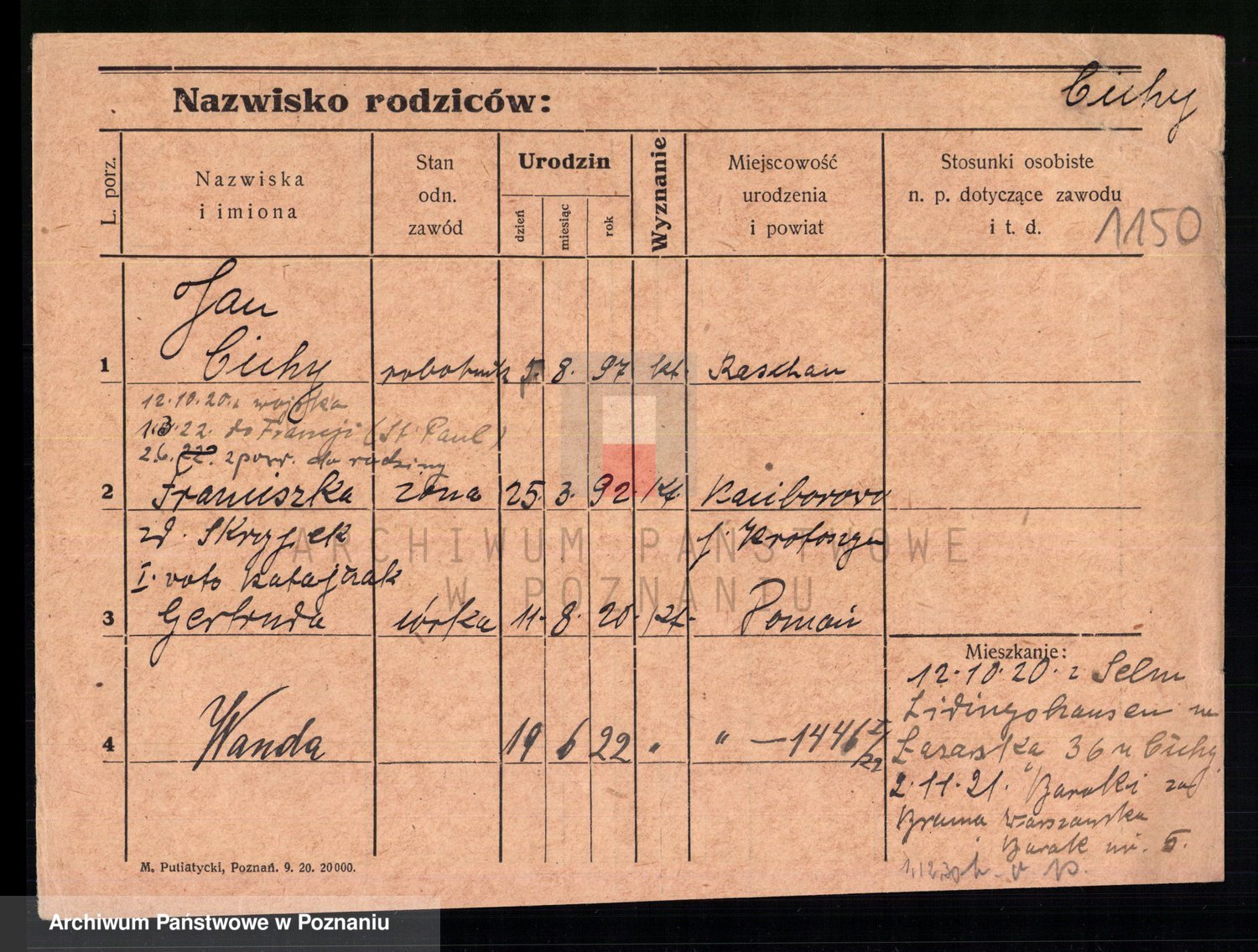Podgląd karty osobowej dostępny jest po kliknięciu na nazwisko lub ikonkę karty. Można dokonywać powiększenia (ikony na górze) lub przechodzić między kolejnymi skanami (strzałki po bokach).
