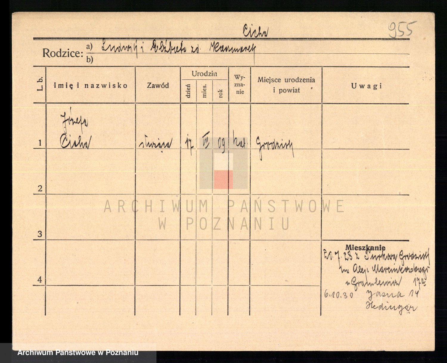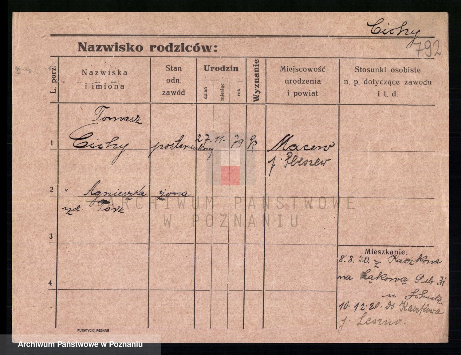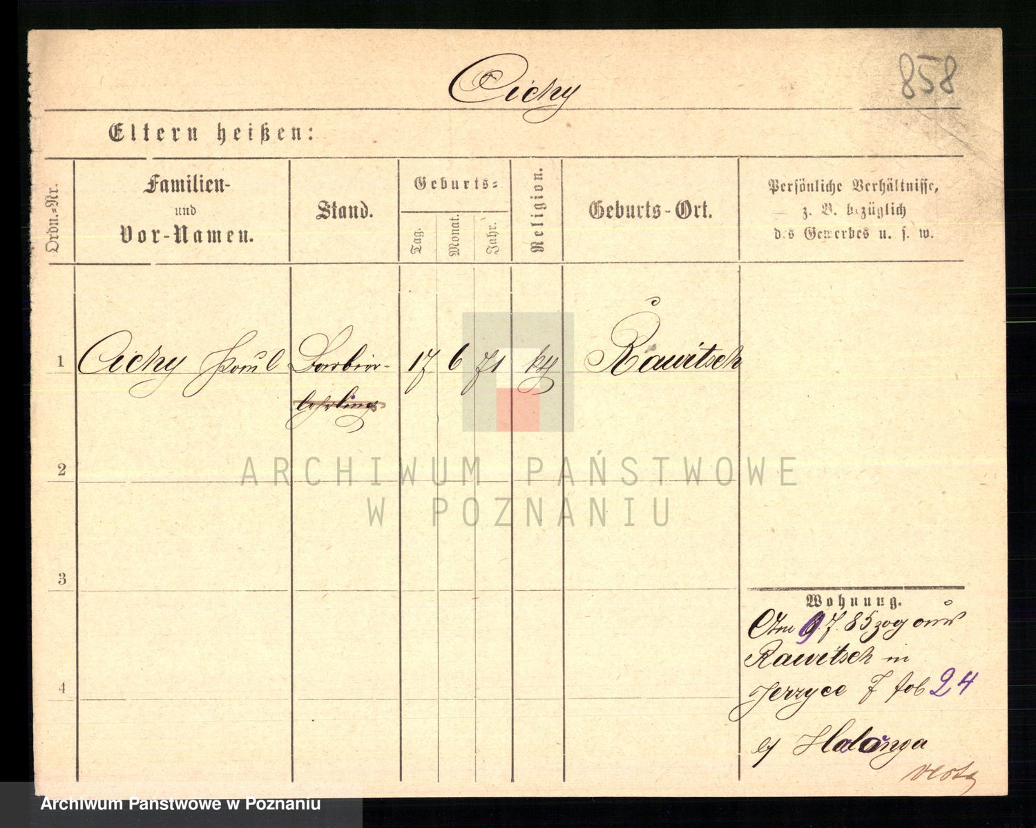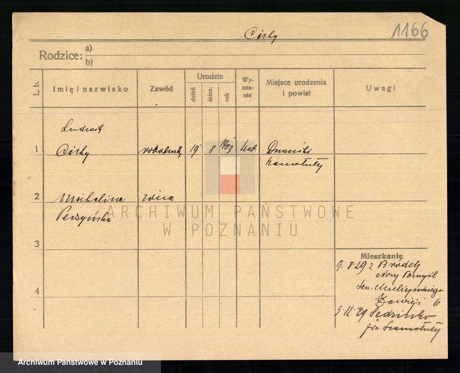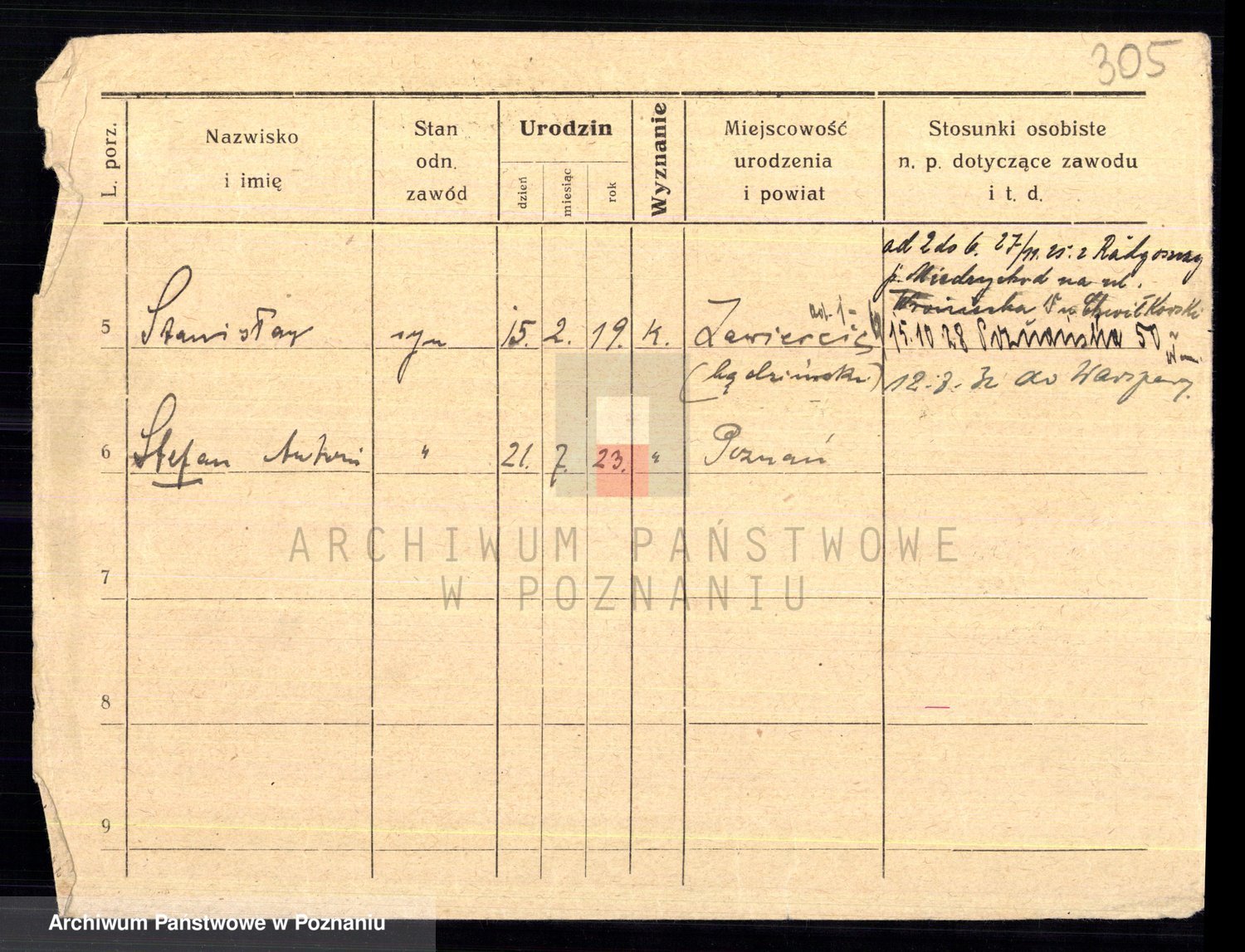 Podgląd karty osobowej dostępny jest po kliknięciu na nazwisko lub ikonkę karty. Można dokonywać powiększenia (ikony na górze) lub przechodzić między kolejnymi skanami (strzałki po bokach).