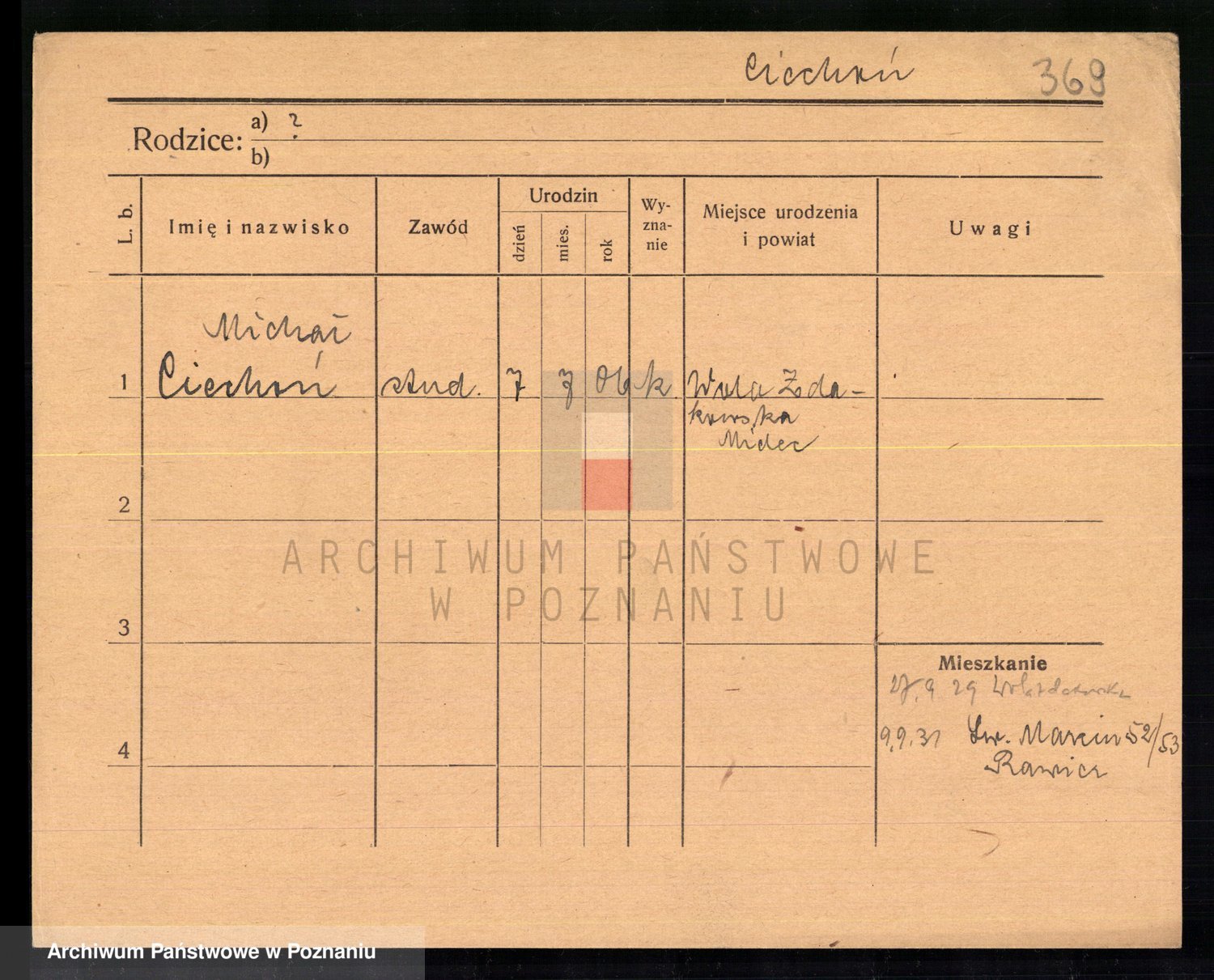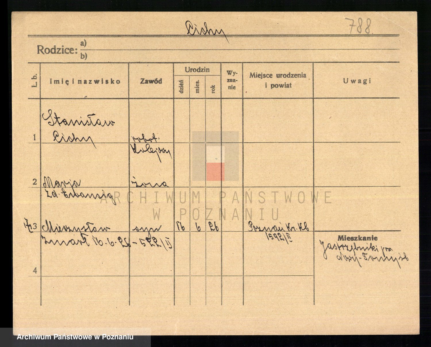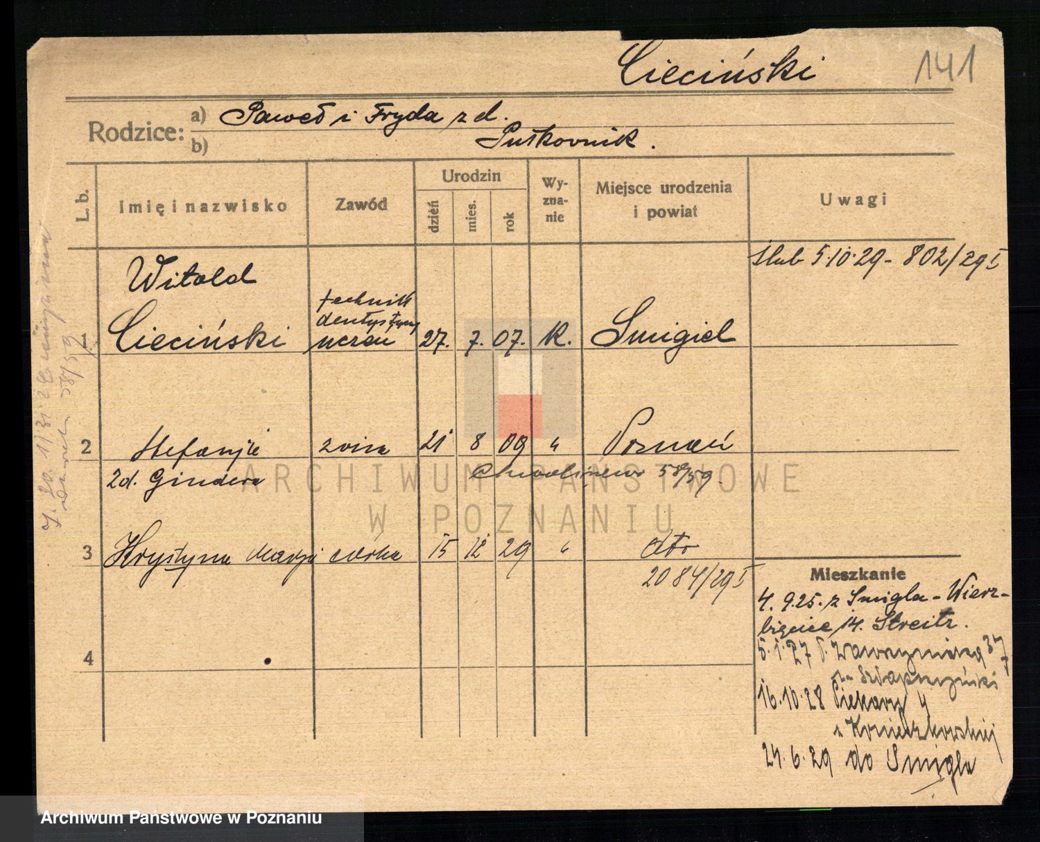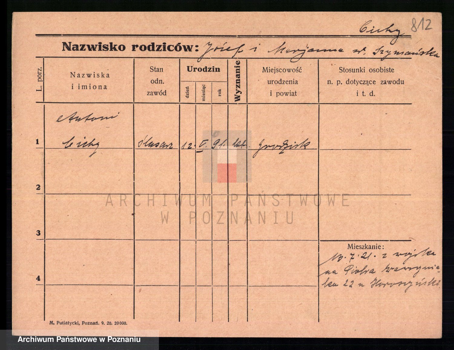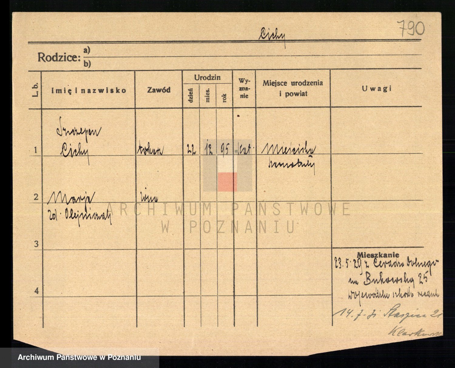 Podgląd karty osobowej dostępny jest po kliknięciu na nazwisko lub ikonkę karty. Można dokonywać powiększenia (ikony na górze) lub przechodzić między kolejnymi skanami (strzałki po bokach).