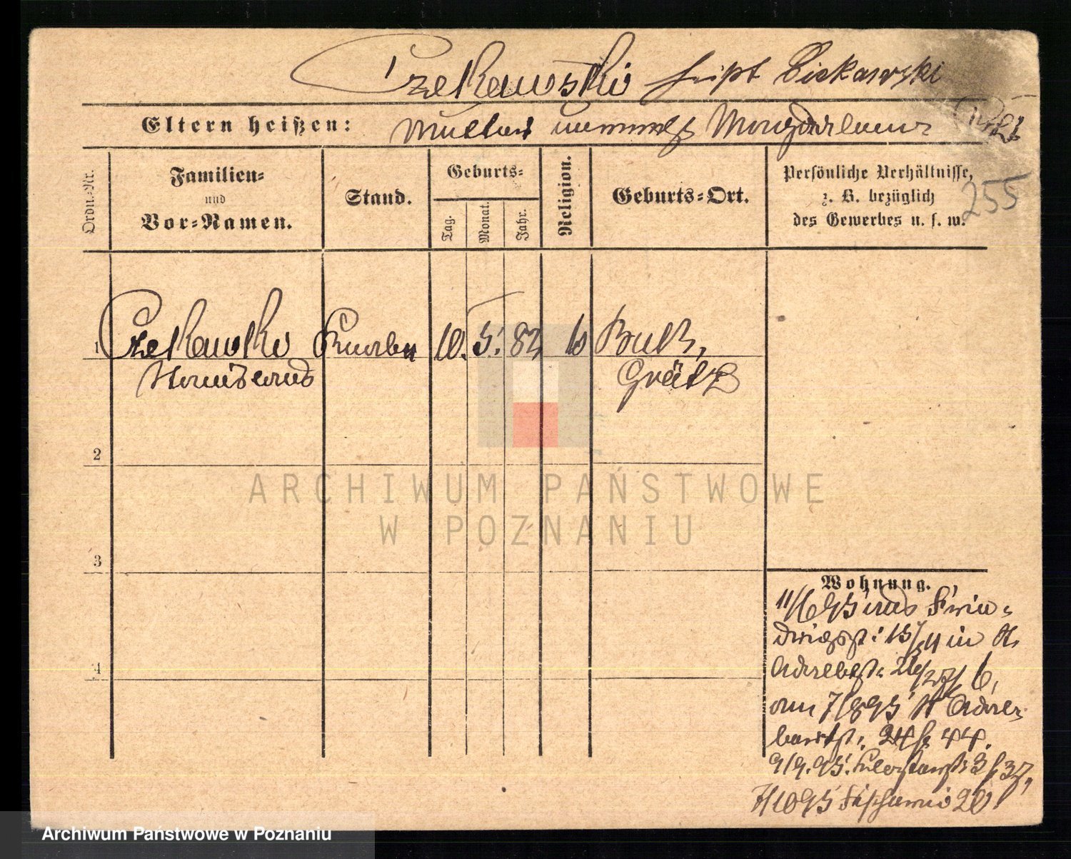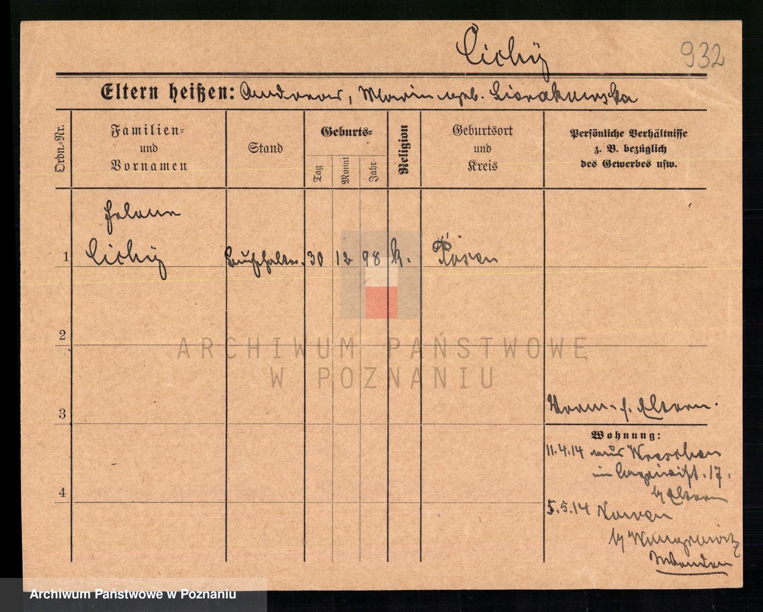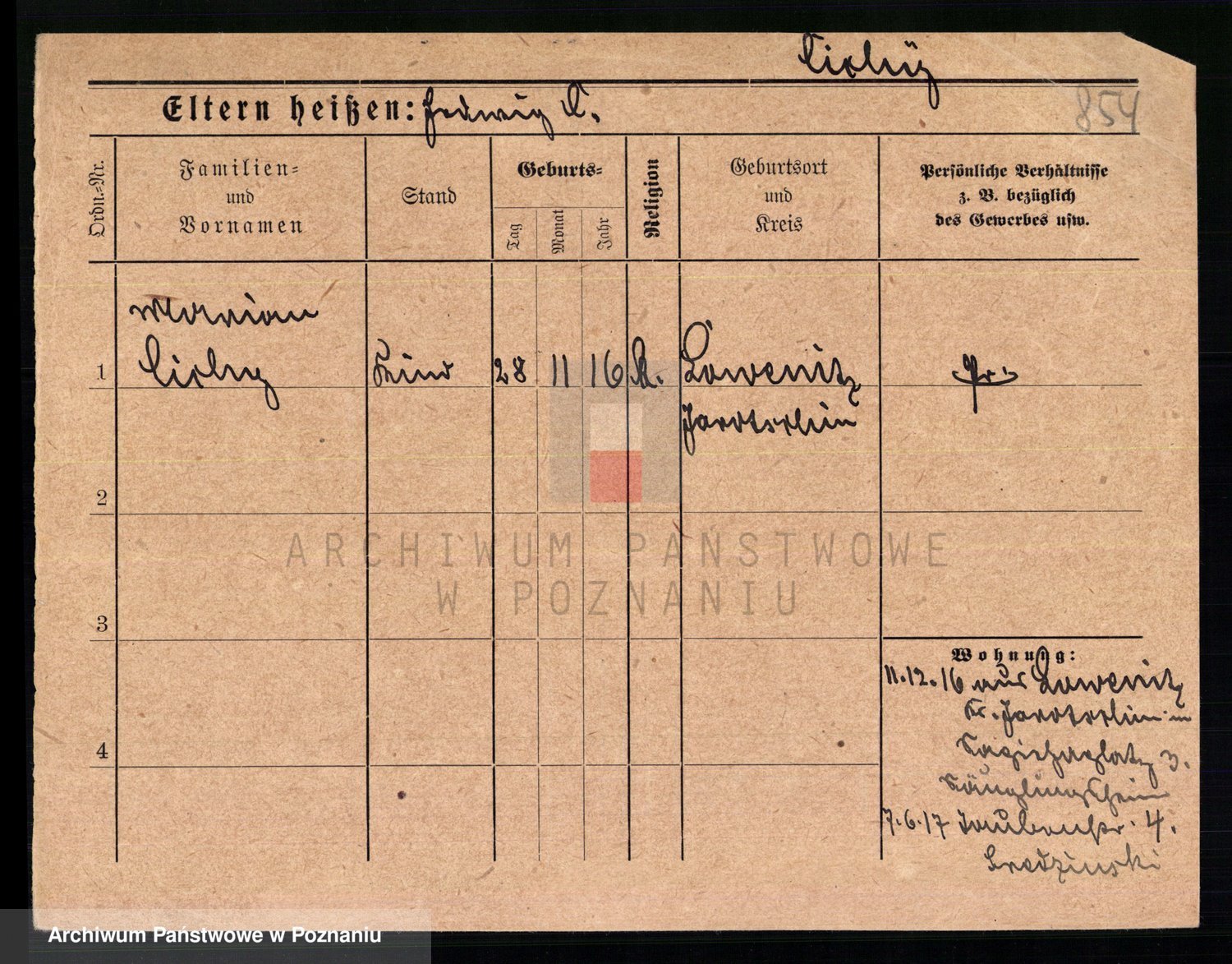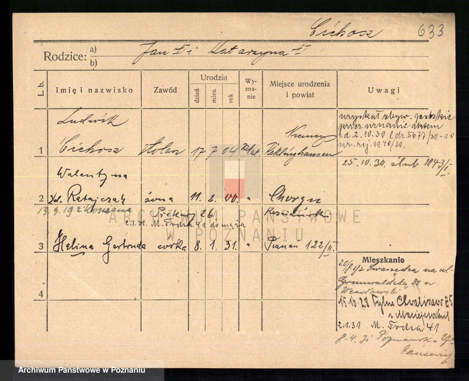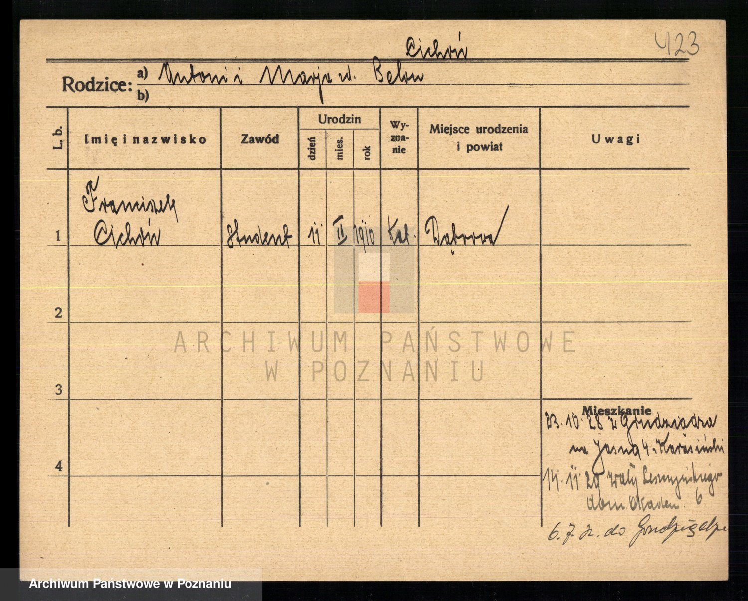 Podgląd karty osobowej dostępny jest po kliknięciu na nazwisko lub ikonkę karty. Można dokonywać powiększenia (ikony na górze) lub przechodzić między kolejnymi skanami (strzałki po bokach).