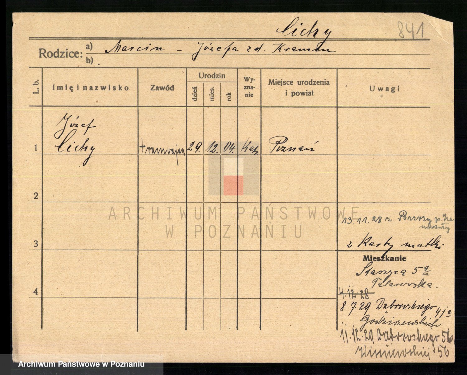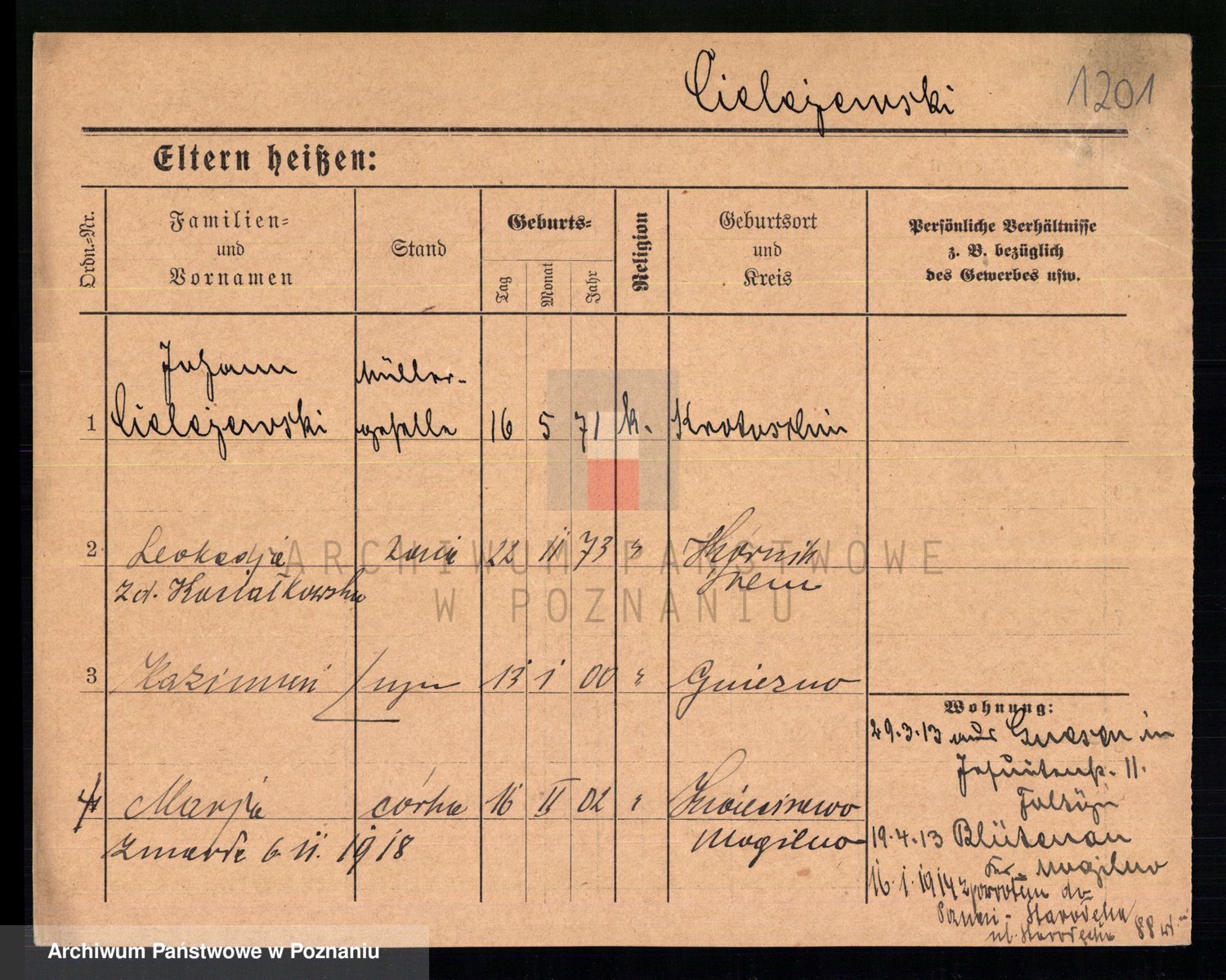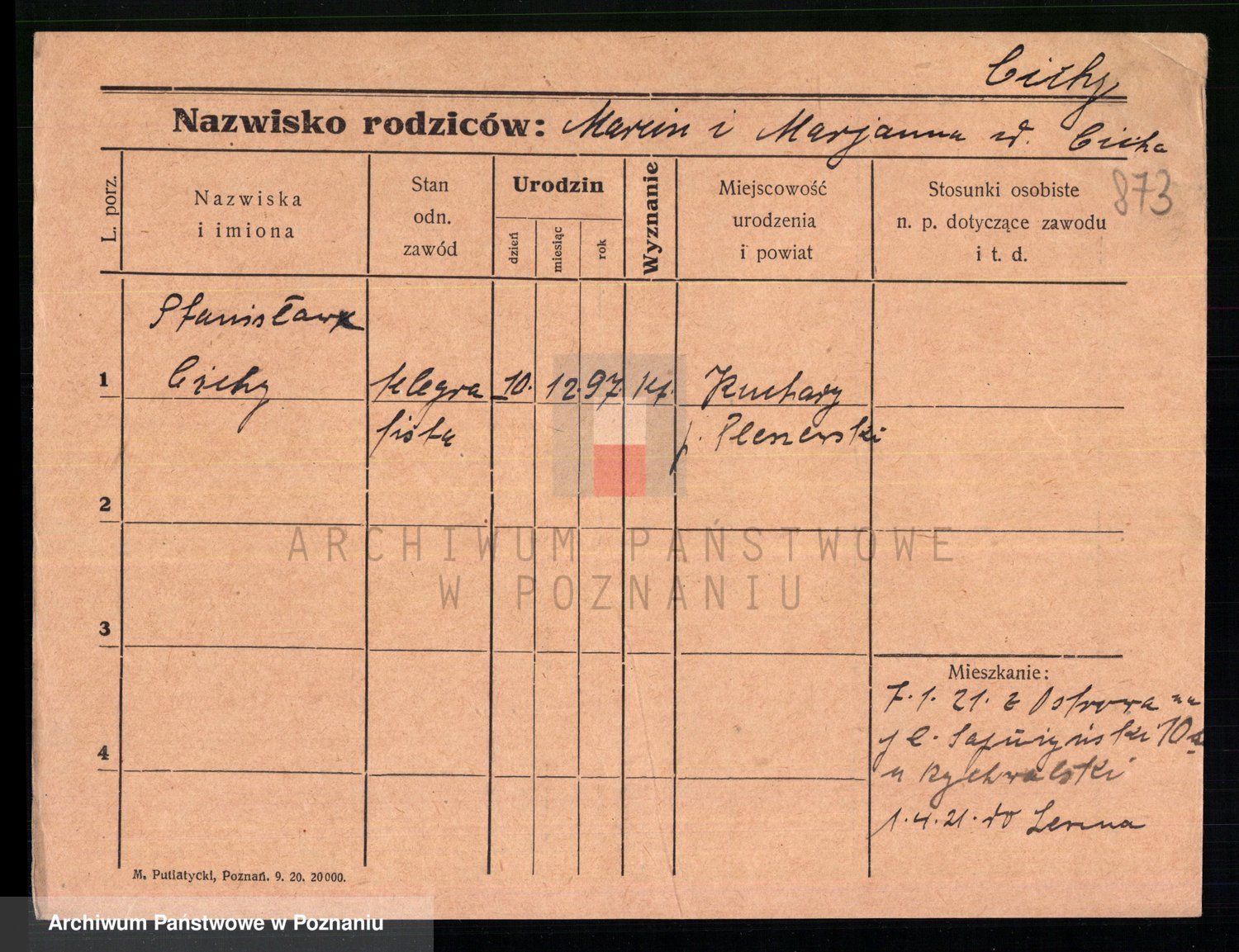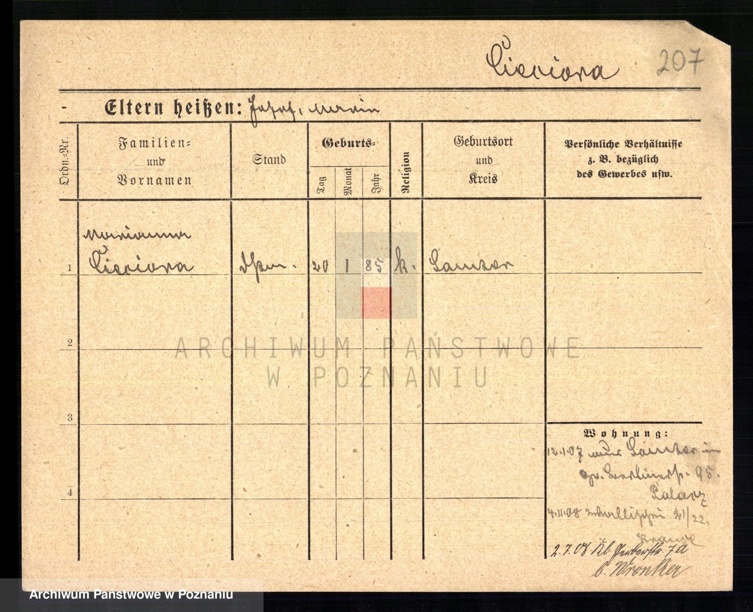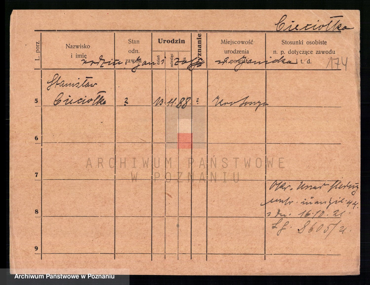 Podgląd karty osobowej dostępny jest po kliknięciu na nazwisko lub ikonkę karty. Można dokonywać powiększenia (ikony na górze) lub przechodzić między kolejnymi skanami (strzałki po bokach).
