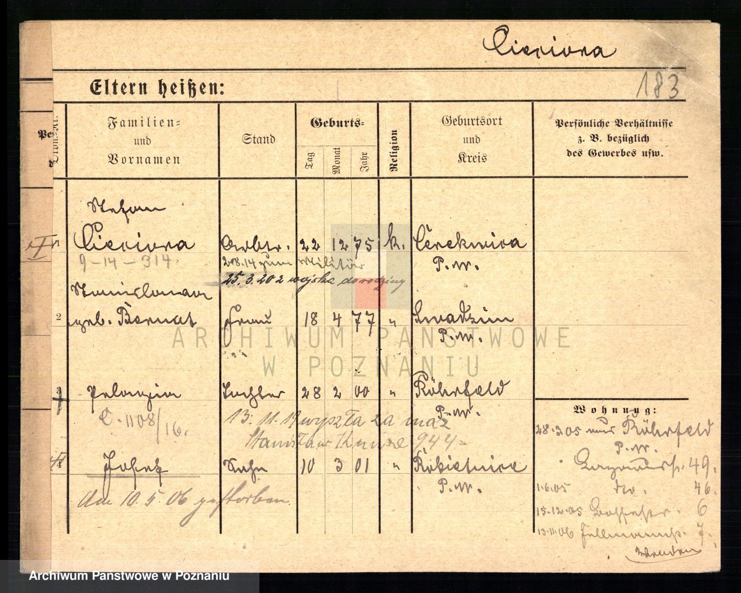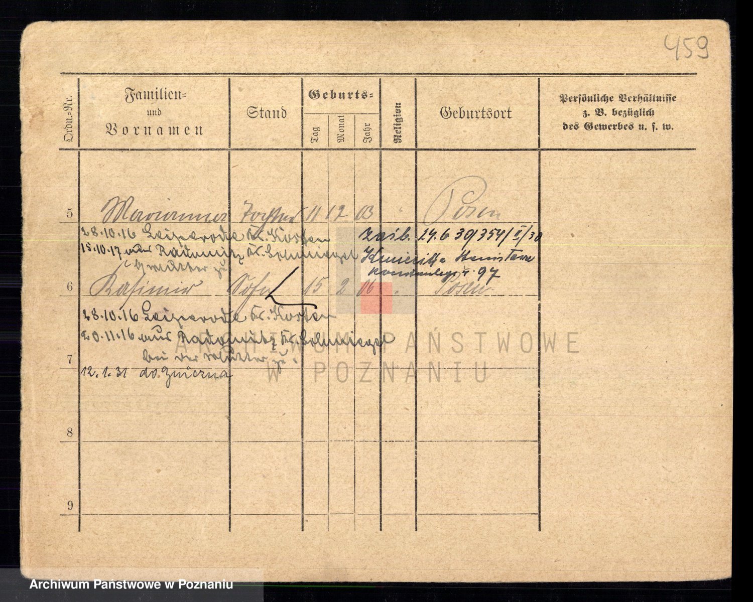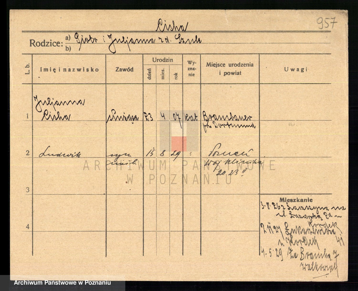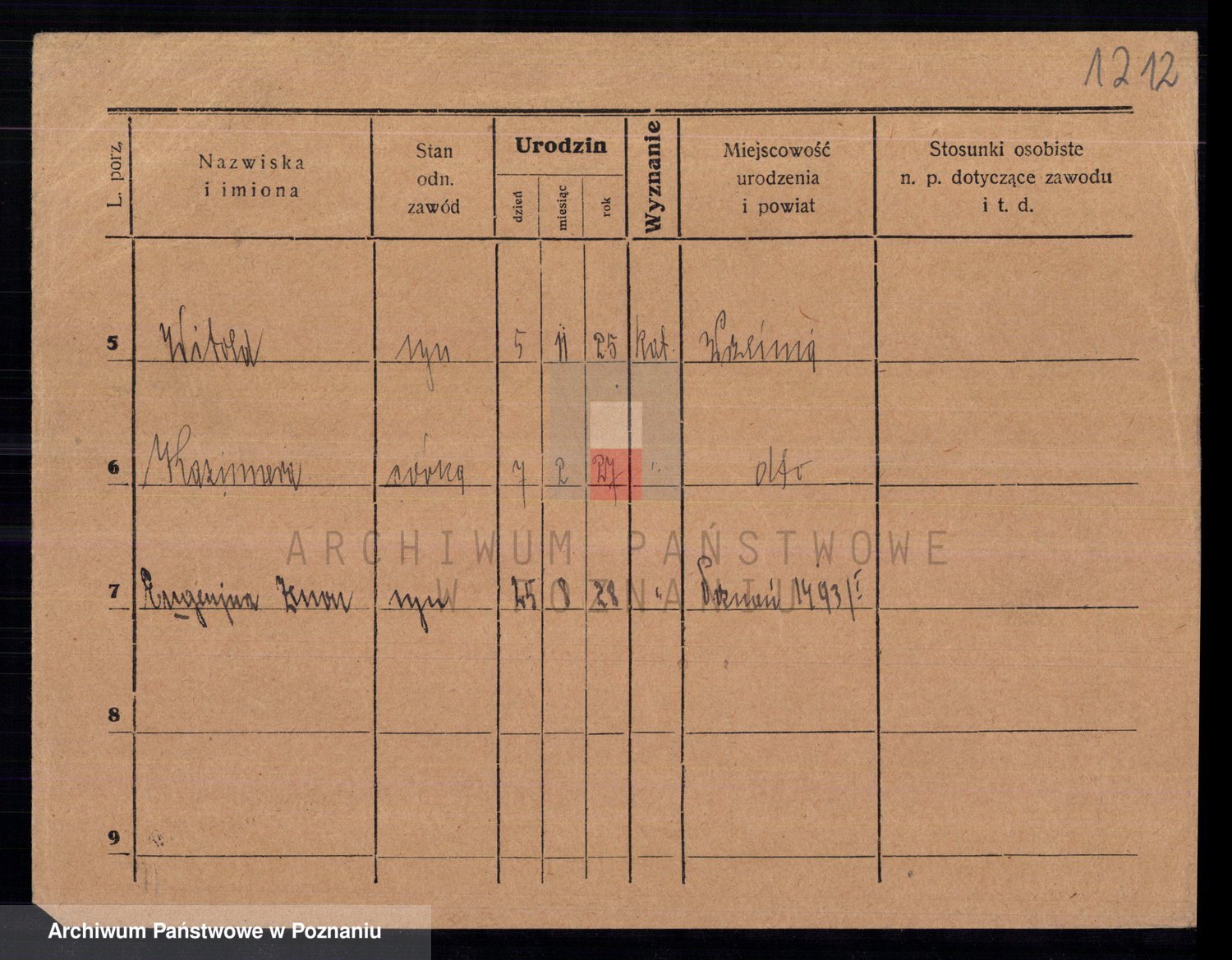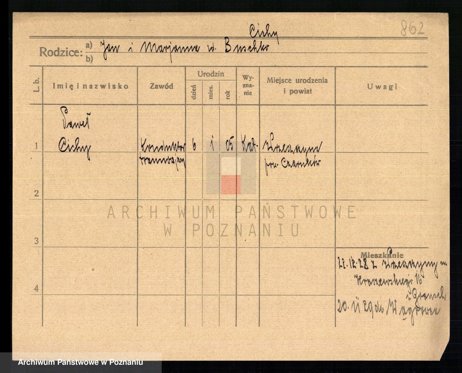 Podgląd karty osobowej dostępny jest po kliknięciu na nazwisko lub ikonkę karty. Można dokonywać powiększenia (ikony na górze) lub przechodzić między kolejnymi skanami (strzałki po bokach).