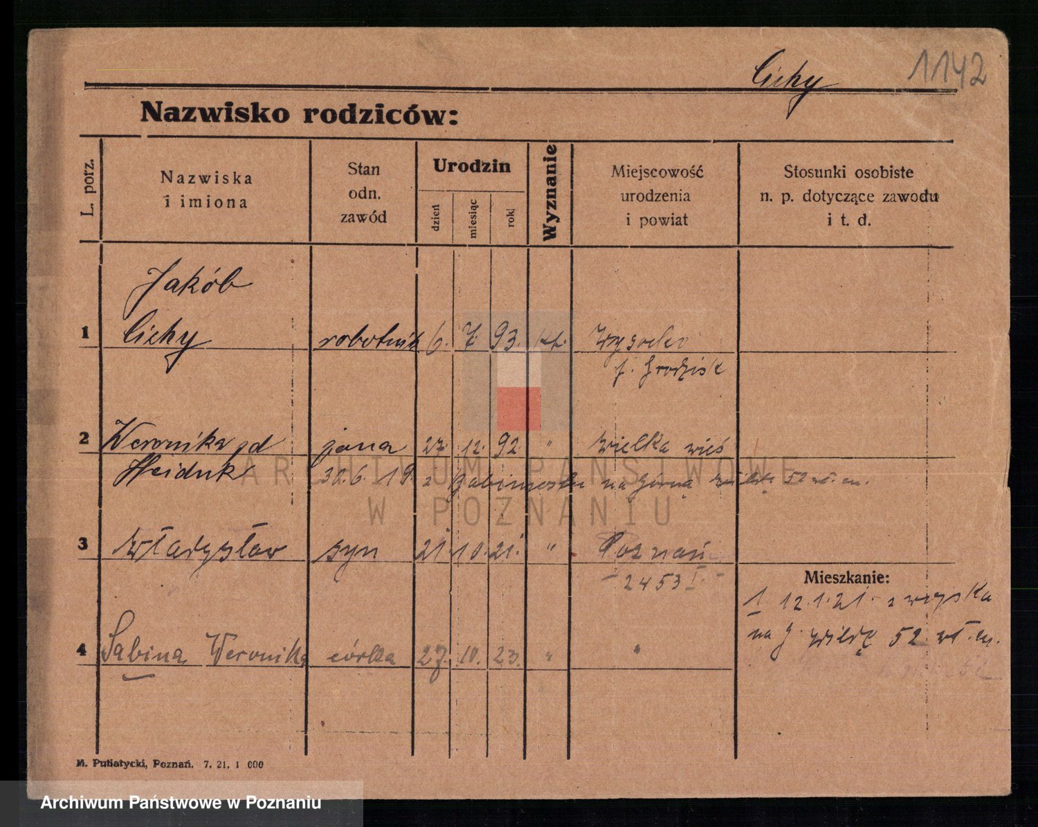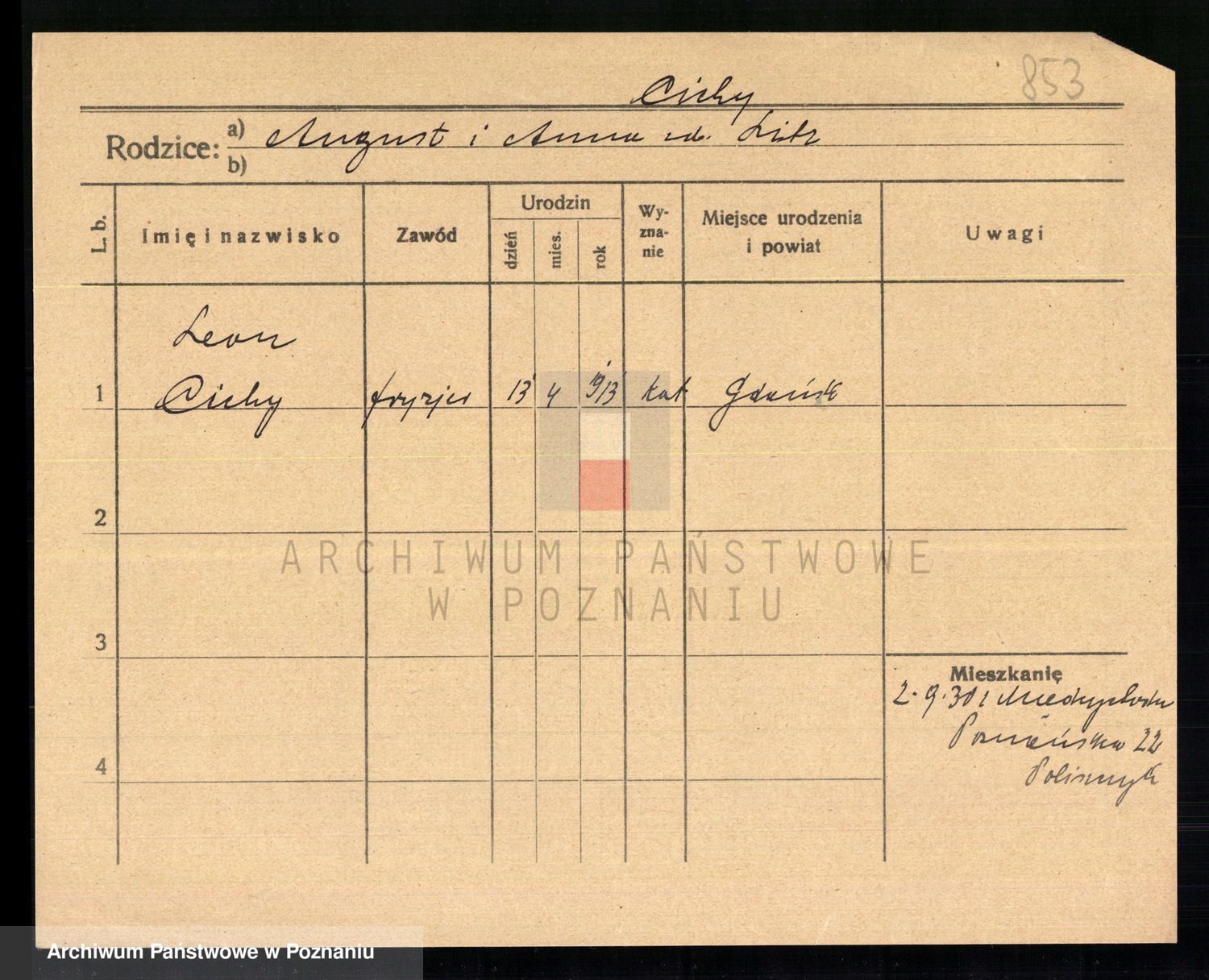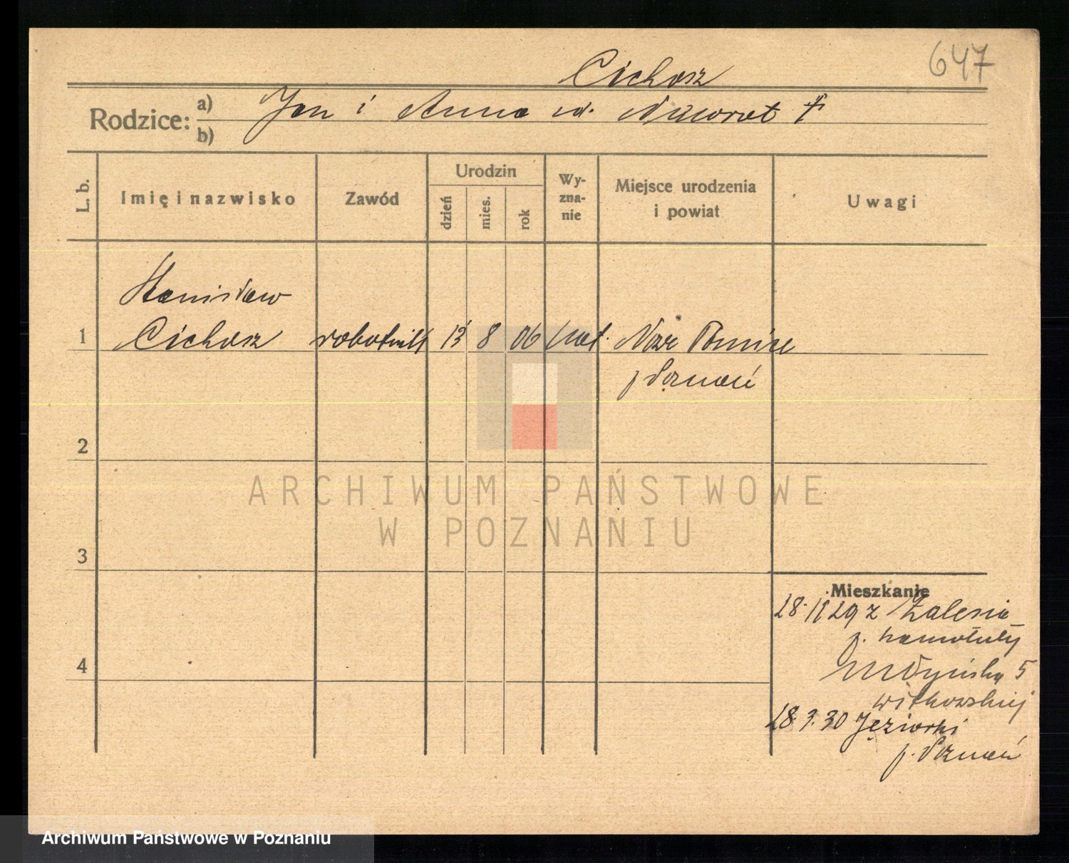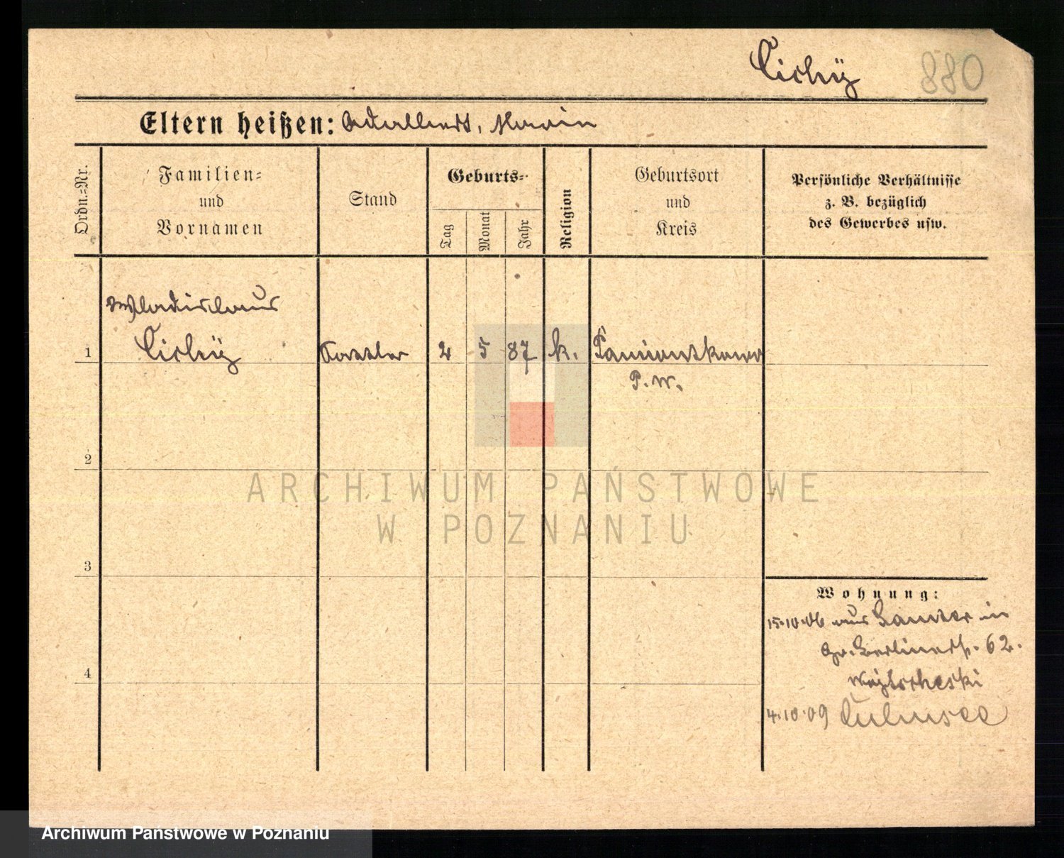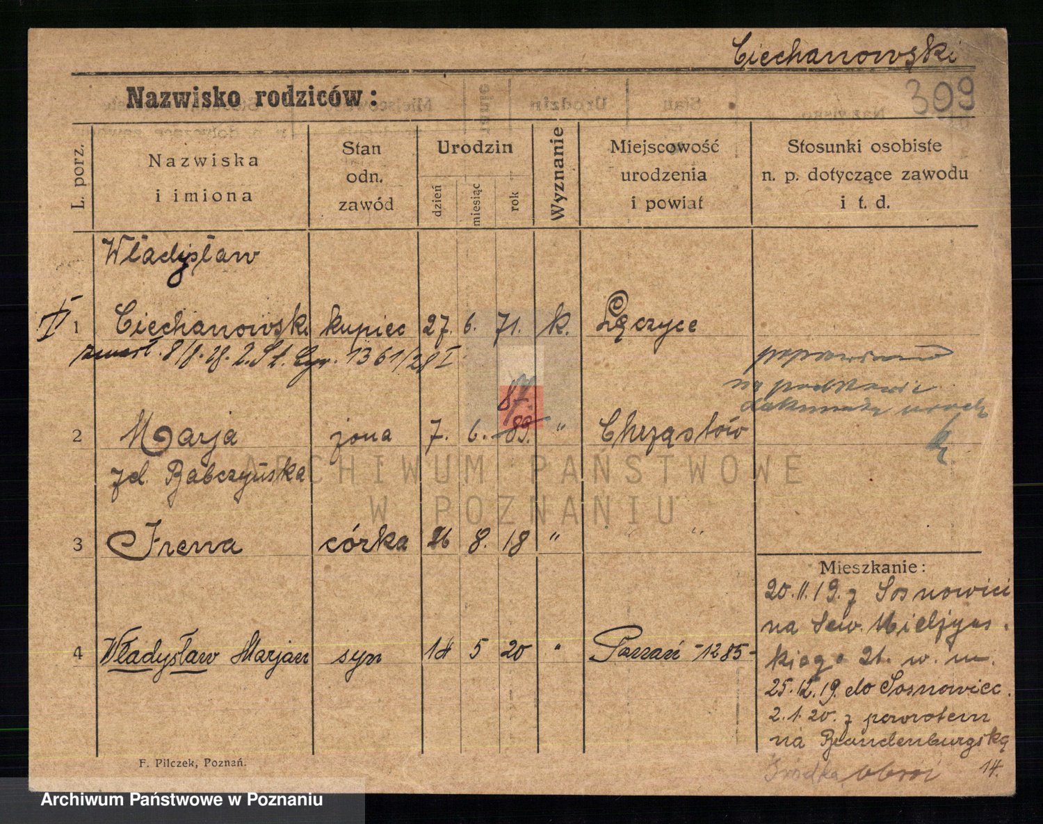 Podgląd karty osobowej dostępny jest po kliknięciu na nazwisko lub ikonkę karty. Można dokonywać powiększenia (ikony na górze) lub przechodzić między kolejnymi skanami (strzałki po bokach).