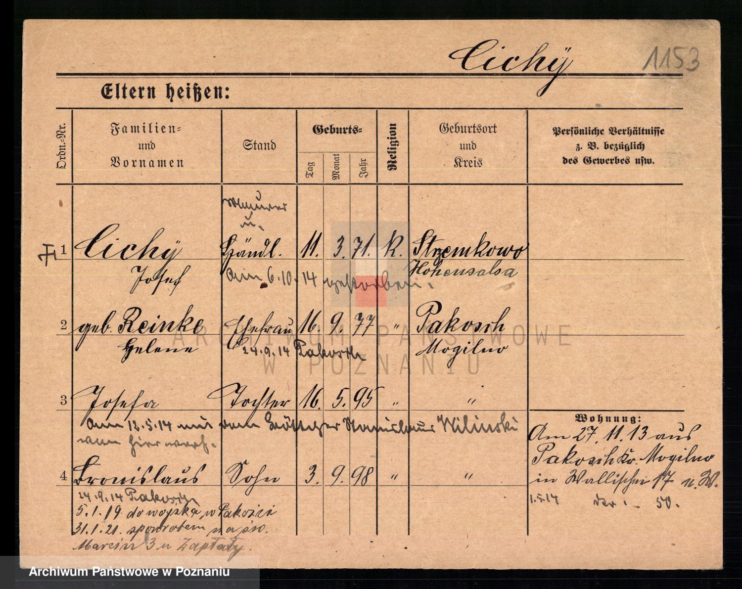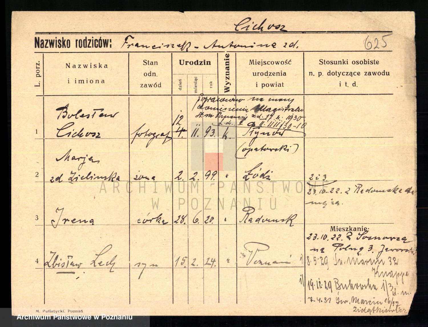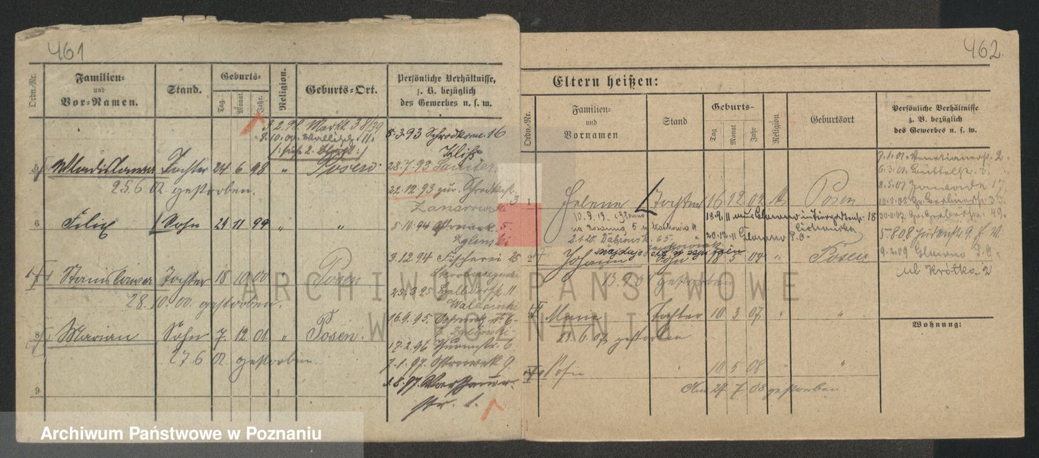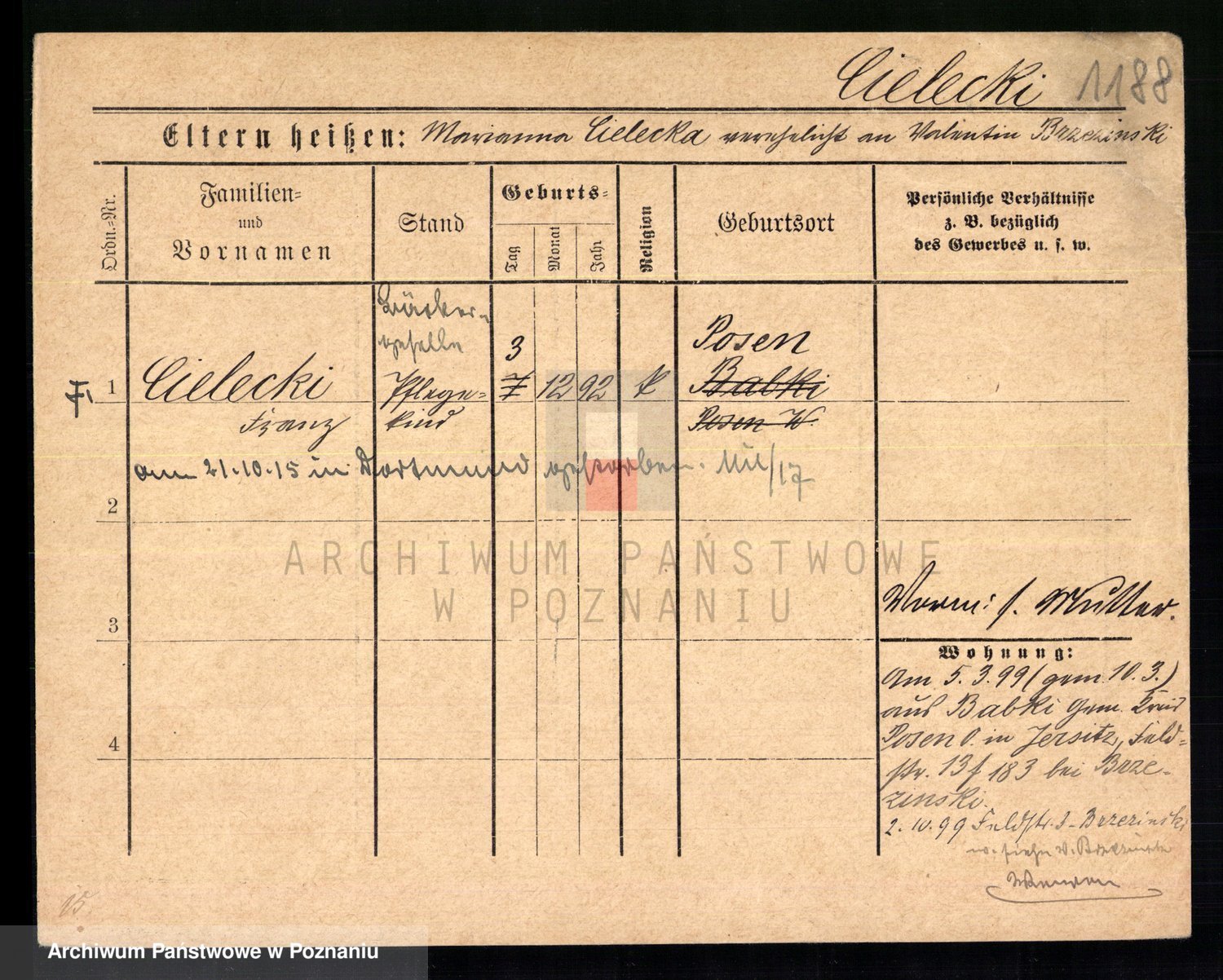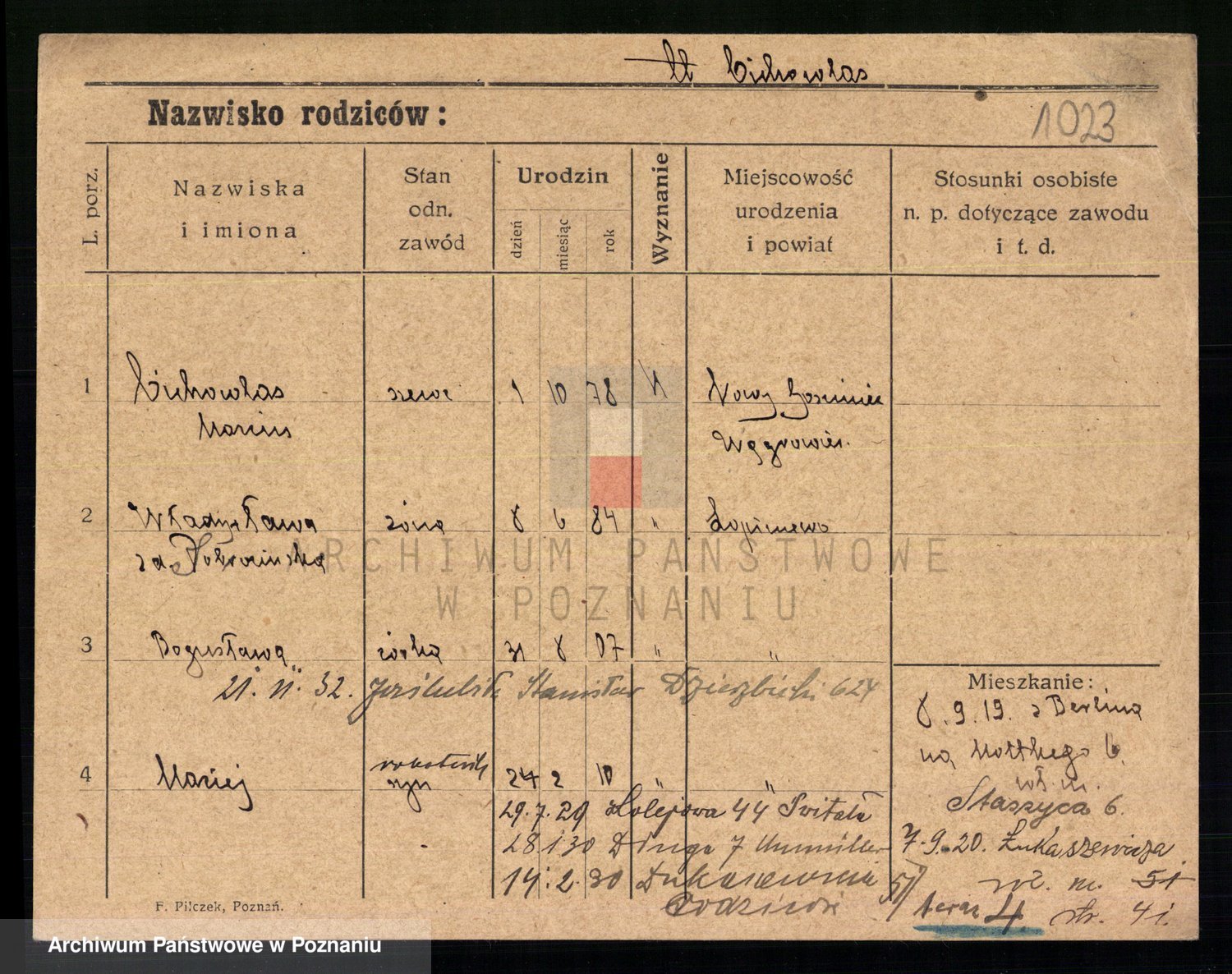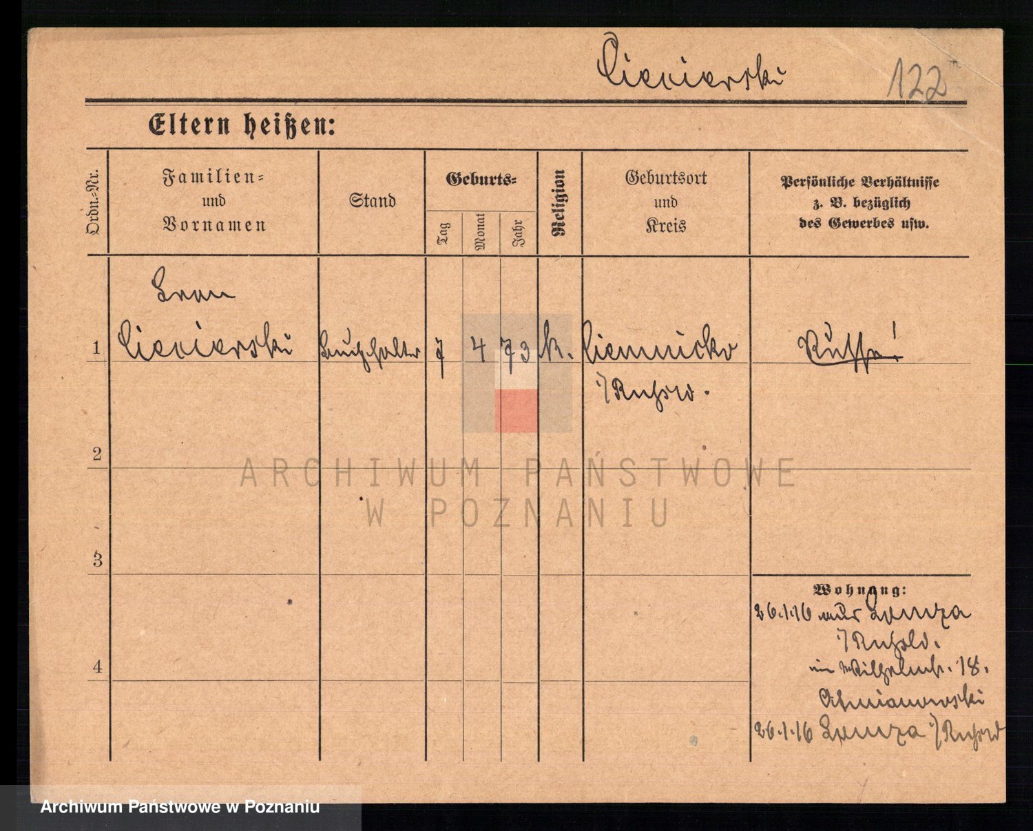 Podgląd karty osobowej dostępny jest po kliknięciu na nazwisko lub ikonkę karty. Można dokonywać powiększenia (ikony na górze) lub przechodzić między kolejnymi skanami (strzałki po bokach).