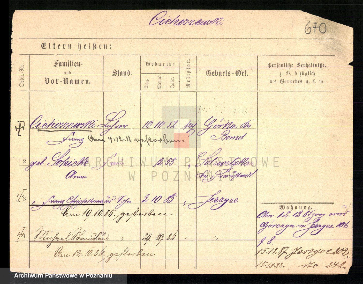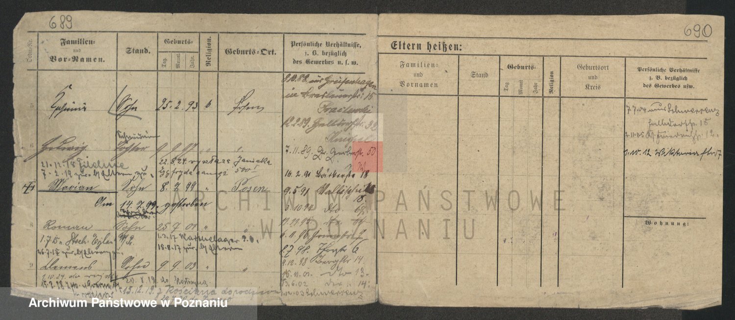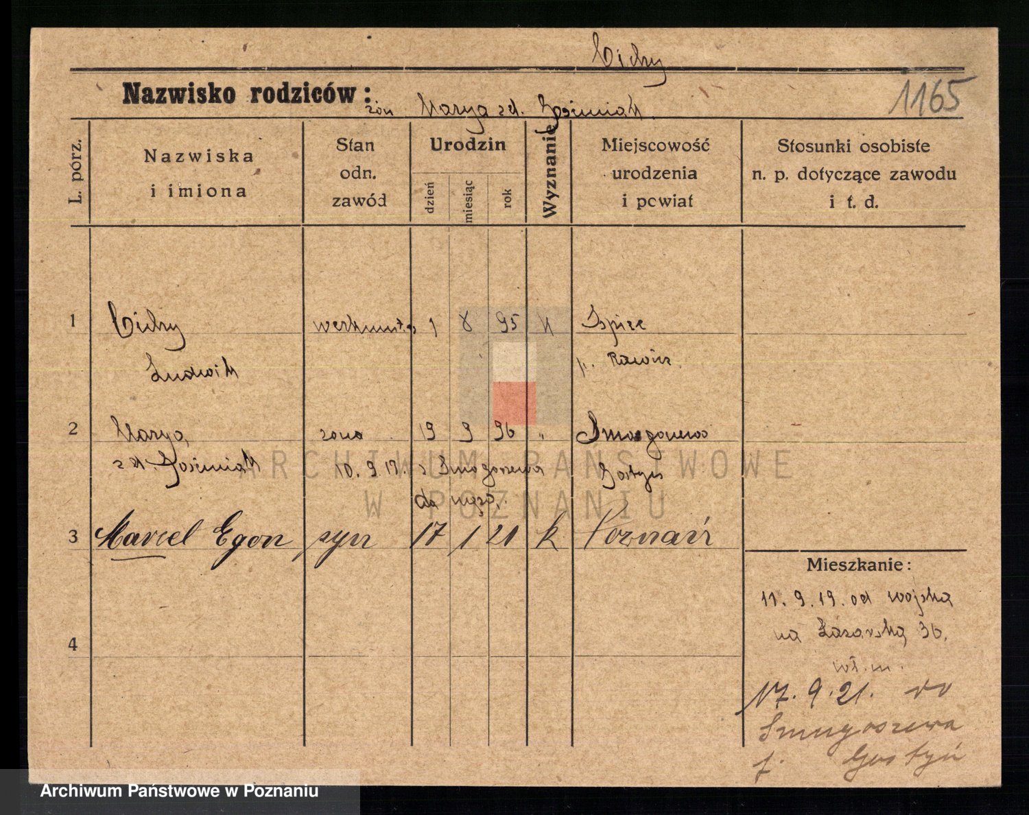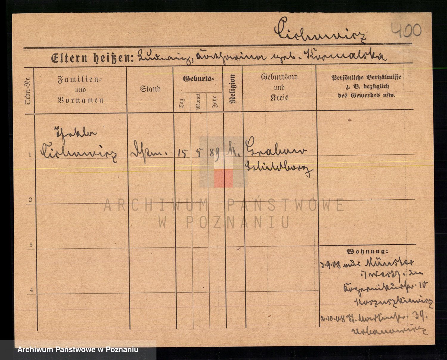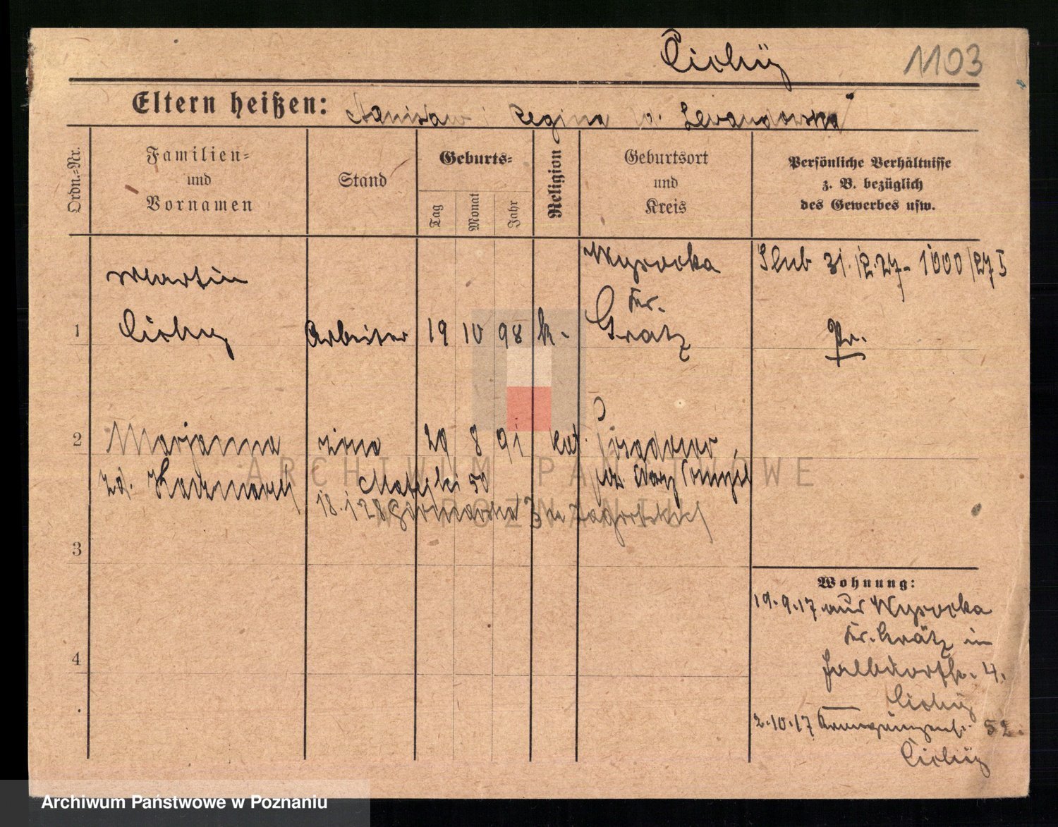 Podgląd karty osobowej dostępny jest po kliknięciu na nazwisko lub ikonkę karty. Można dokonywać powiększenia (ikony na górze) lub przechodzić między kolejnymi skanami (strzałki po bokach).
