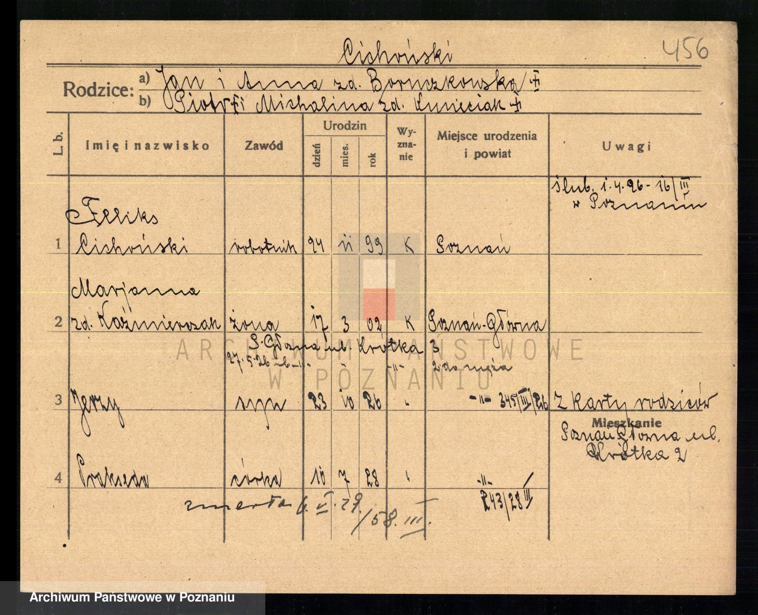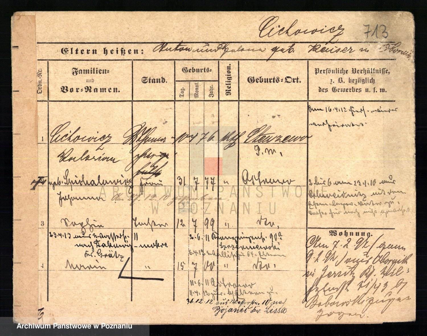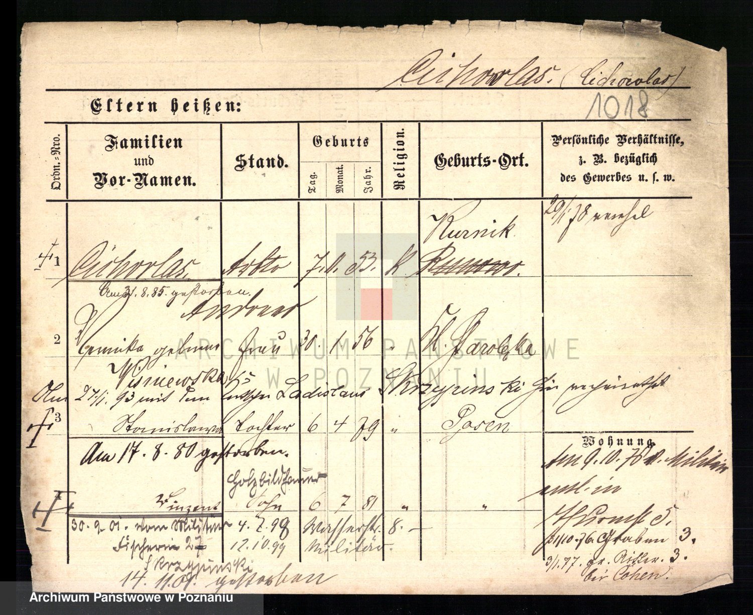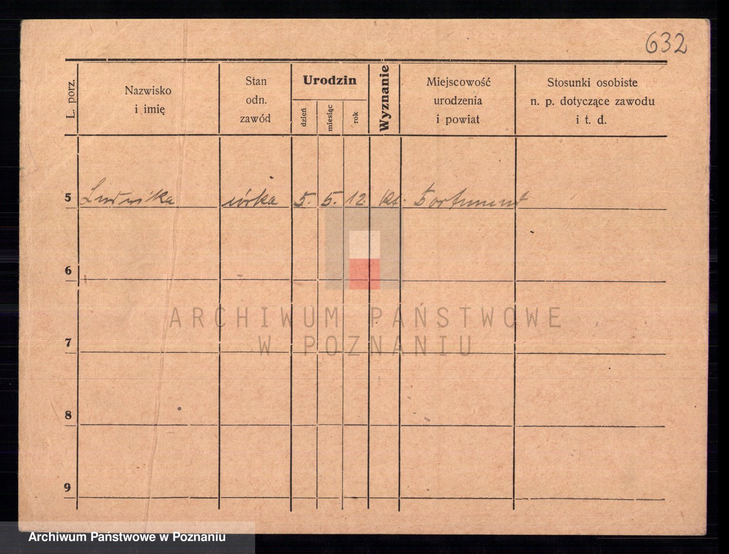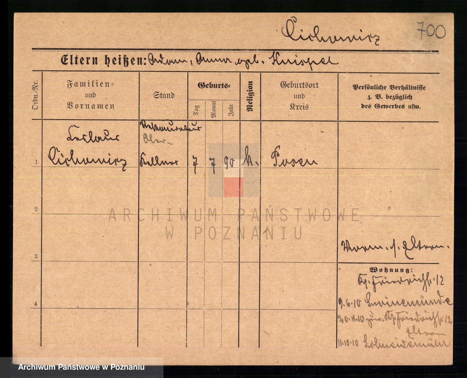 Podgląd karty osobowej dostępny jest po kliknięciu na nazwisko lub ikonkę karty. Można dokonywać powiększenia (ikony na górze) lub przechodzić między kolejnymi skanami (strzałki po bokach).