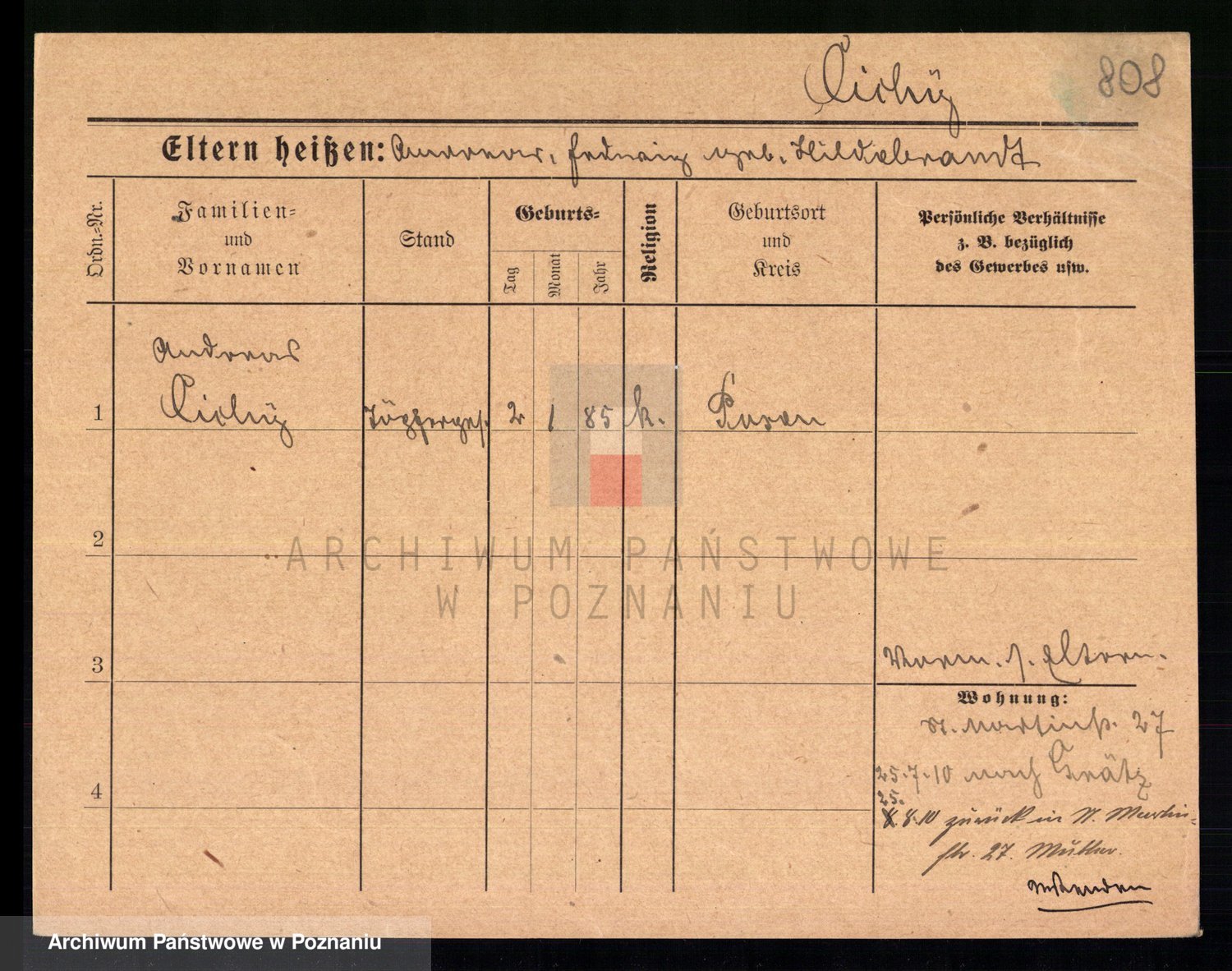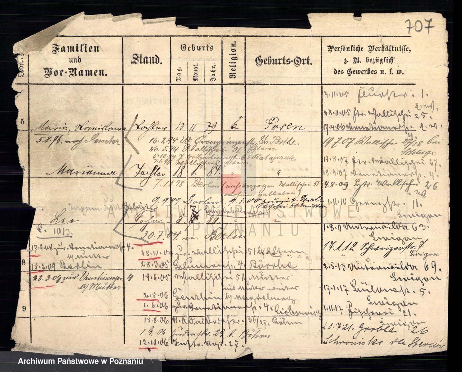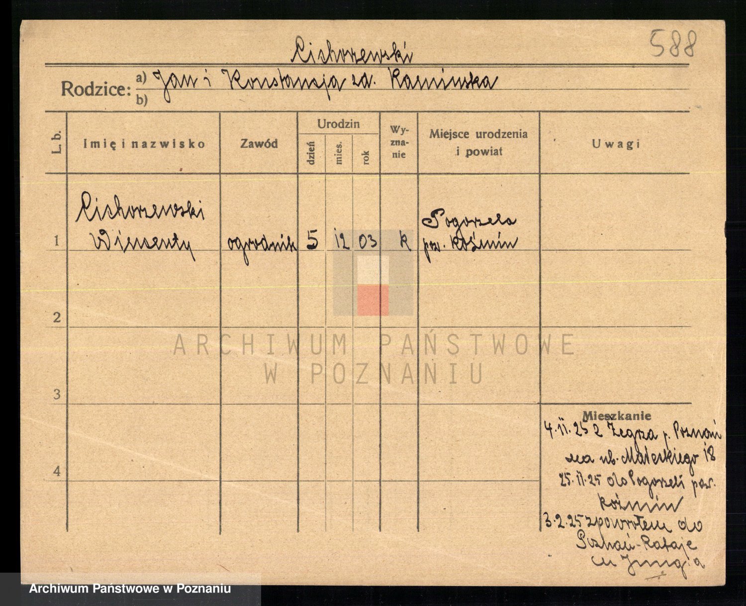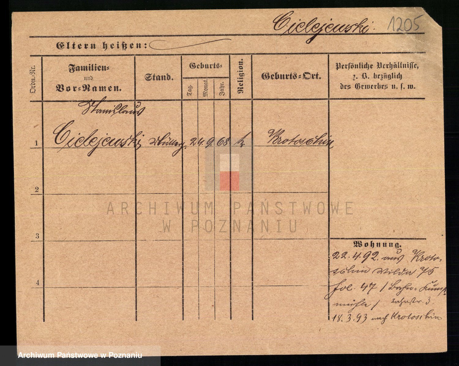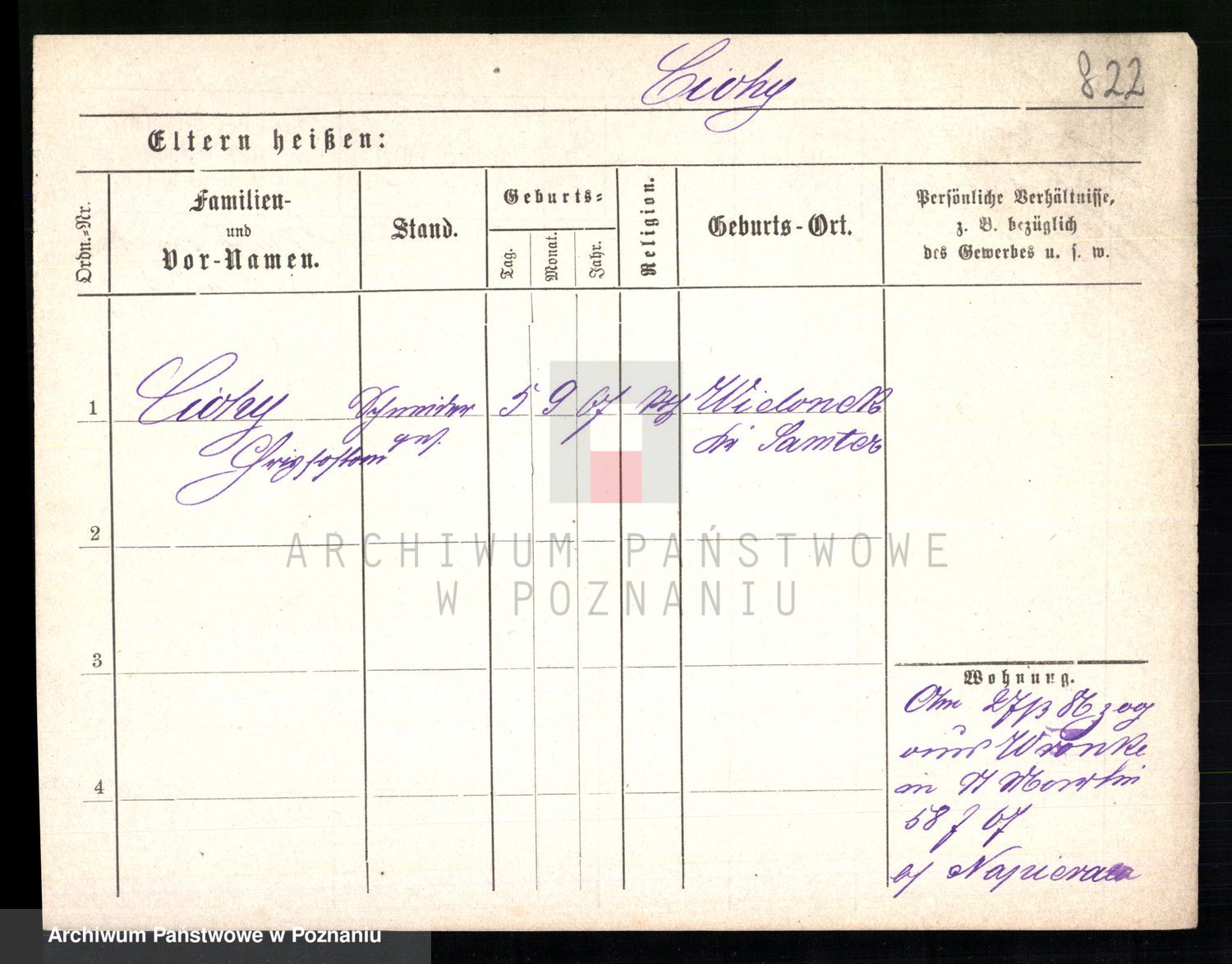 Podgląd karty osobowej dostępny jest po kliknięciu na nazwisko lub ikonkę karty. Można dokonywać powiększenia (ikony na górze) lub przechodzić między kolejnymi skanami (strzałki po bokach).