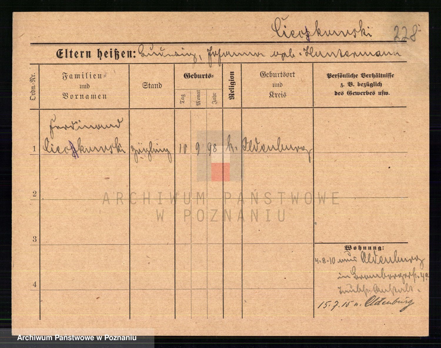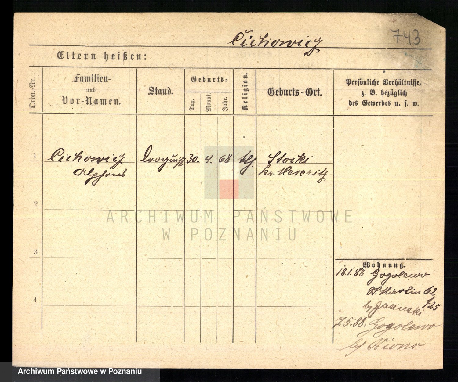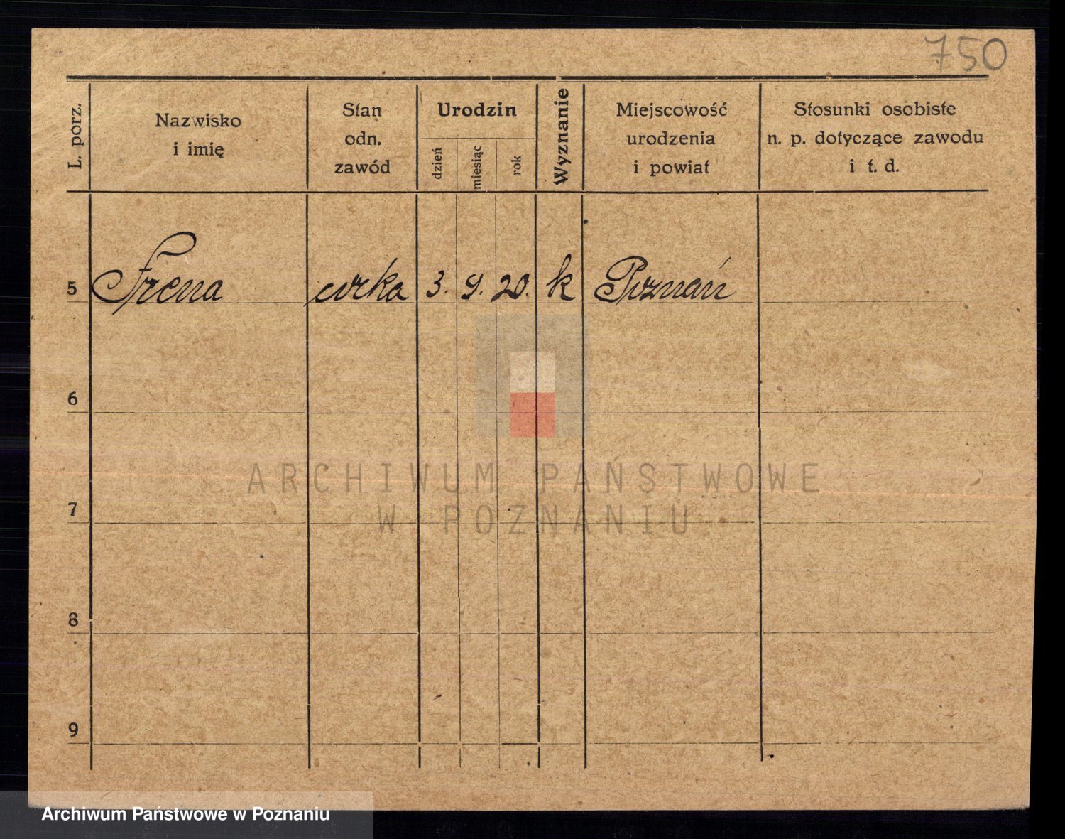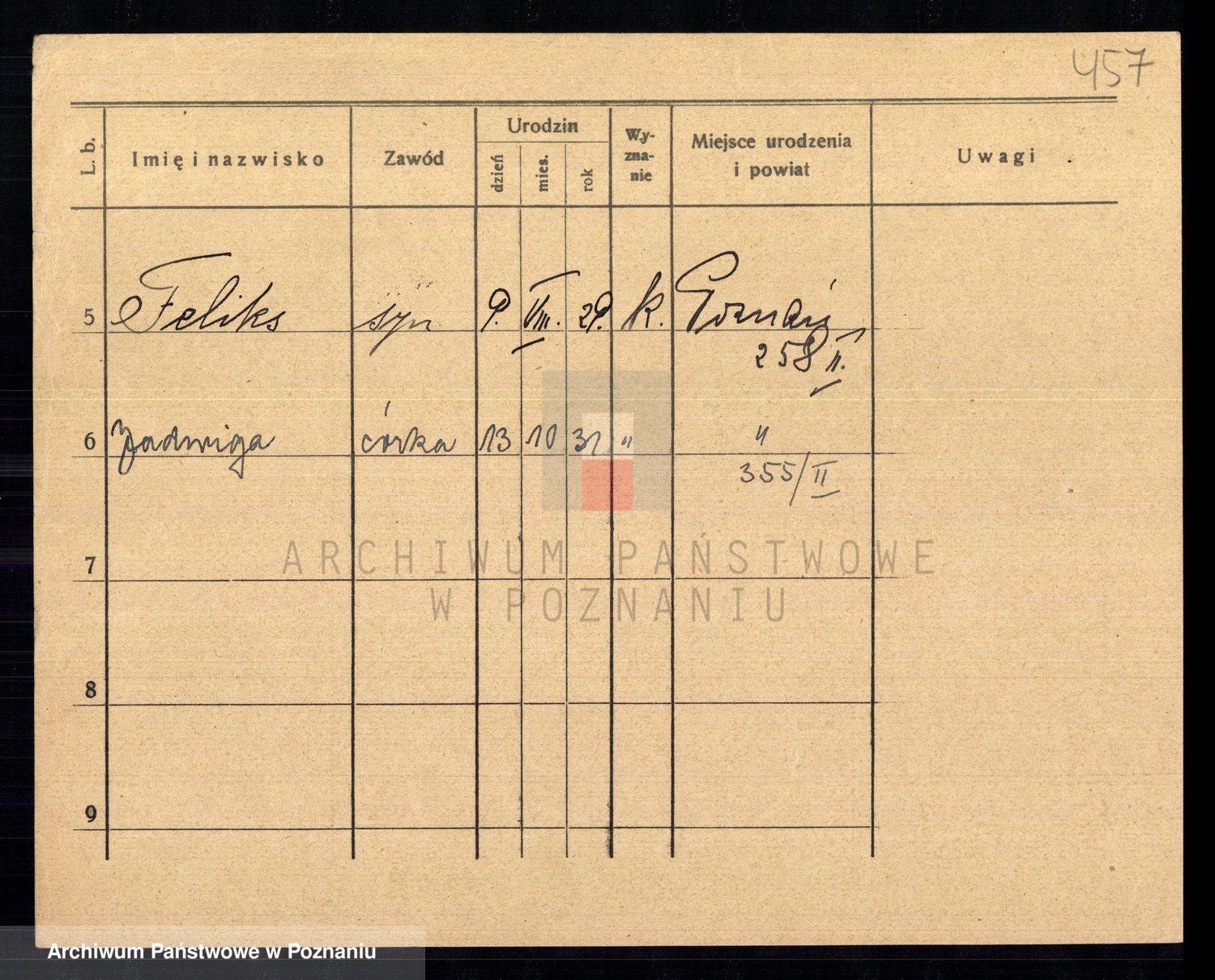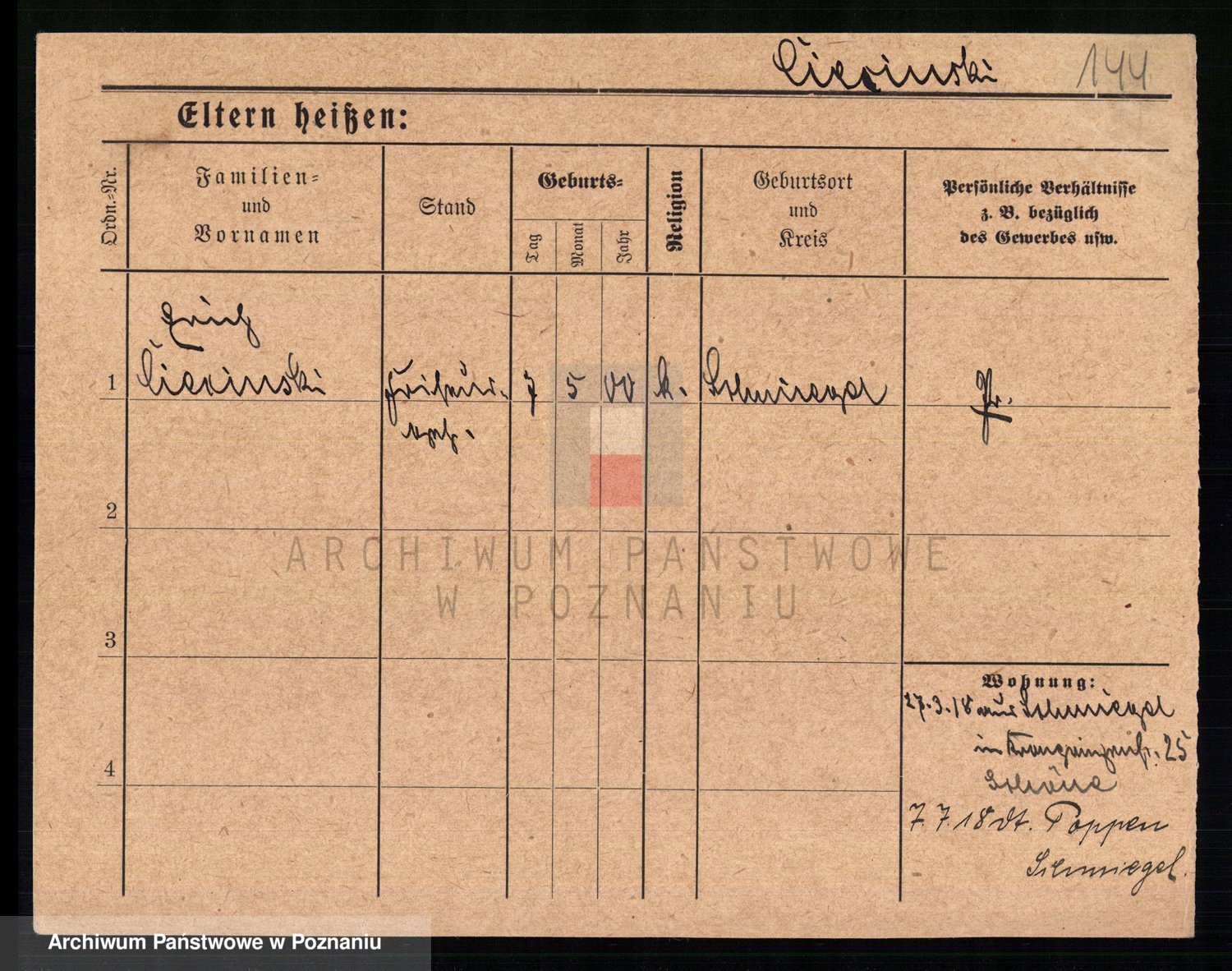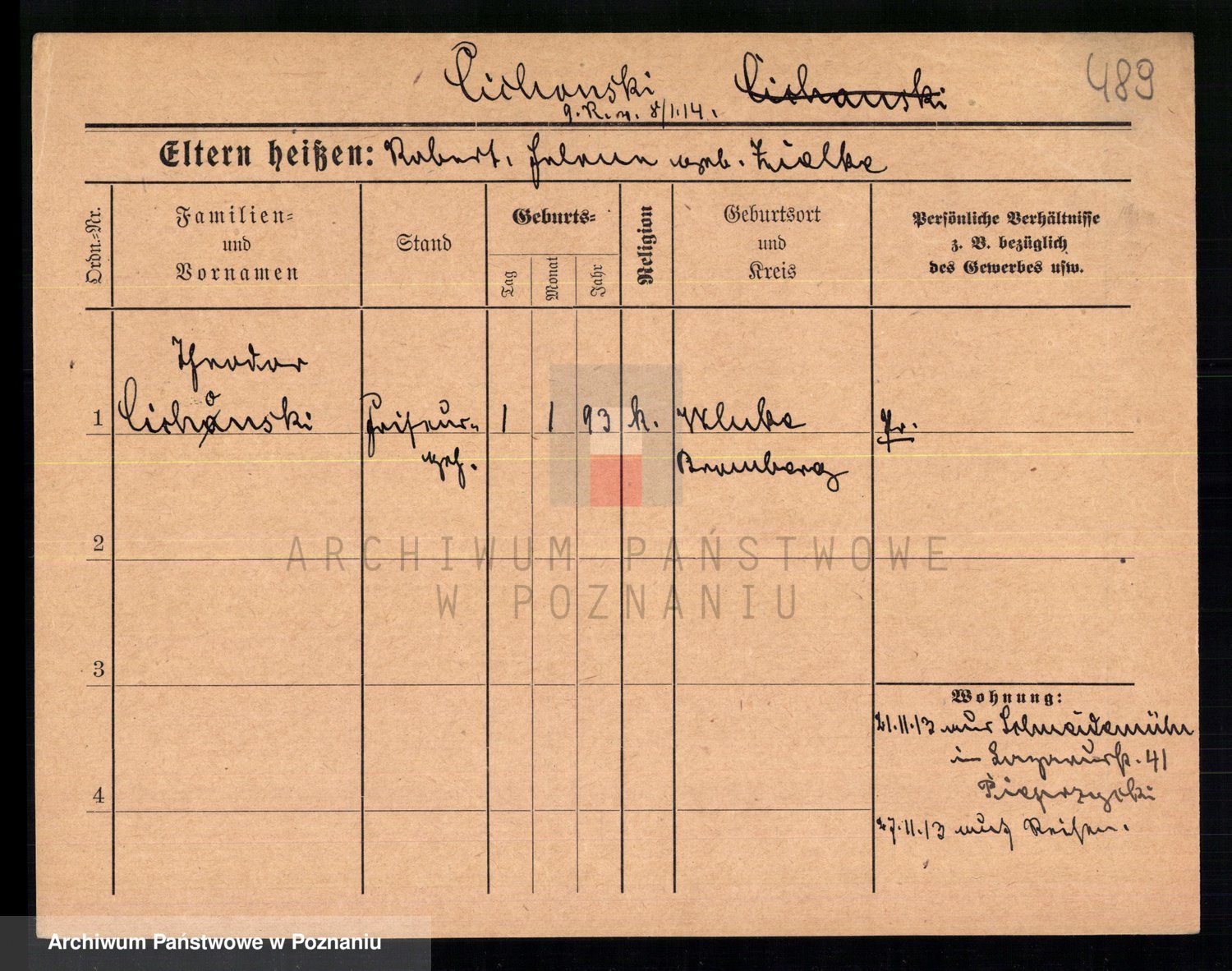 Podgląd karty osobowej dostępny jest po kliknięciu na nazwisko lub ikonkę karty. Można dokonywać powiększenia (ikony na górze) lub przechodzić między kolejnymi skanami (strzałki po bokach).