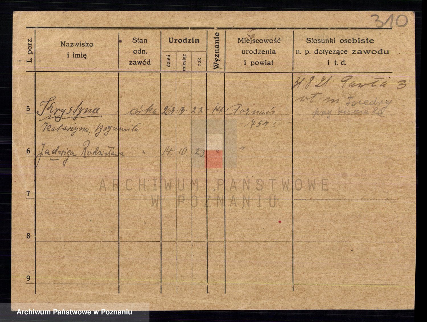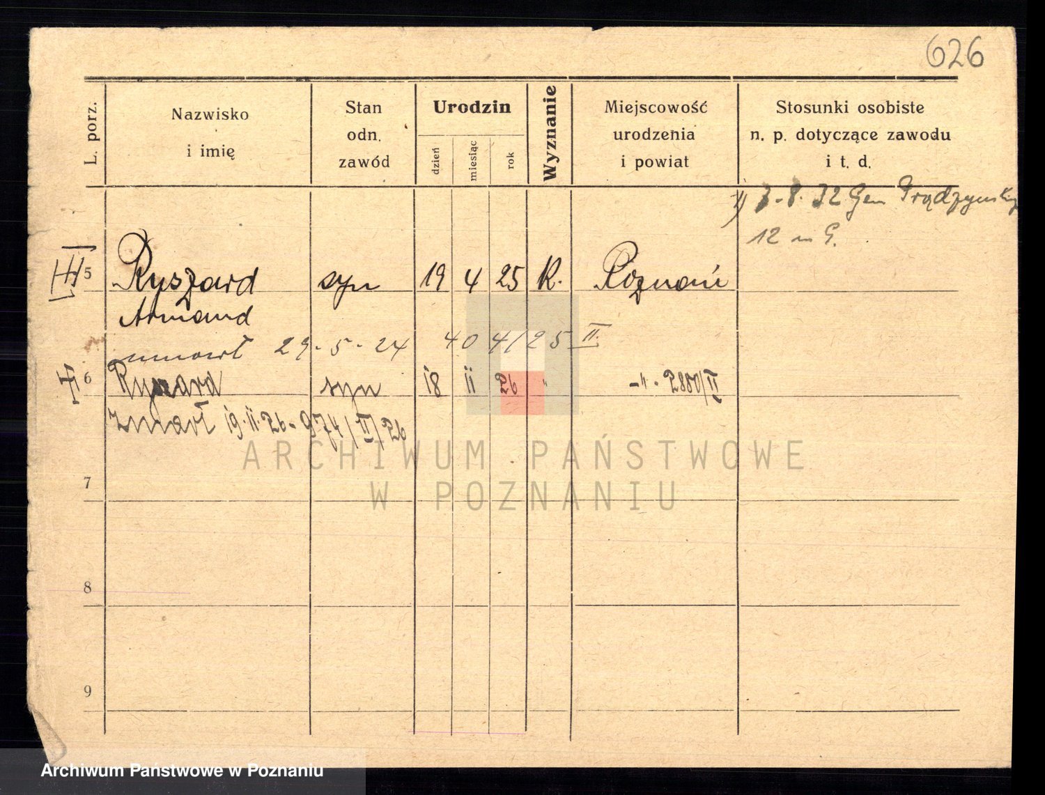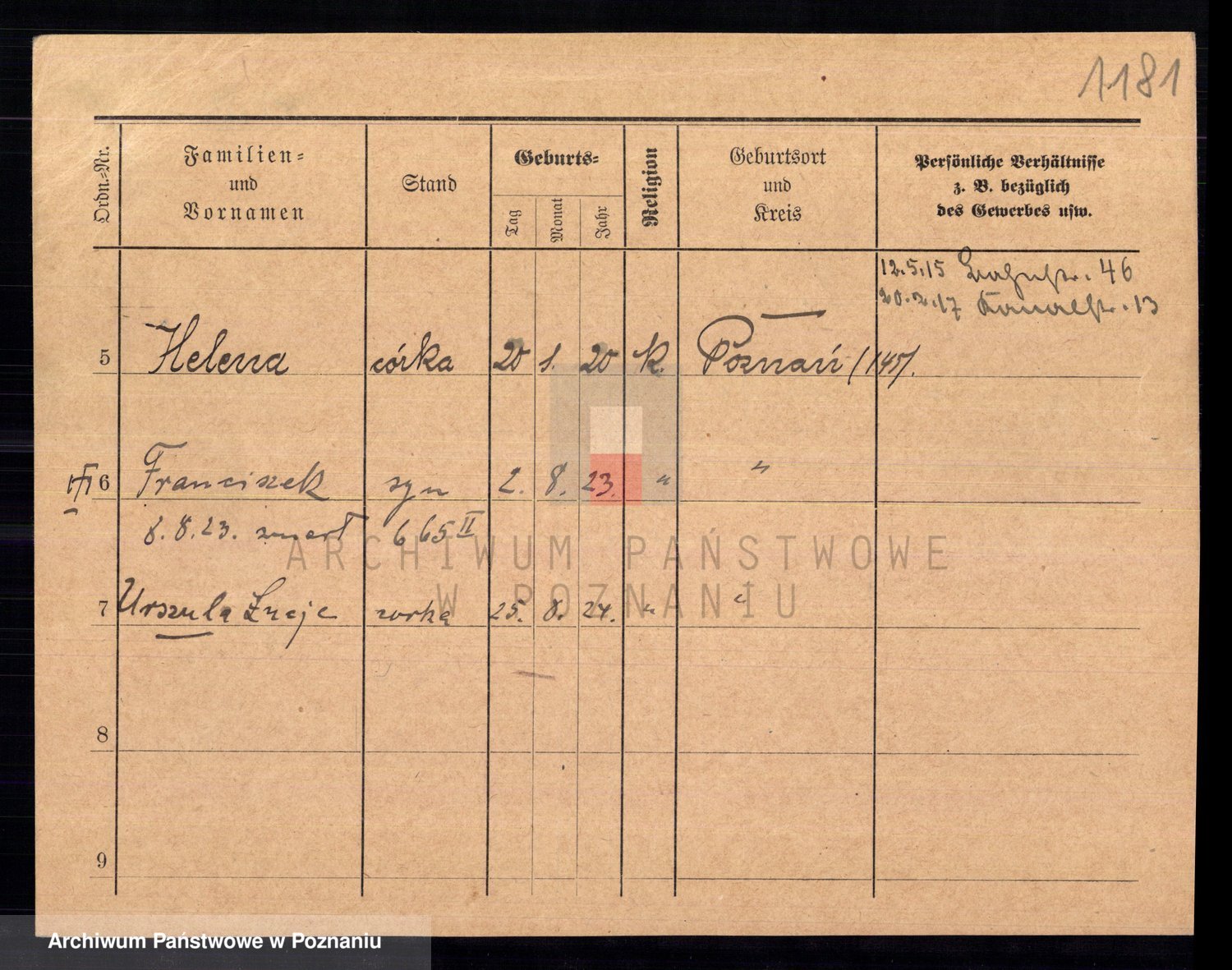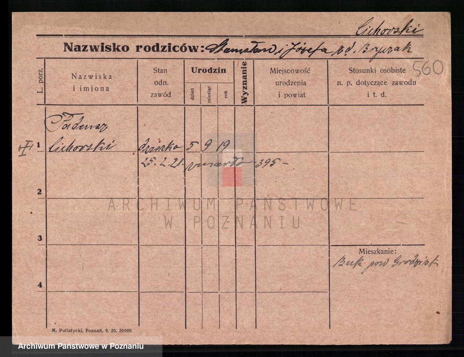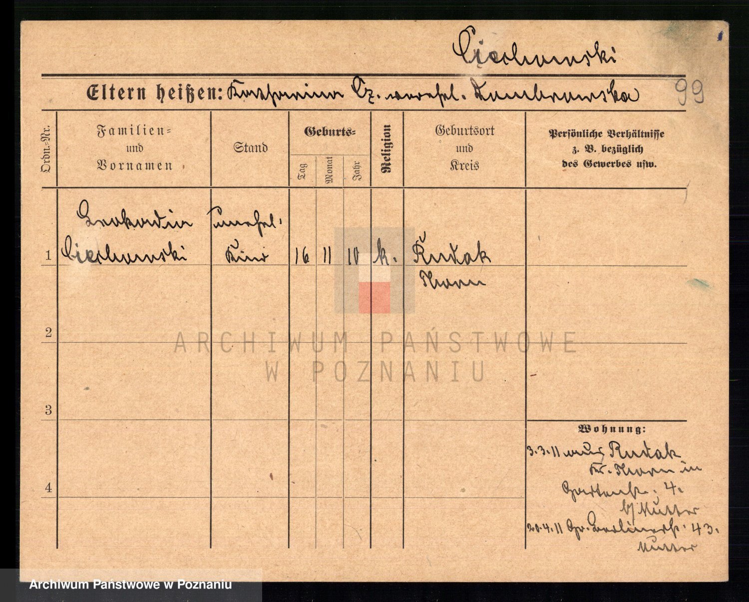 Podgląd karty osobowej dostępny jest po kliknięciu na nazwisko lub ikonkę karty. Można dokonywać powiększenia (ikony na górze) lub przechodzić między kolejnymi skanami (strzałki po bokach).