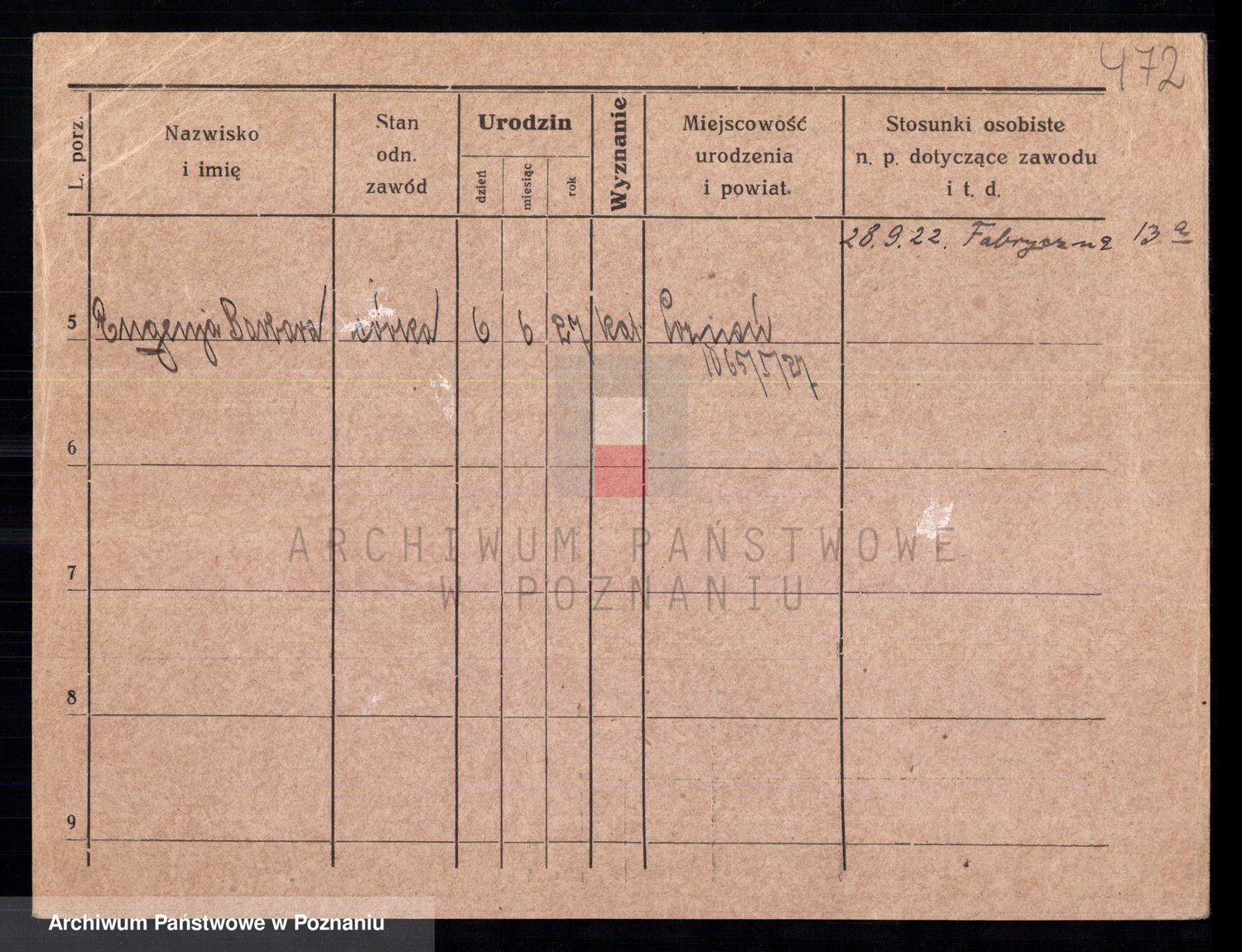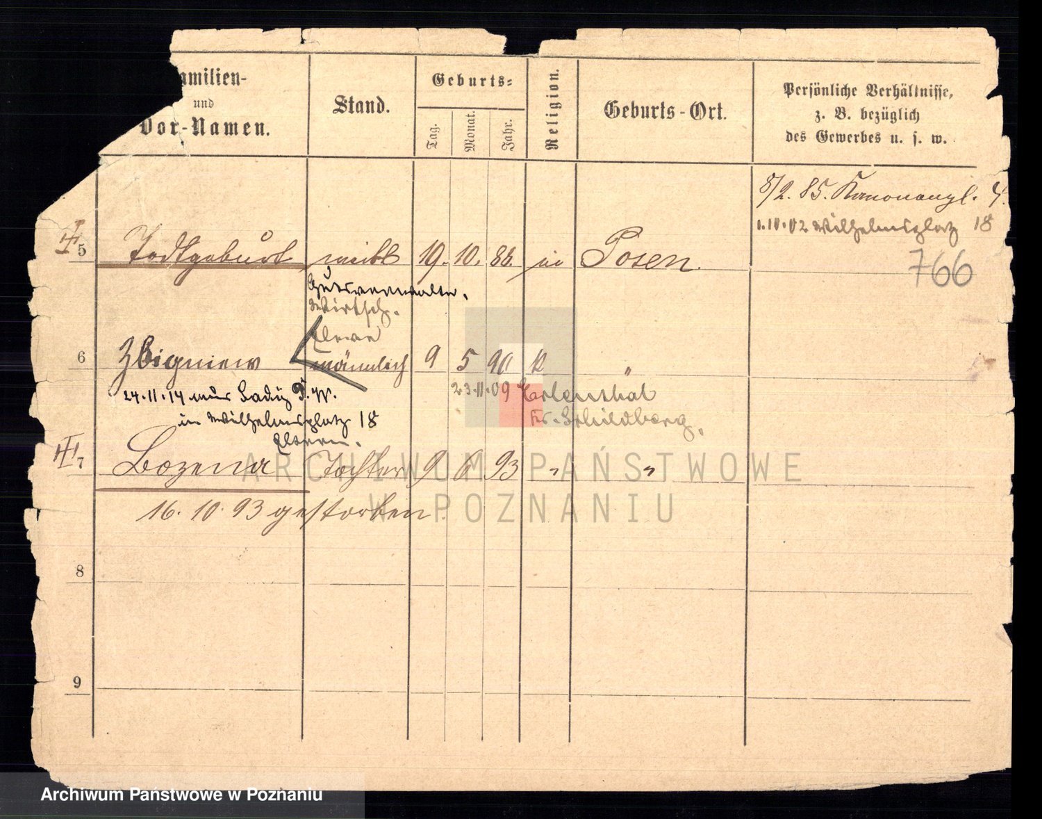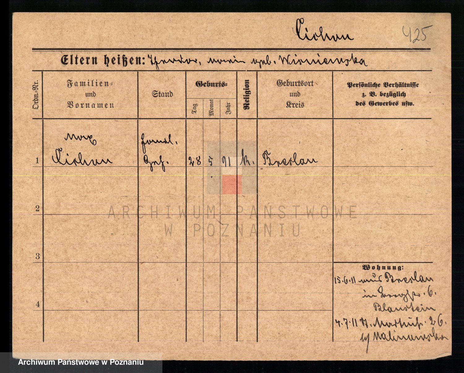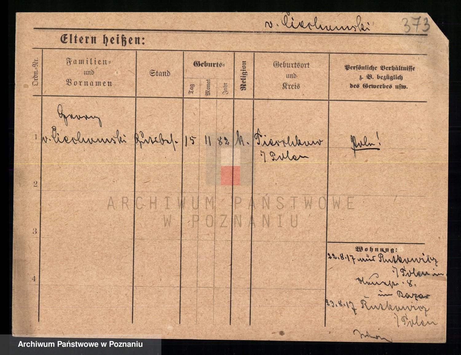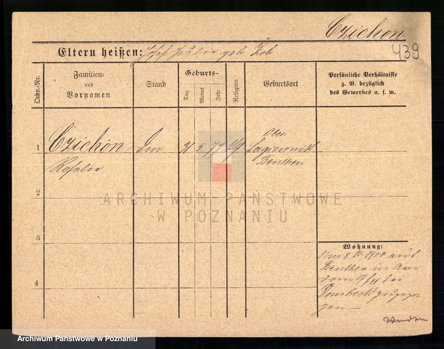 Podgląd karty osobowej dostępny jest po kliknięciu na nazwisko lub ikonkę karty. Można dokonywać powiększenia (ikony na górze) lub przechodzić między kolejnymi skanami (strzałki po bokach).