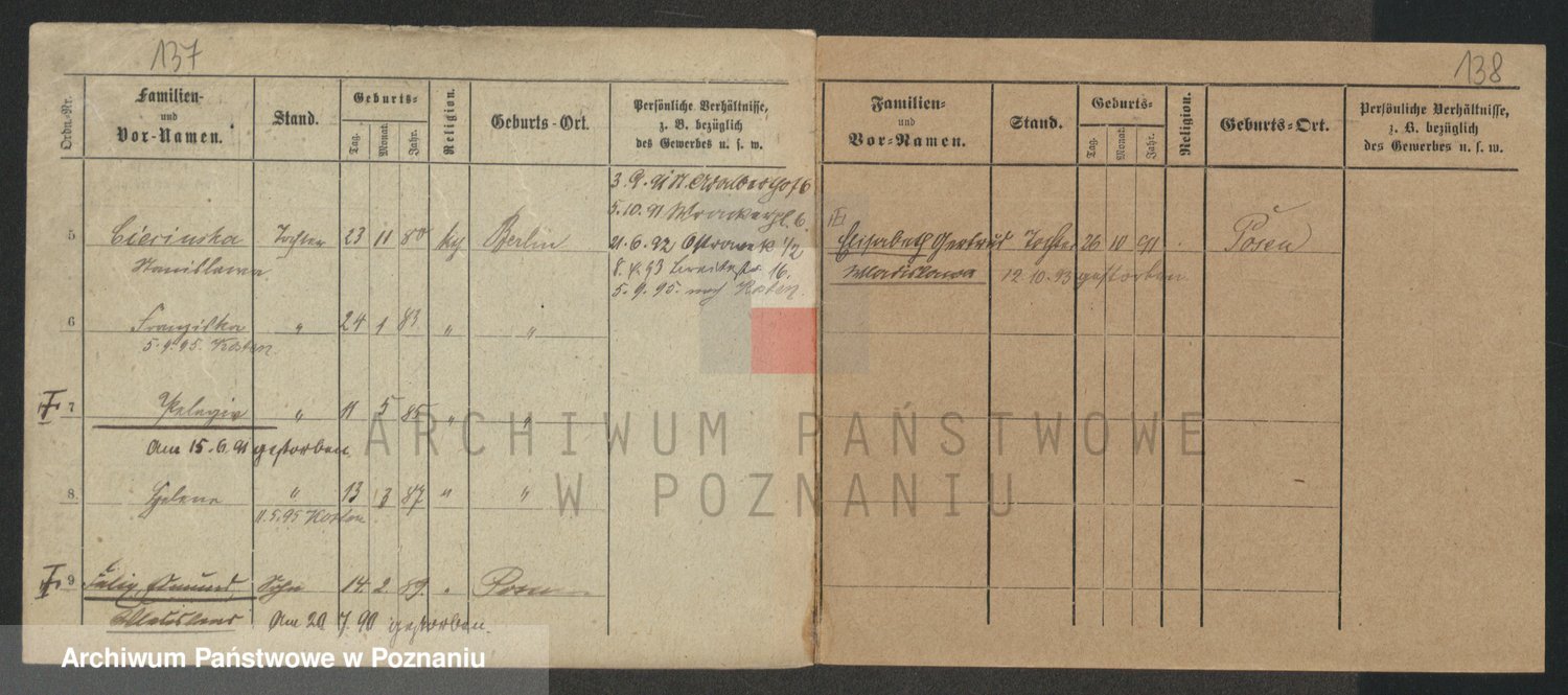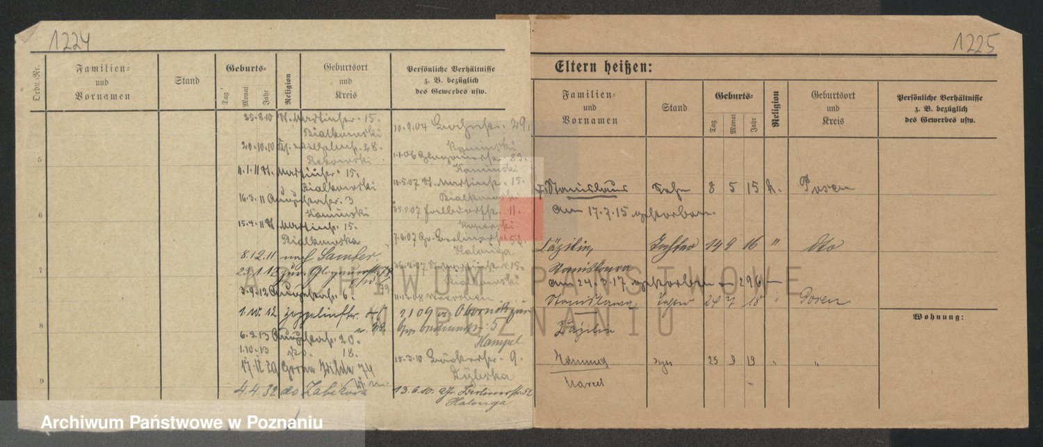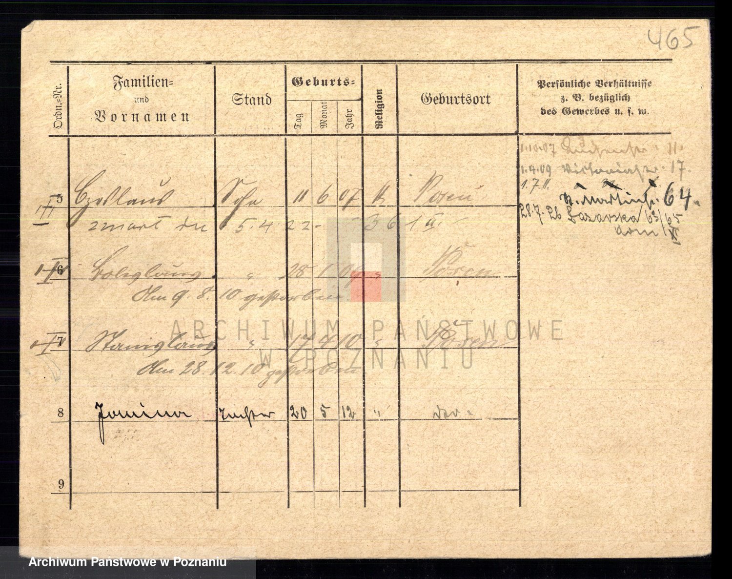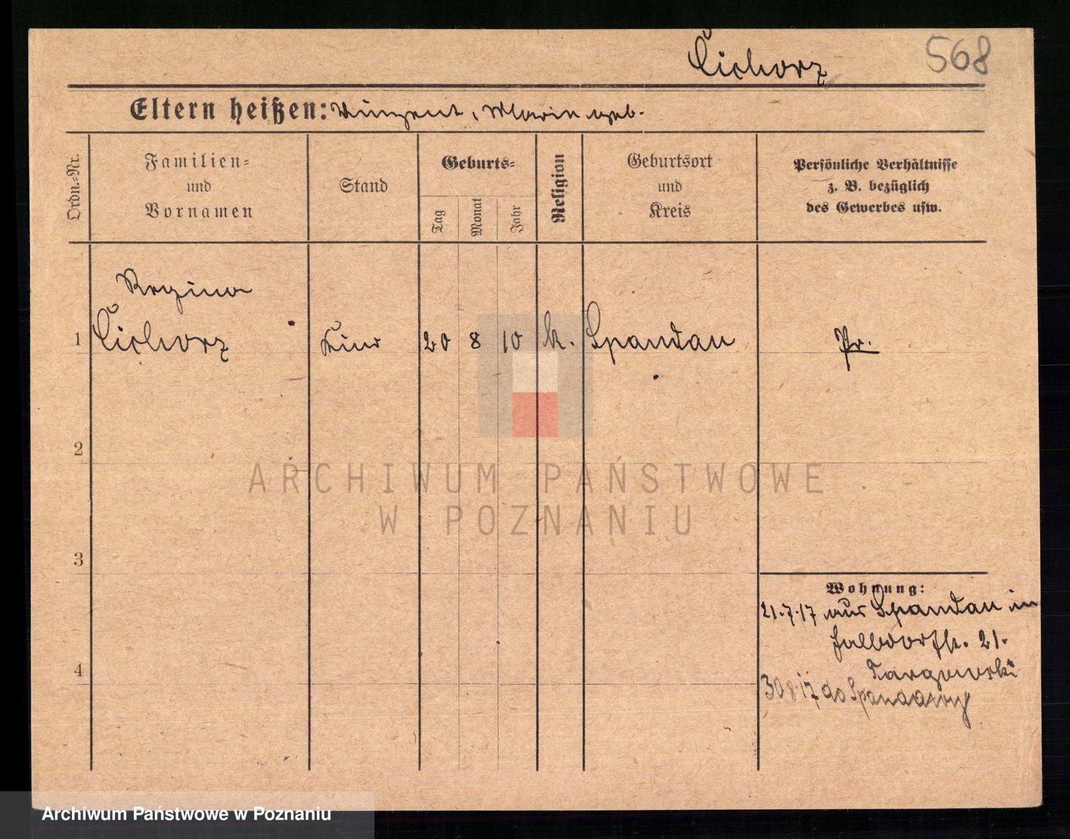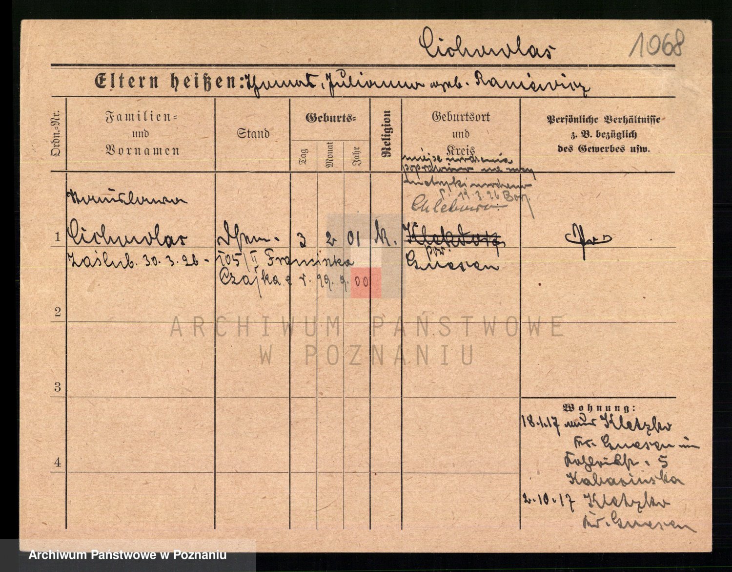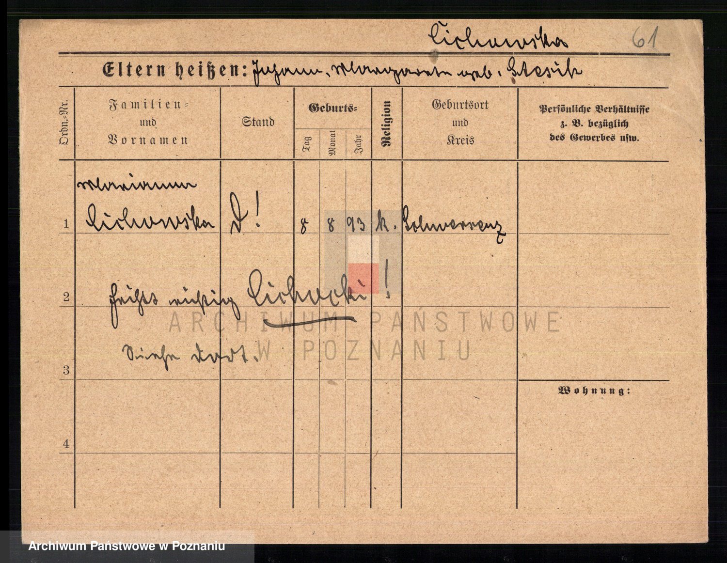 Podgląd karty osobowej dostępny jest po kliknięciu na nazwisko lub ikonkę karty. Można dokonywać powiększenia (ikony na górze) lub przechodzić między kolejnymi skanami (strzałki po bokach).
