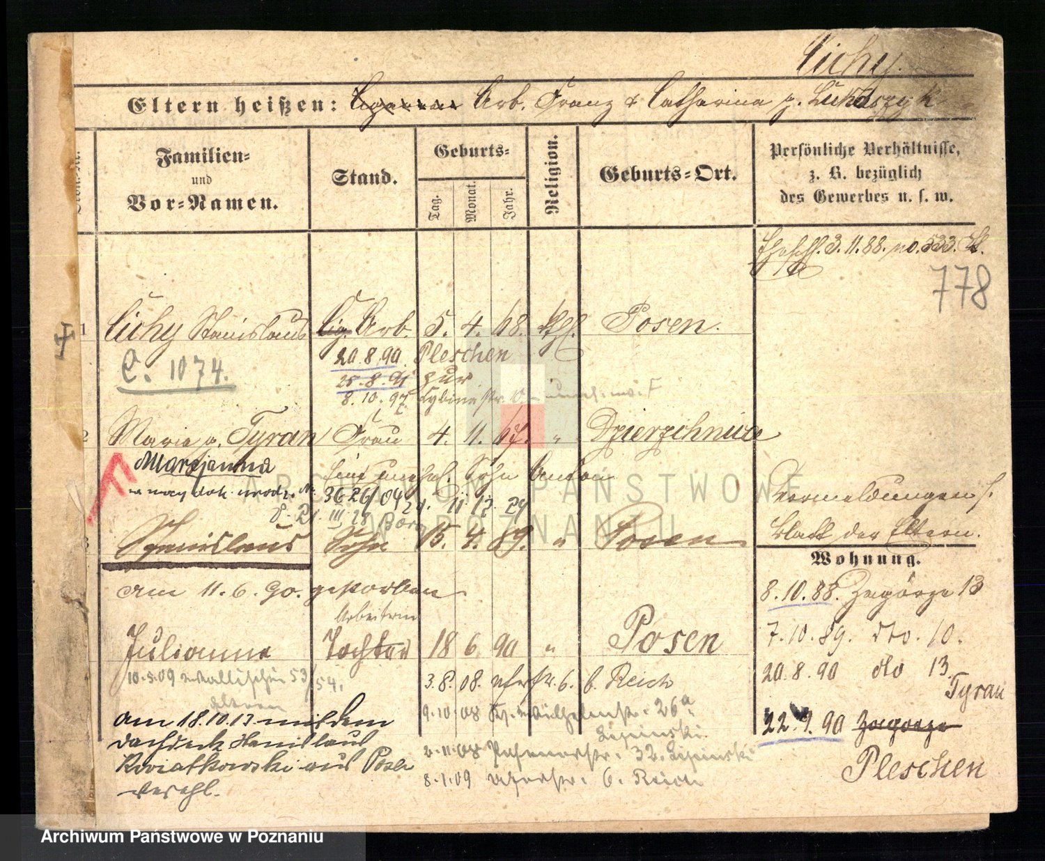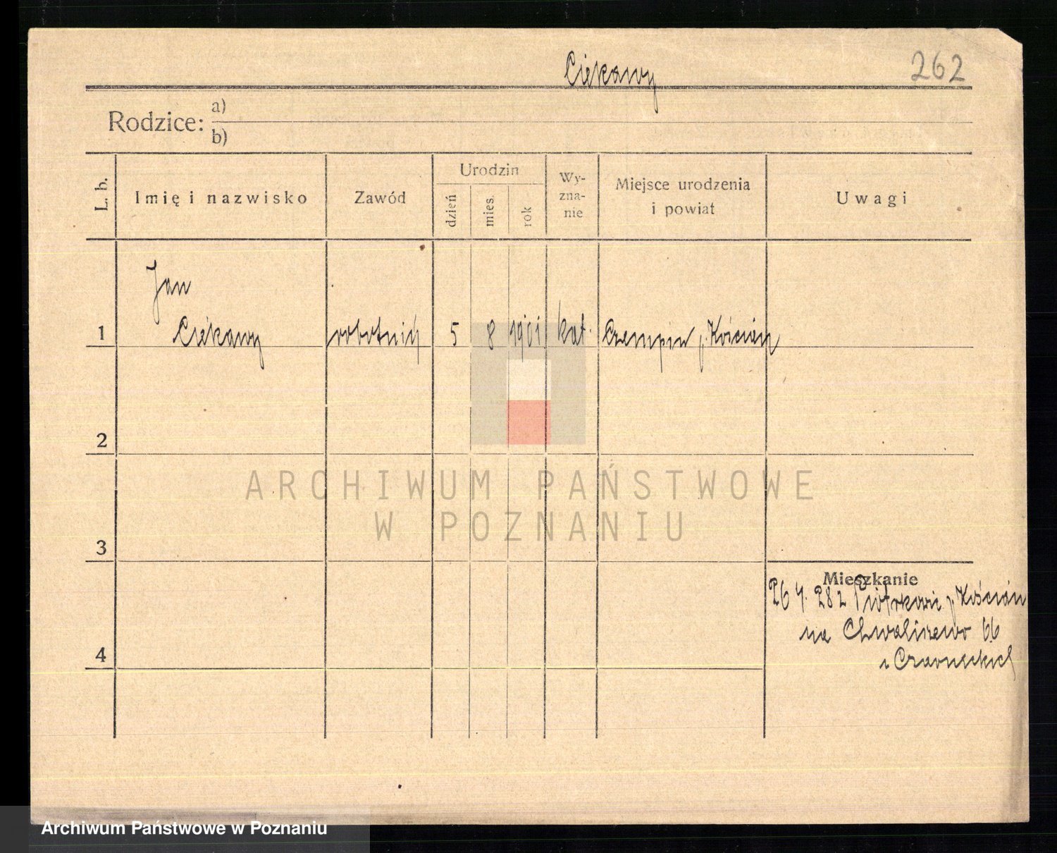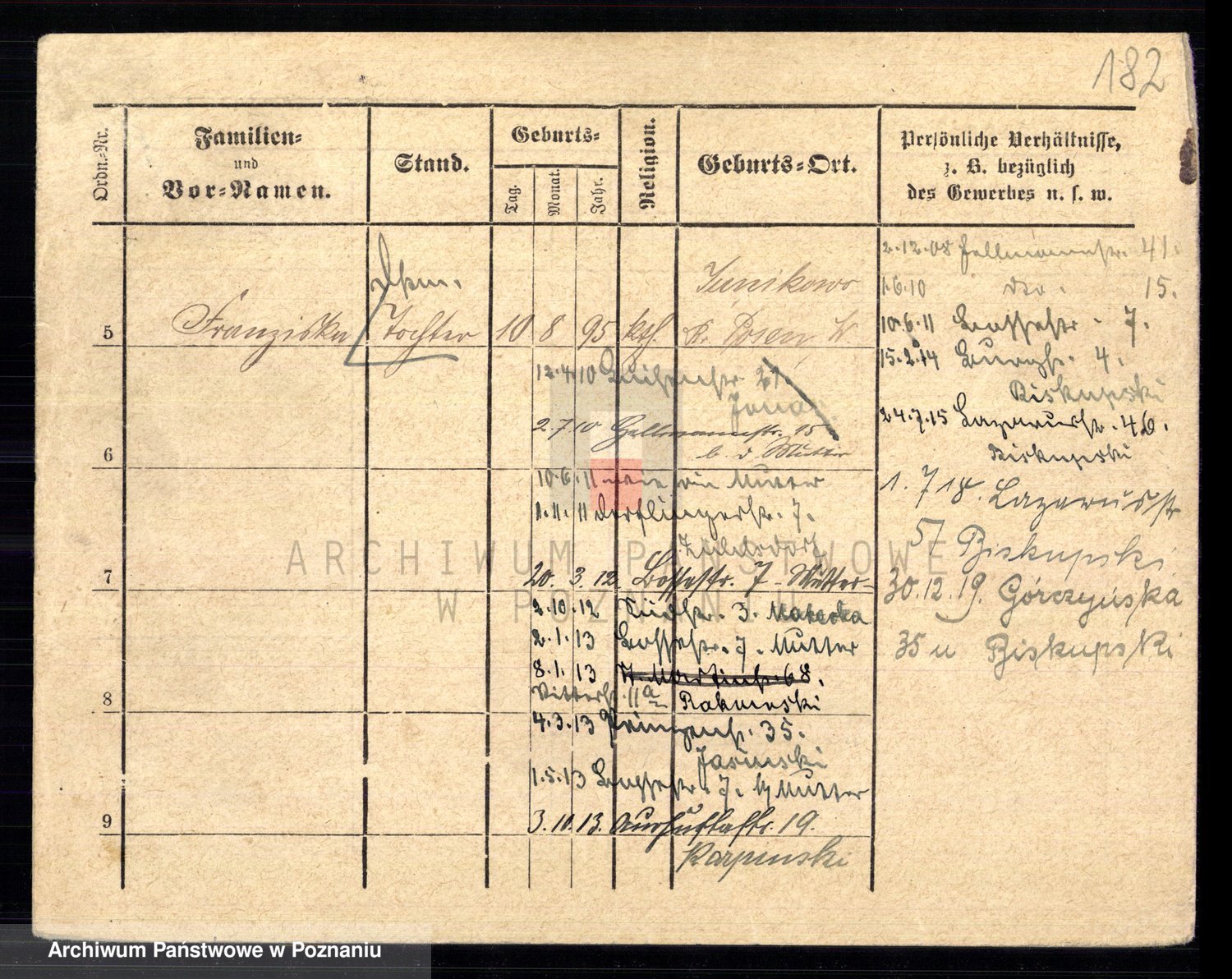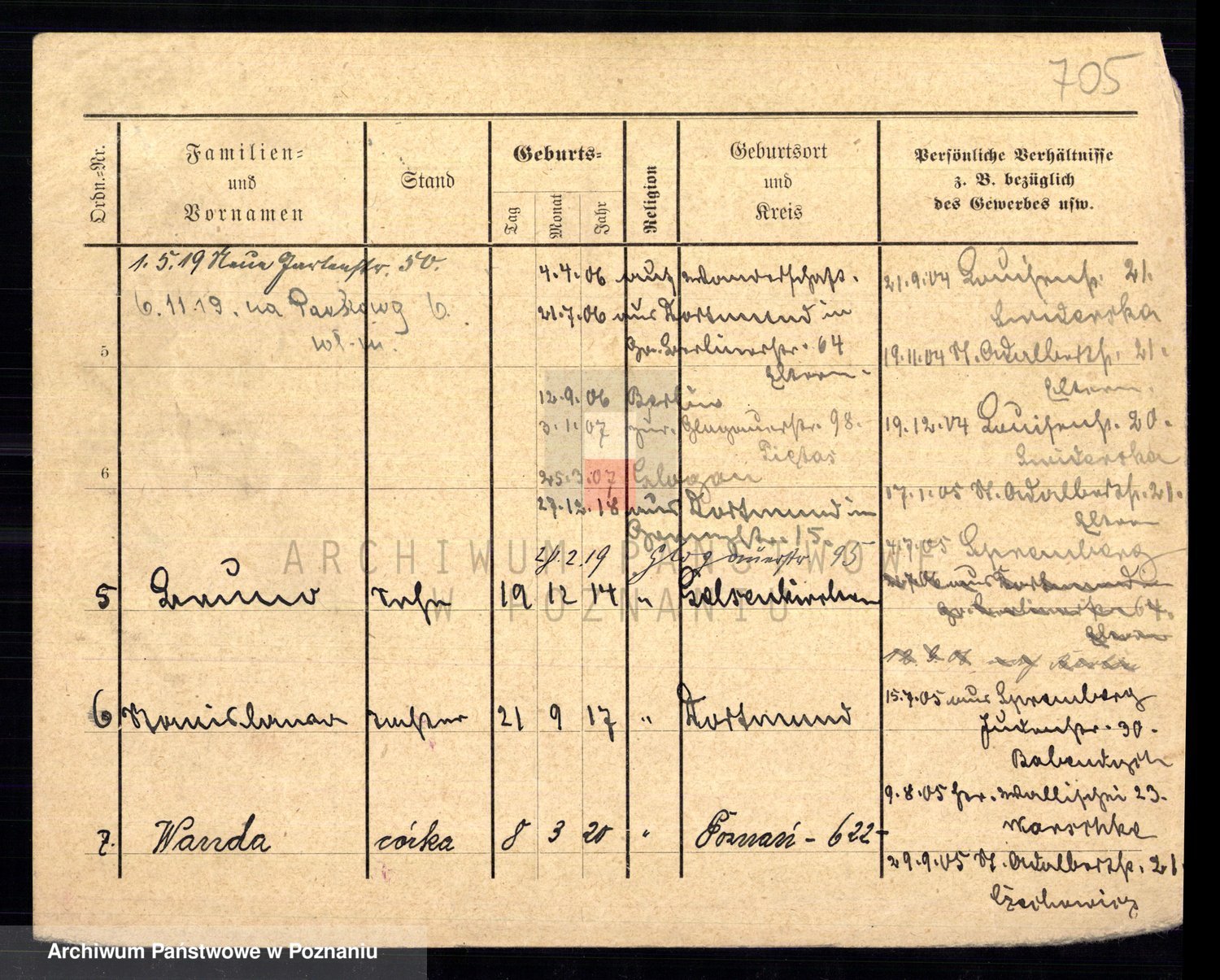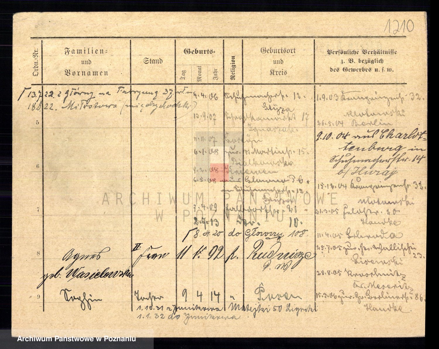 Podgląd karty osobowej dostępny jest po kliknięciu na nazwisko lub ikonkę karty. Można dokonywać powiększenia (ikony na górze) lub przechodzić między kolejnymi skanami (strzałki po bokach).