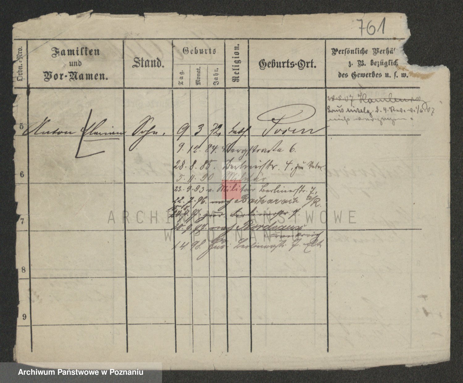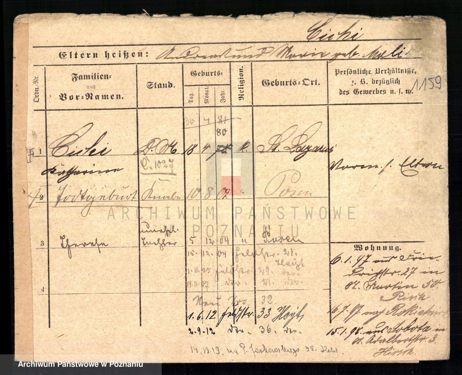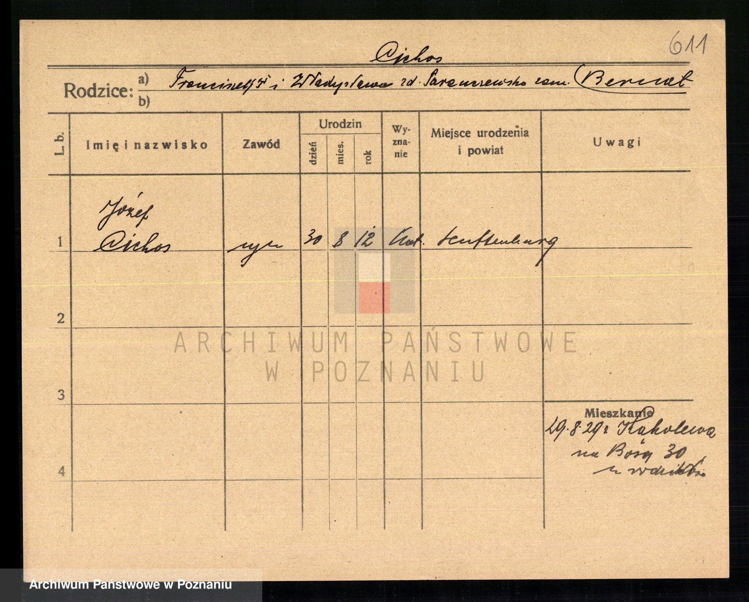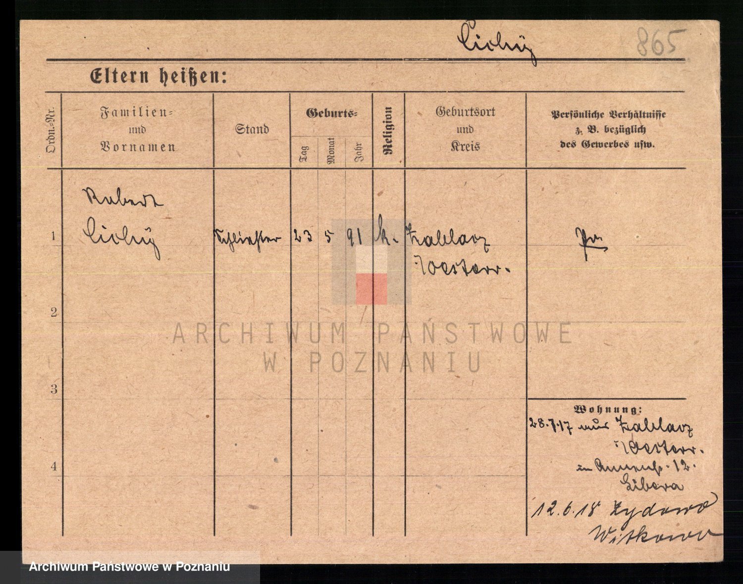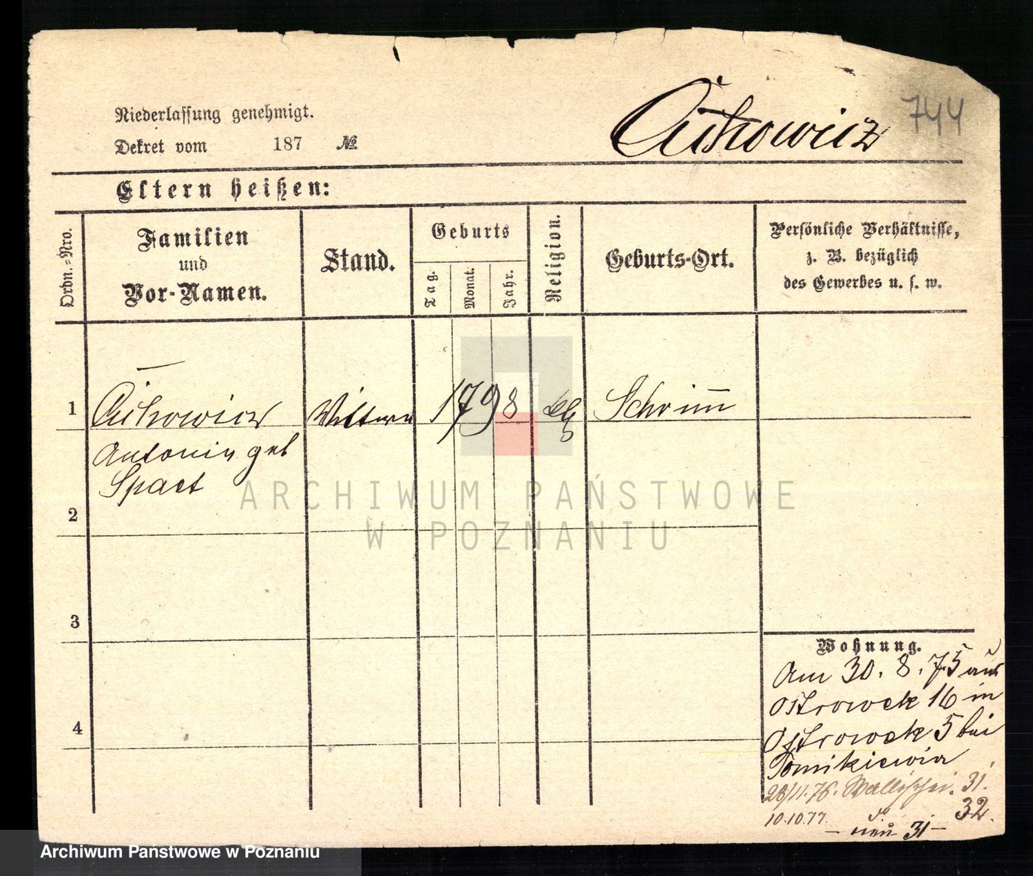 Podgląd karty osobowej dostępny jest po kliknięciu na nazwisko lub ikonkę karty. Można dokonywać powiększenia (ikony na górze) lub przechodzić między kolejnymi skanami (strzałki po bokach).