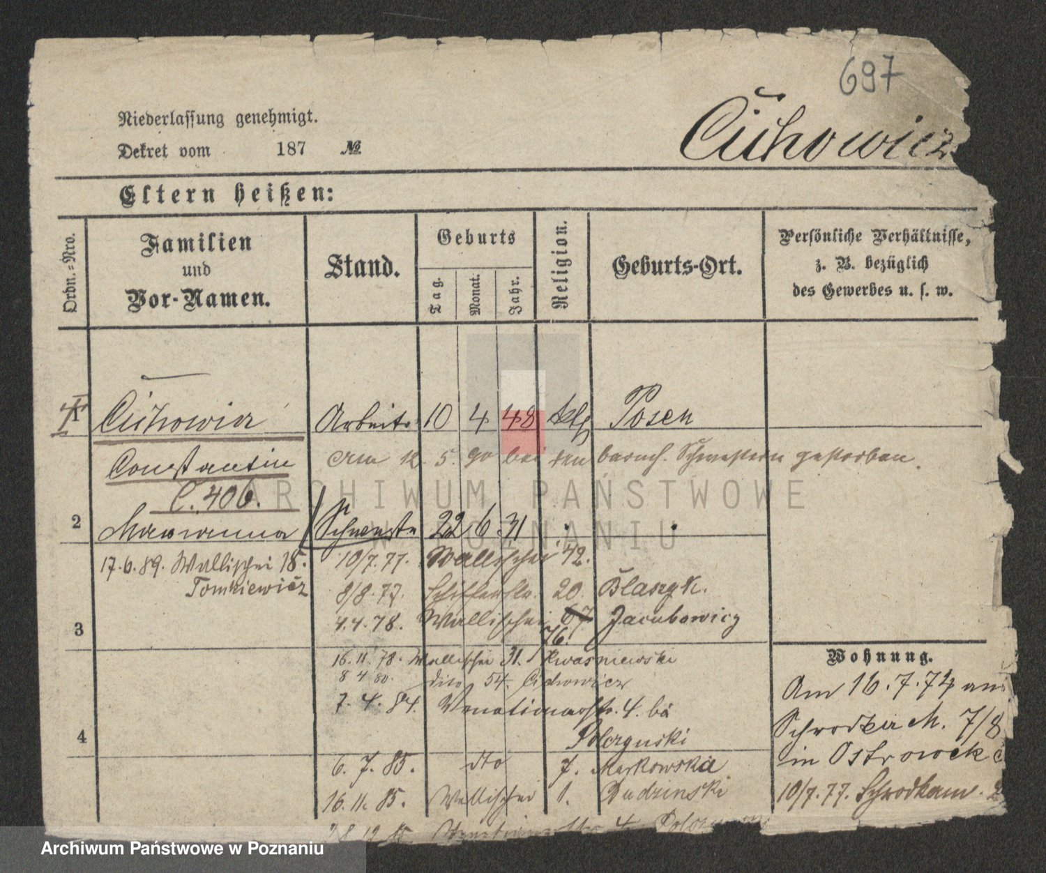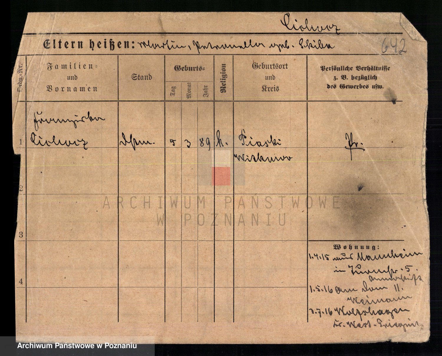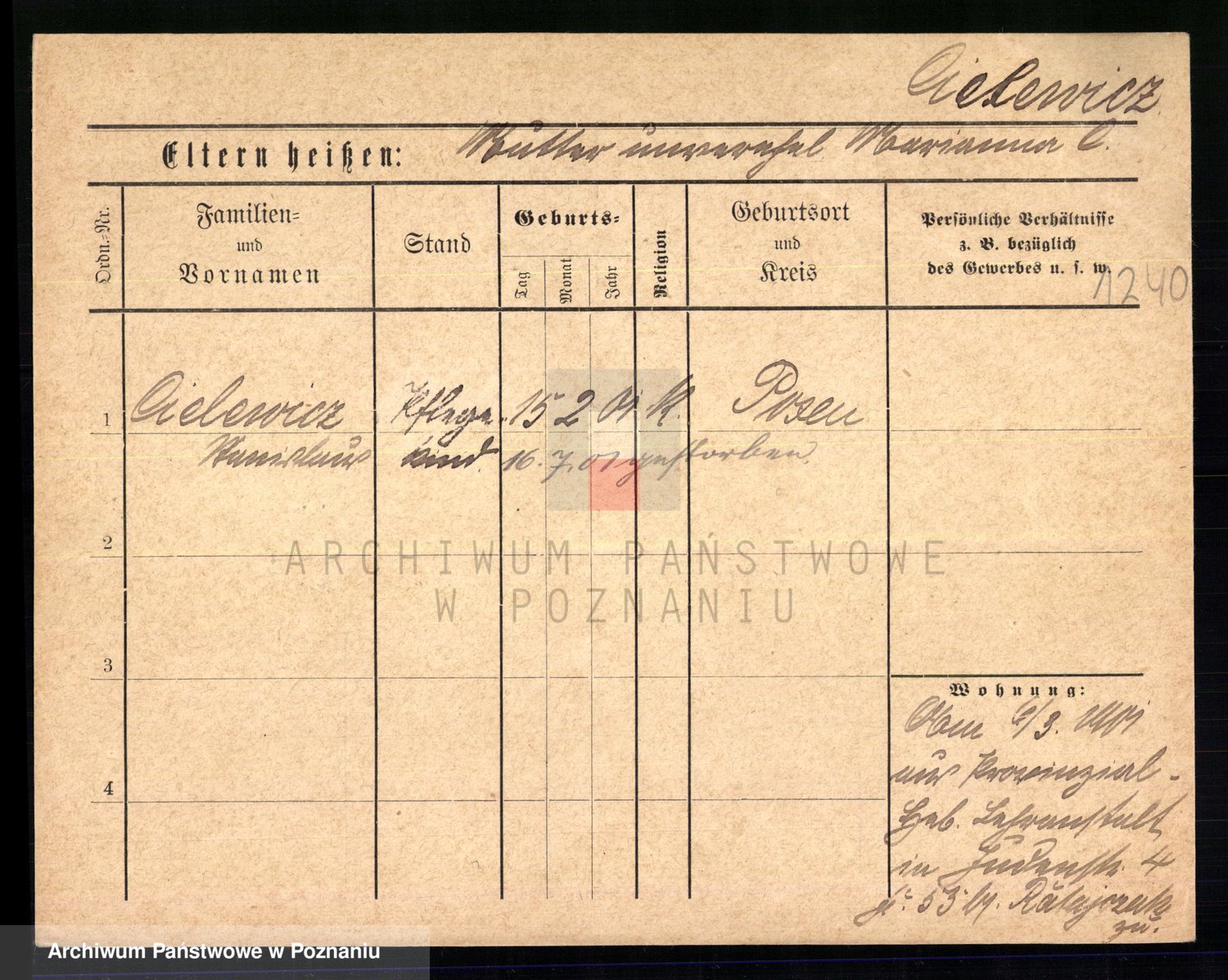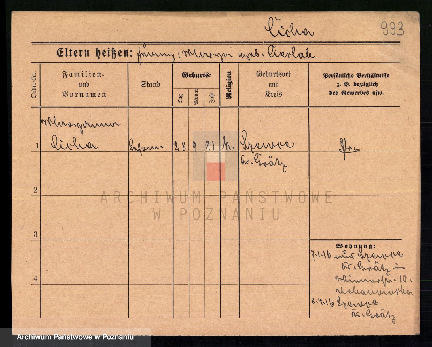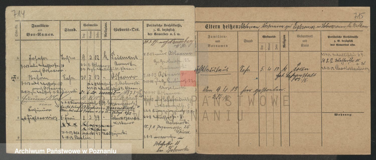 Podgląd karty osobowej dostępny jest po kliknięciu na nazwisko lub ikonkę karty. Można dokonywać powiększenia (ikony na górze) lub przechodzić między kolejnymi skanami (strzałki po bokach).