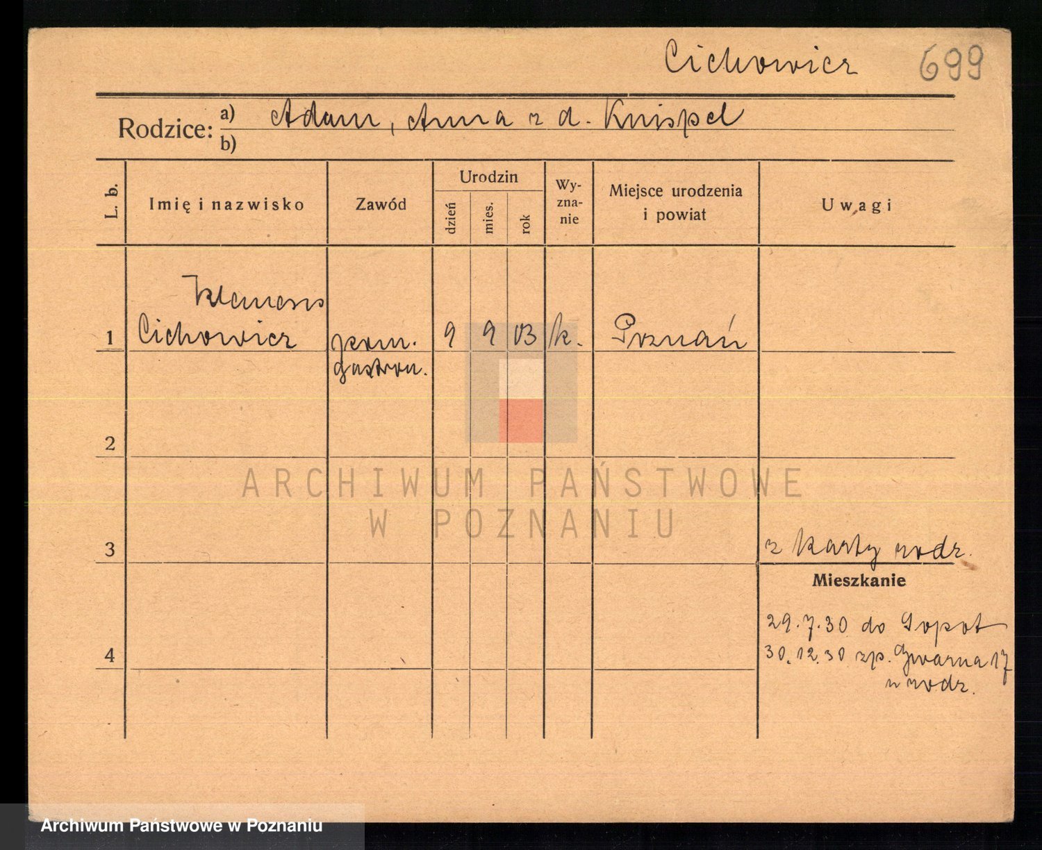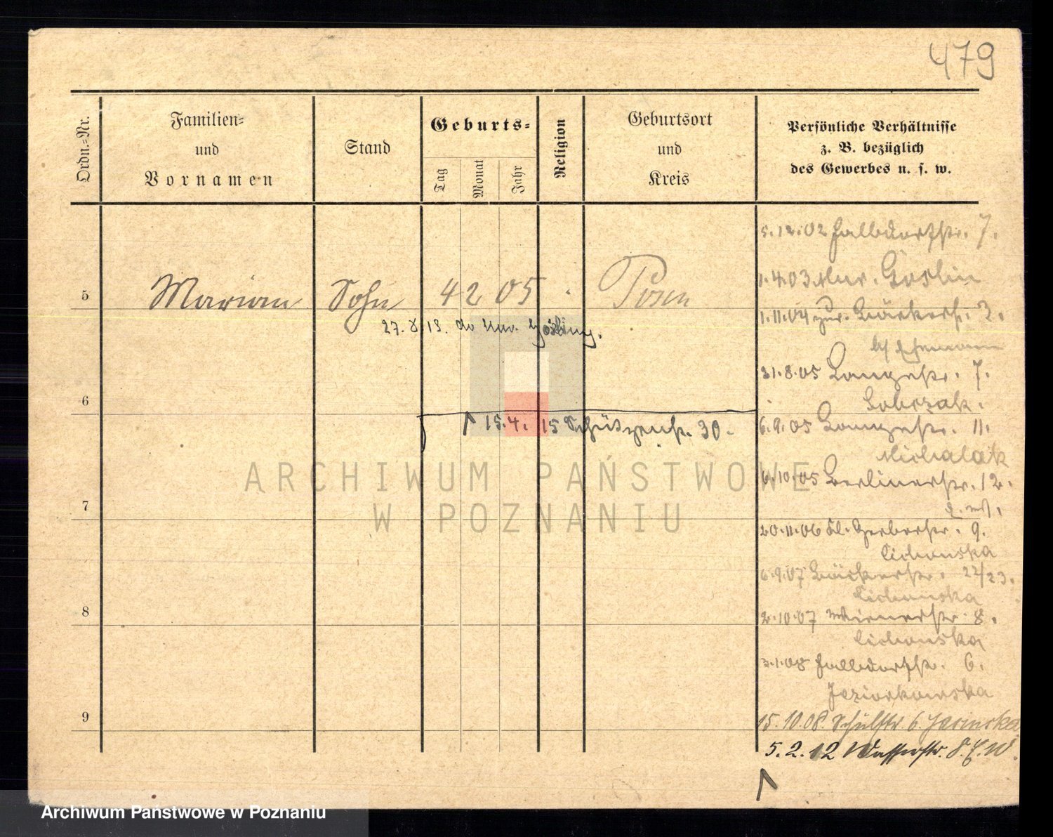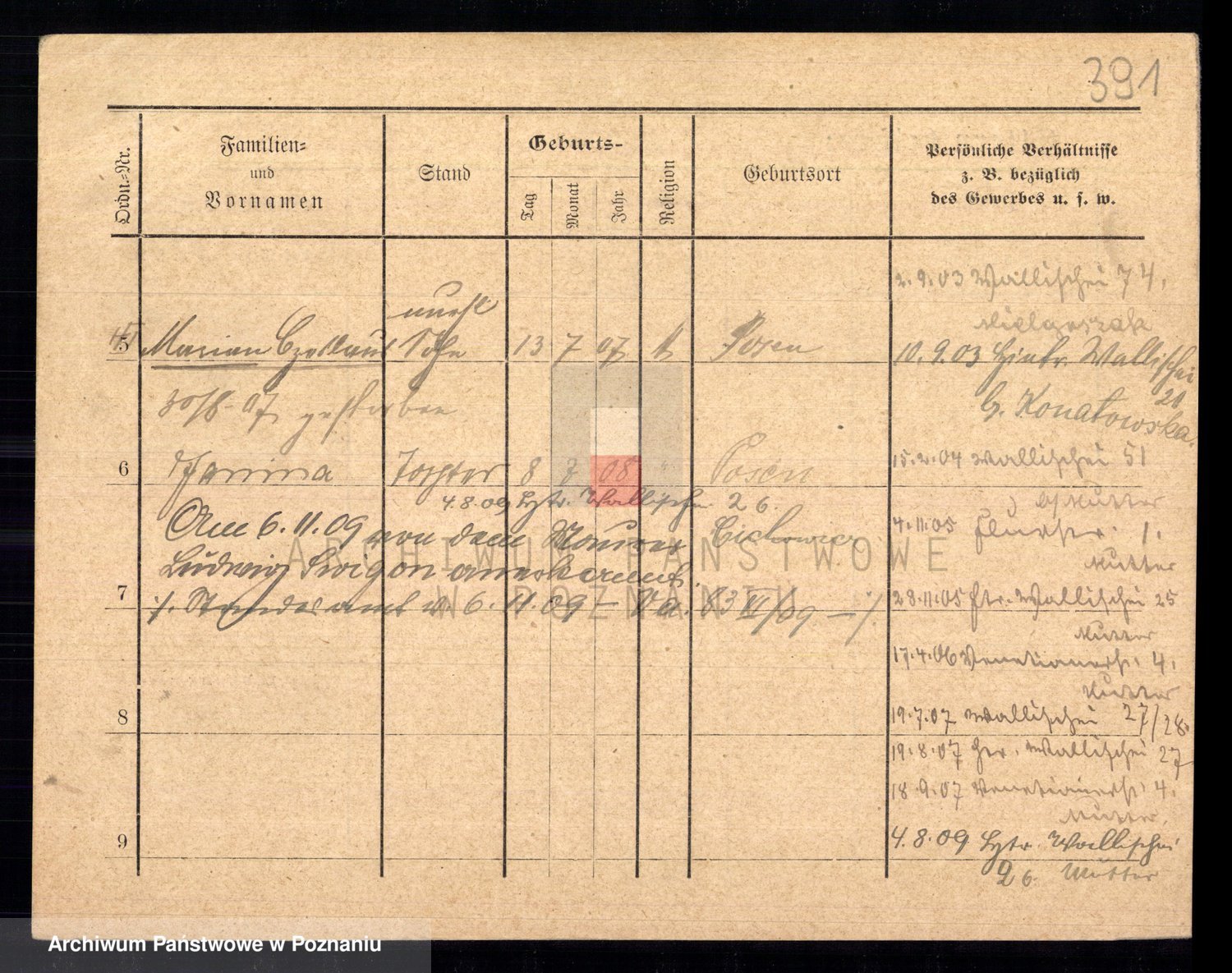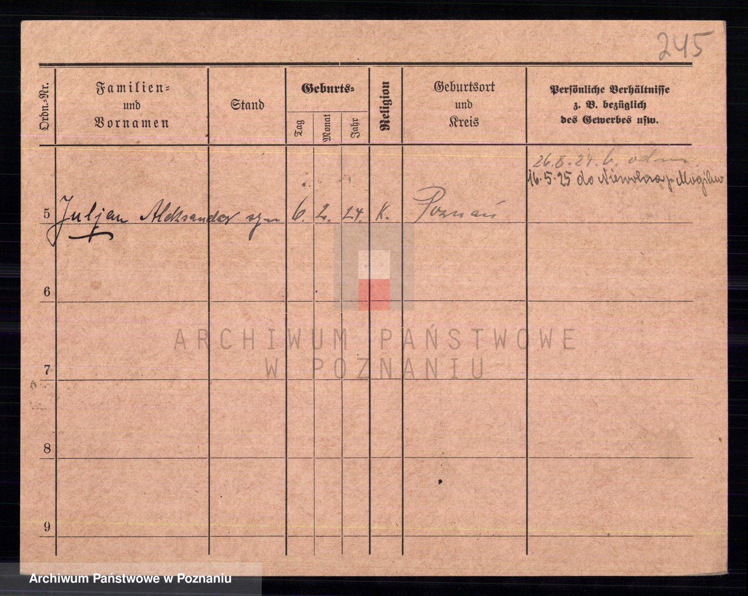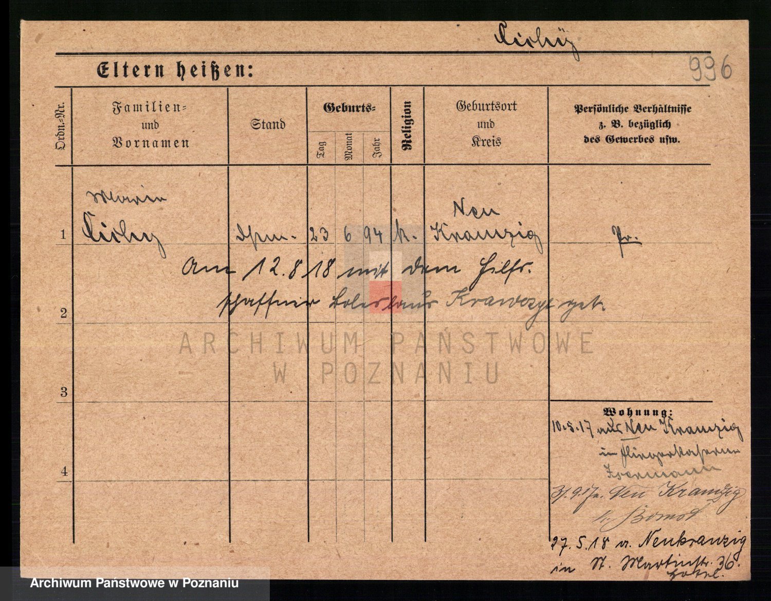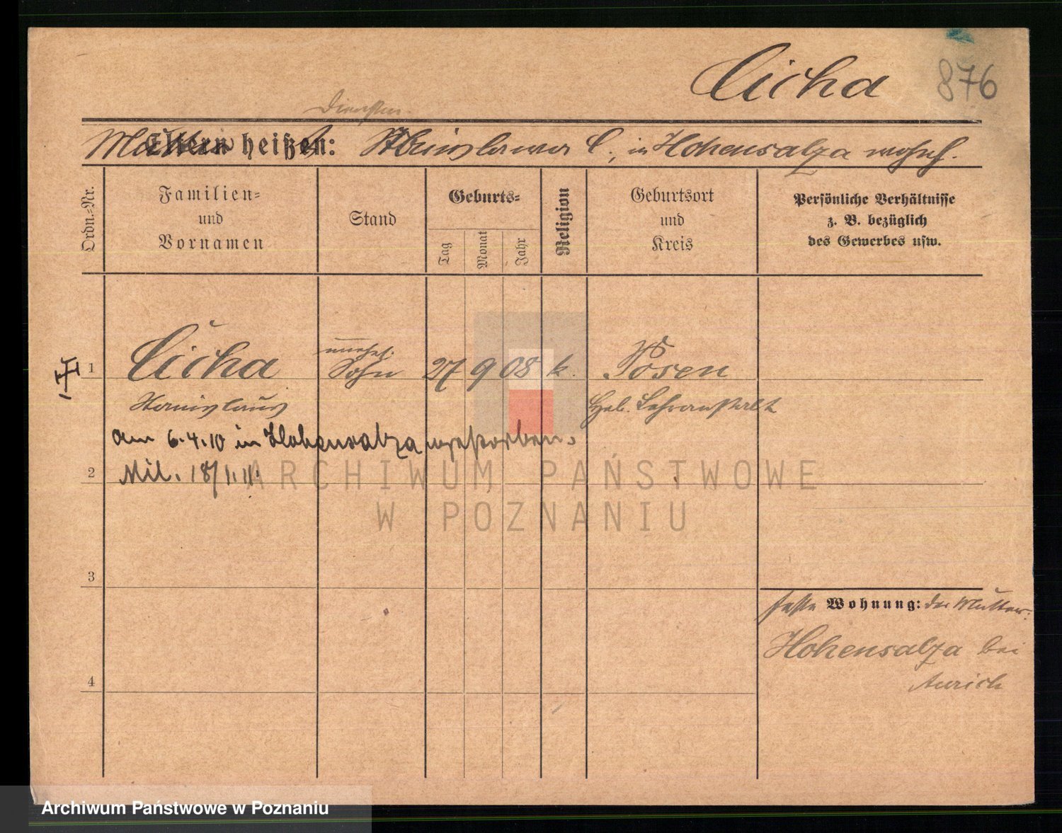 Podgląd karty osobowej dostępny jest po kliknięciu na nazwisko lub ikonkę karty. Można dokonywać powiększenia (ikony na górze) lub przechodzić między kolejnymi skanami (strzałki po bokach).
