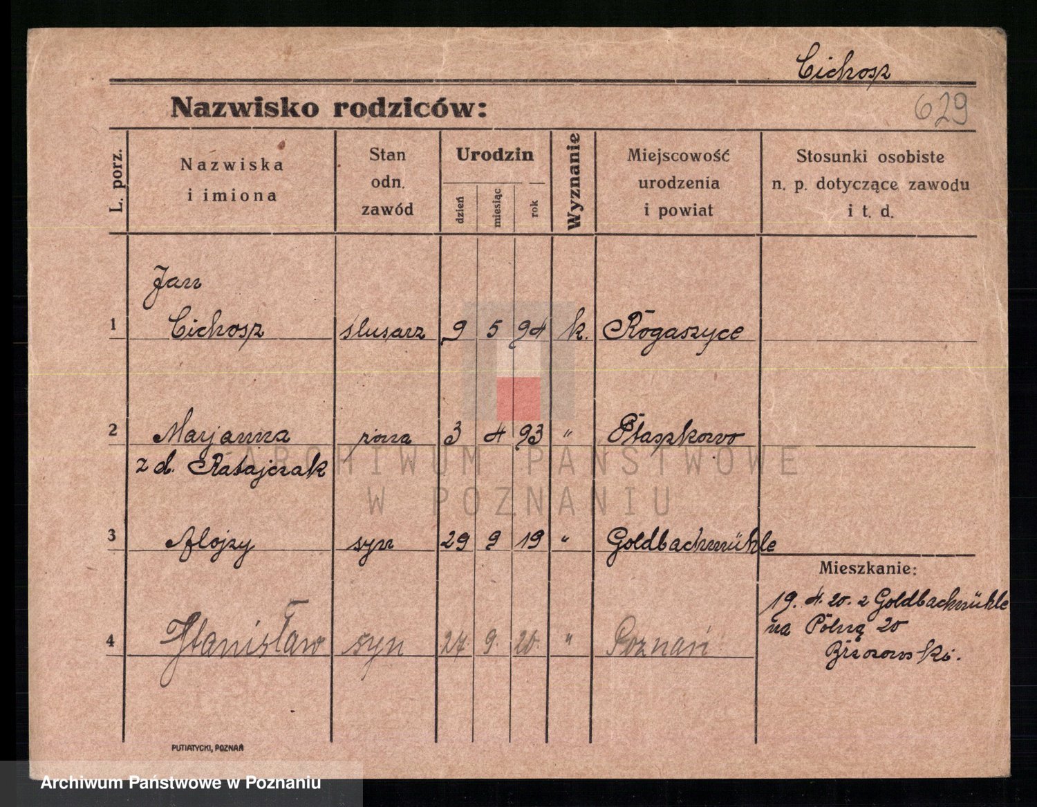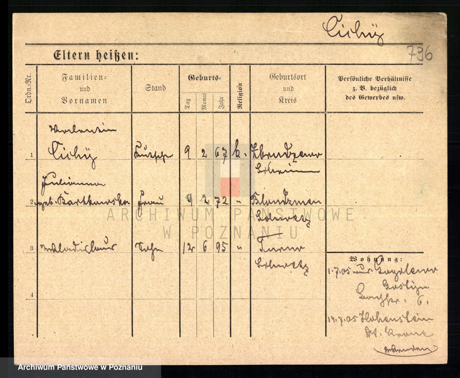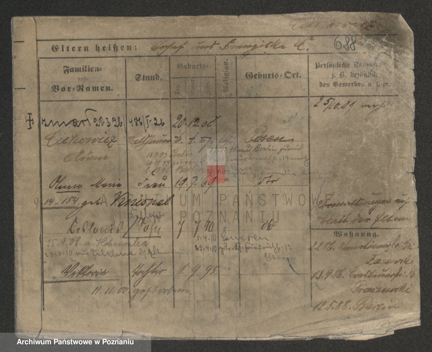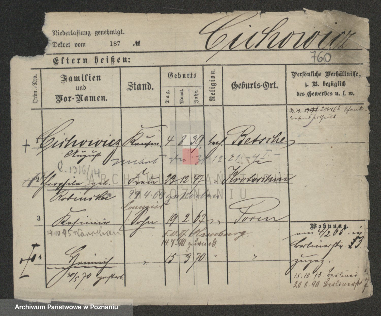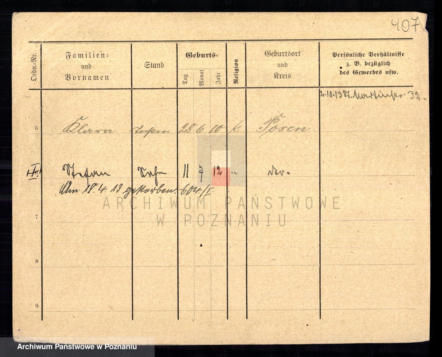 Podgląd karty osobowej dostępny jest po kliknięciu na nazwisko lub ikonkę karty. Można dokonywać powiększenia (ikony na górze) lub przechodzić między kolejnymi skanami (strzałki po bokach).
