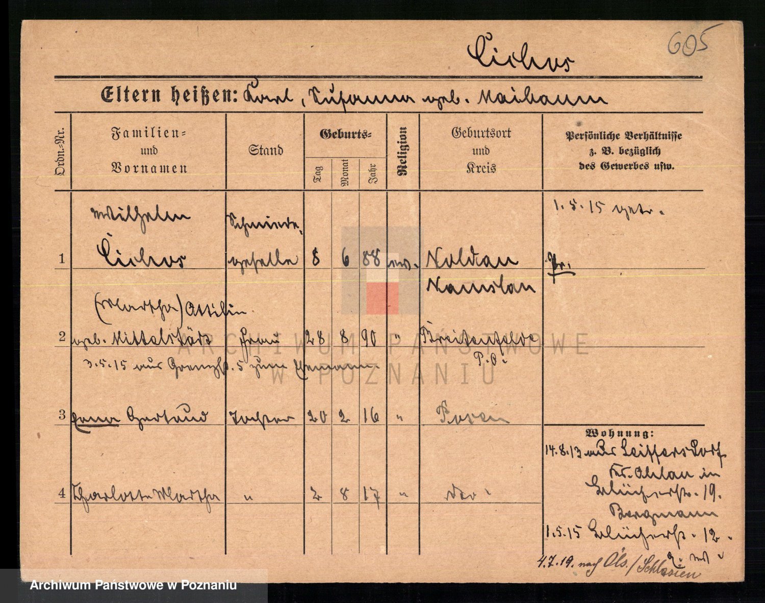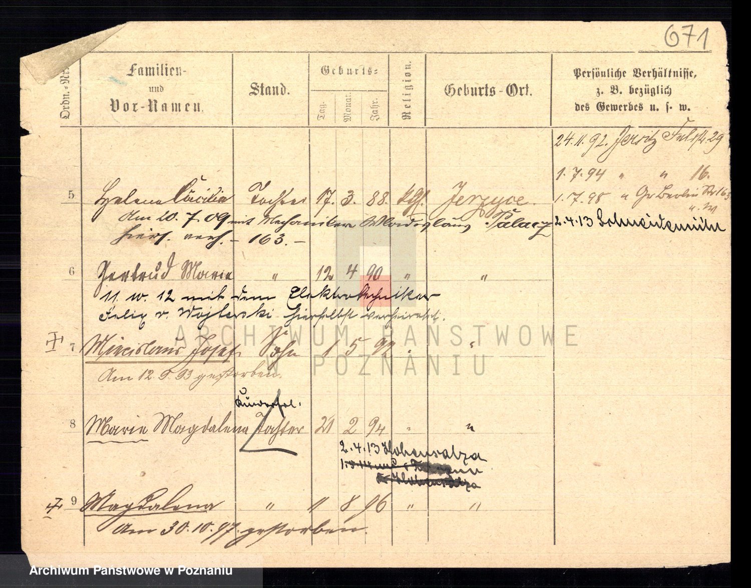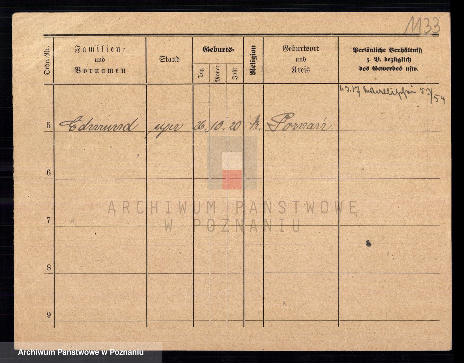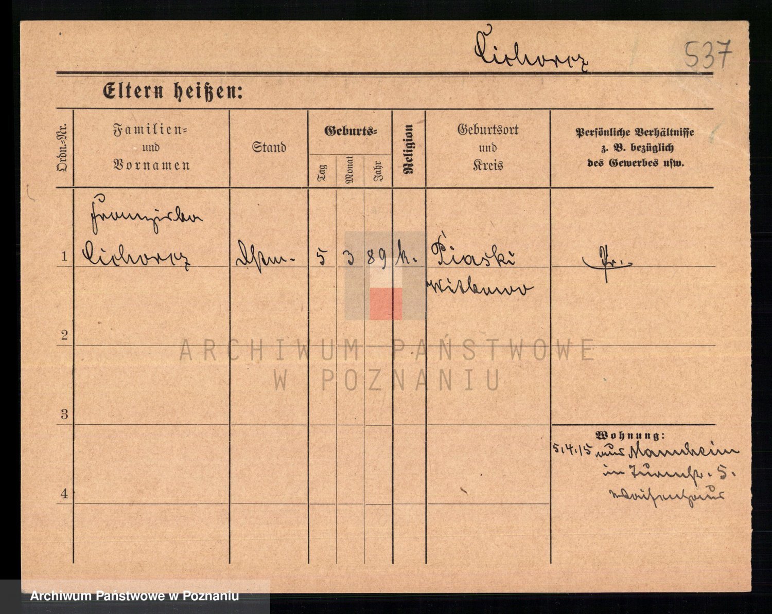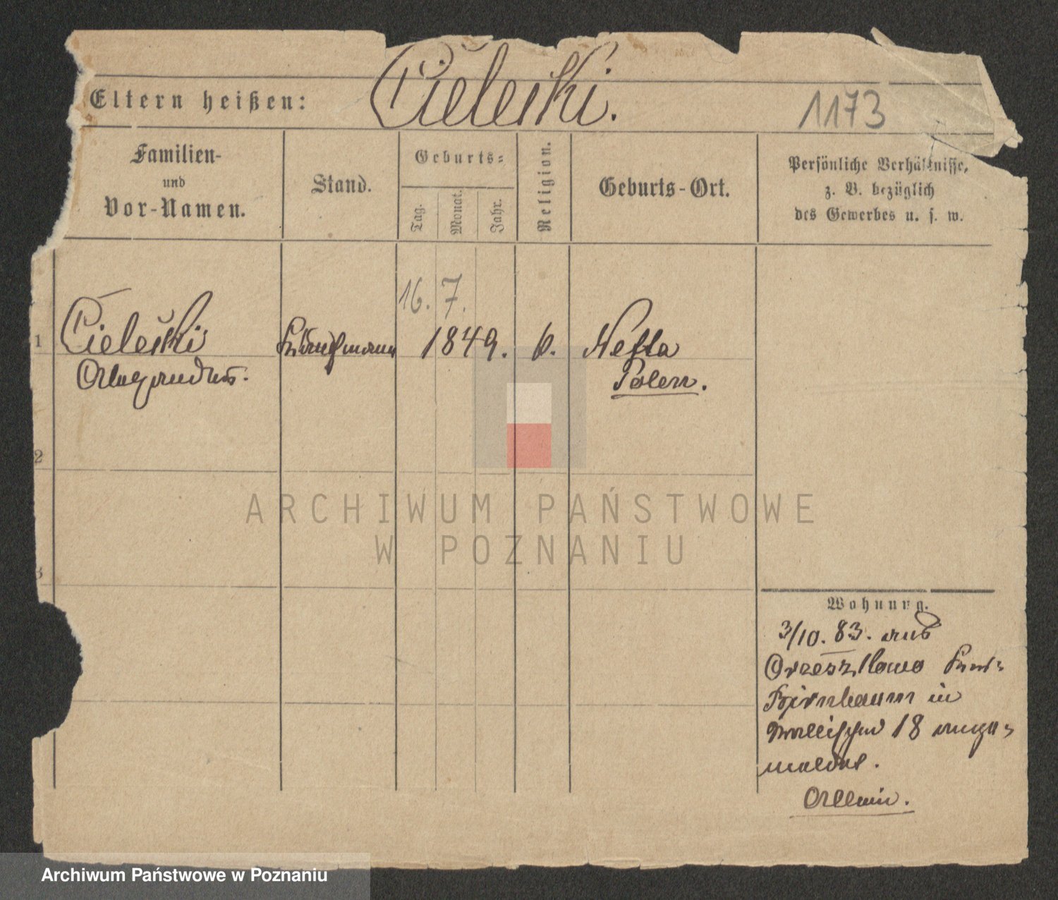 Podgląd karty osobowej dostępny jest po kliknięciu na nazwisko lub ikonkę karty. Można dokonywać powiększenia (ikony na górze) lub przechodzić między kolejnymi skanami (strzałki po bokach).