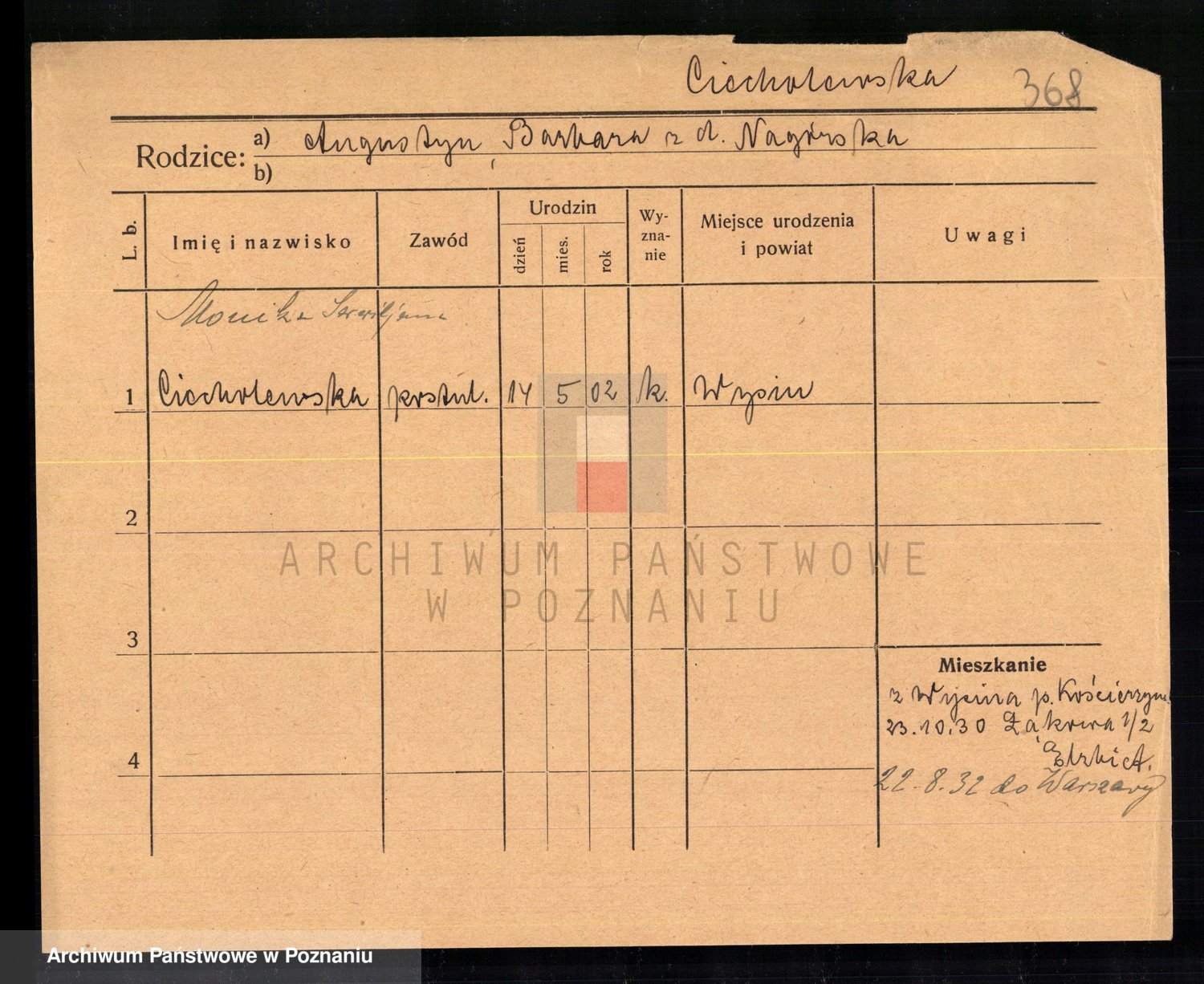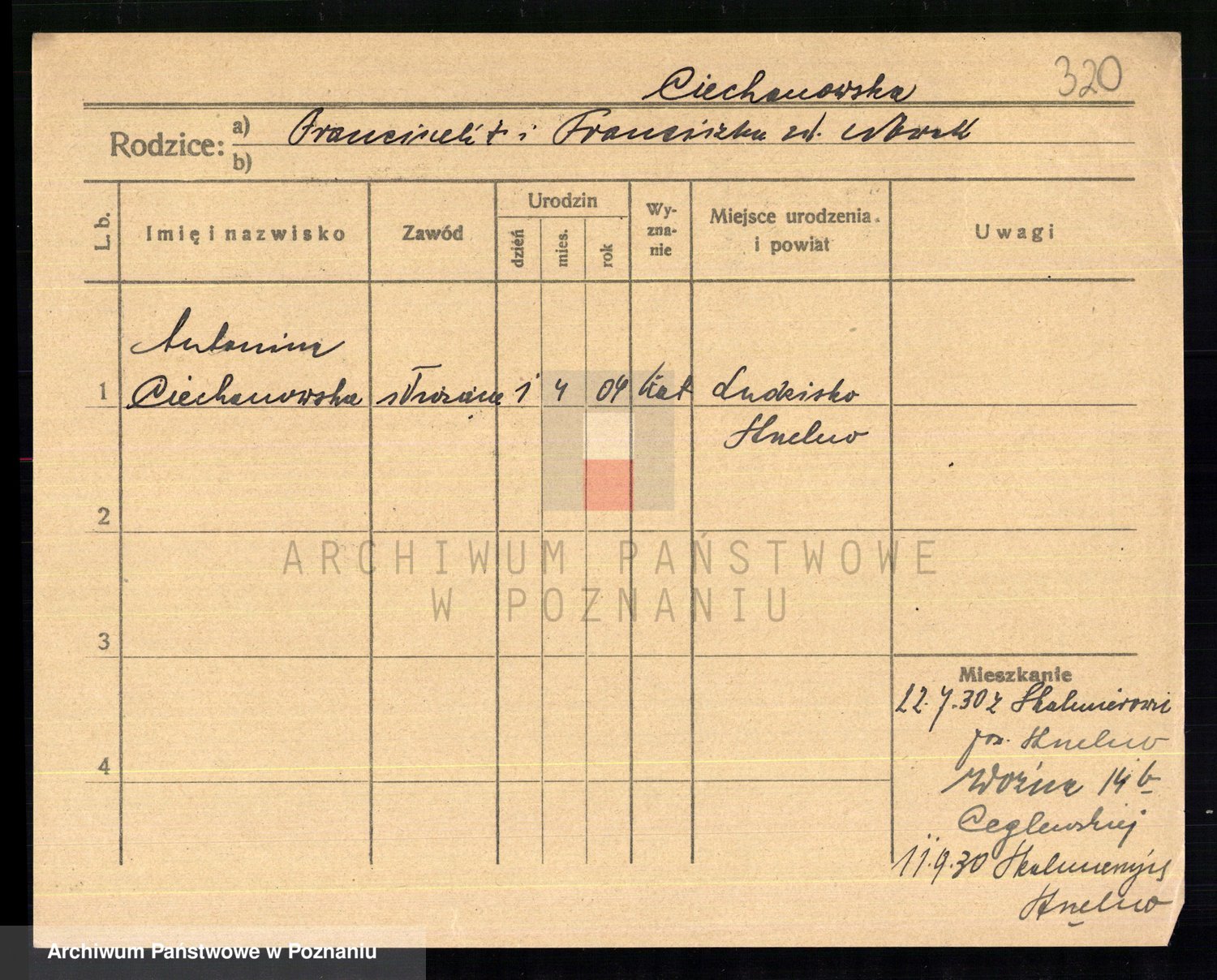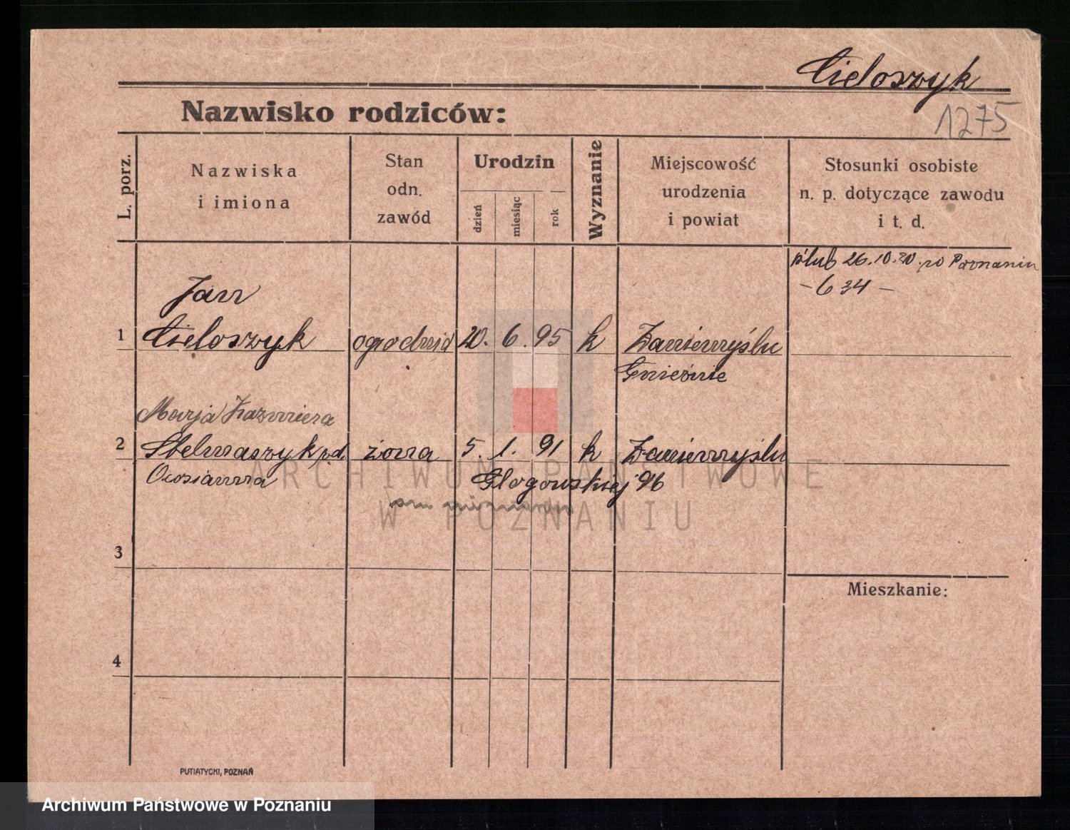 Cieloszyk z d. Owsianna I voto Stelmaszyk, Marja Kazmiera