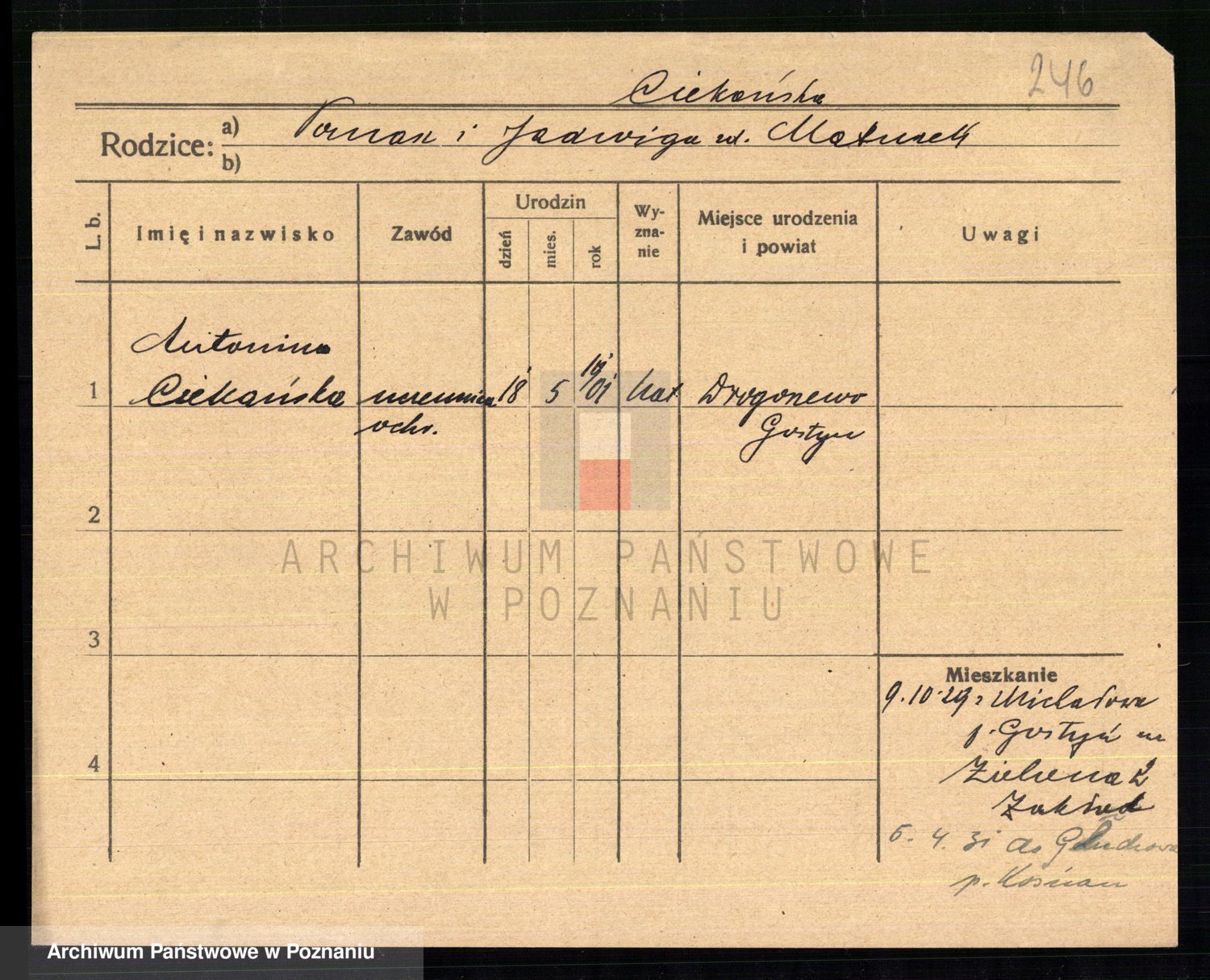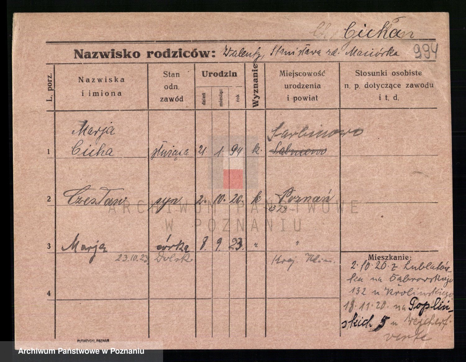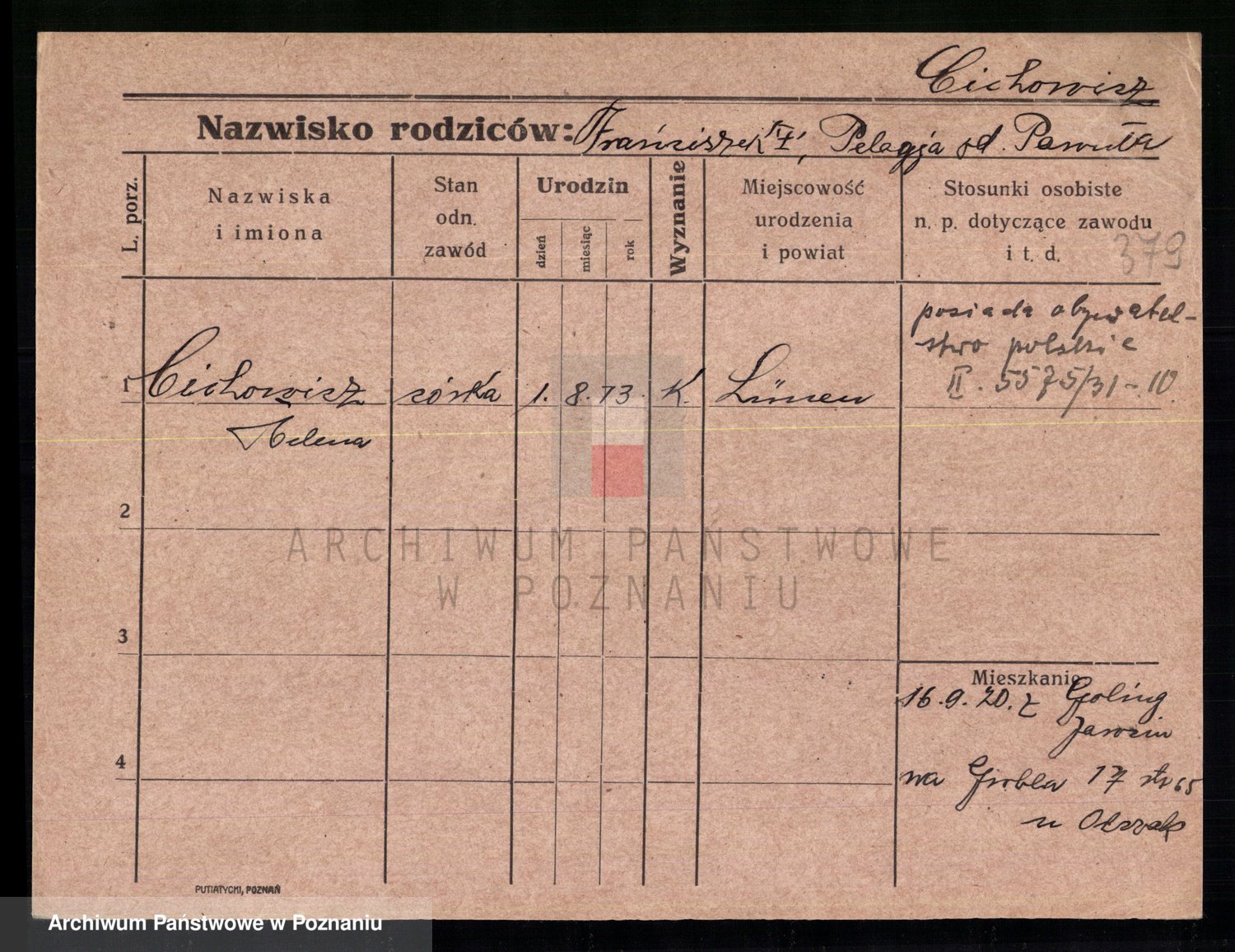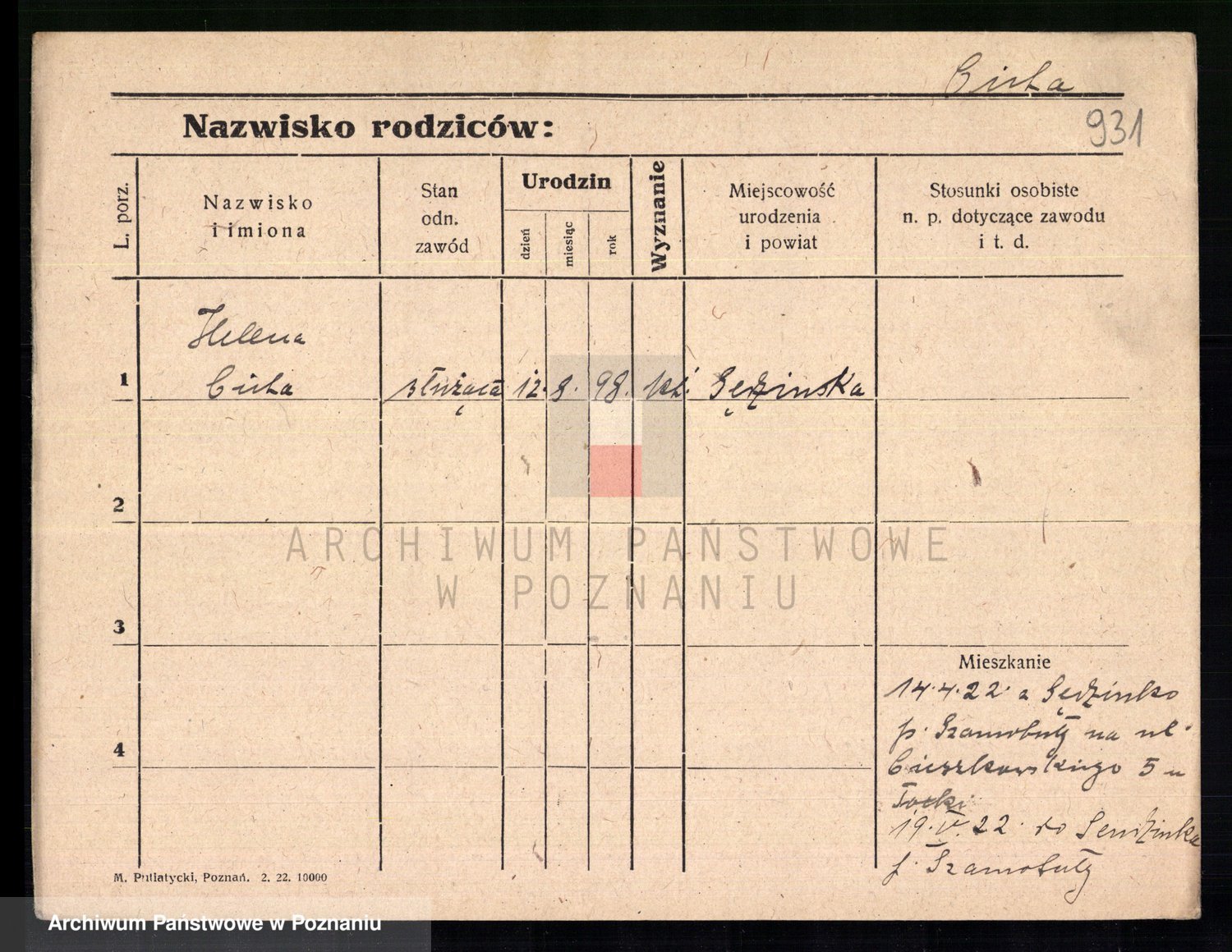 Cieloszyk z d. Owsianna I voto Stelmaszyk, Marja Kazmiera