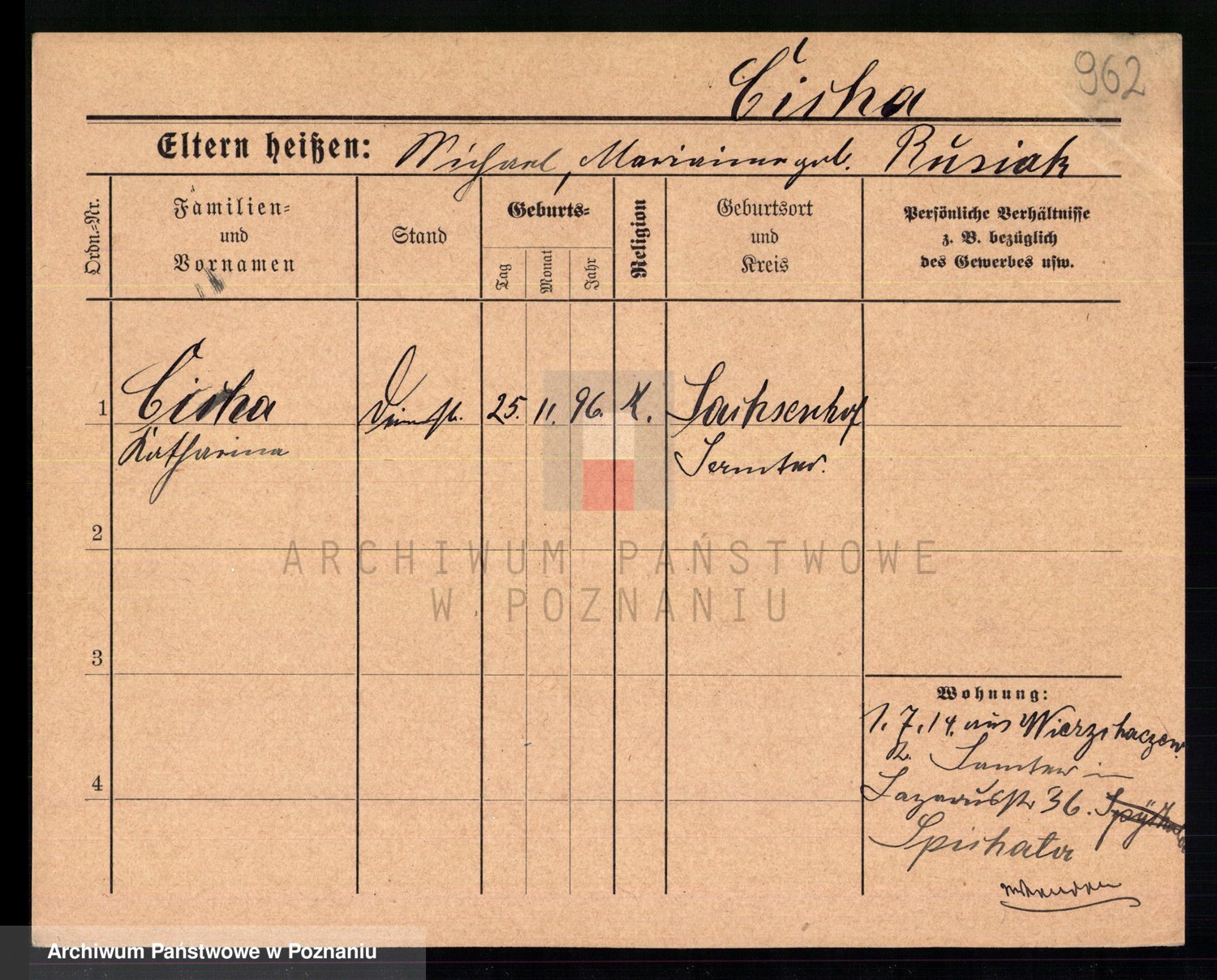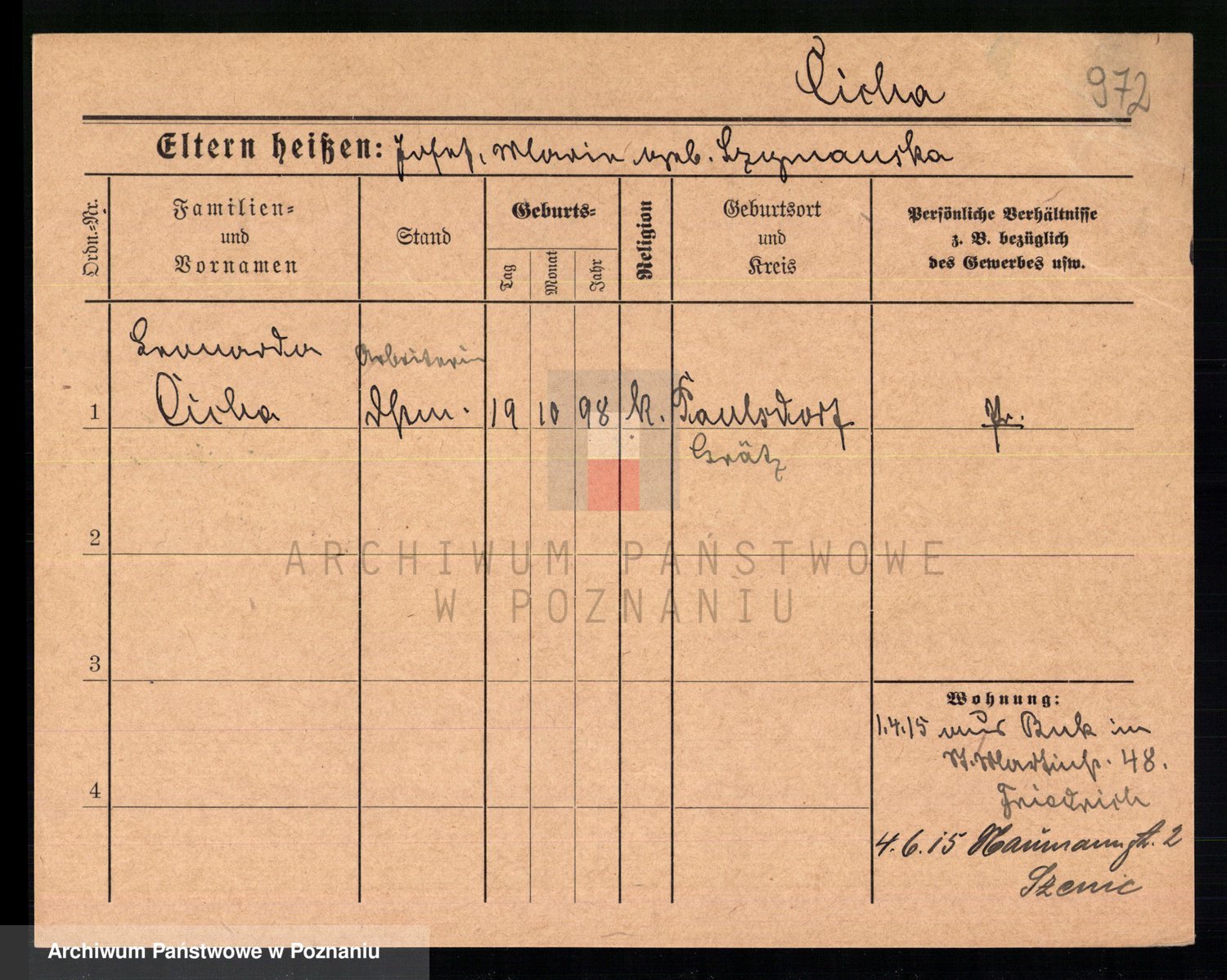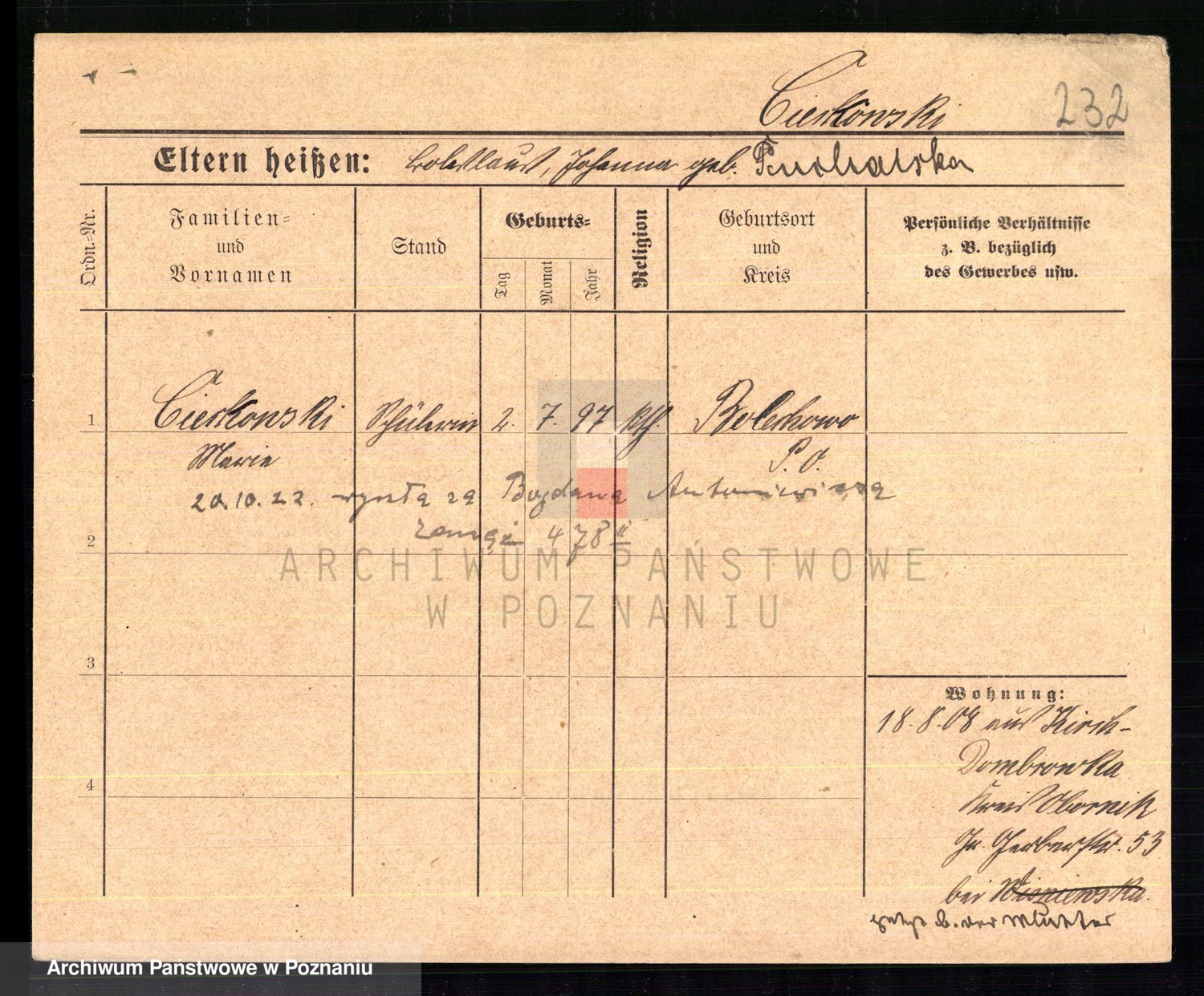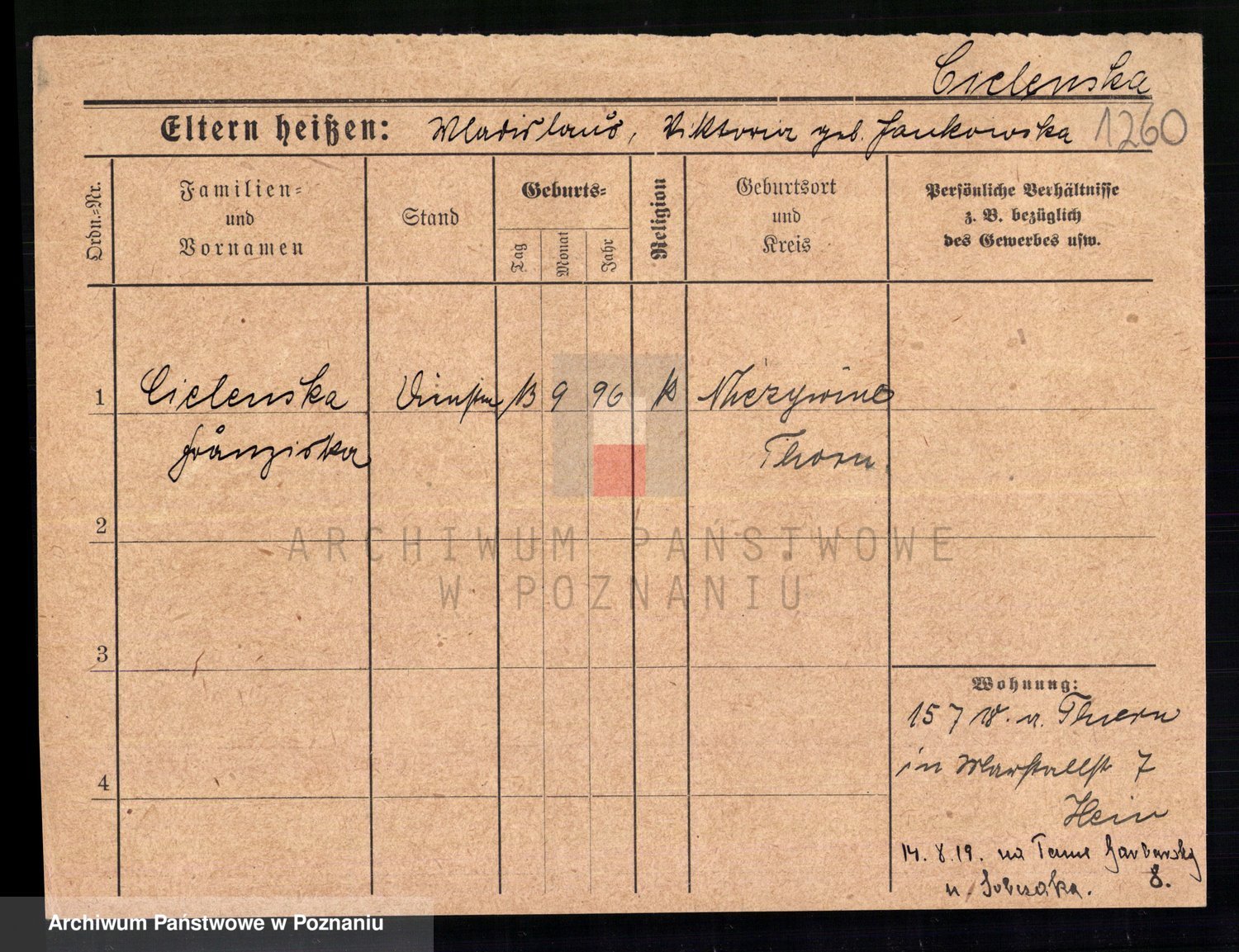 Cieloszyk z d. Kaczmarek alias Kazmierczak, Catharina Victoria