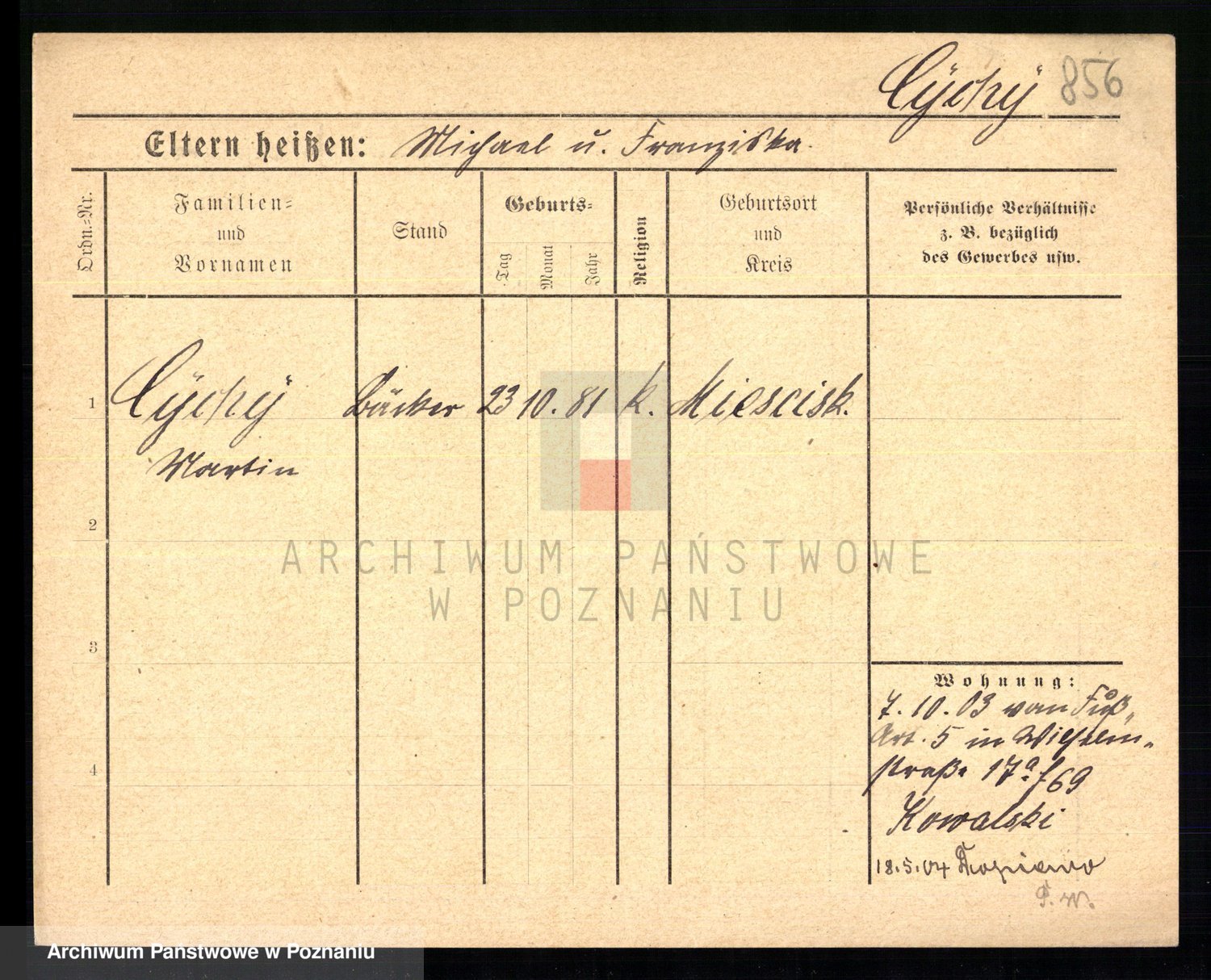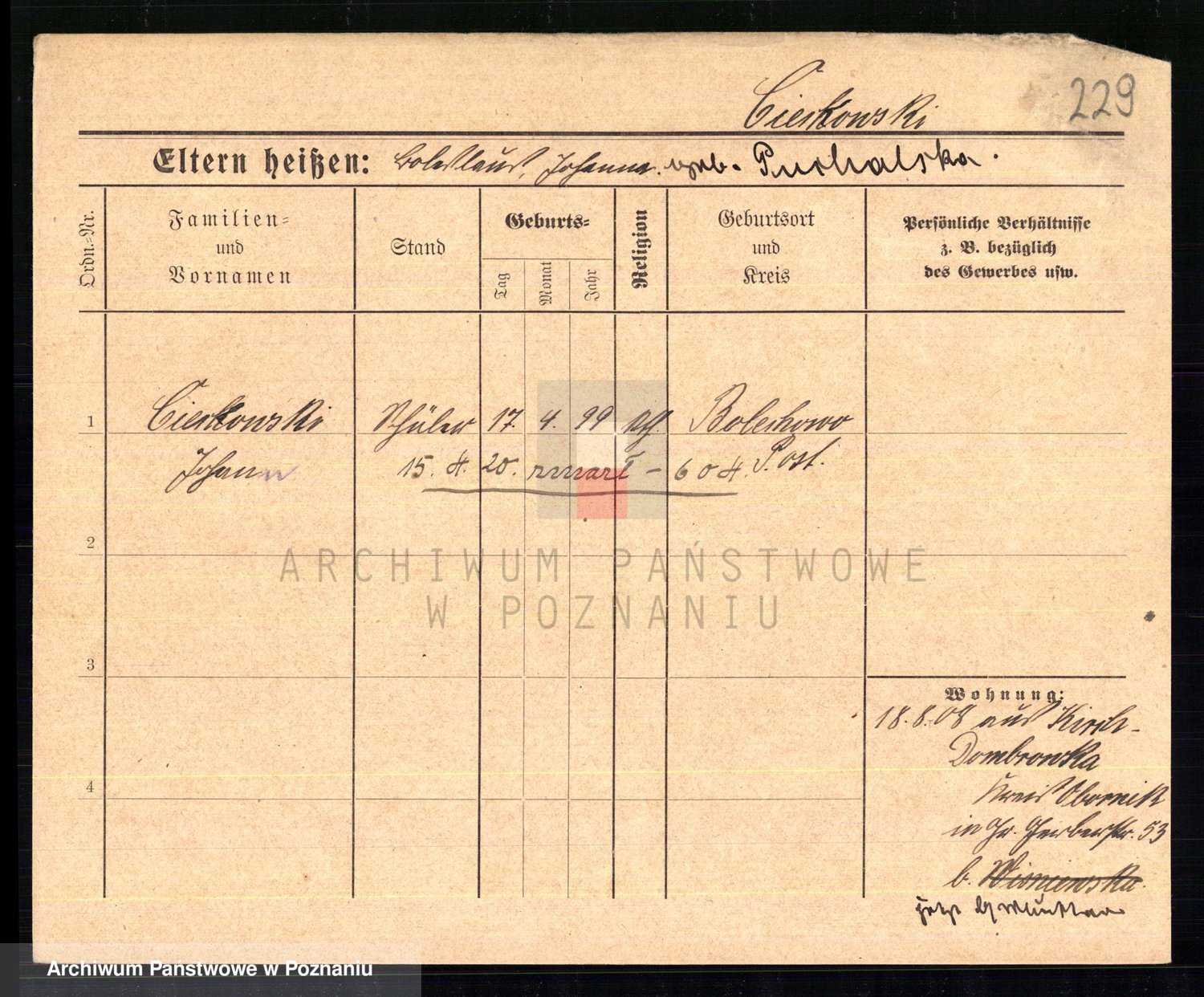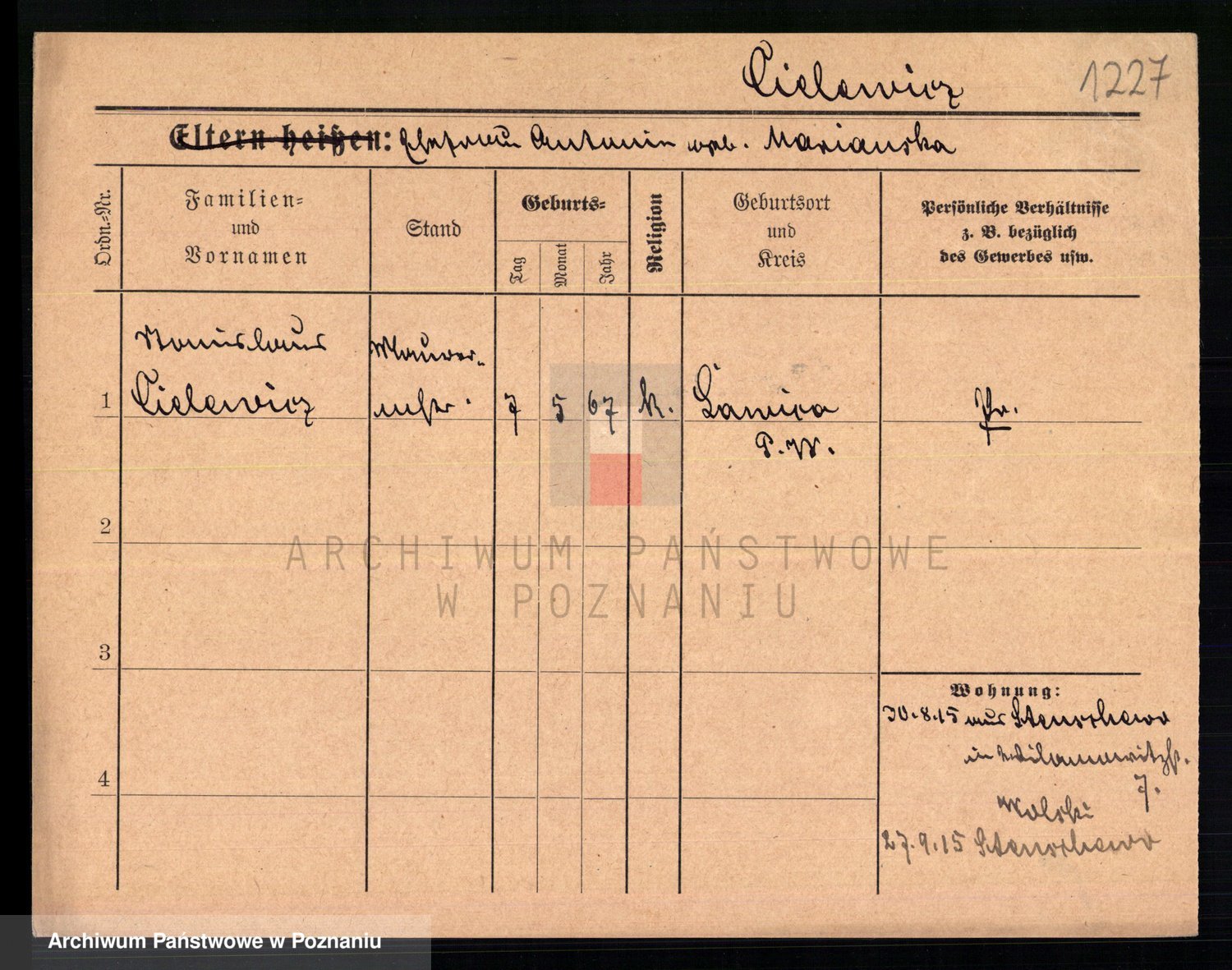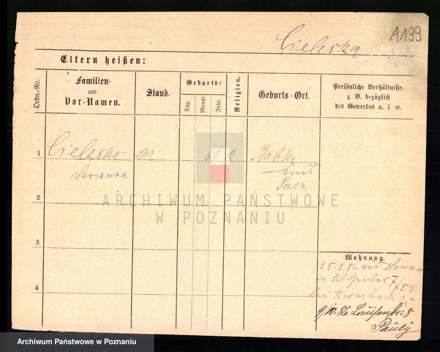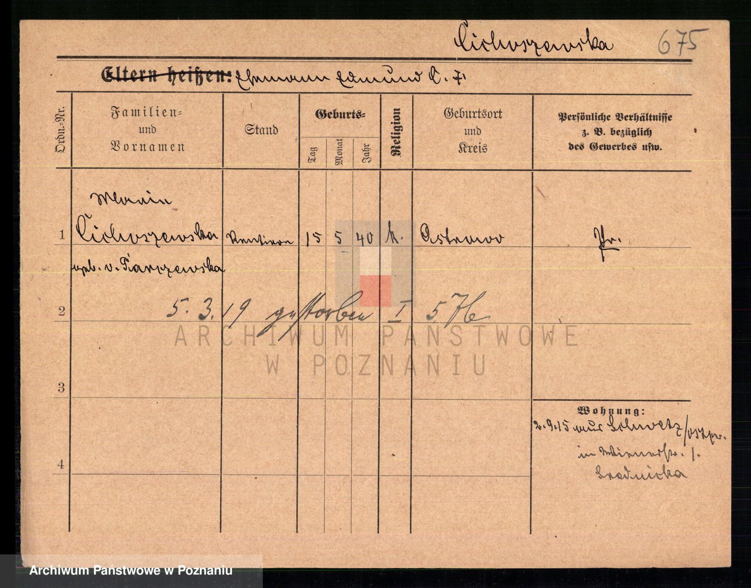 Cieloszyk z d. Kaczmarek alias Kazmierczak, Catharina Victoria